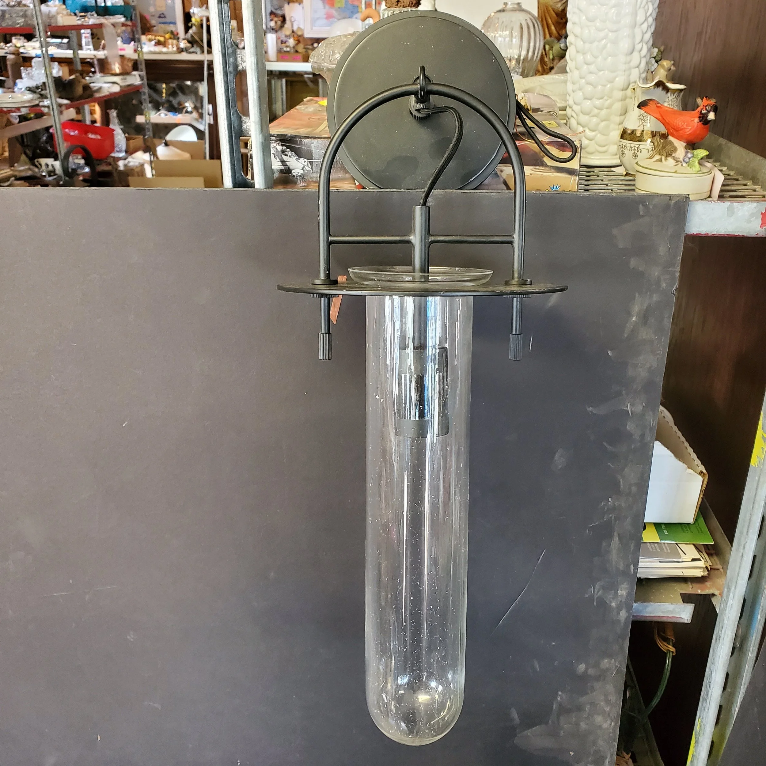 New black sconce with a beautiful long glass cover.