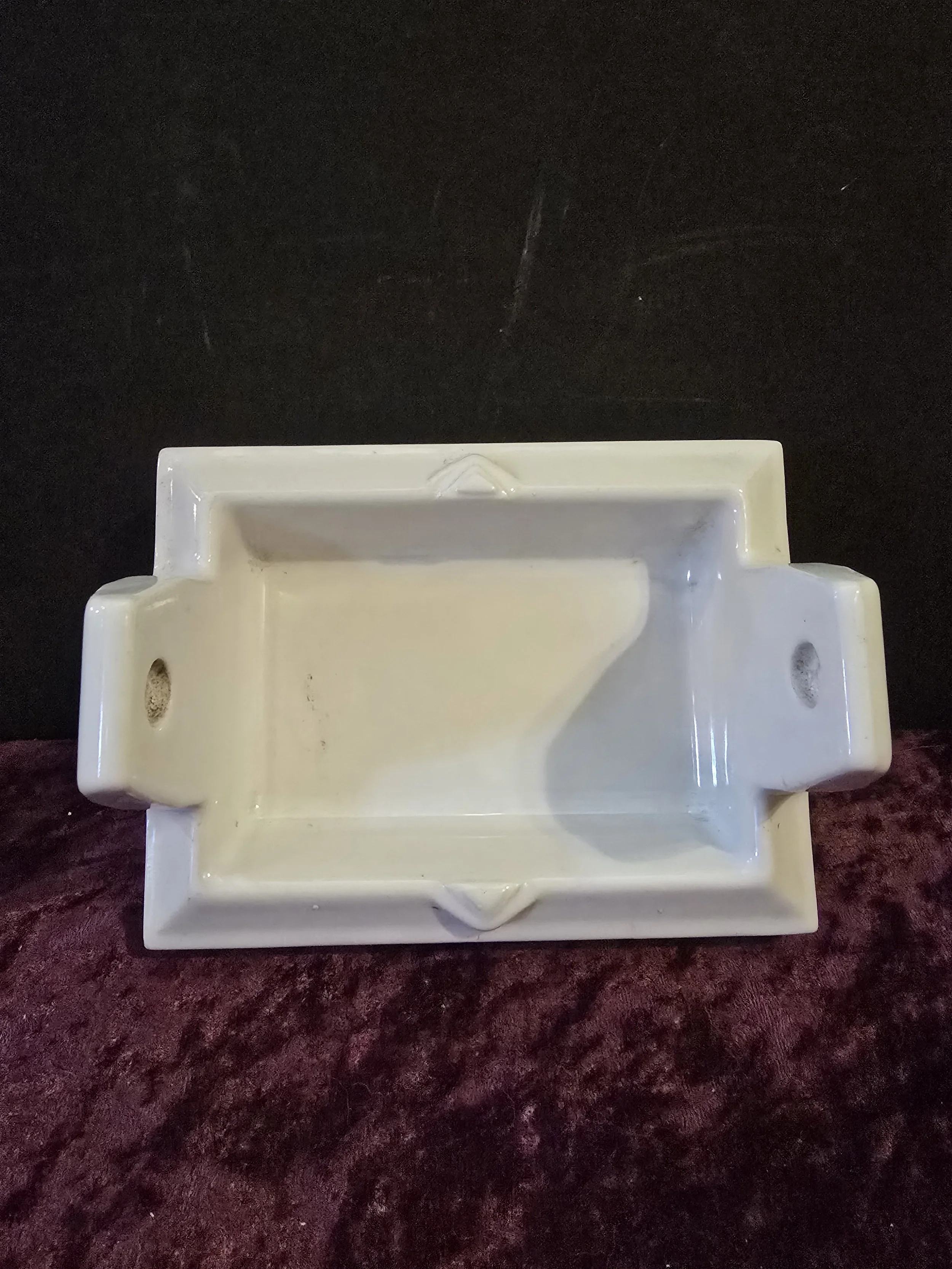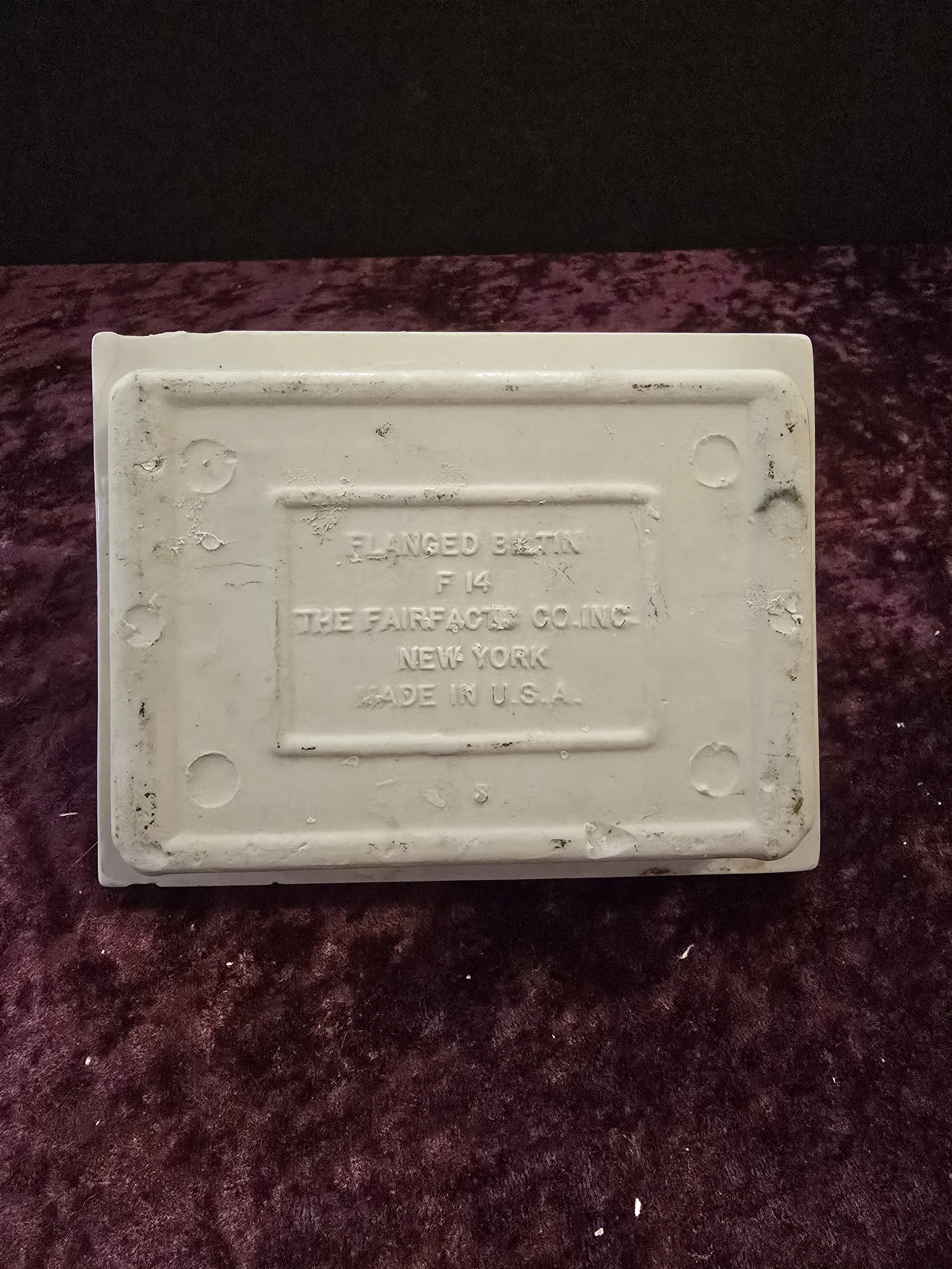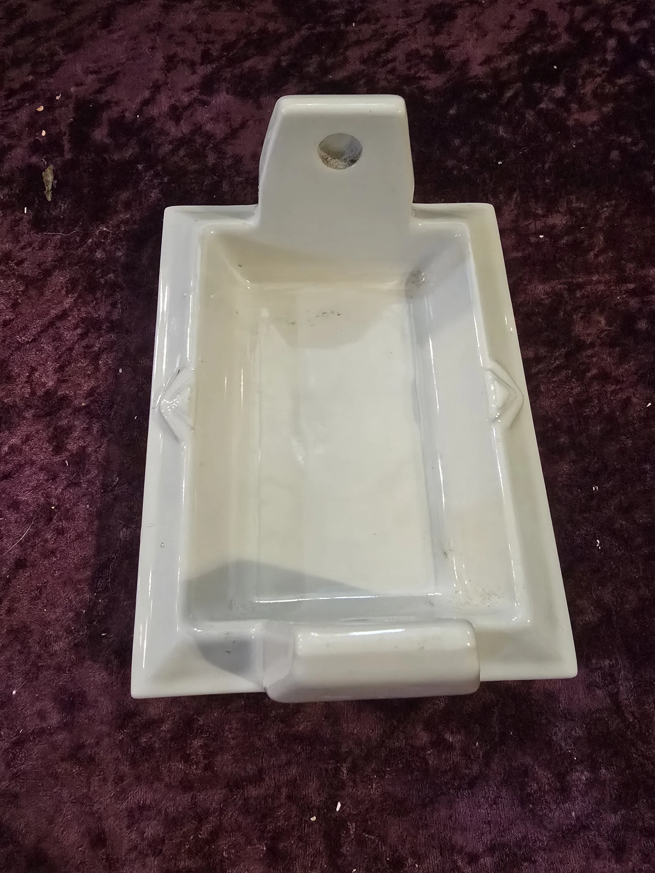 Fabulous Art Deco 1940's porcelain Built-In Toilet paper holder. There are a couple small chips on the inside edge.