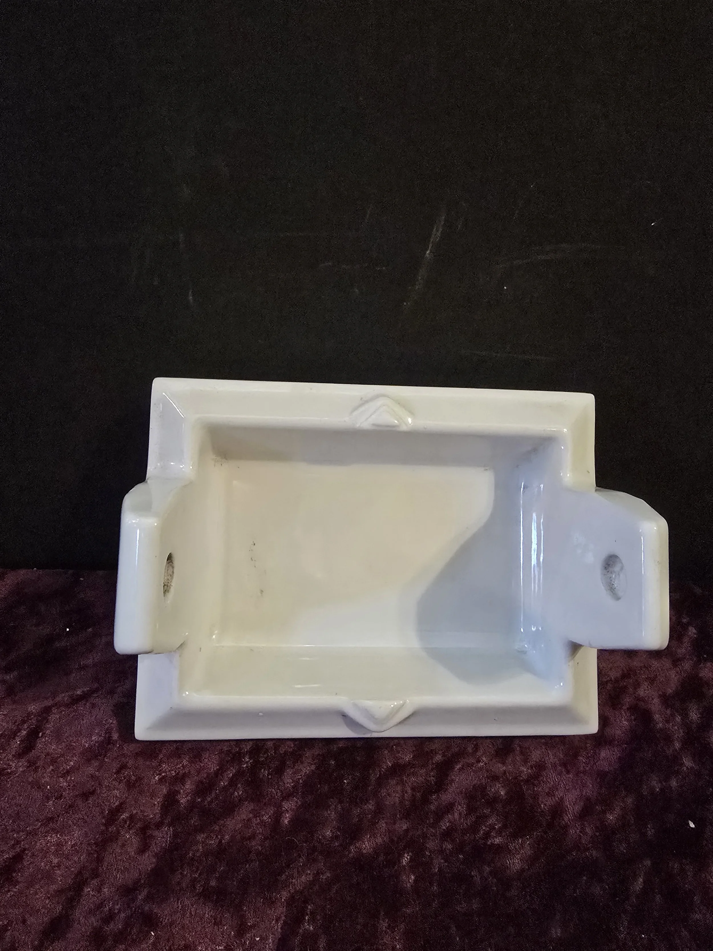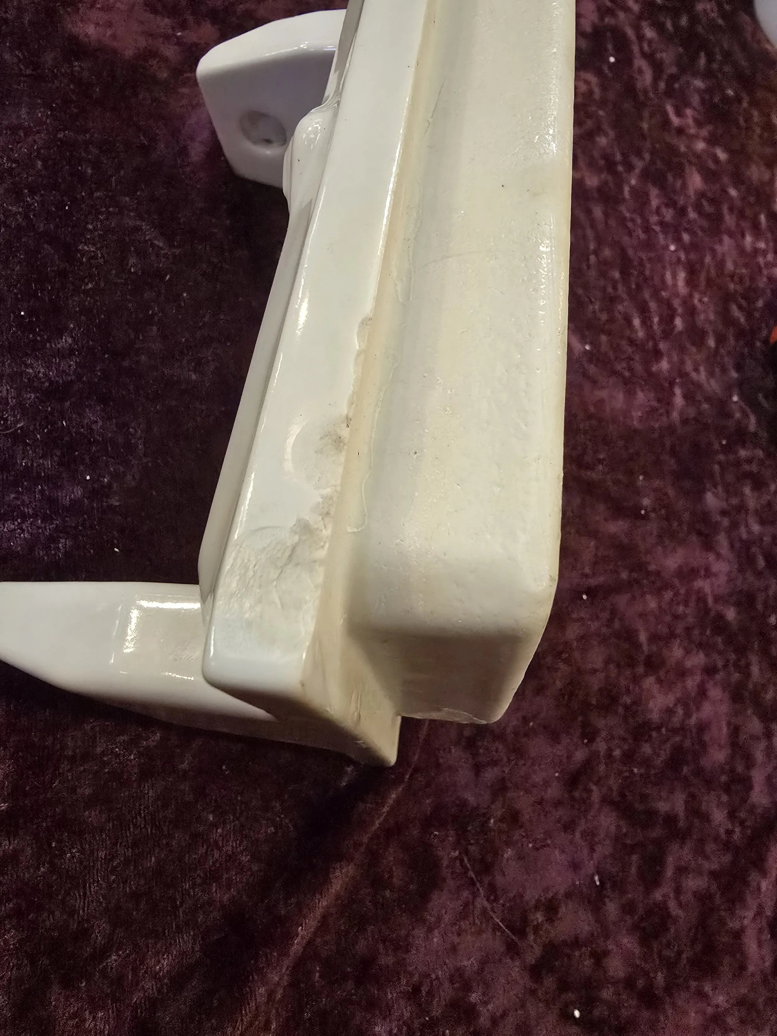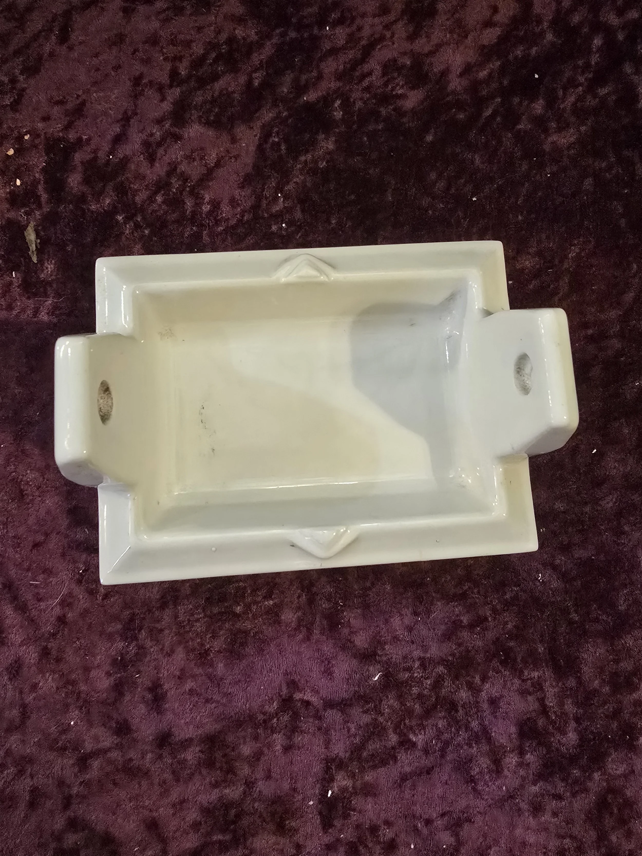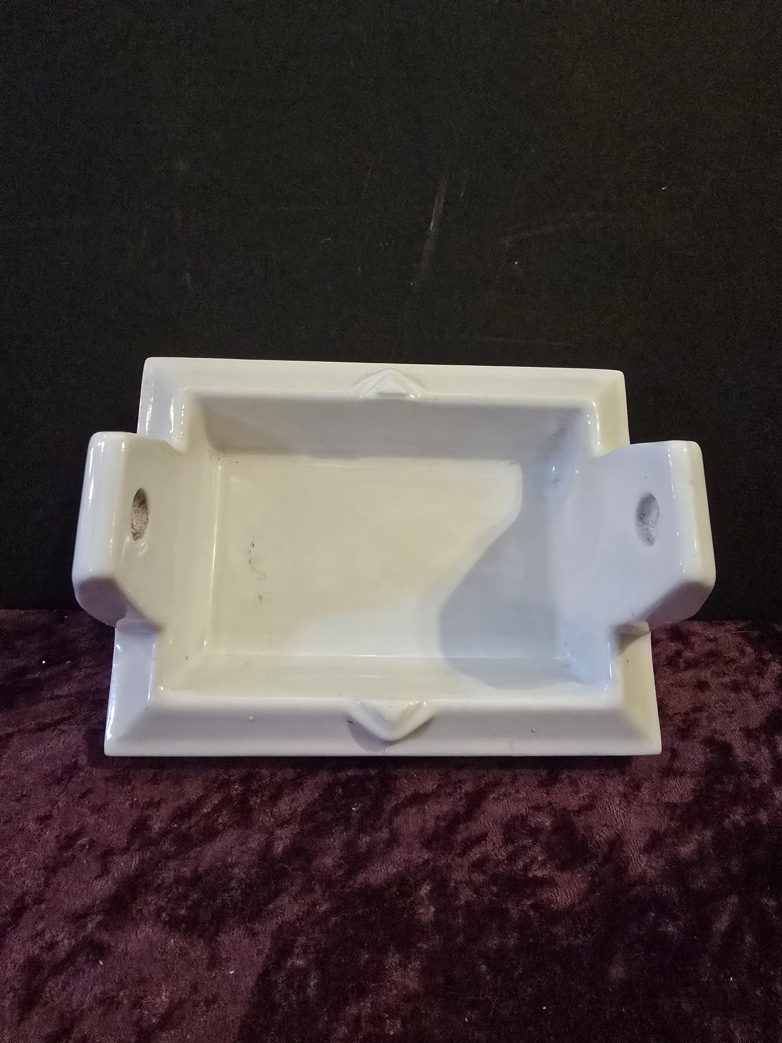 Fabulous Art Deco 1940's porcelain Built-In Toilet paper holder. There are a couple small chips on the inside edge.