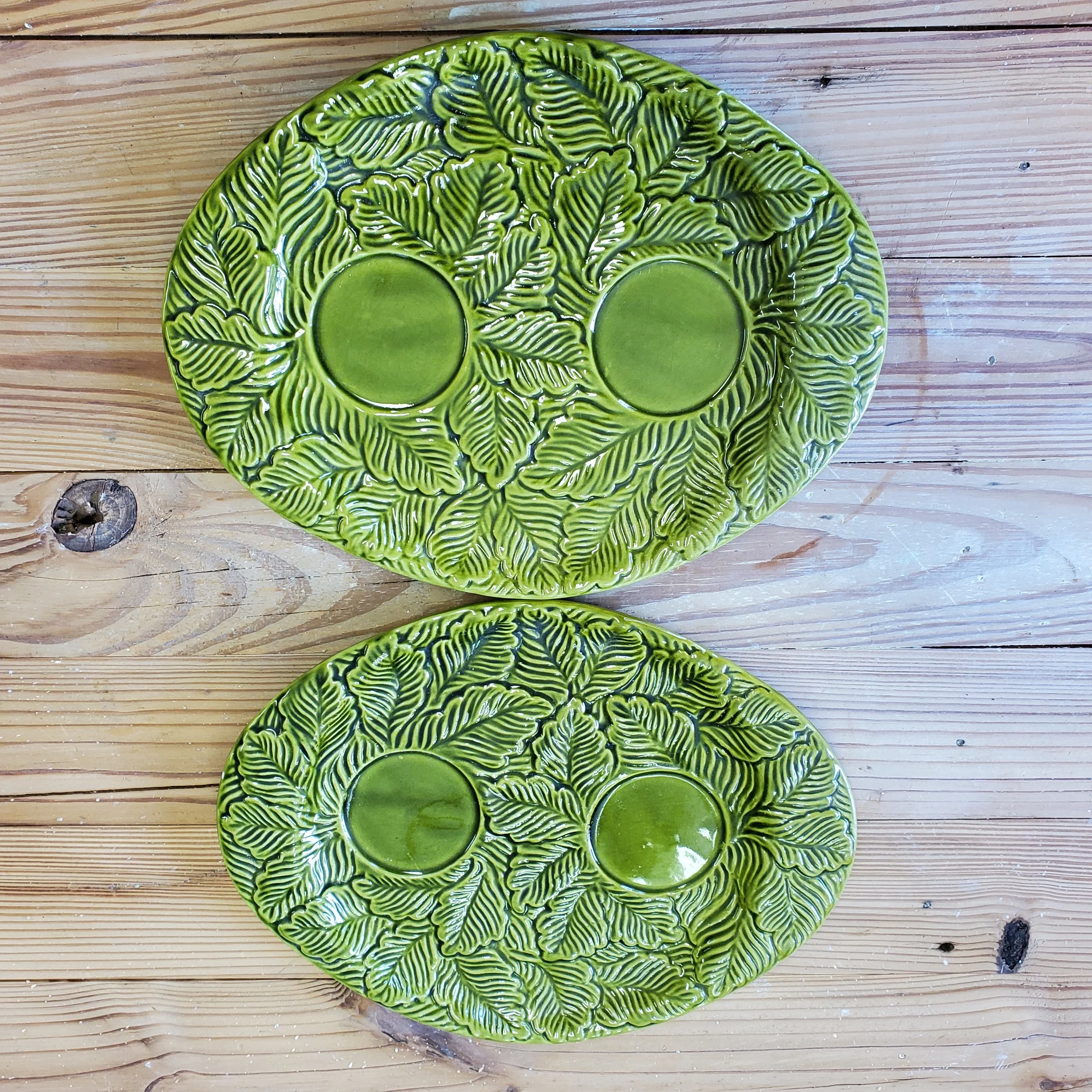 These are funky! Drink your tea in style, with this pair of saucers. Plates are an awesome green color with great texture due to the pattern.