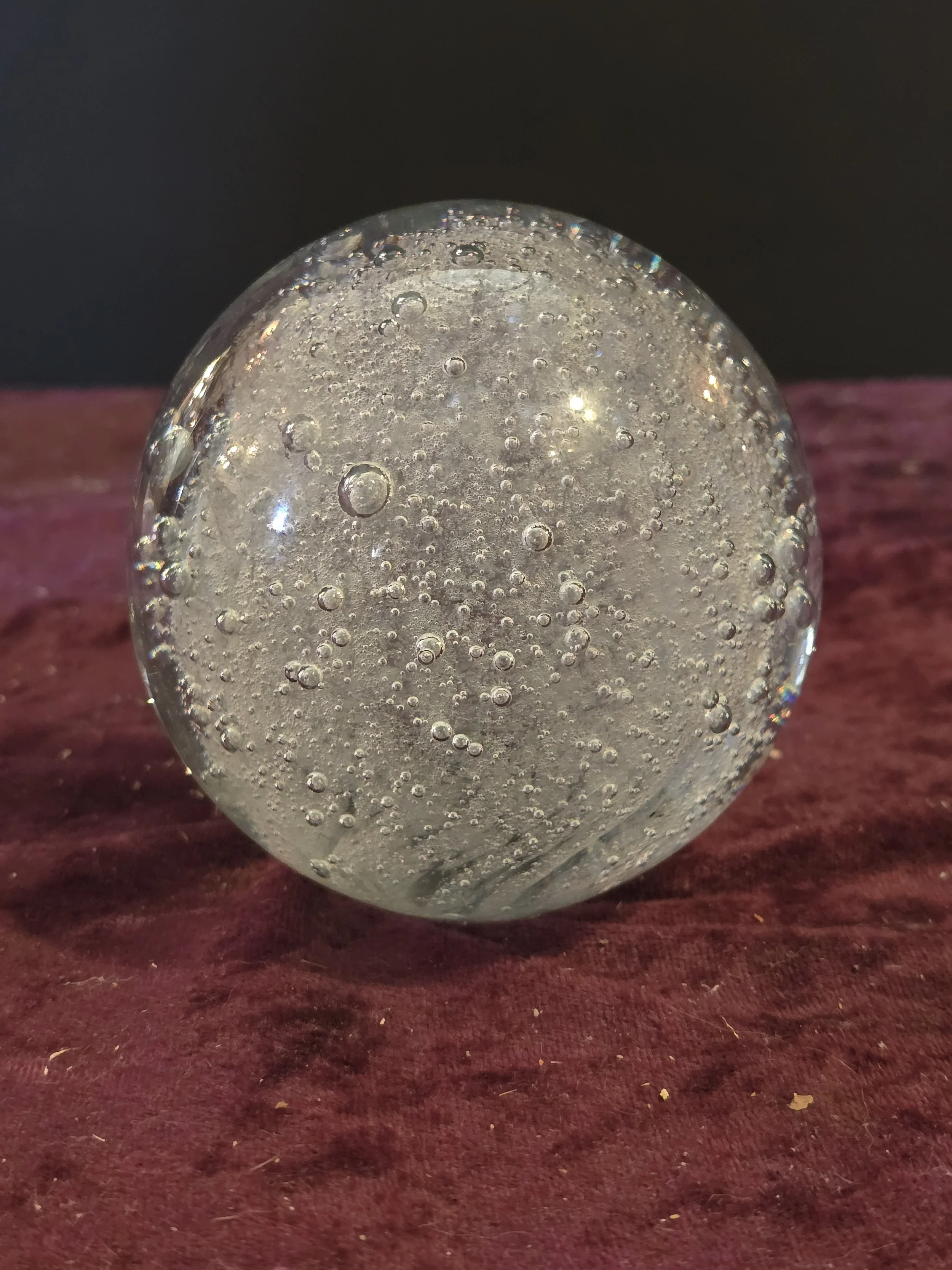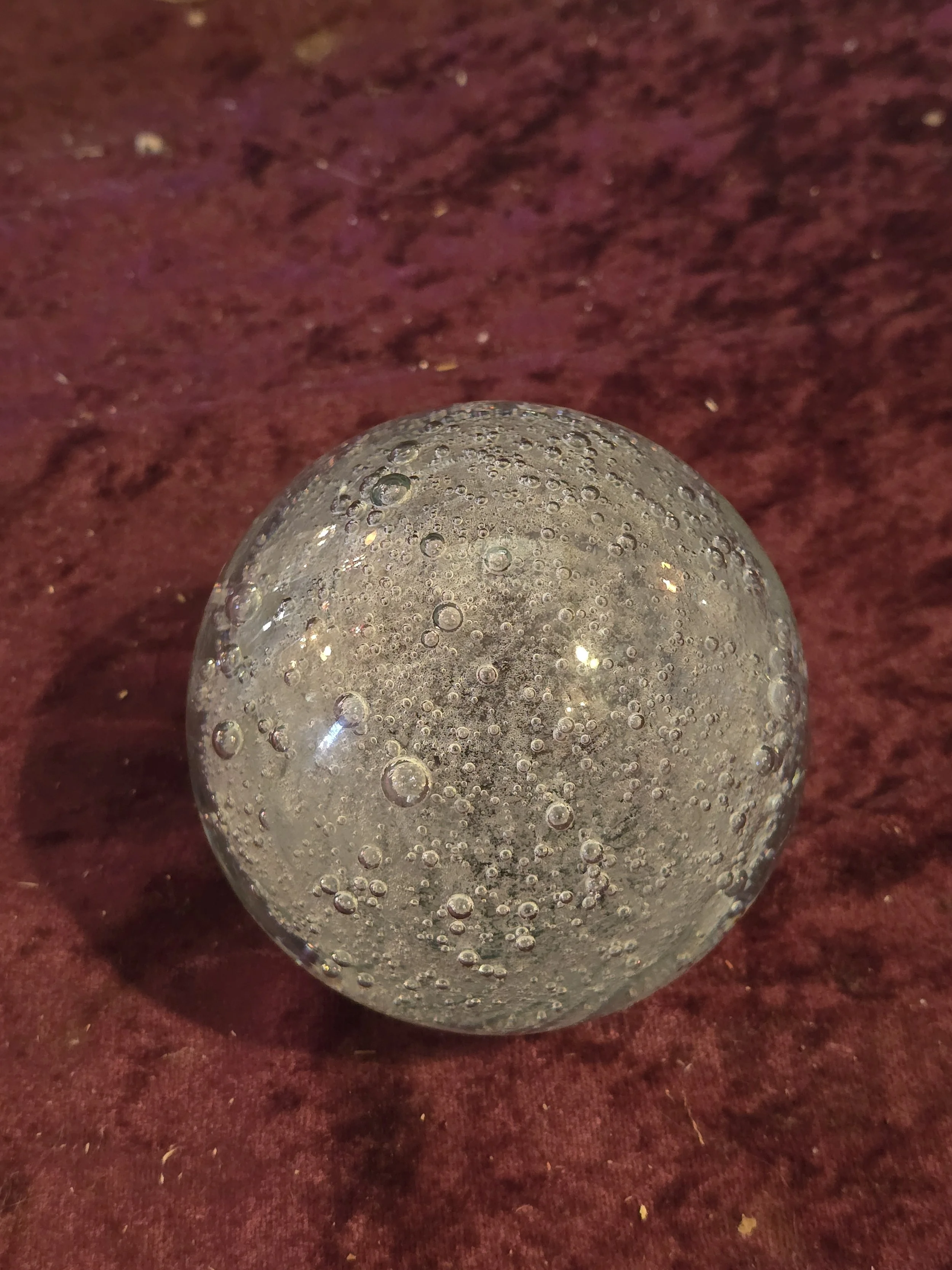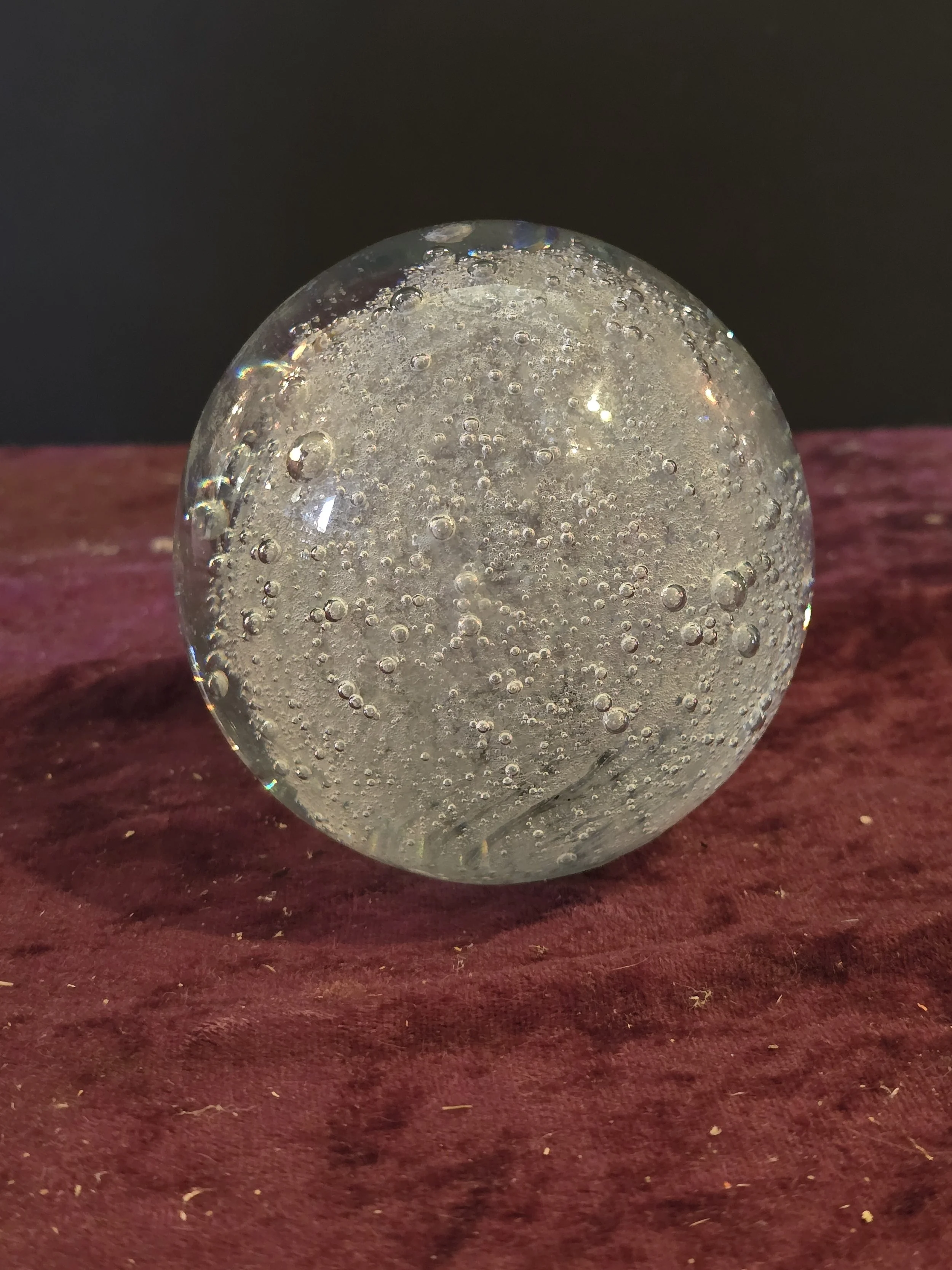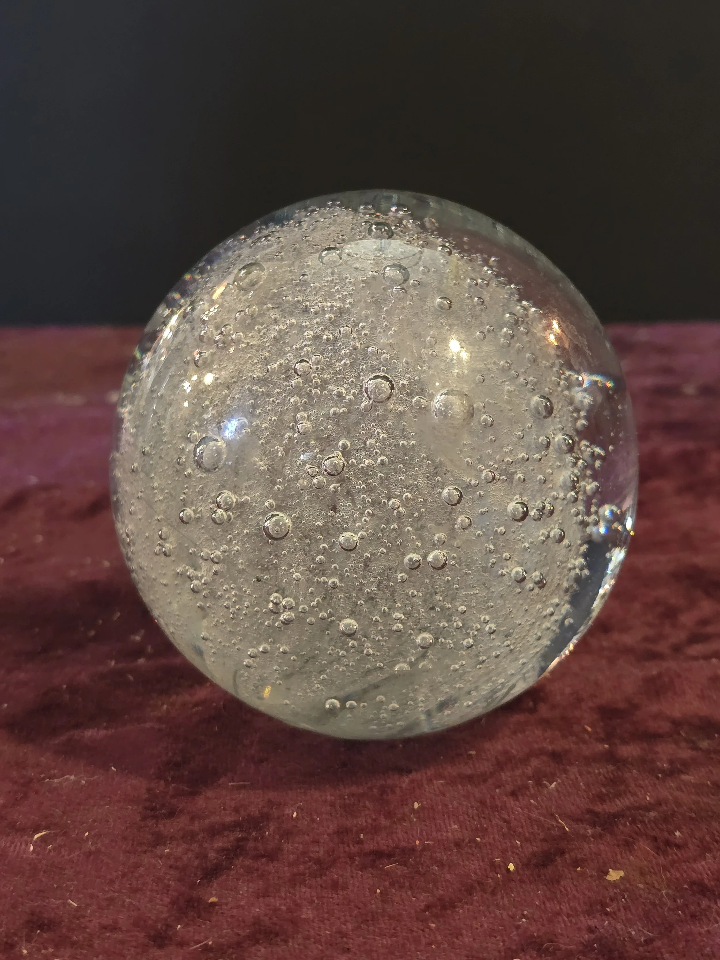 Clear bubble glass paperweight. Its hefty and gorgeous.