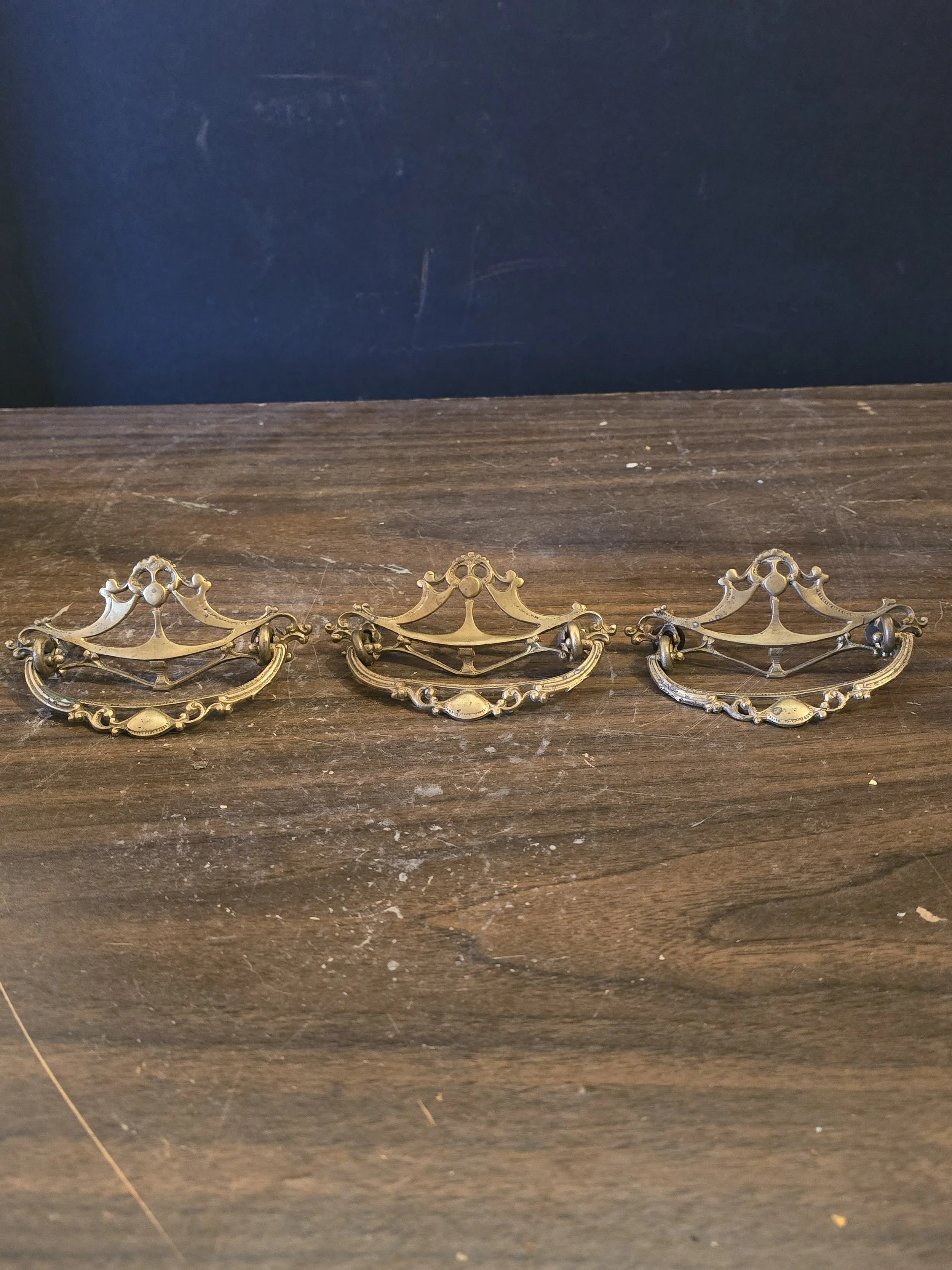 Beautiful 1800's cast brass furniture pulls. Sold as a set of 3
