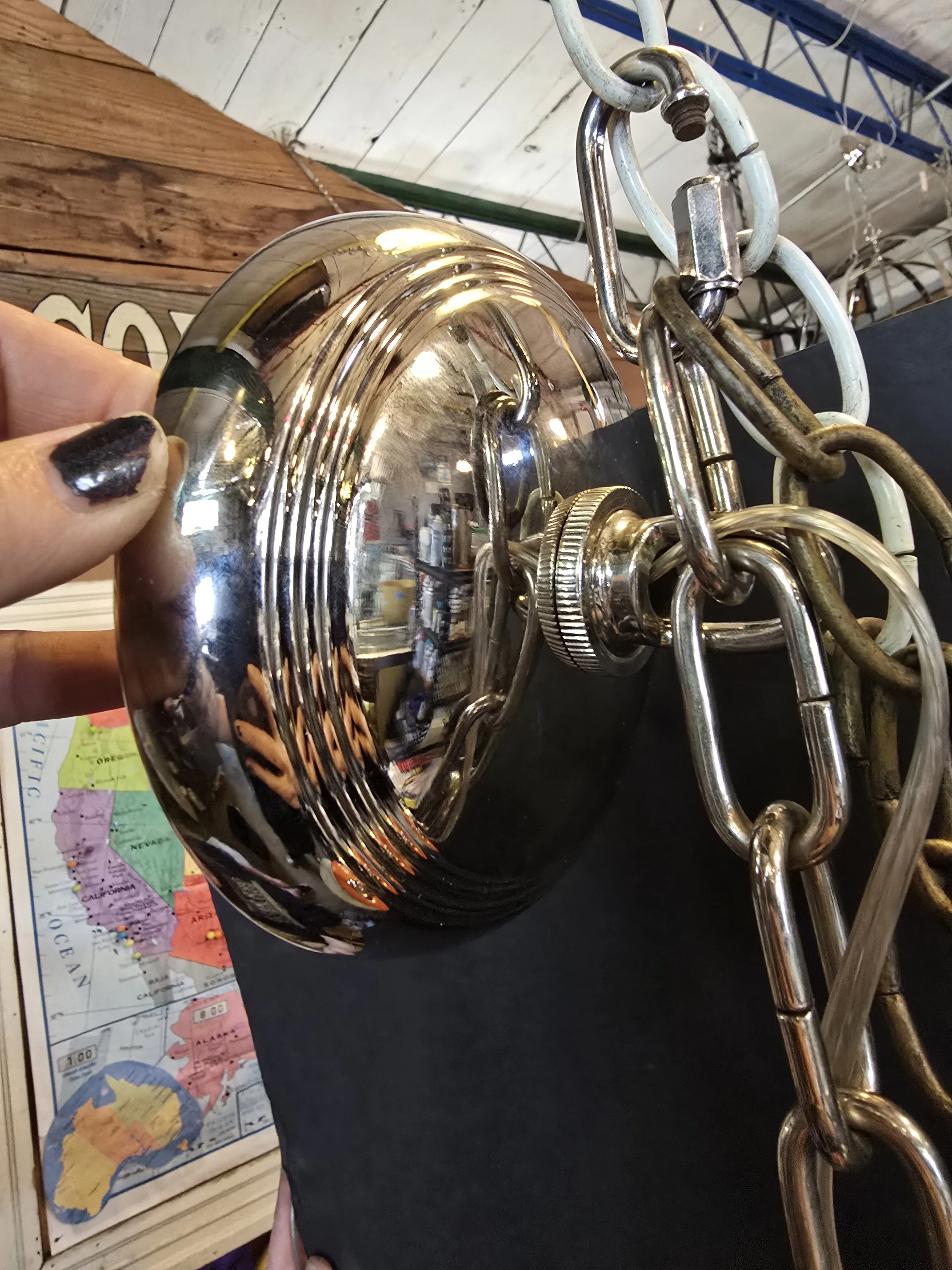 This fixture is 8” diameter x 18” long (32” long with chain)