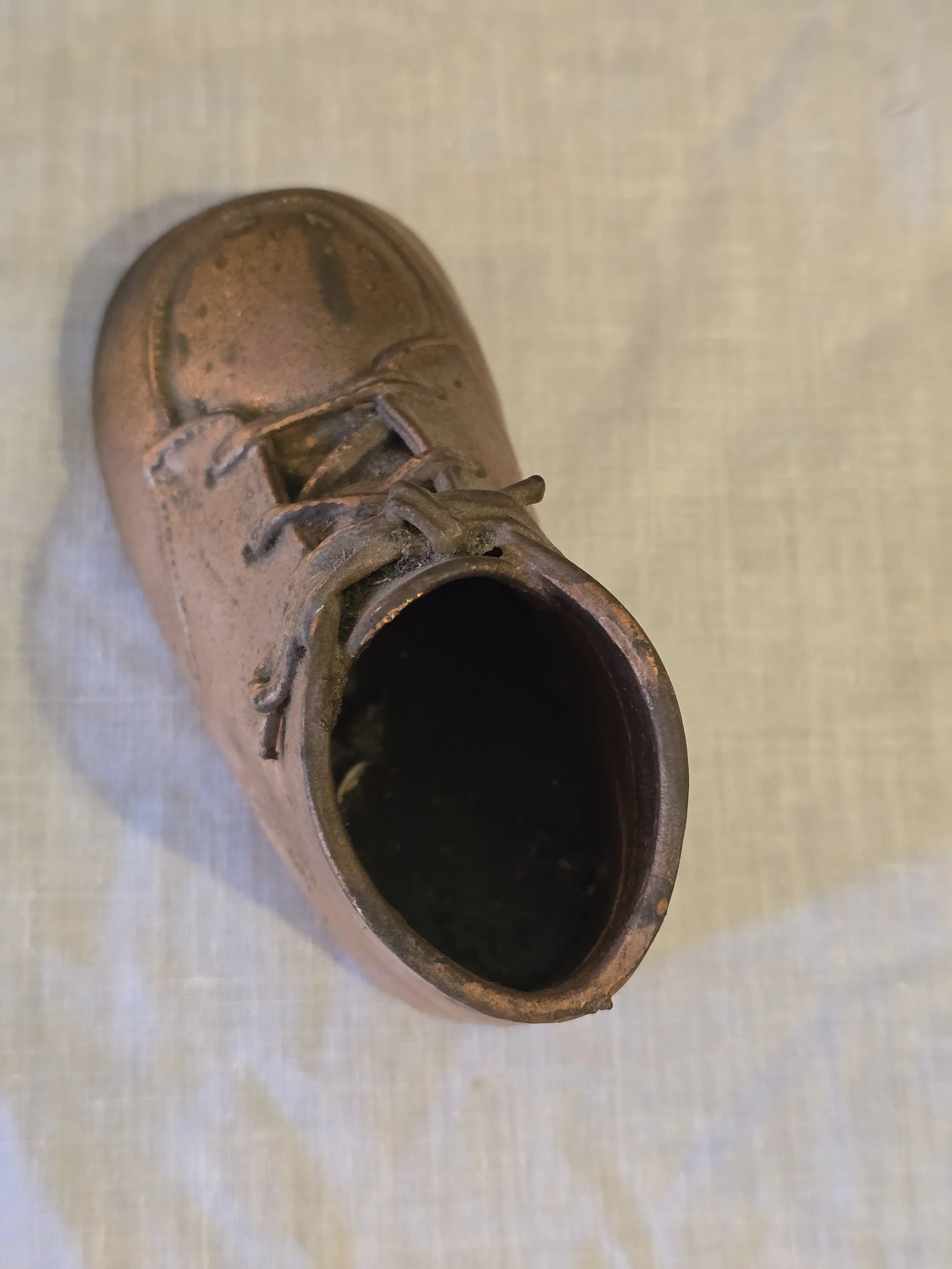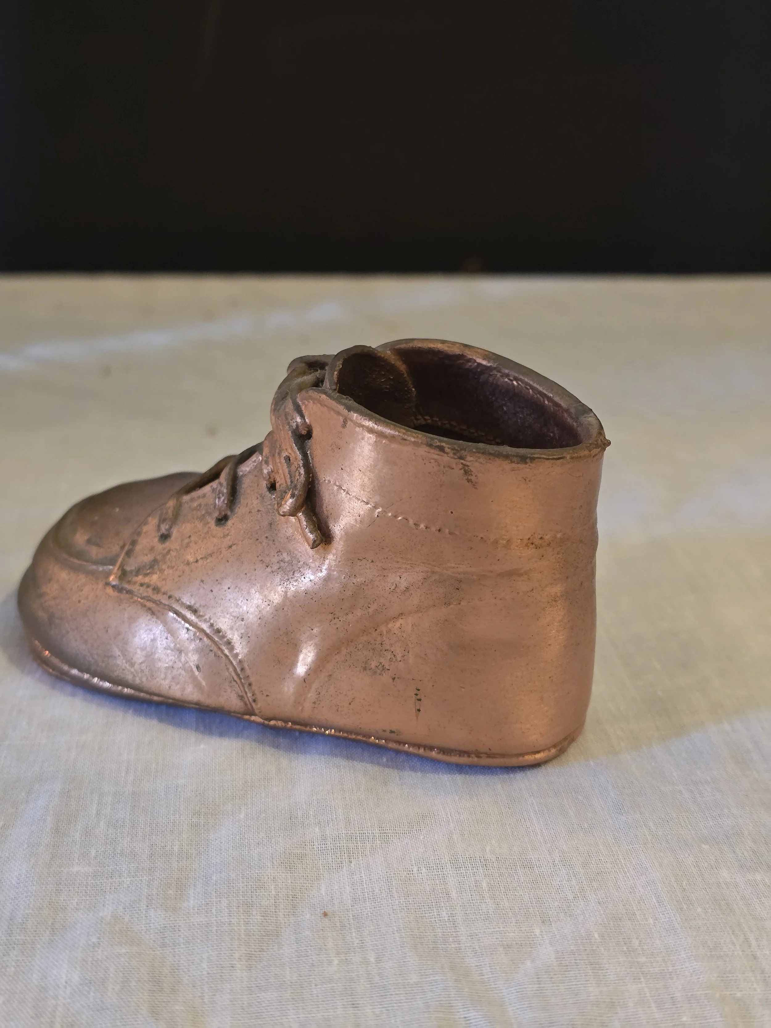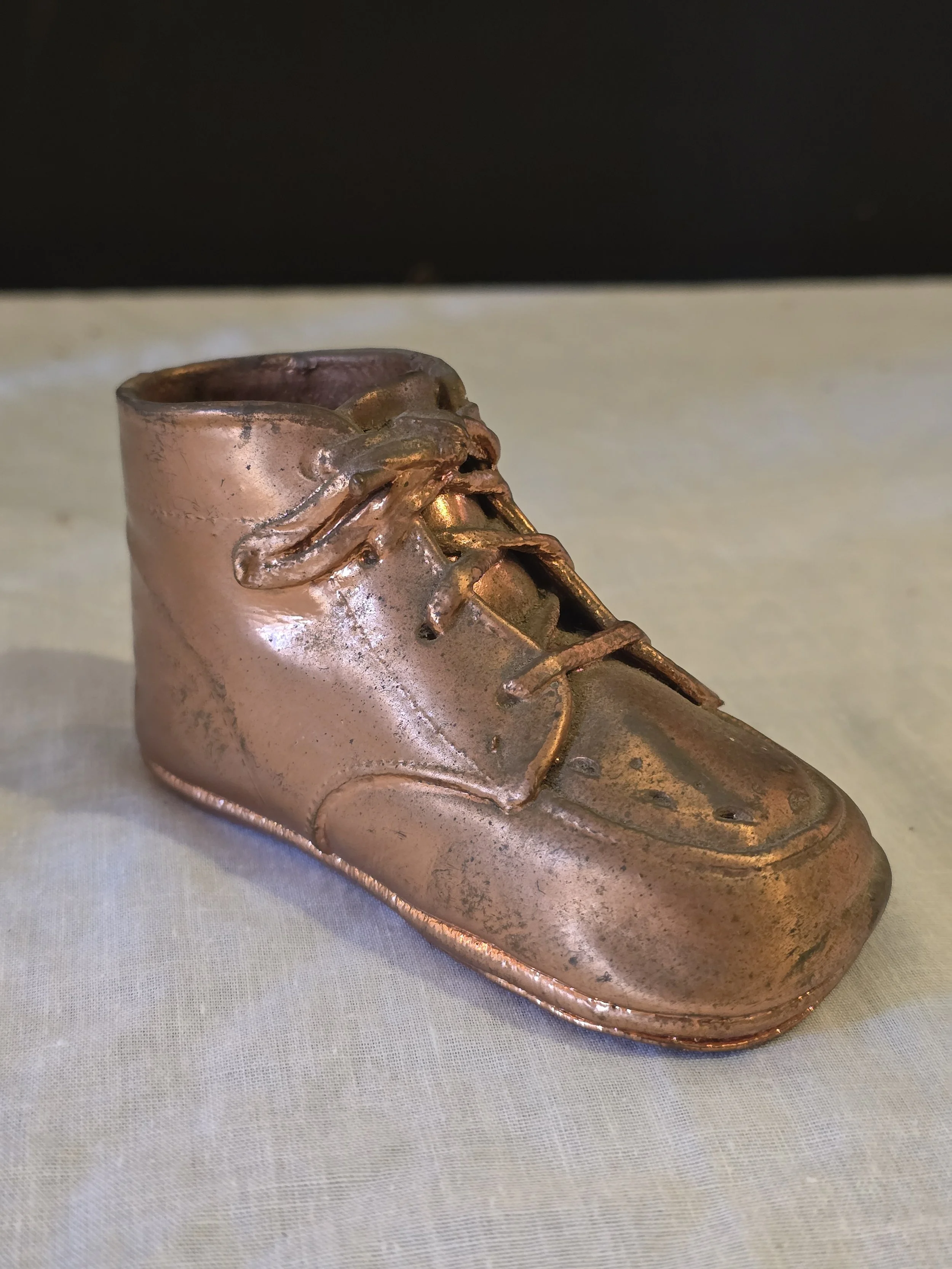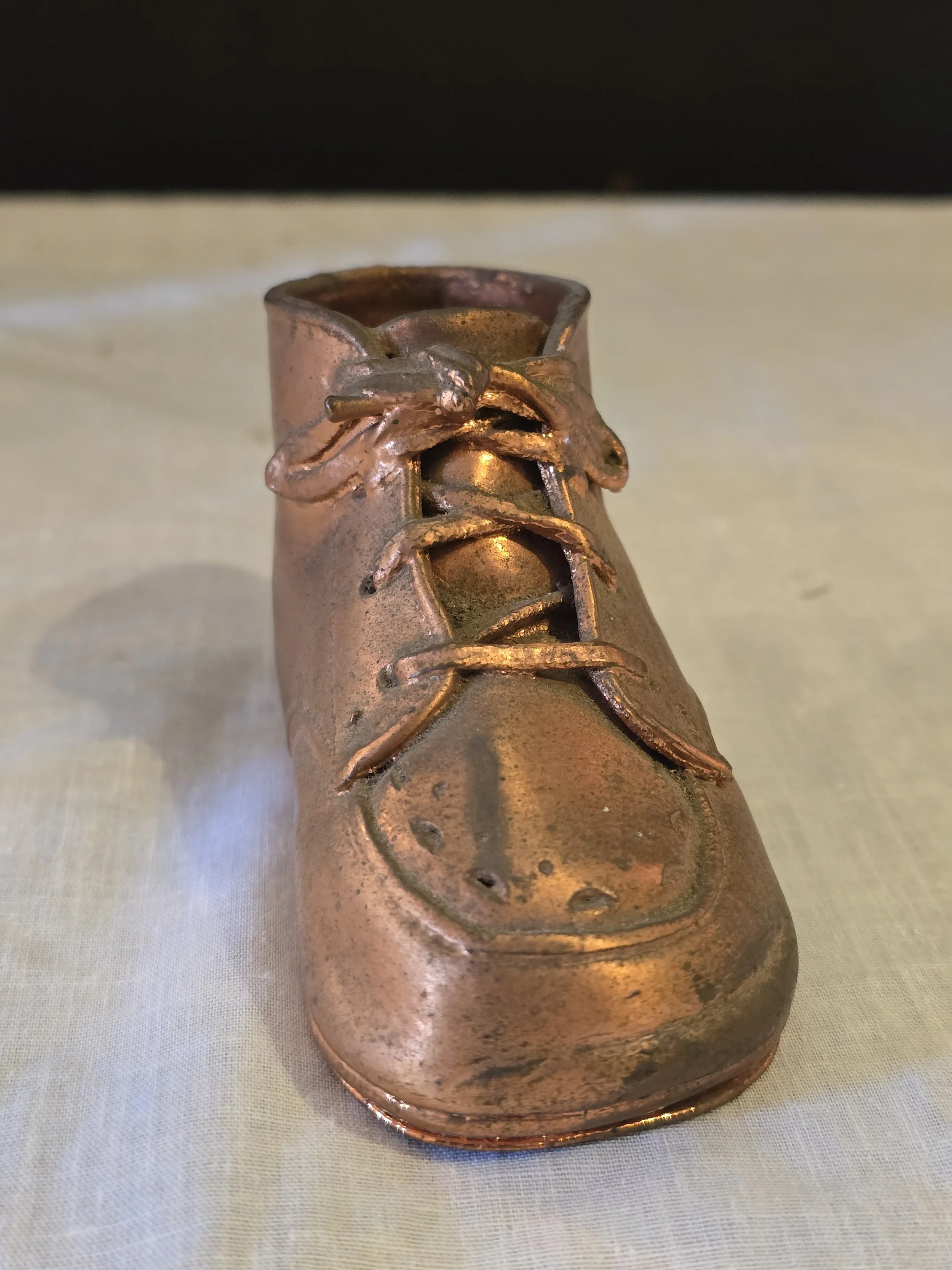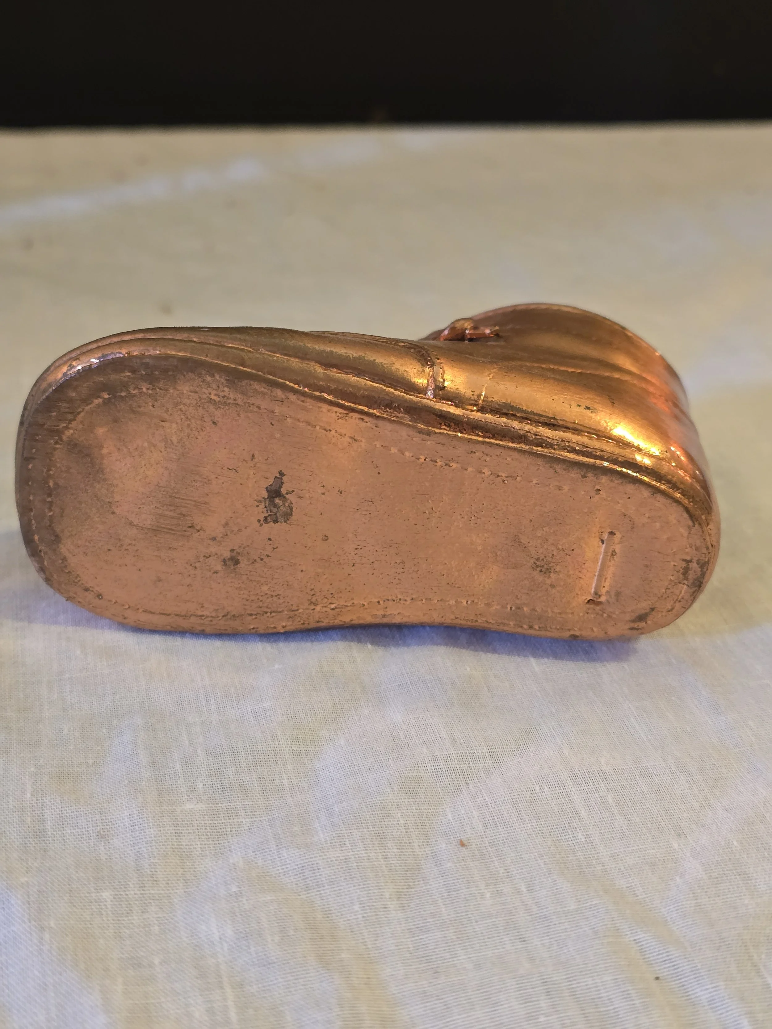 Vintage copper plated baby shoe. Its so cute.