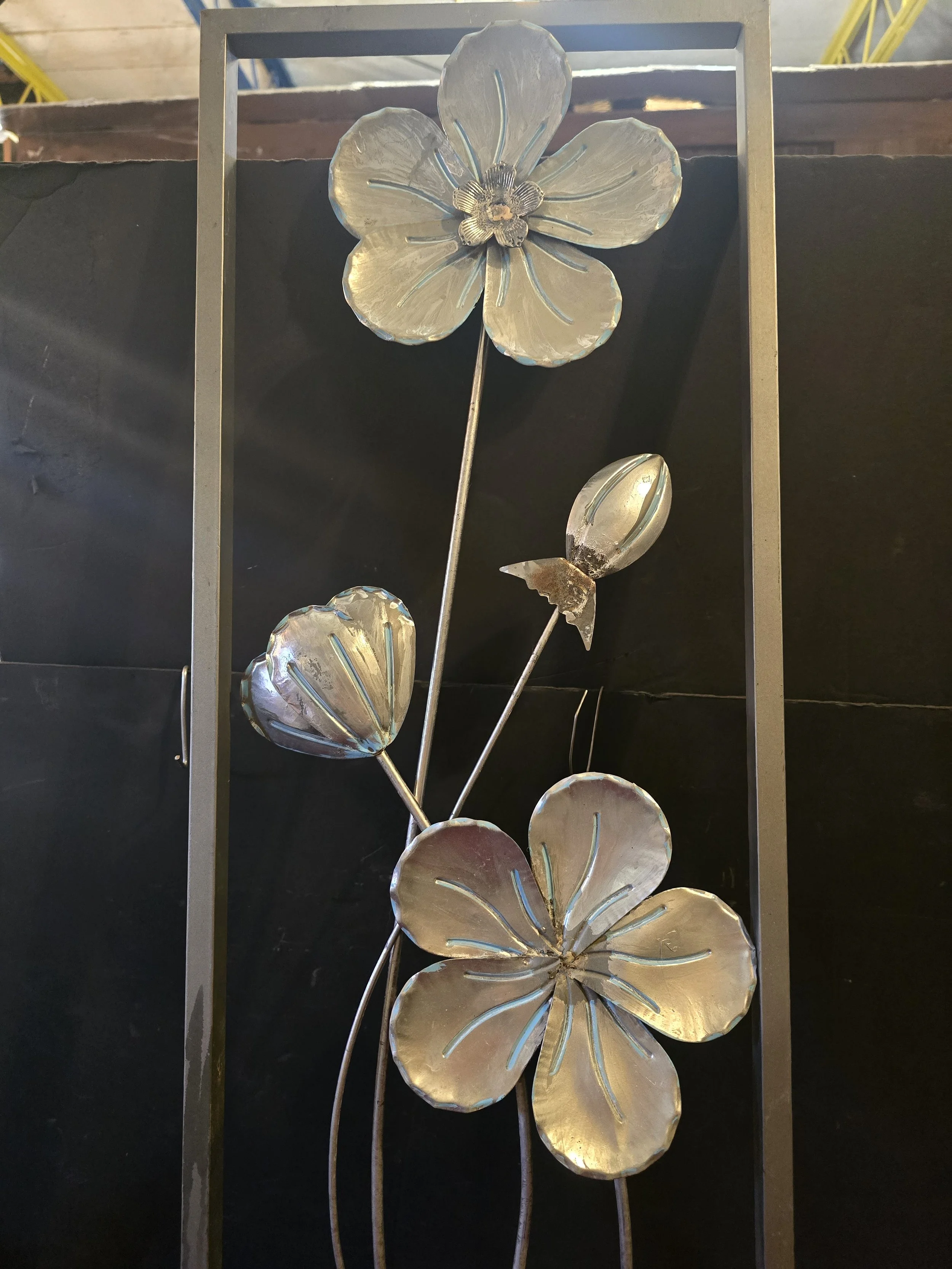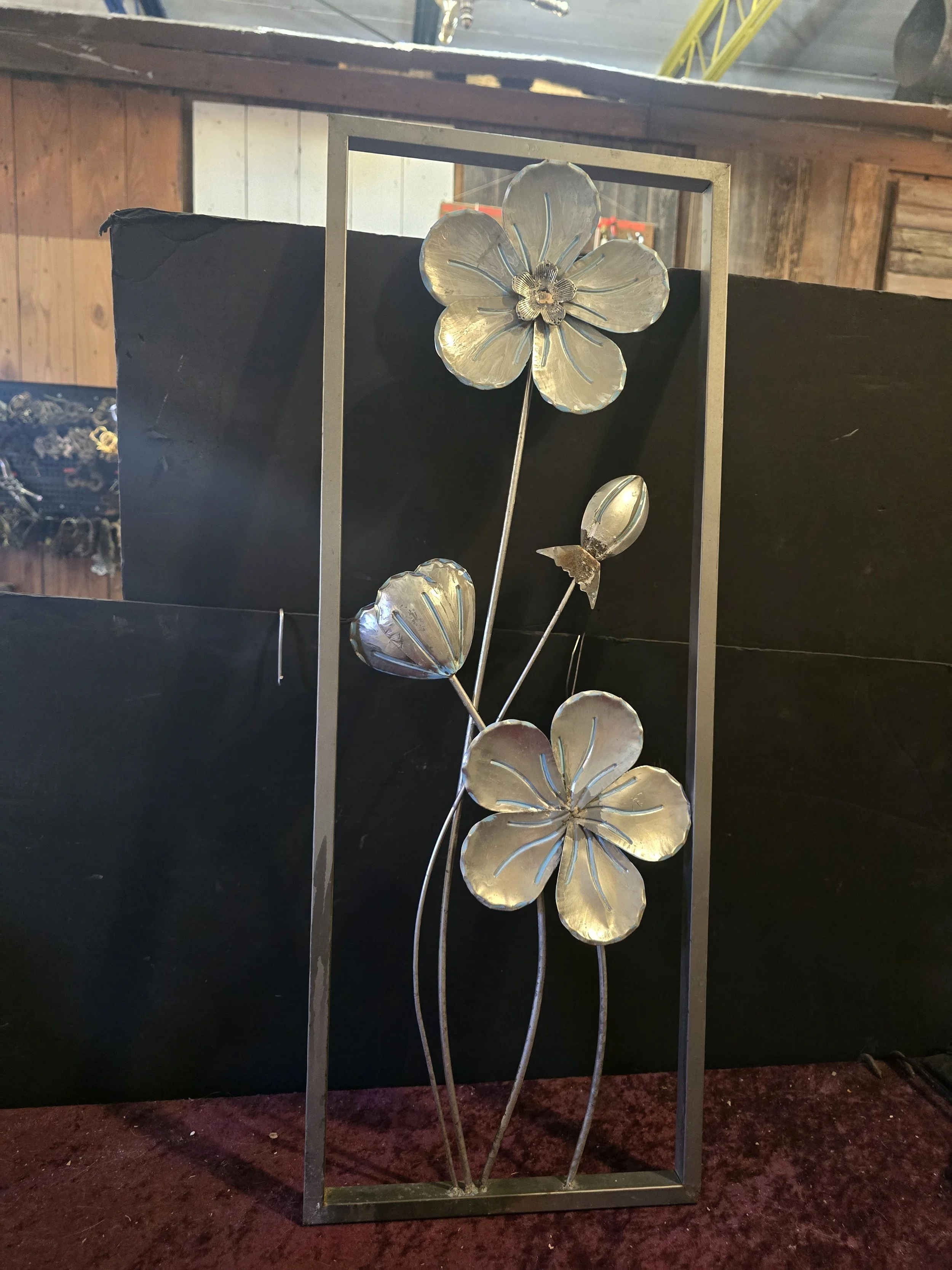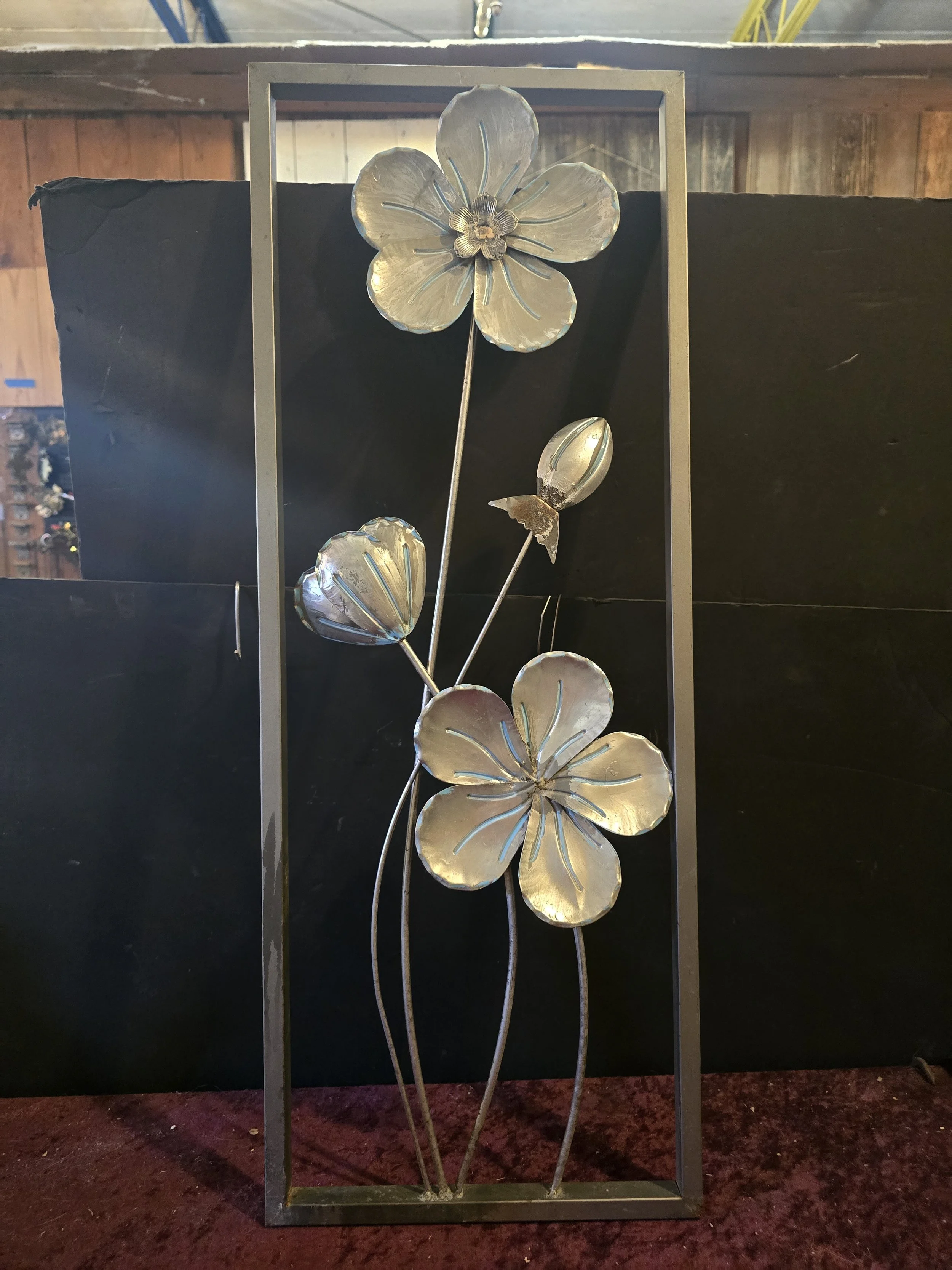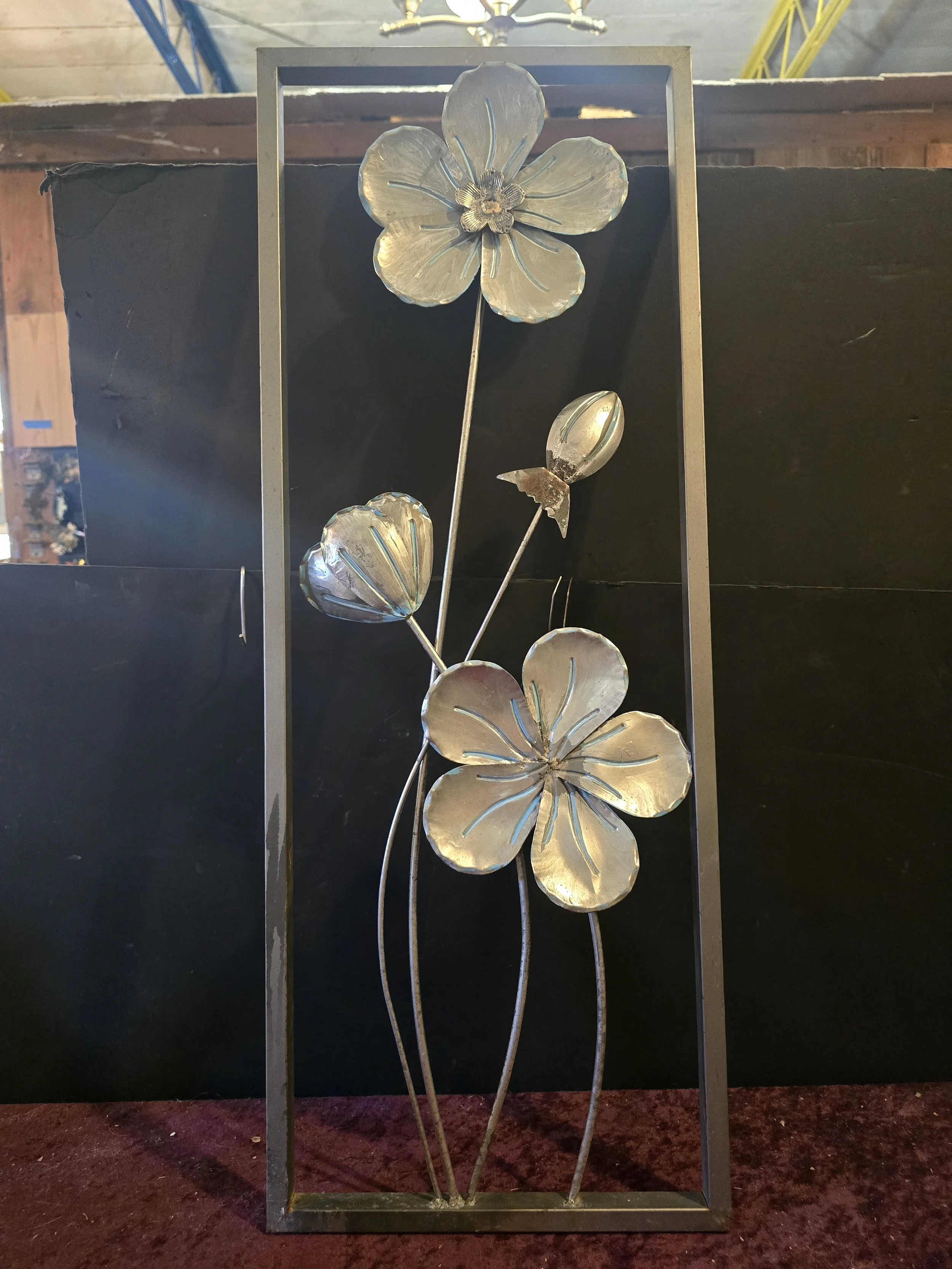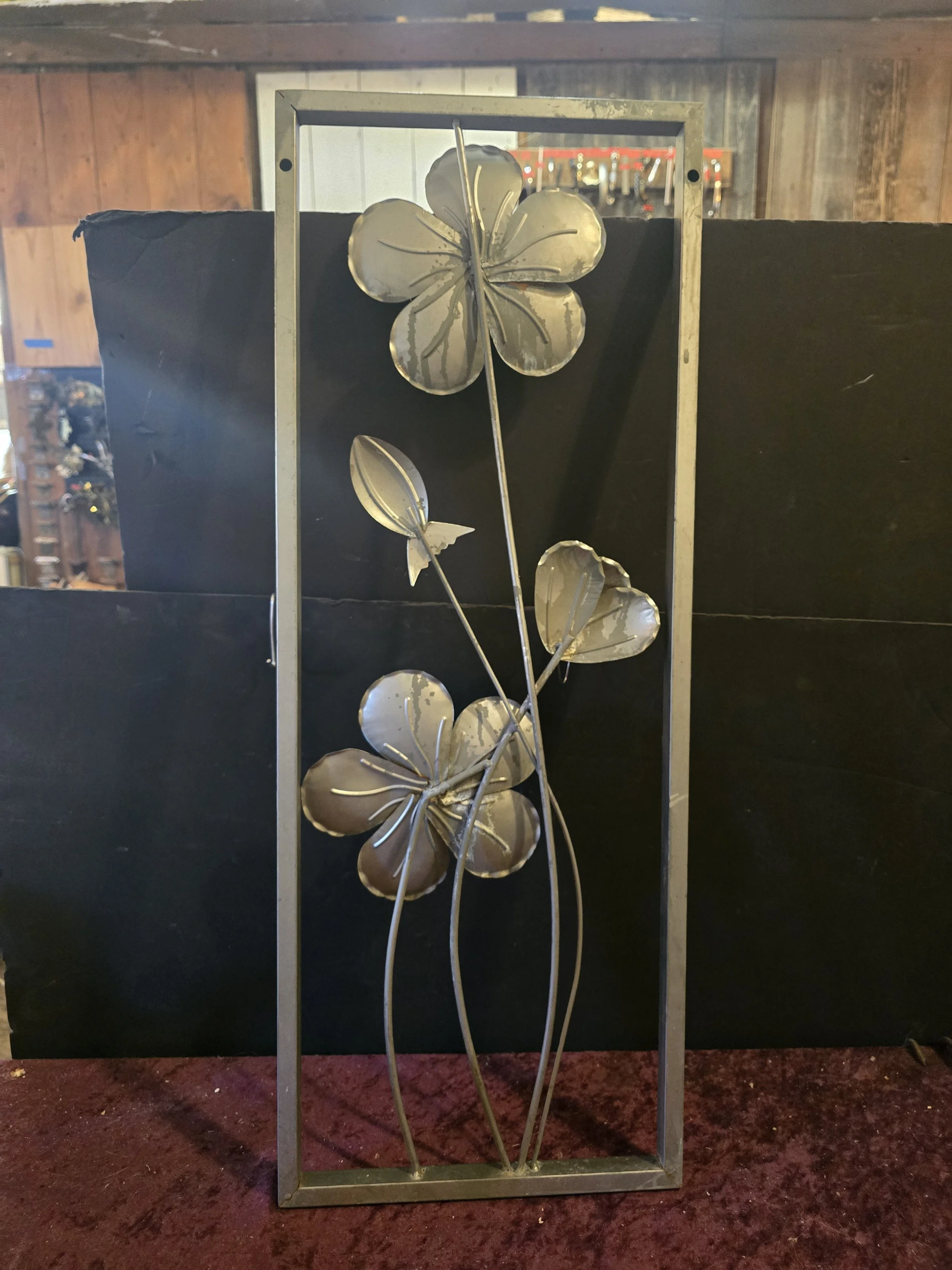 Decorative metal panel, could be hung on the wall or be used in a garden.