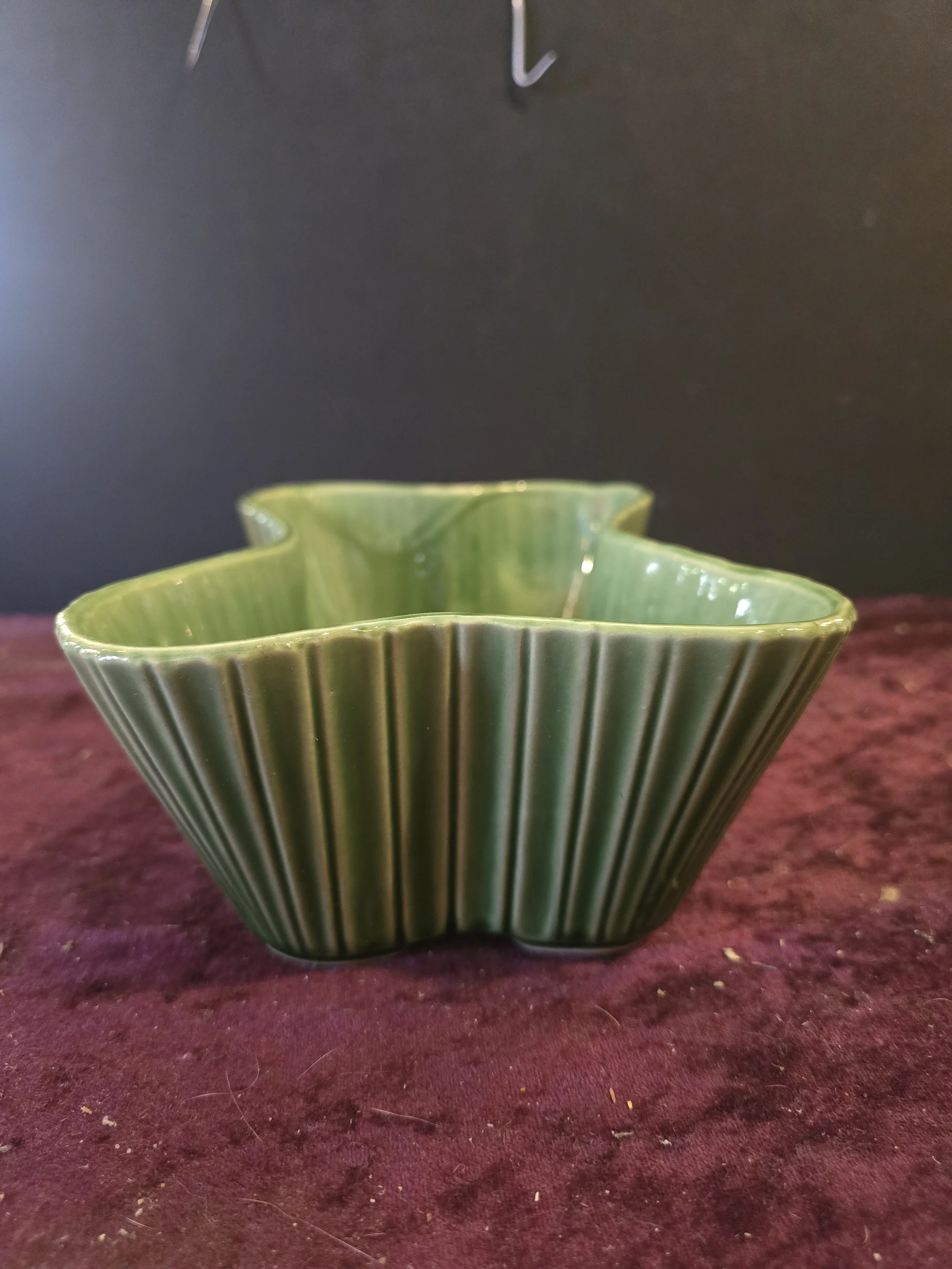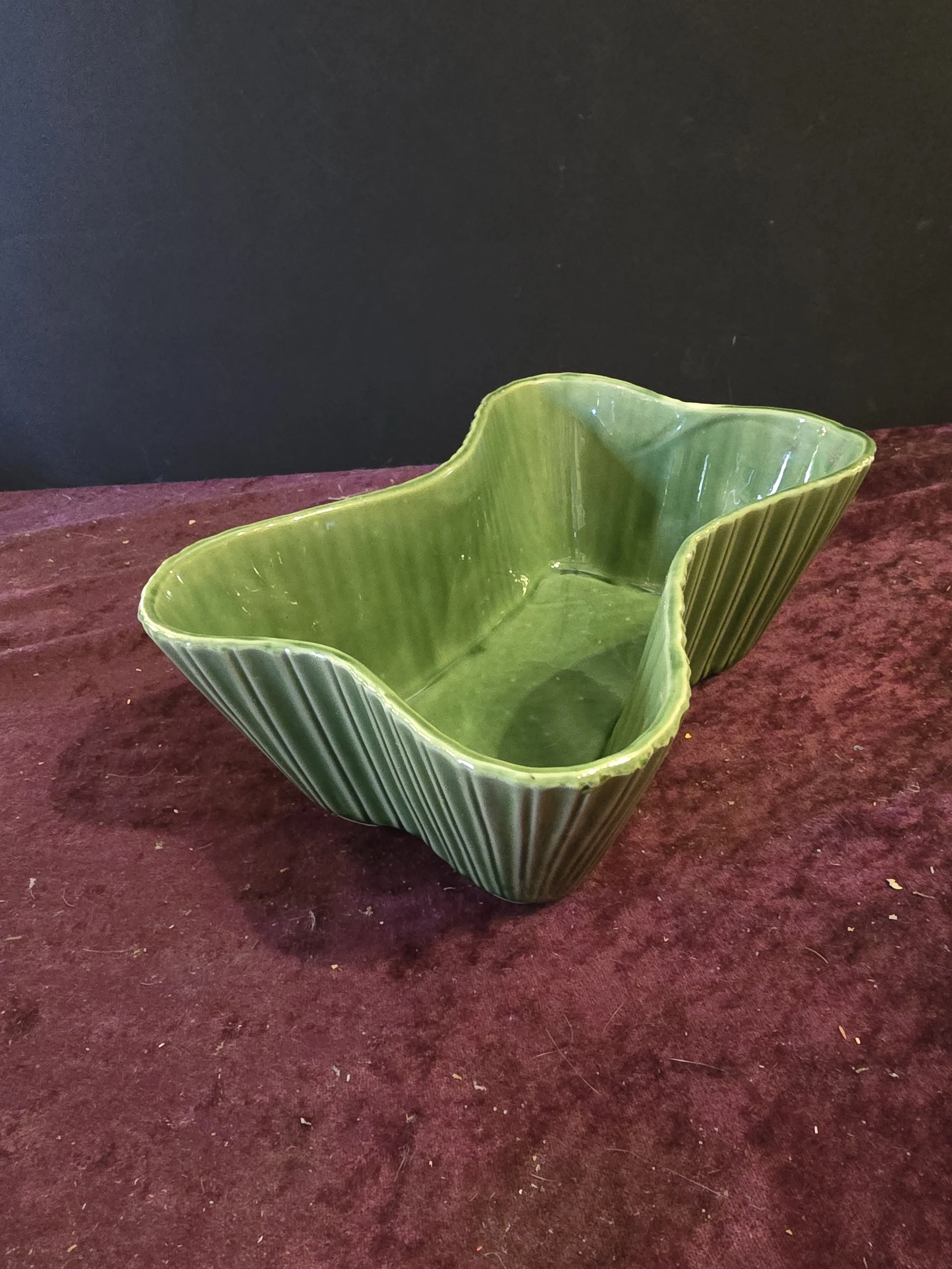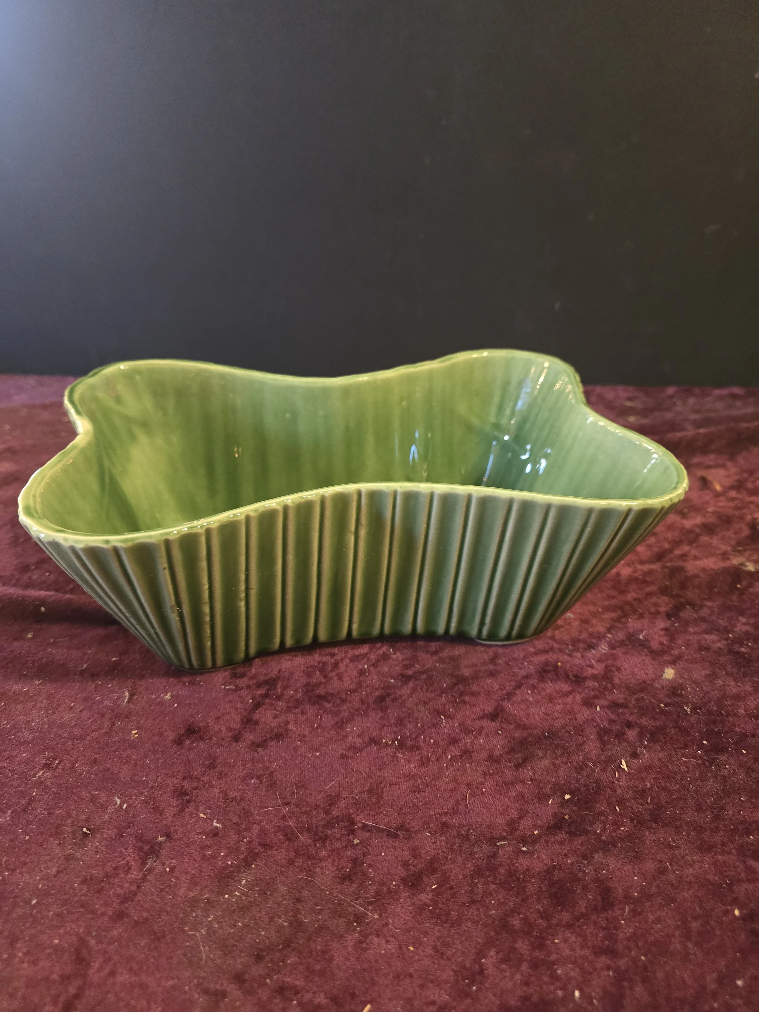 Vintage green ribbed ceramic bowl. Stamped USA 153 on the bottom