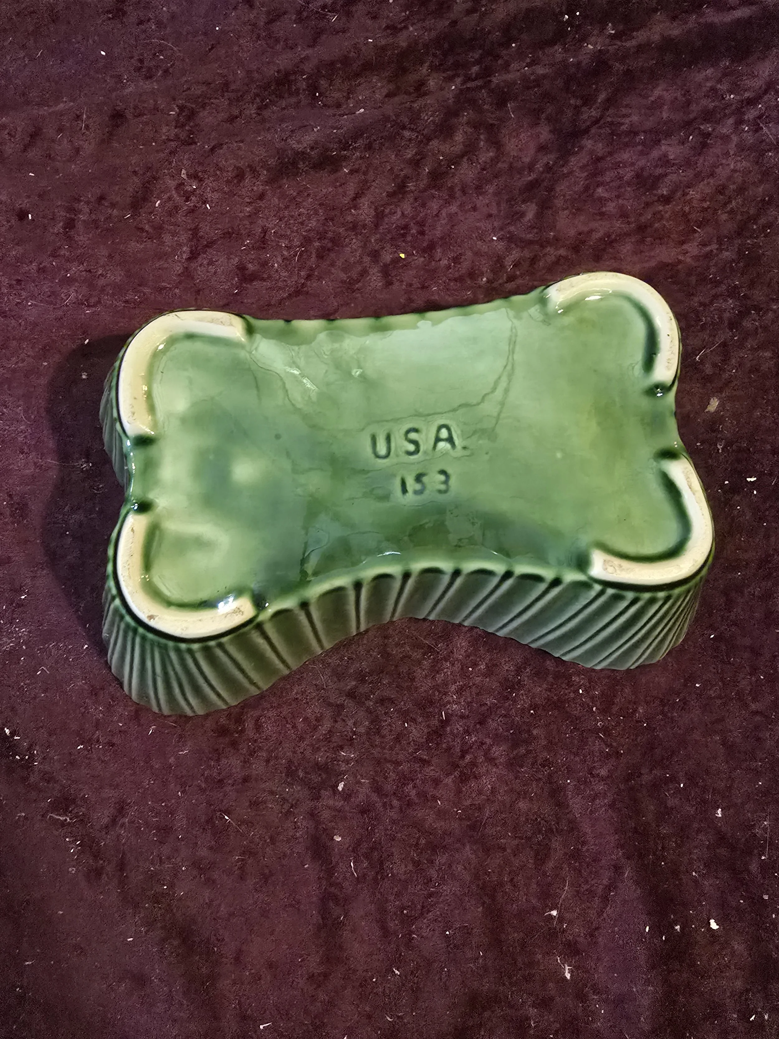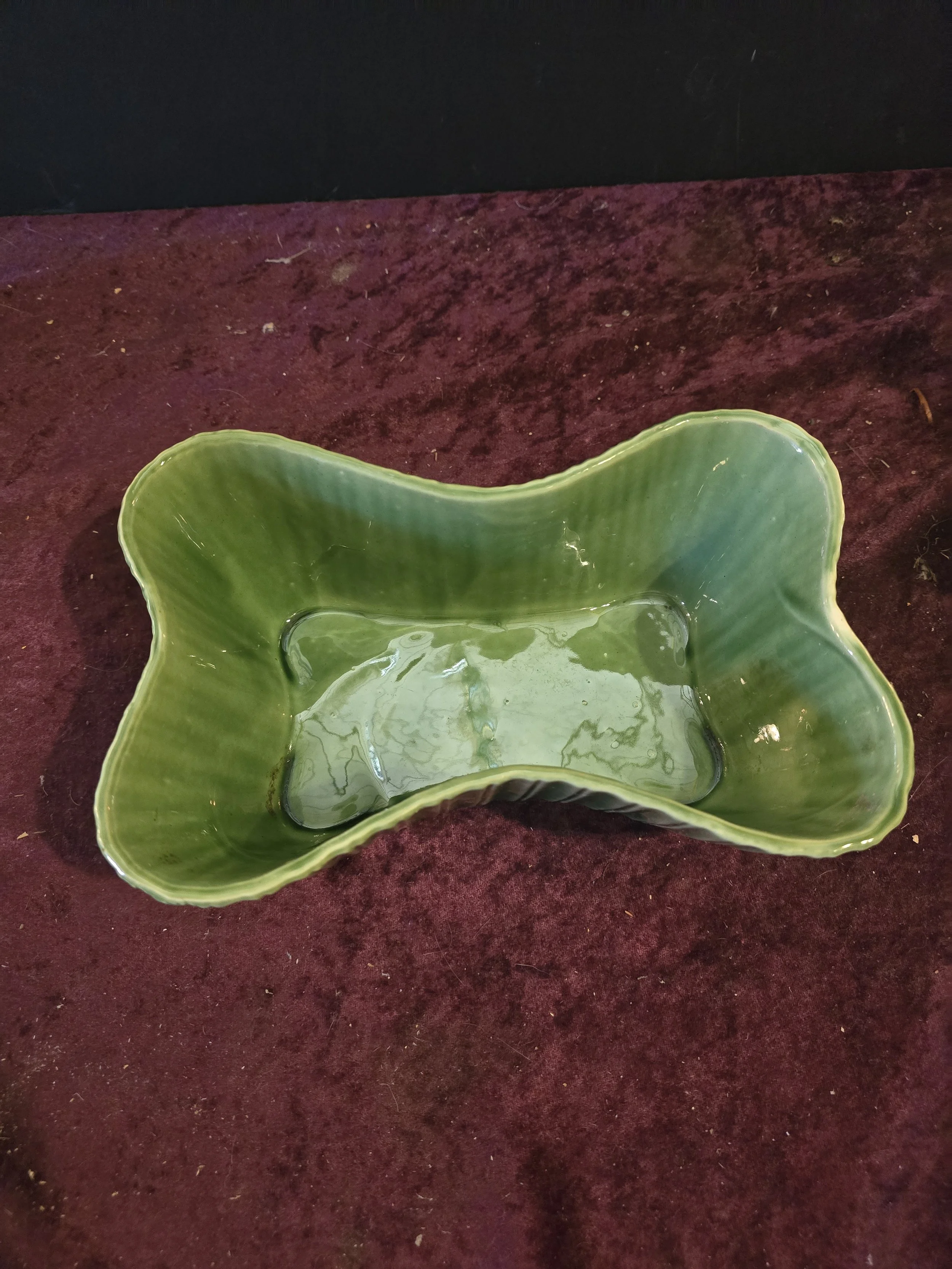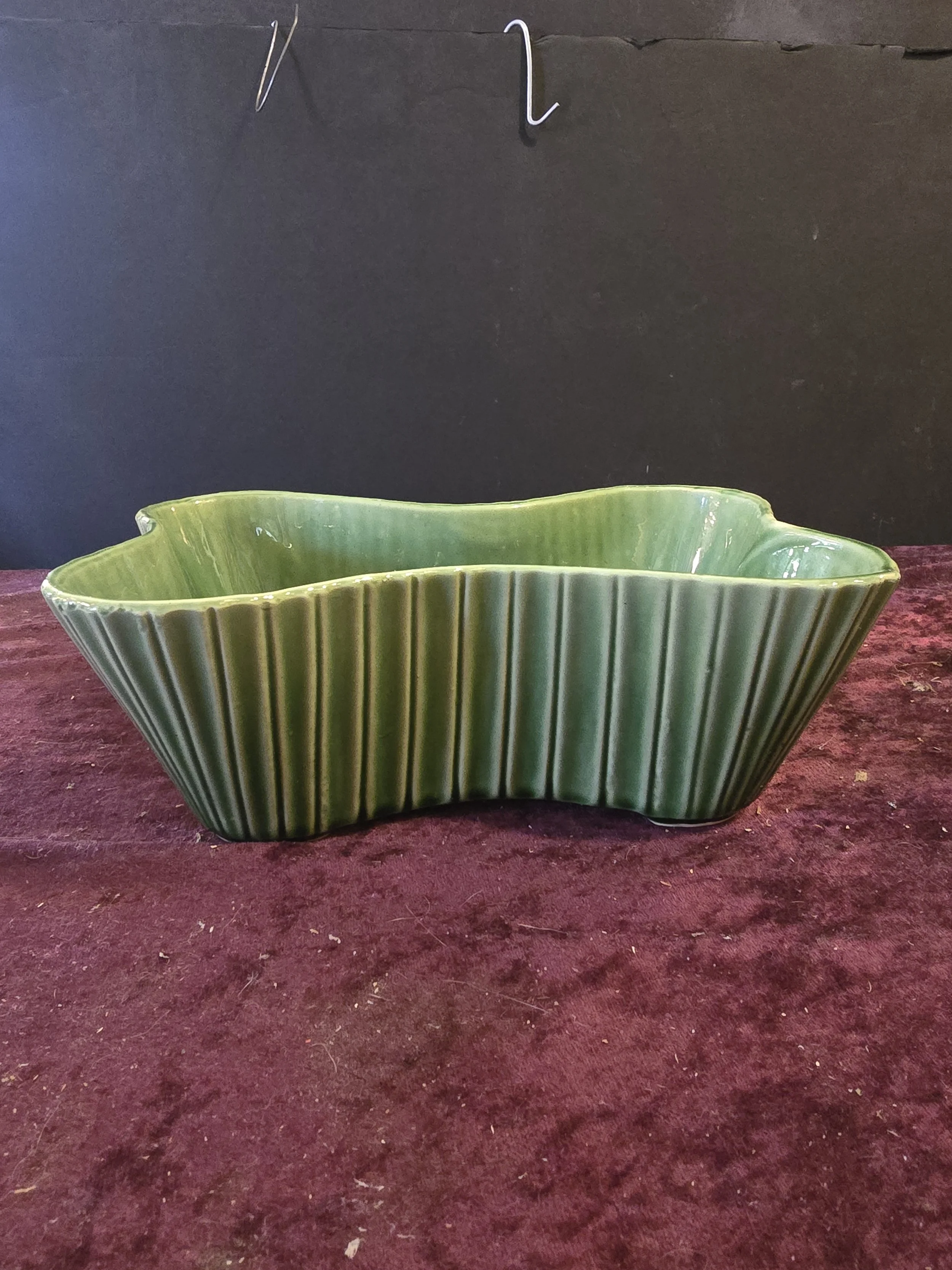 Vintage green ribbed ceramic bowl. Stamped USA 153 on the bottom