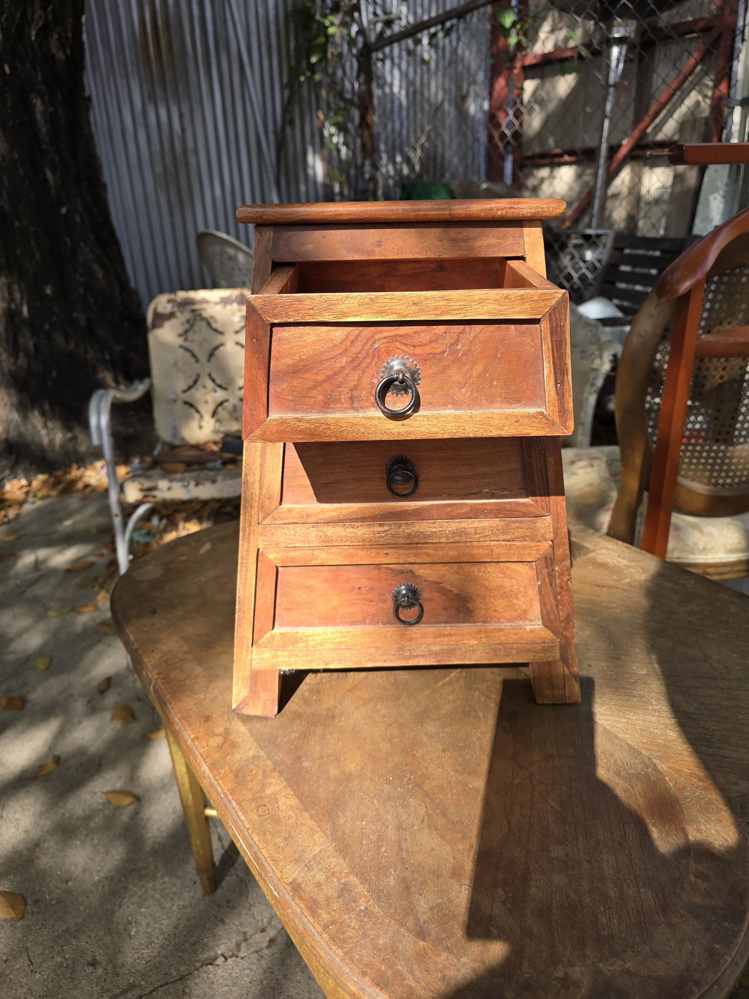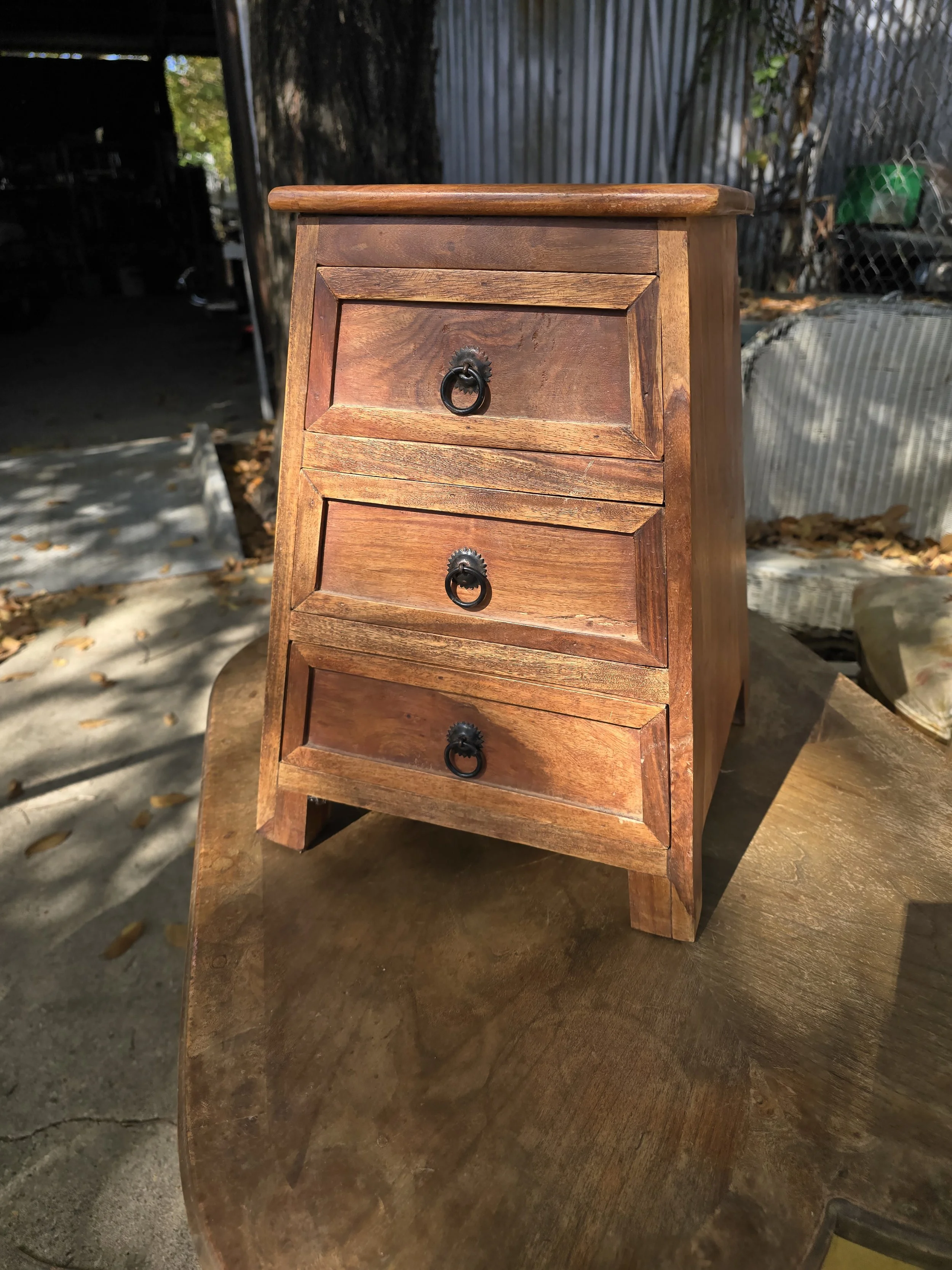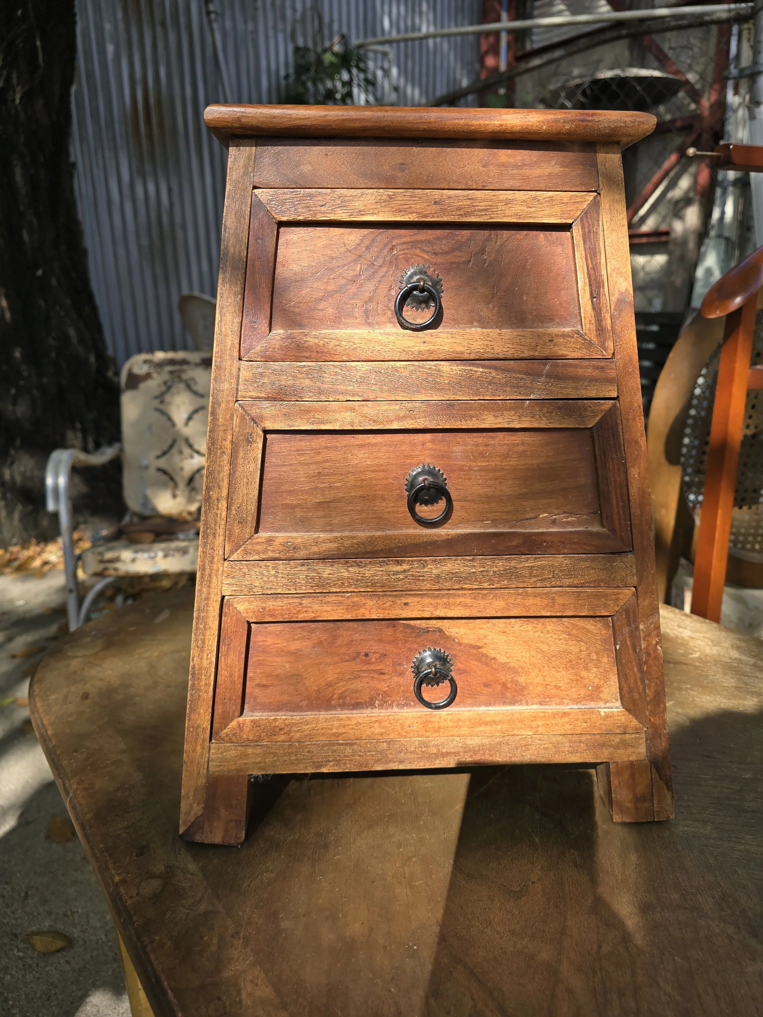 Solid wood trapezoidal wooden chest of drawers, with 3 drawers.