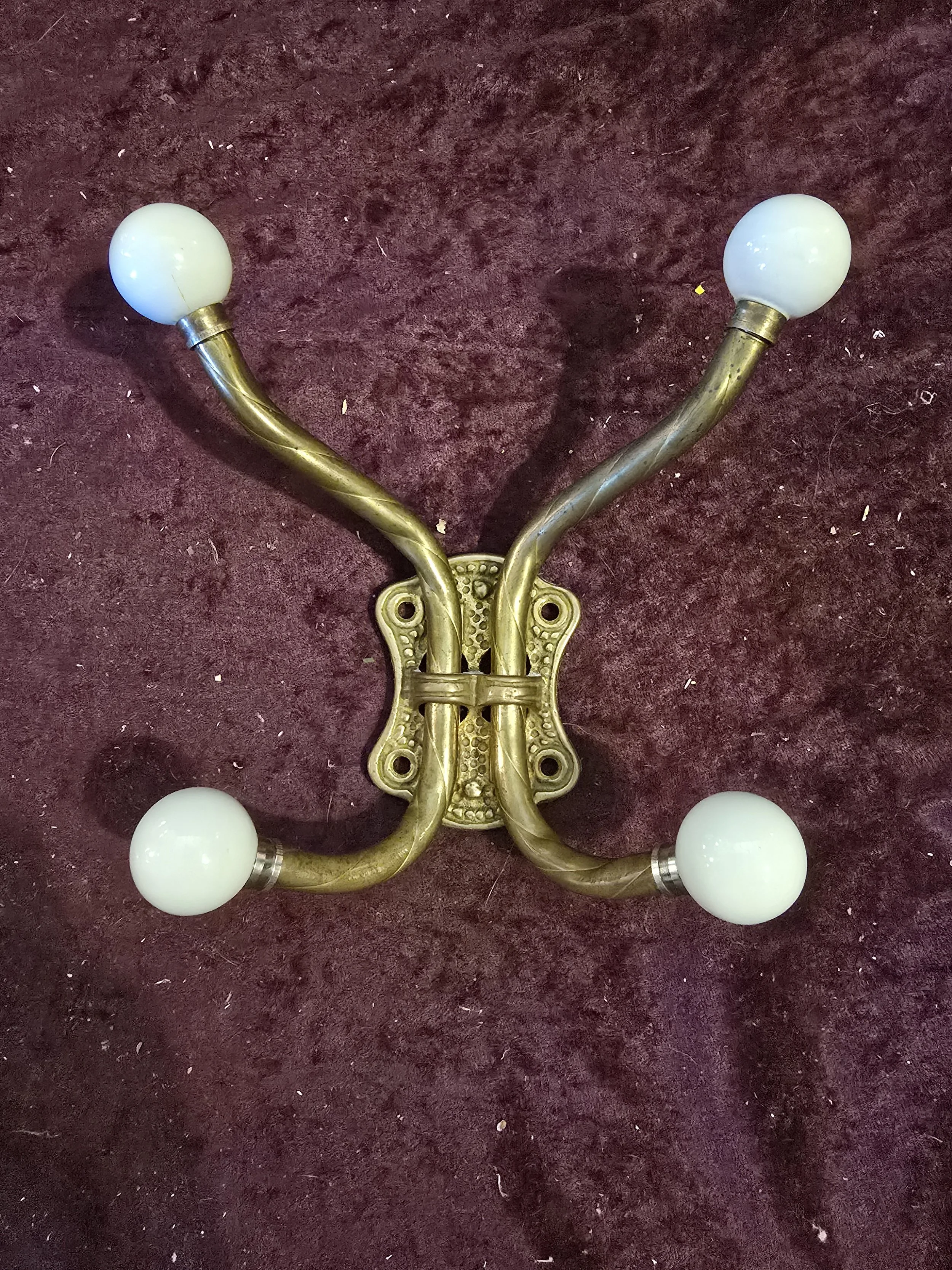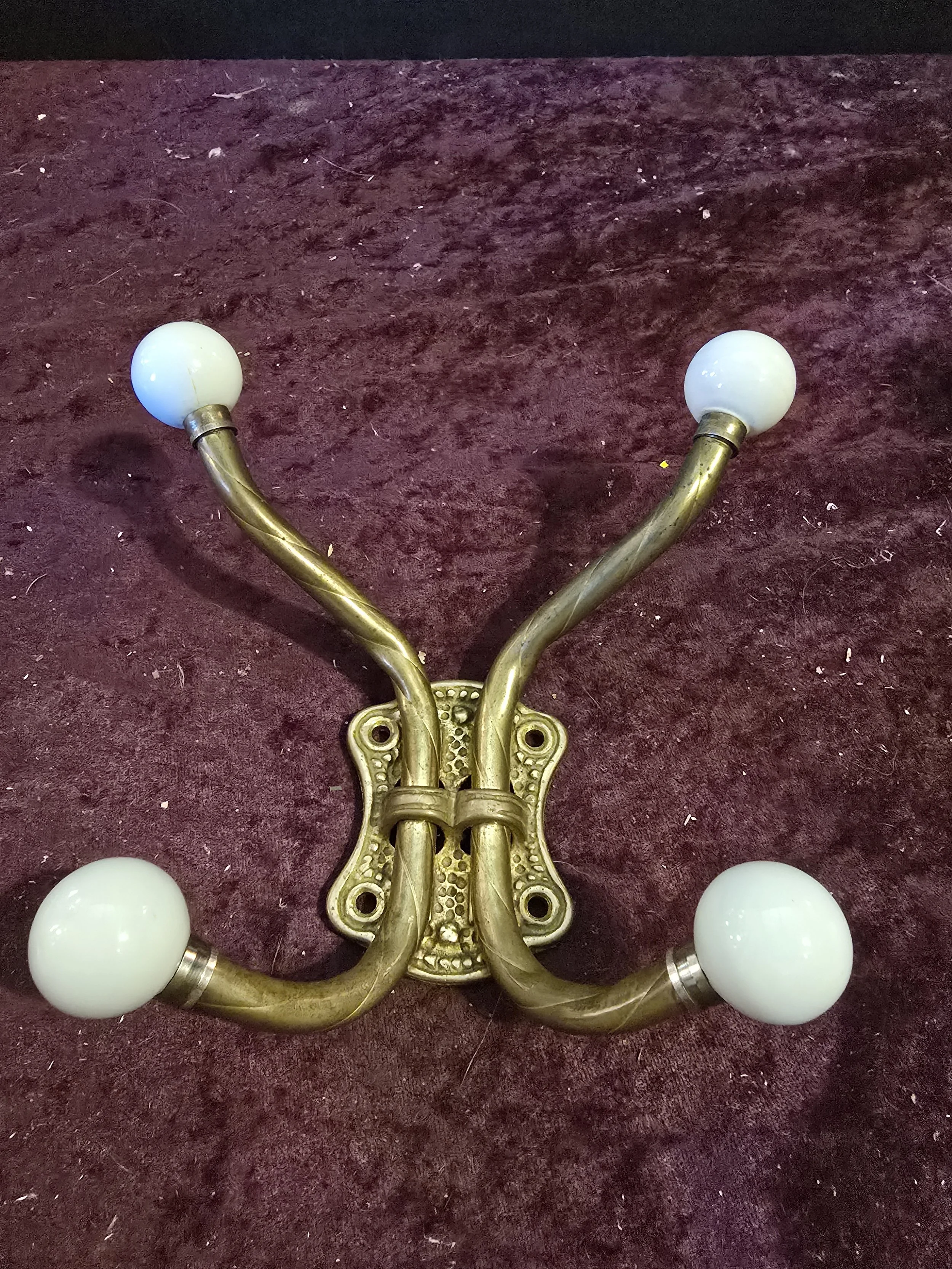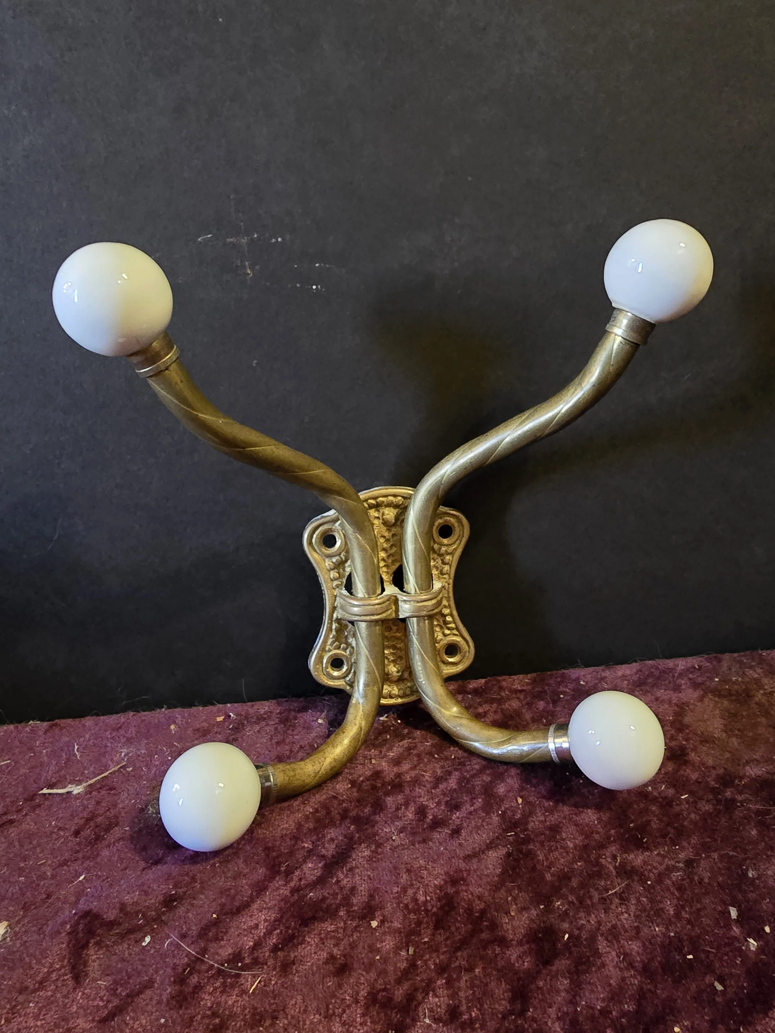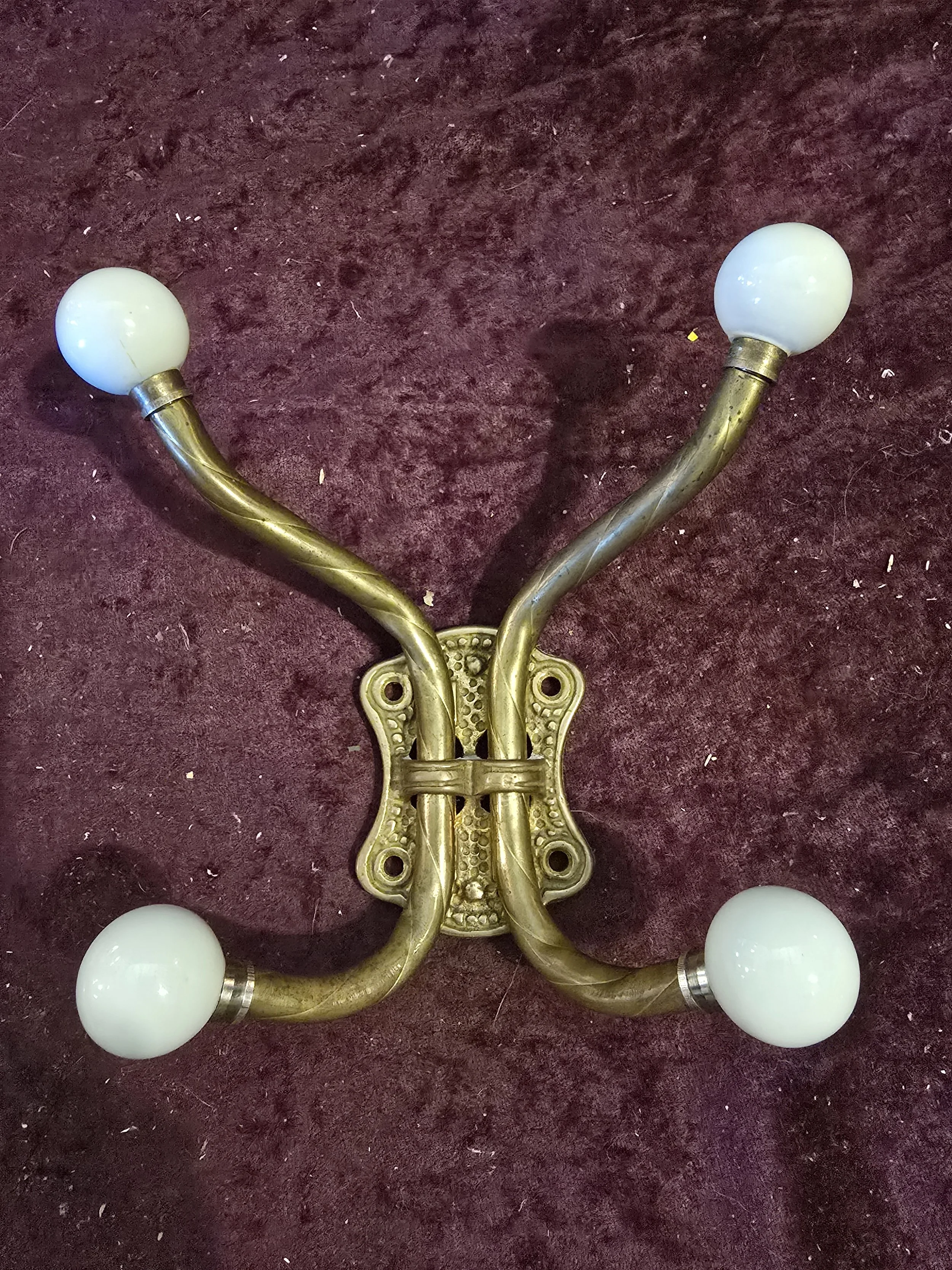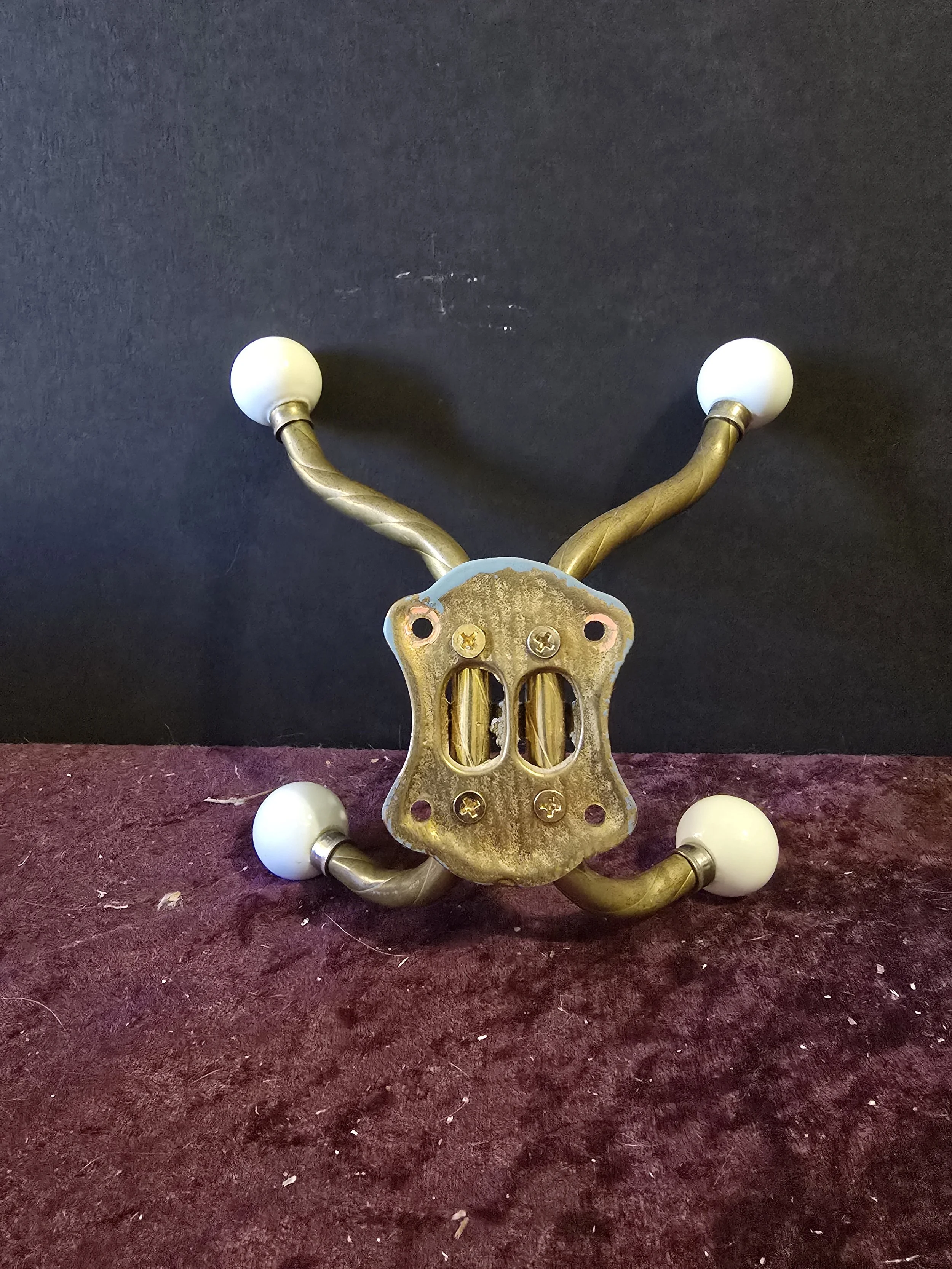 Vintage Hollywood Regency Brass & Porcelain Wall Coat Hanger