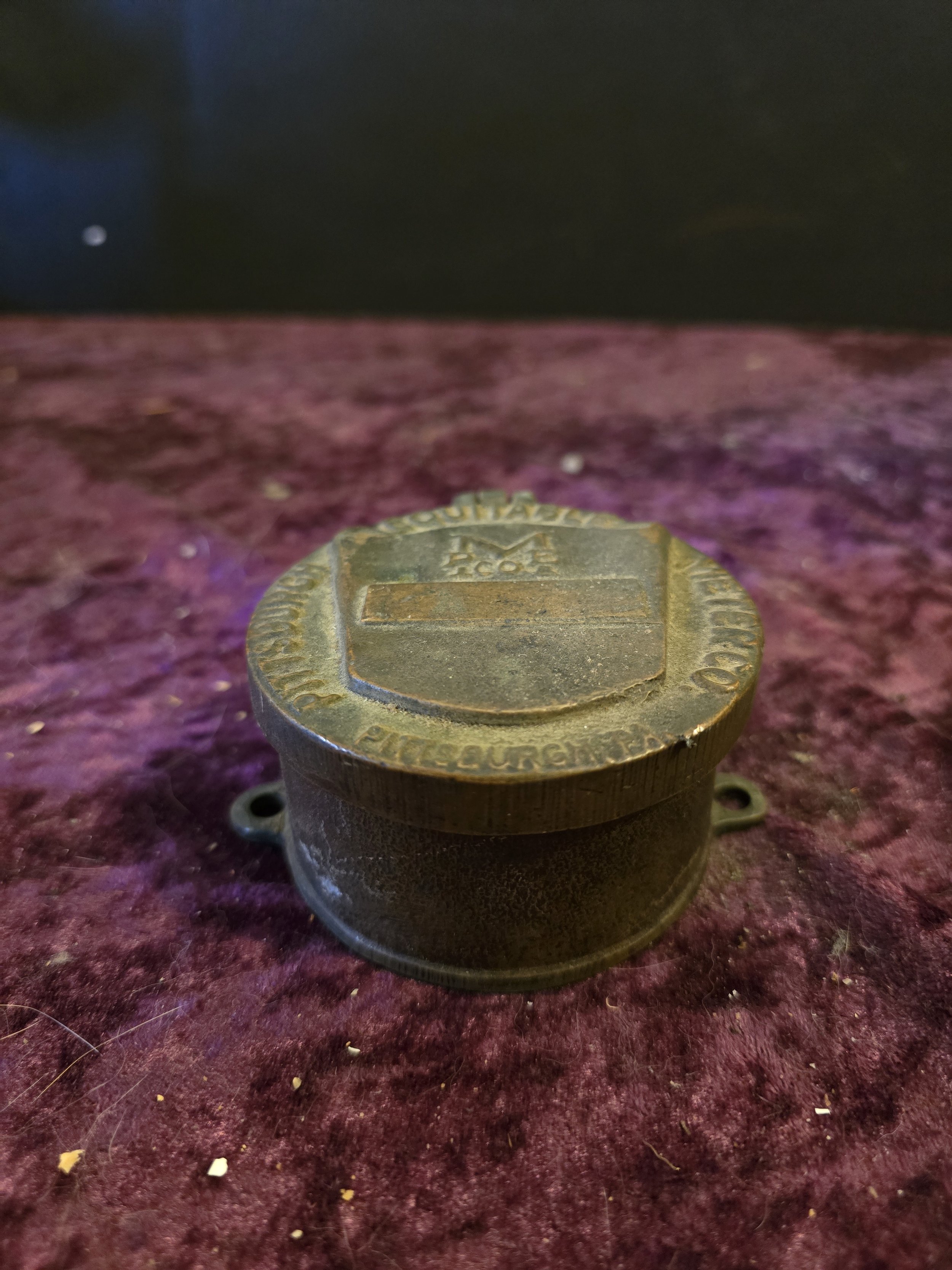Vintage Brass Pittsburgh equitable meter co. Meter cover. Its a cool box though