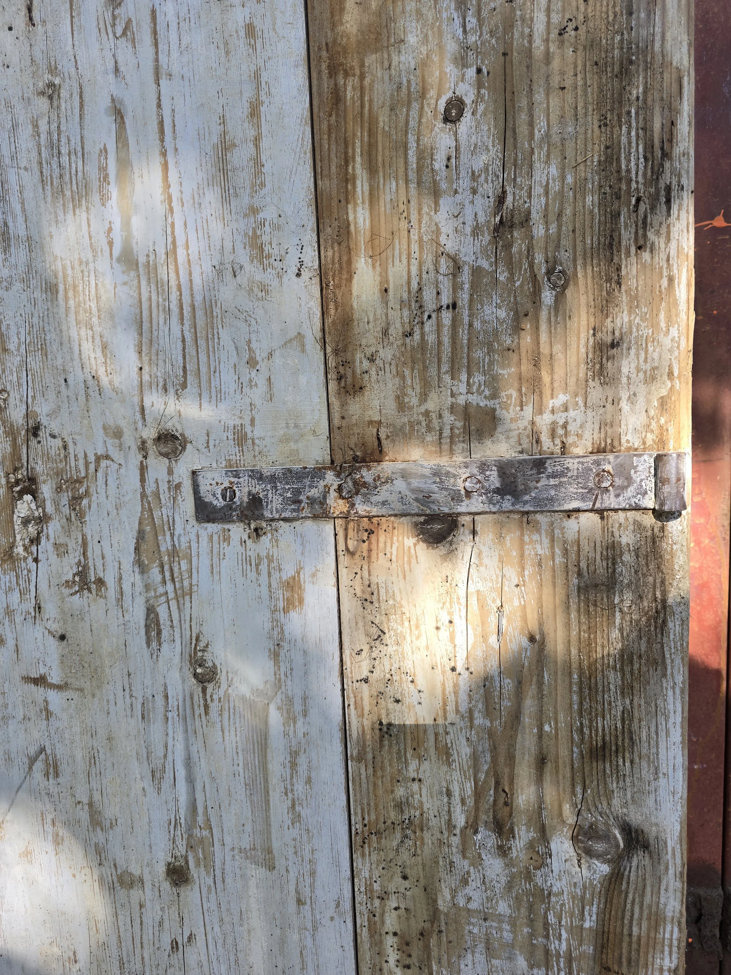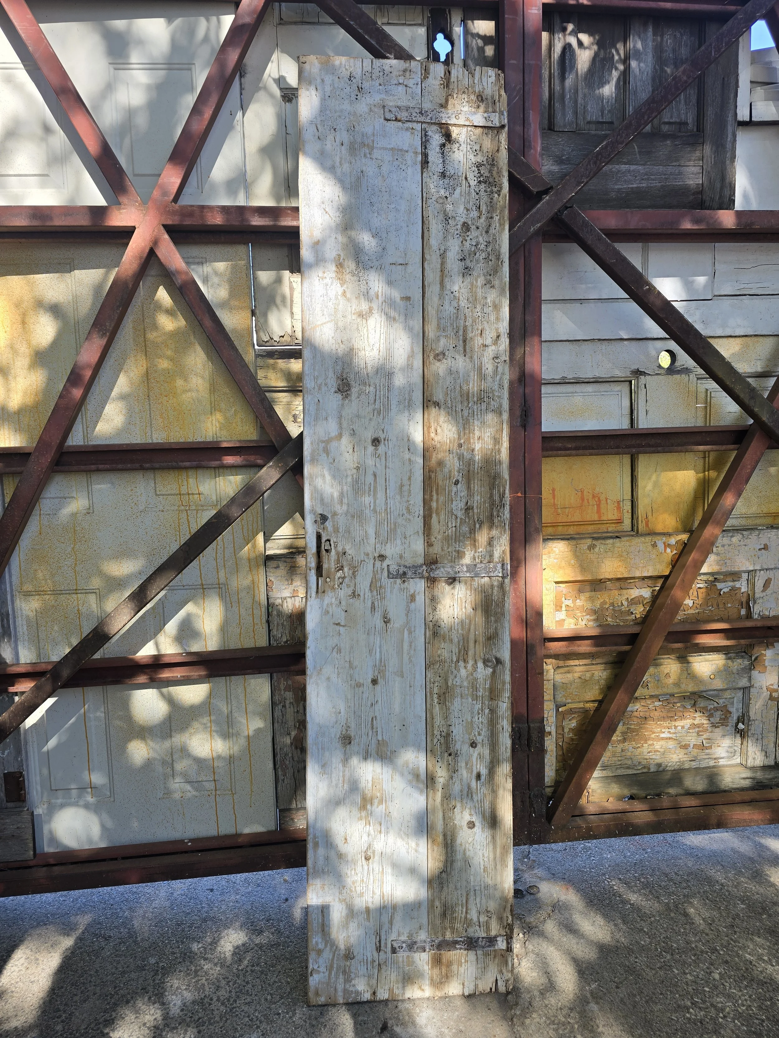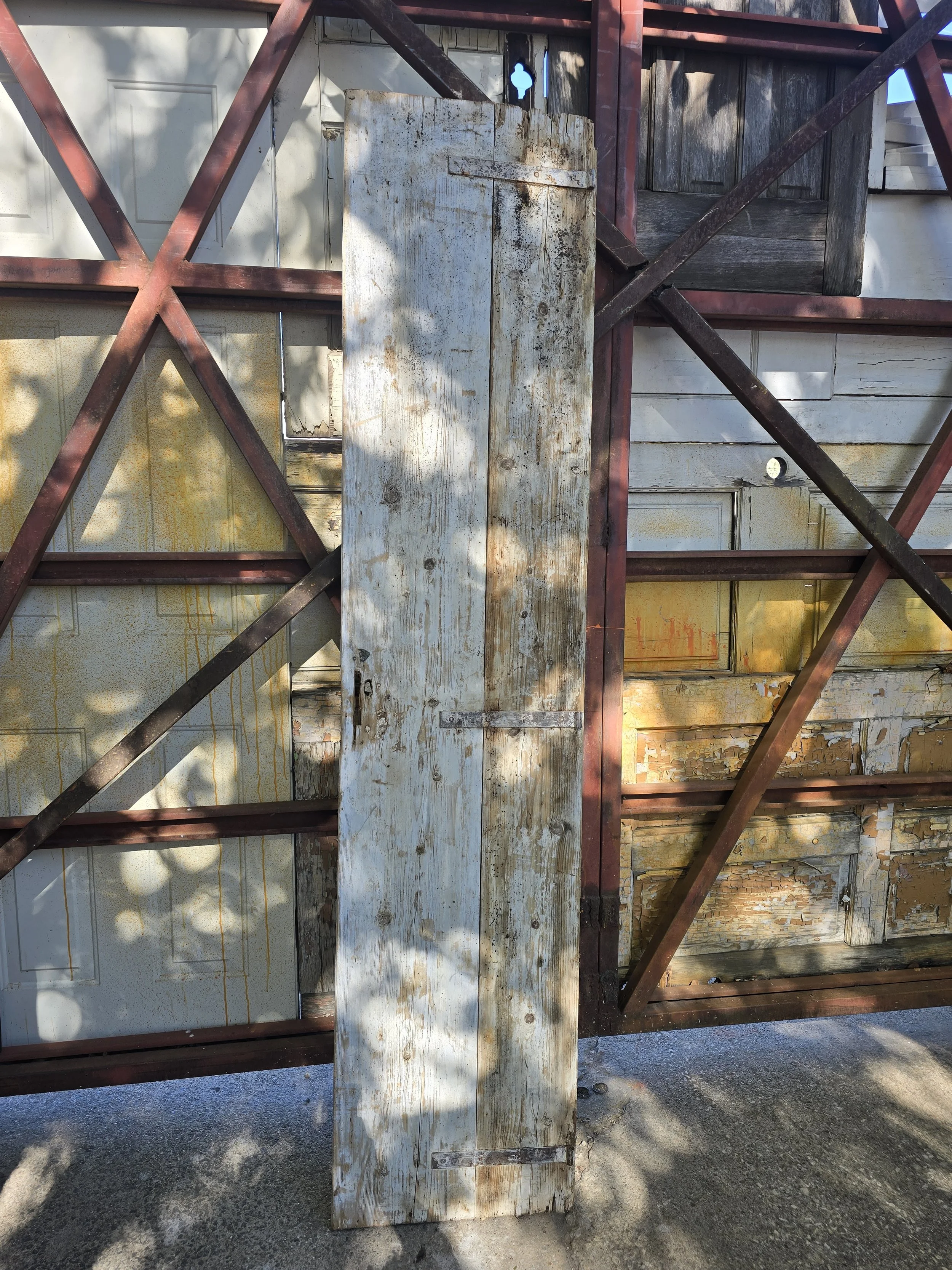 Antique wood Egyptian door with iron strap hinges. Probably circa late 1800's. This door is primitive and rough. Would make a fantastic table or statement piece.