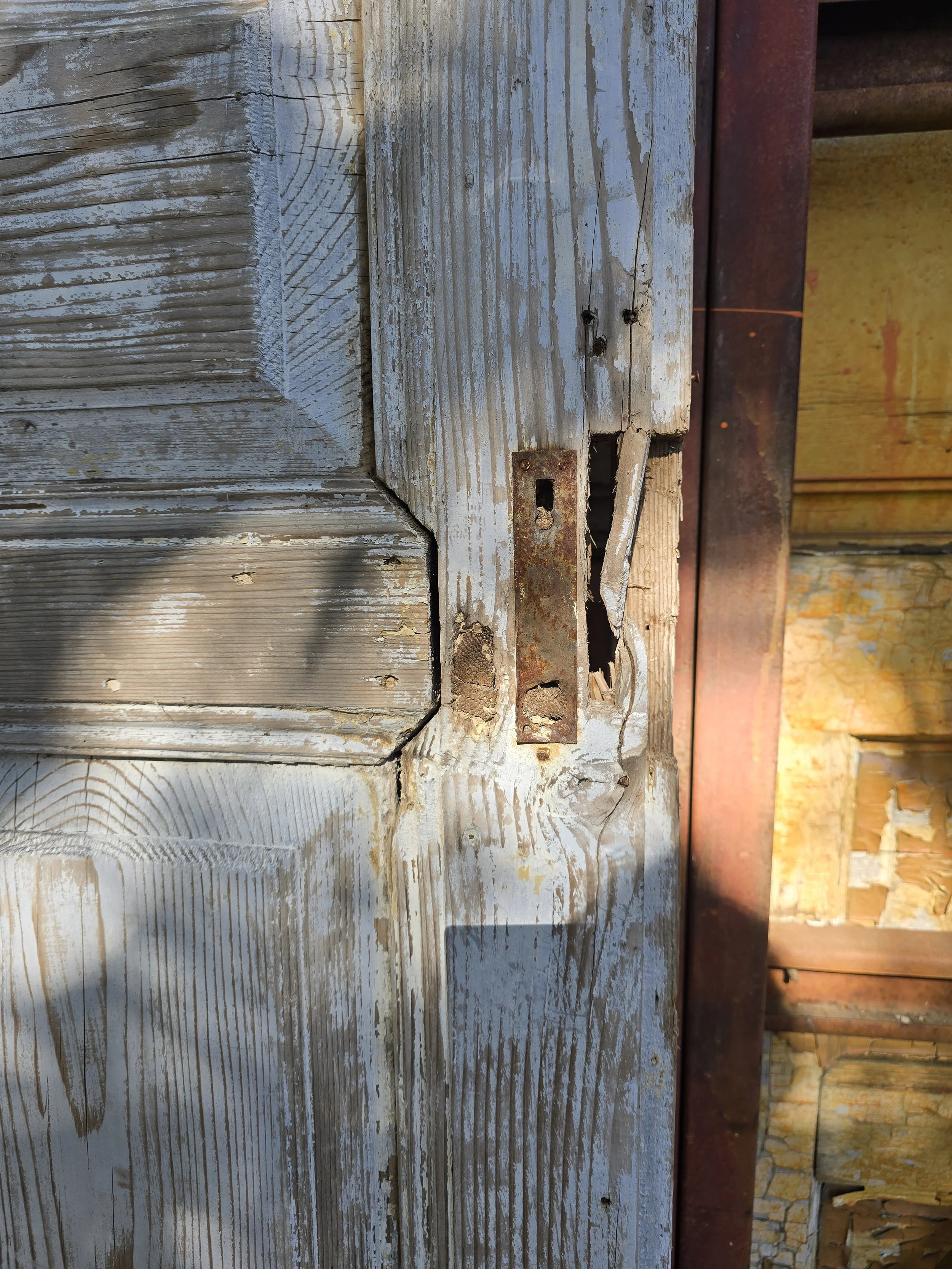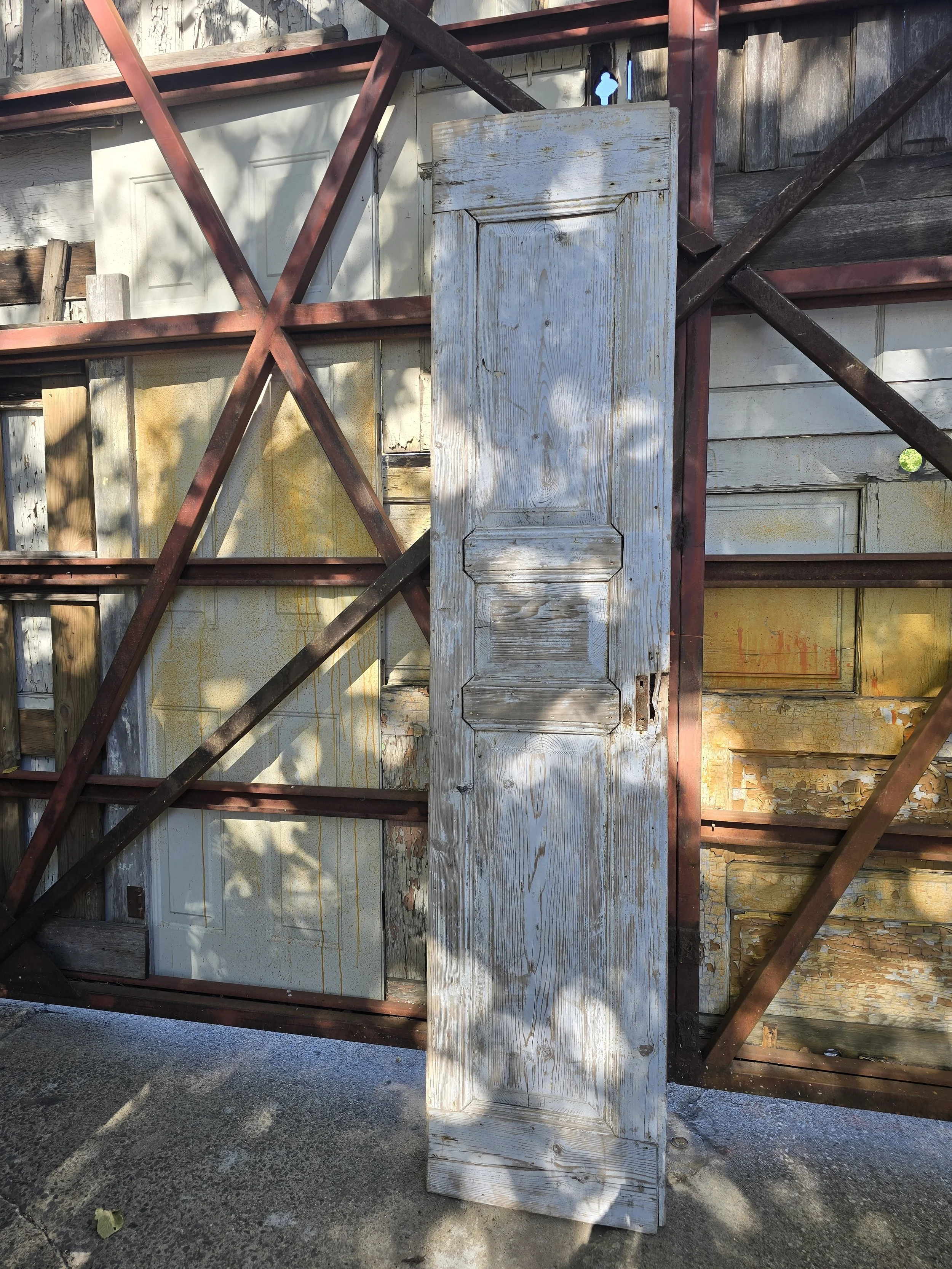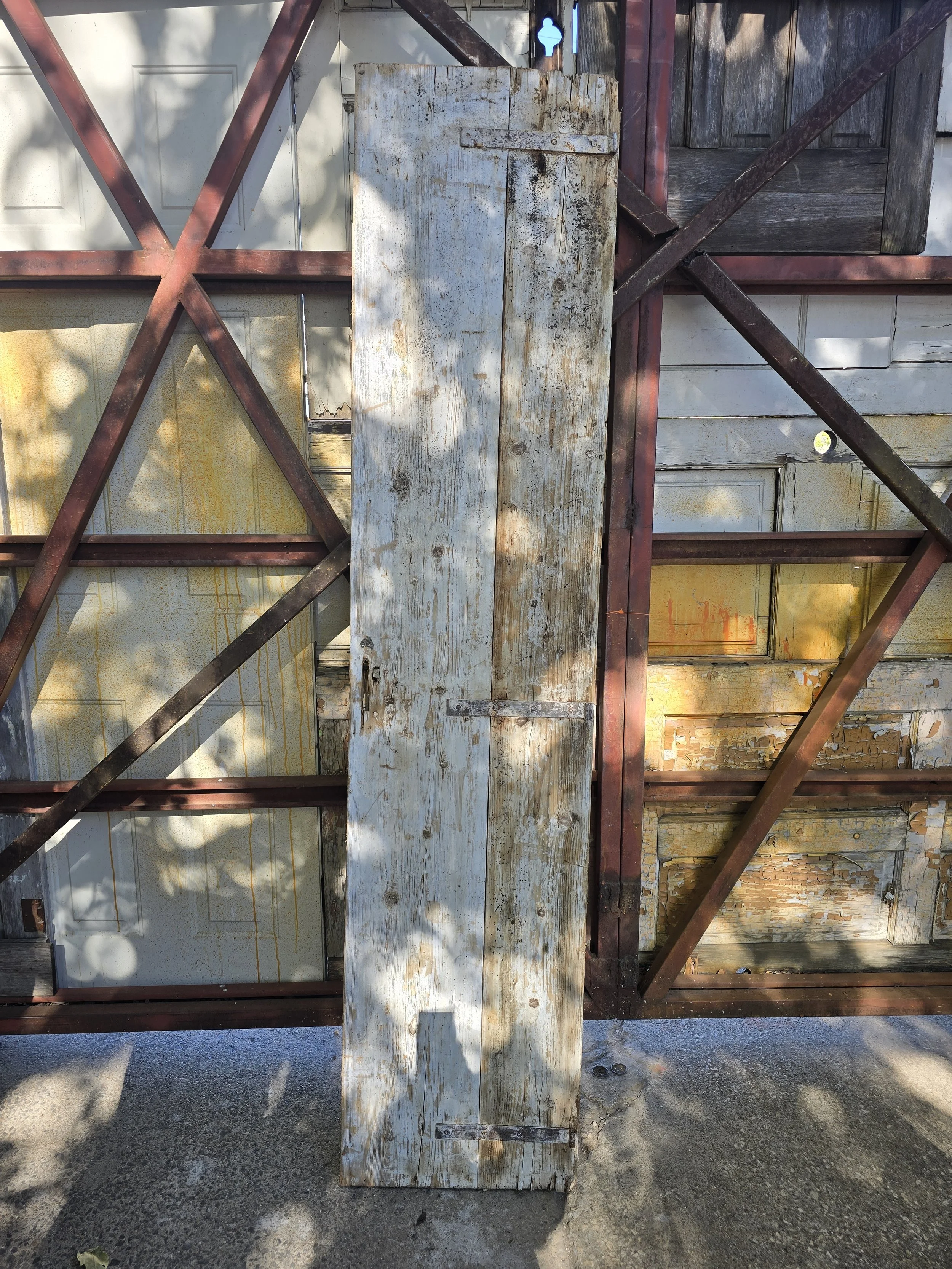 Antique wood Egyptian door with iron strap hinges. Probably circa late 1800's. This door is primitive and rough. Would make a fantastic table or statement piece.