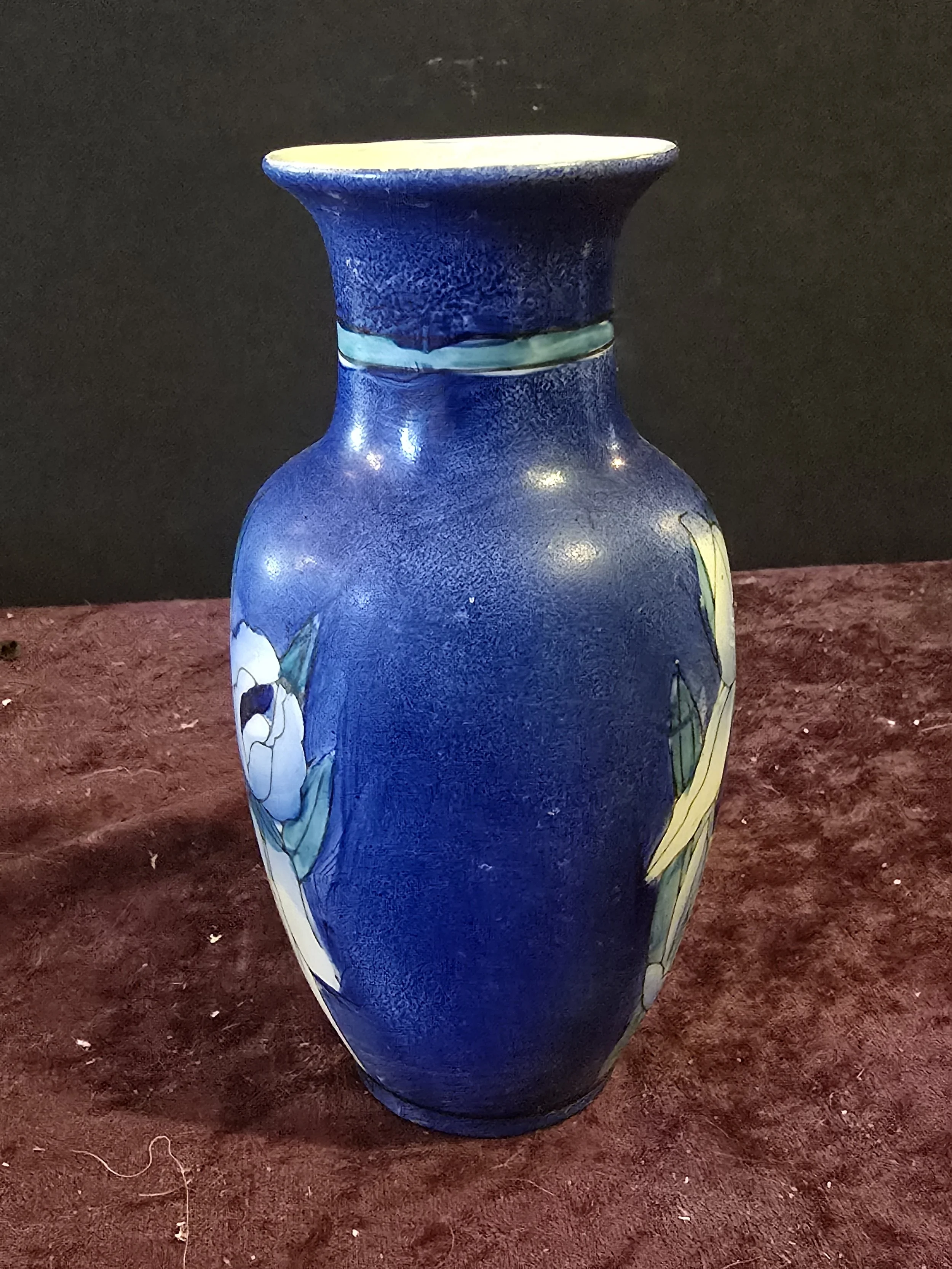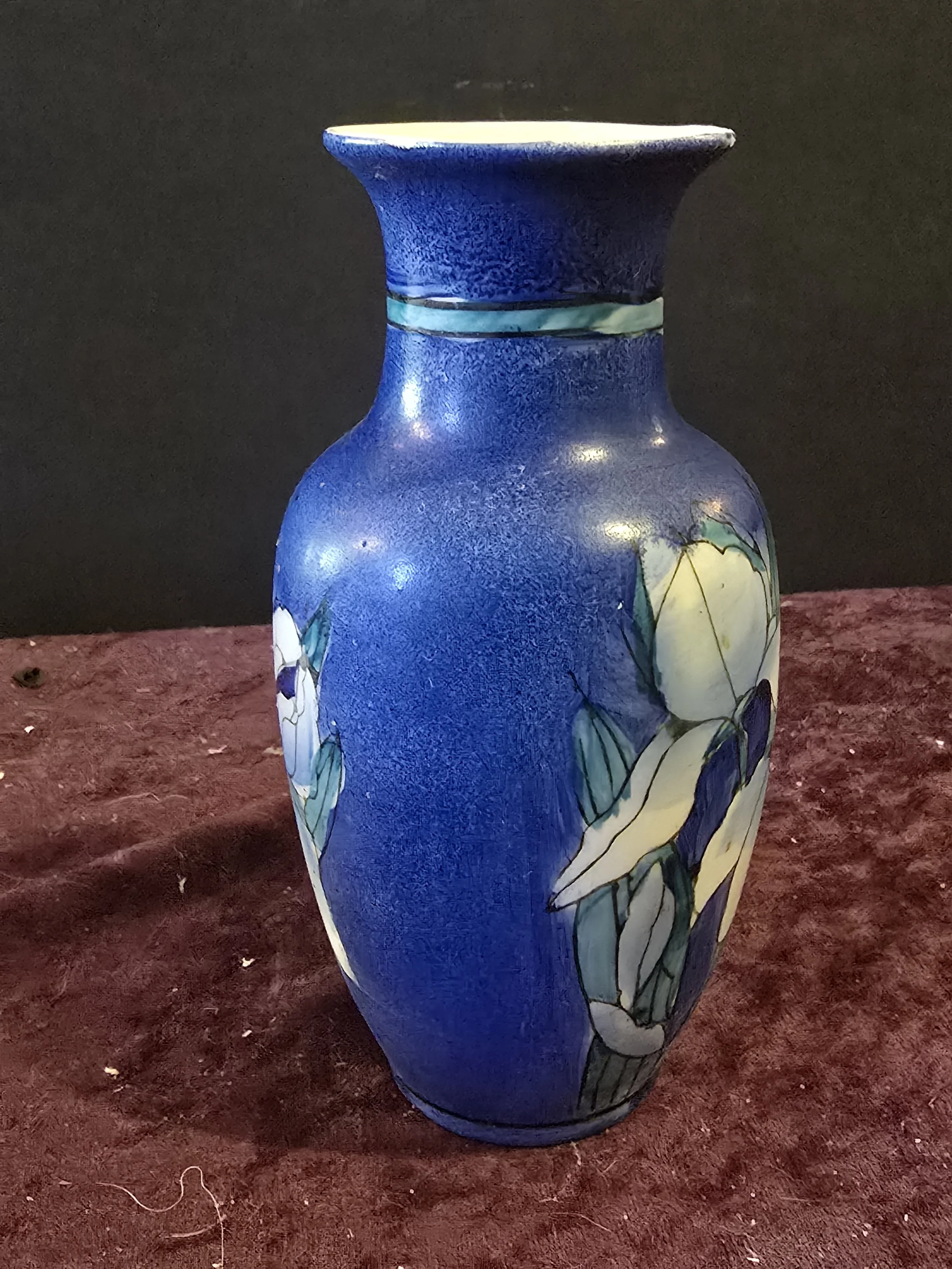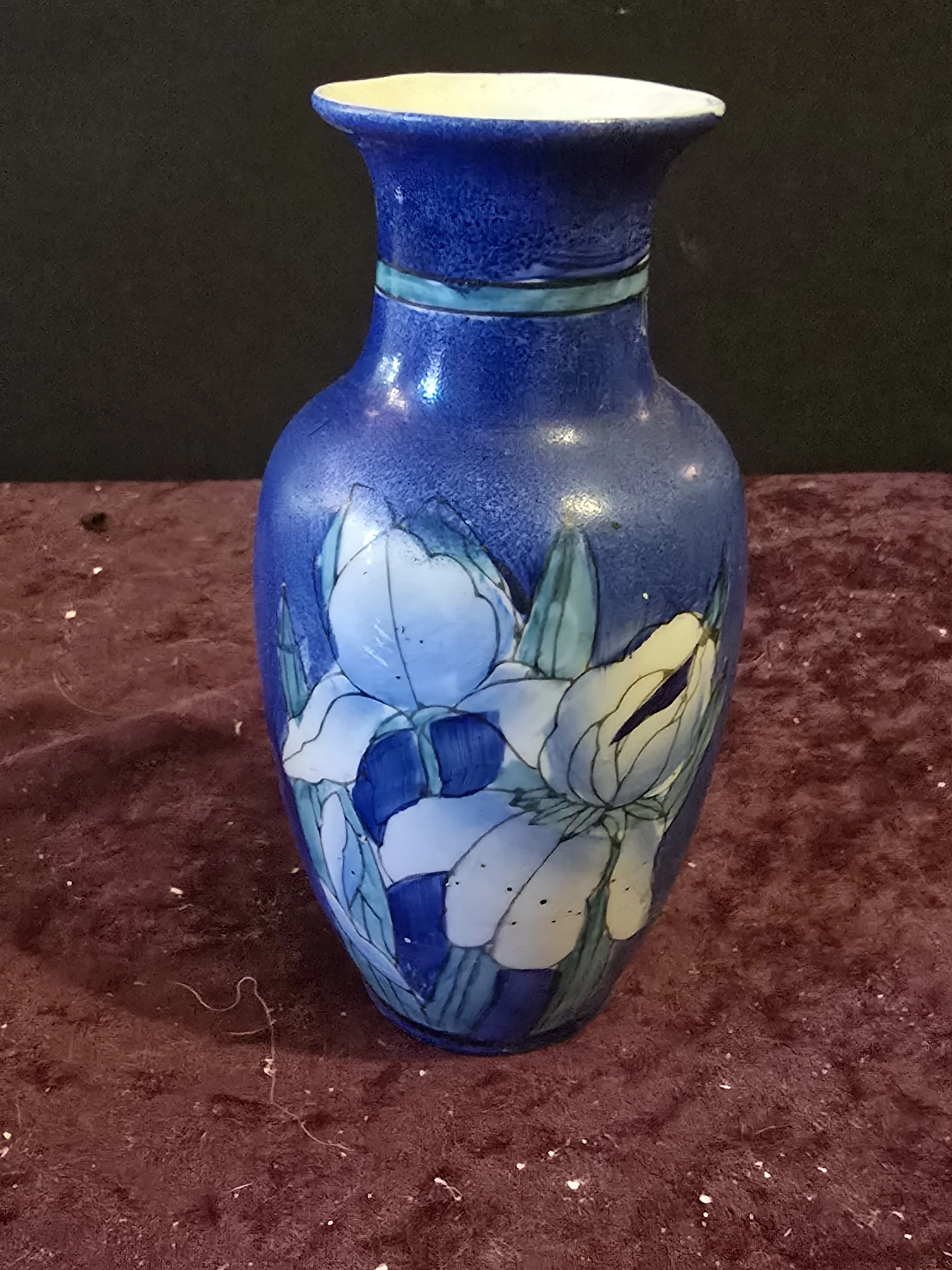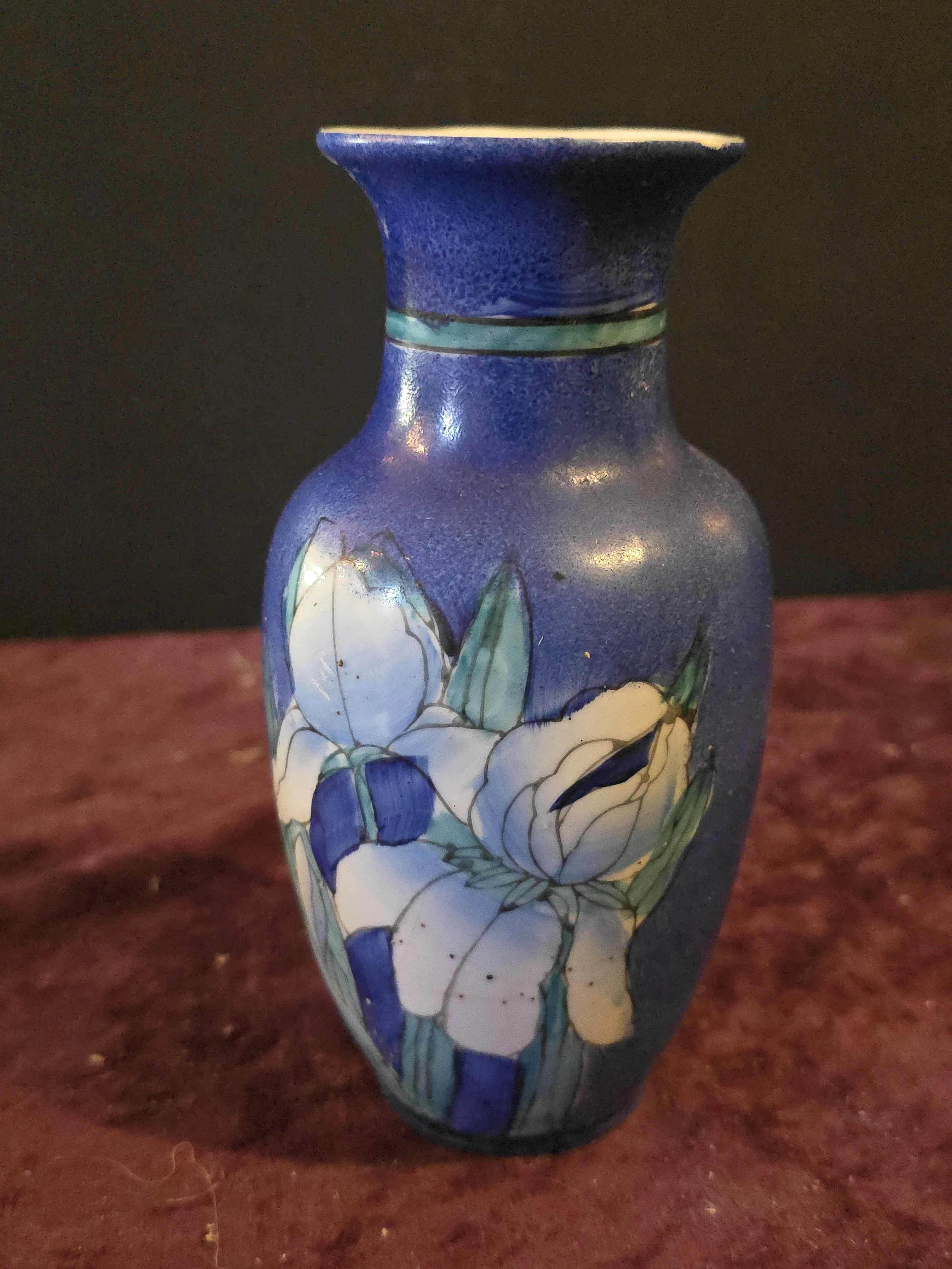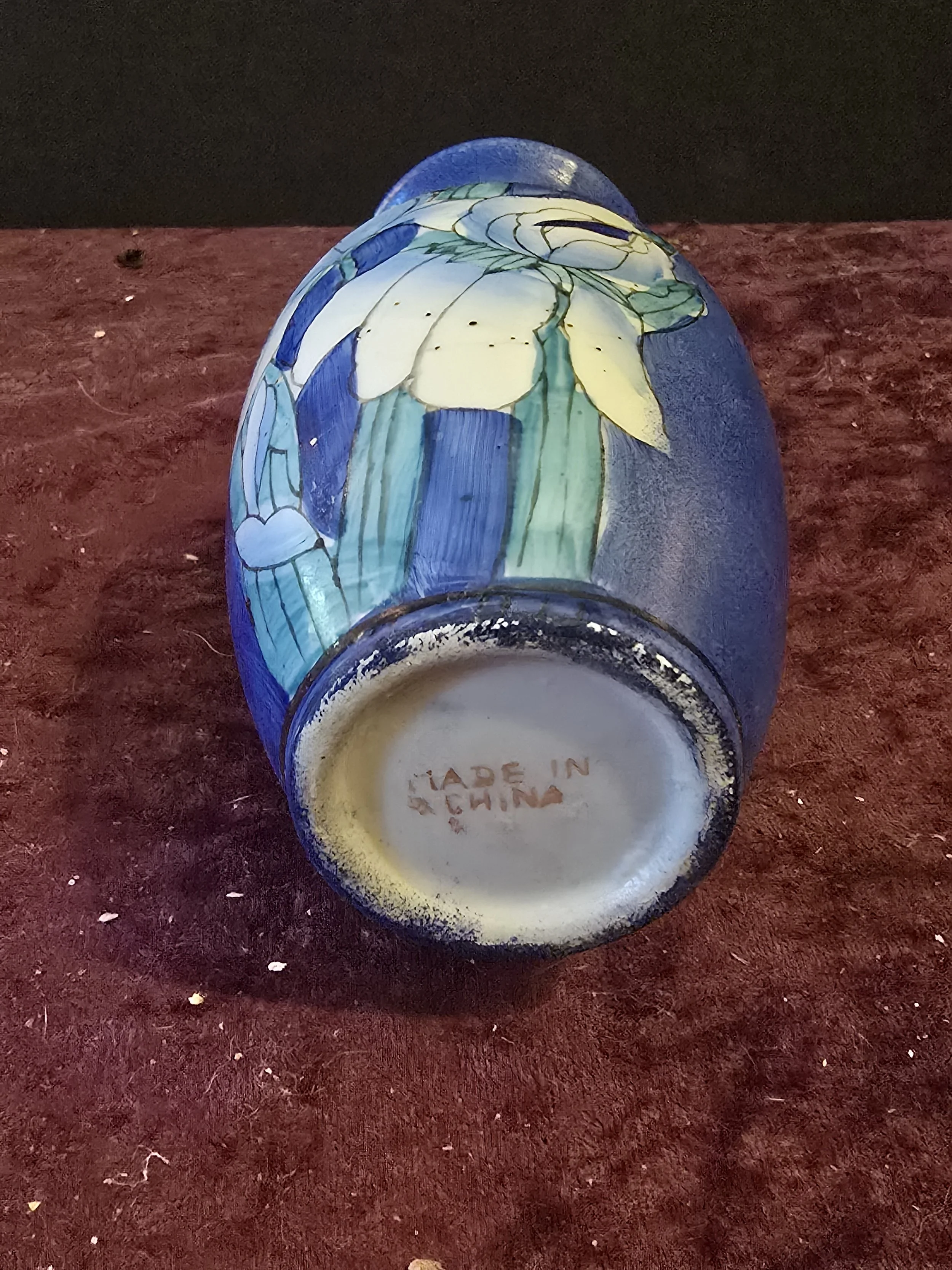 Small porcelain blue iris vase. Made in China