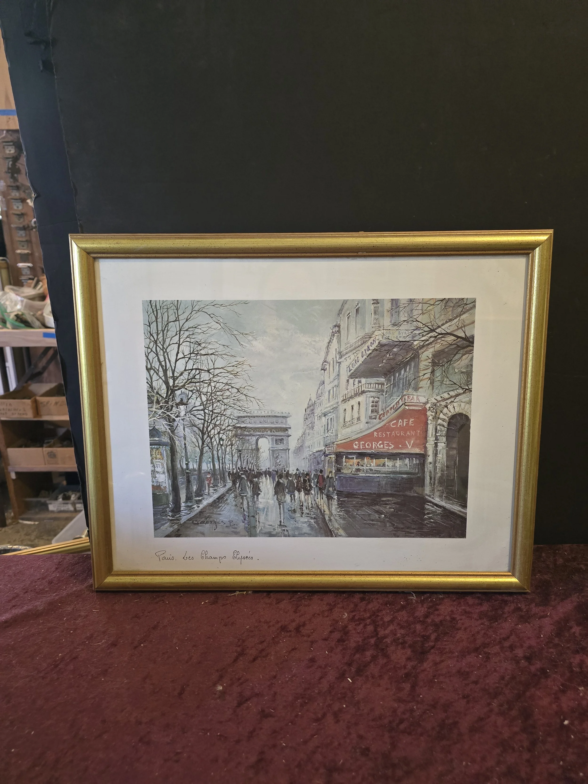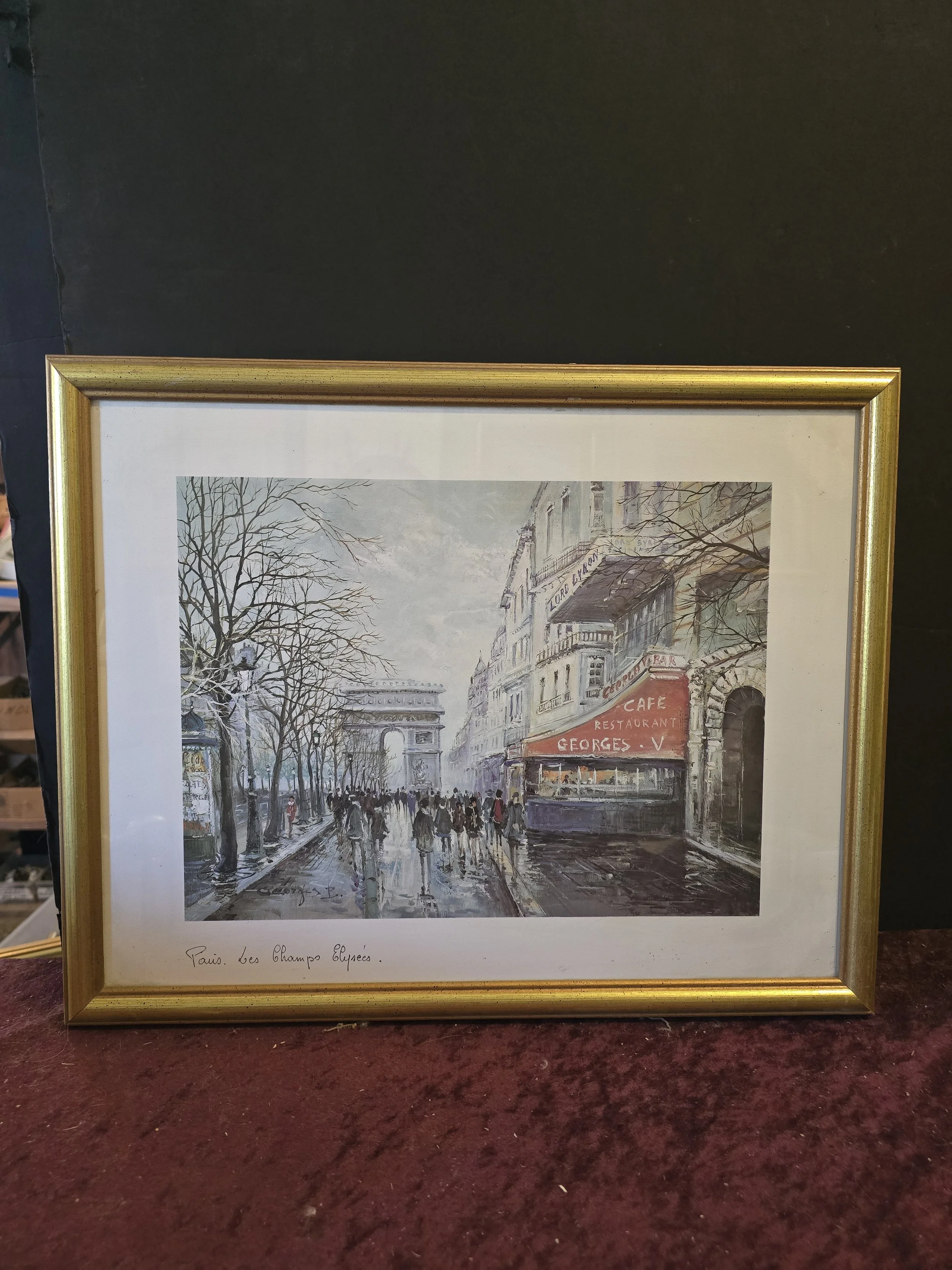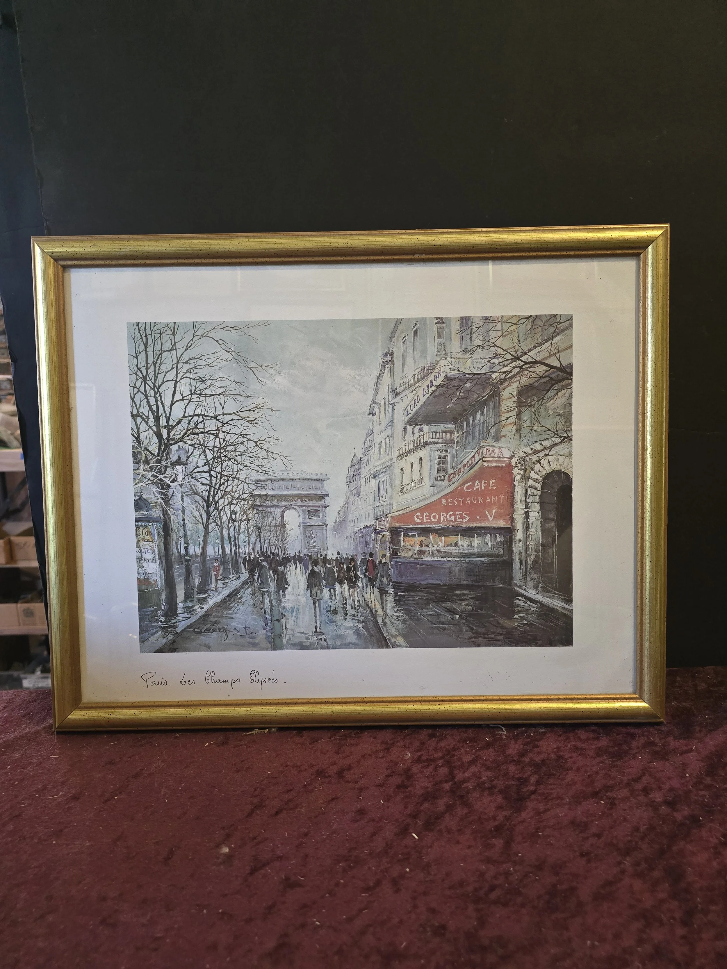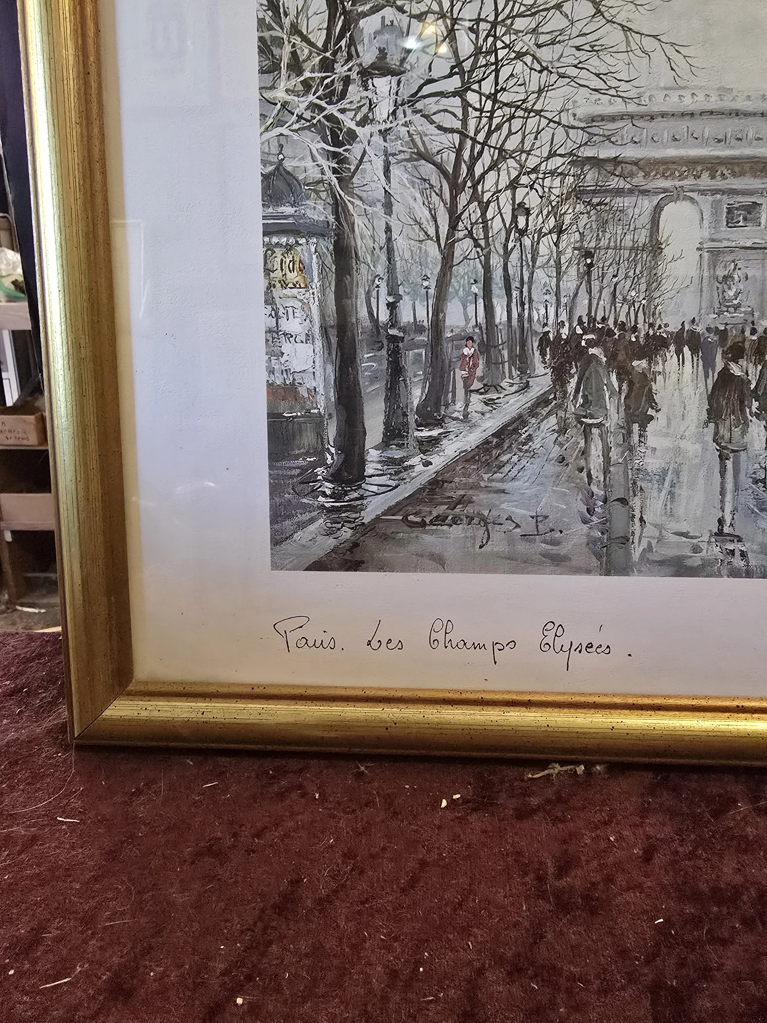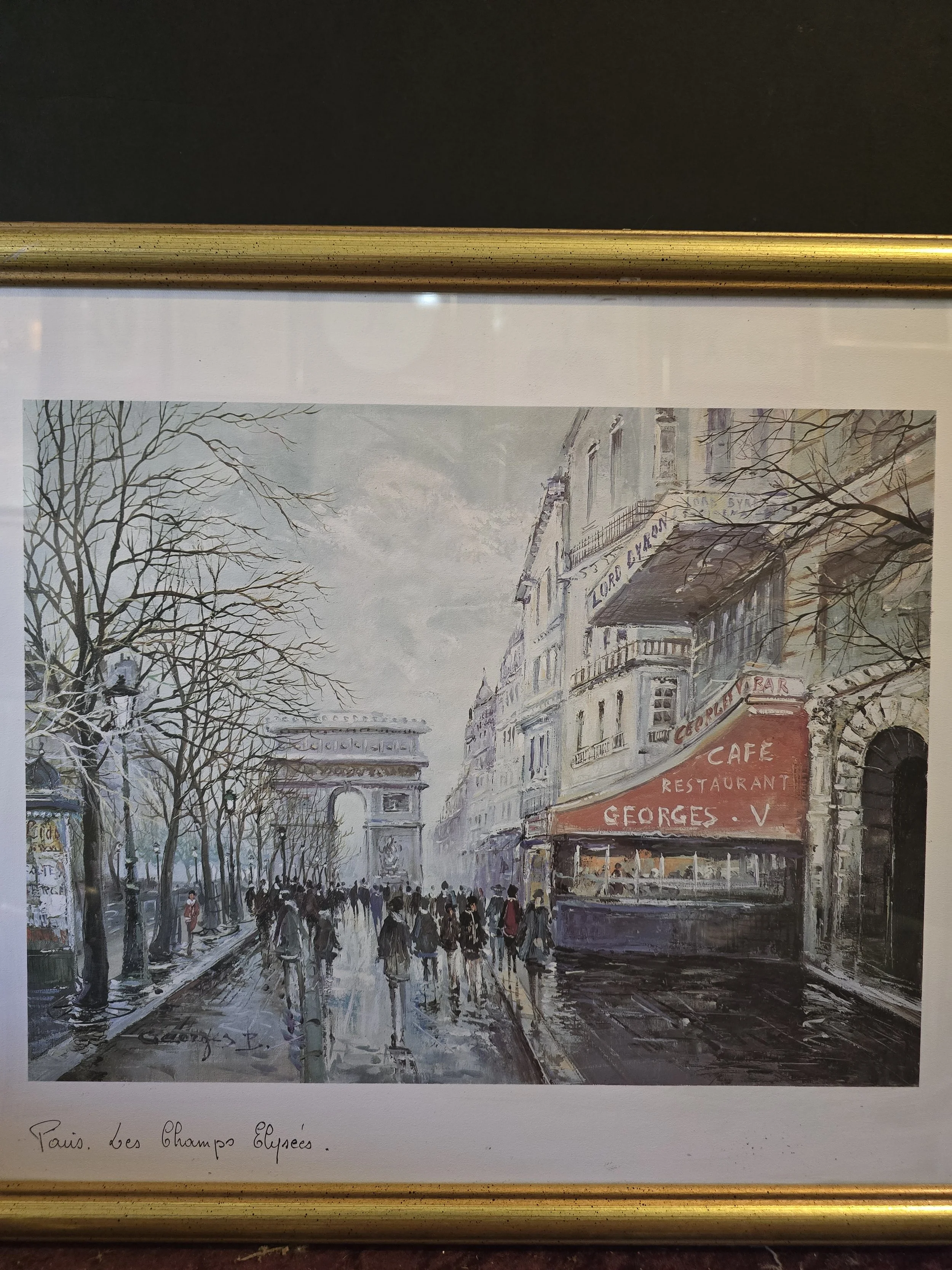 1982 edition print “Les Champs Elysees” by Artertre in a gold finished wood frame