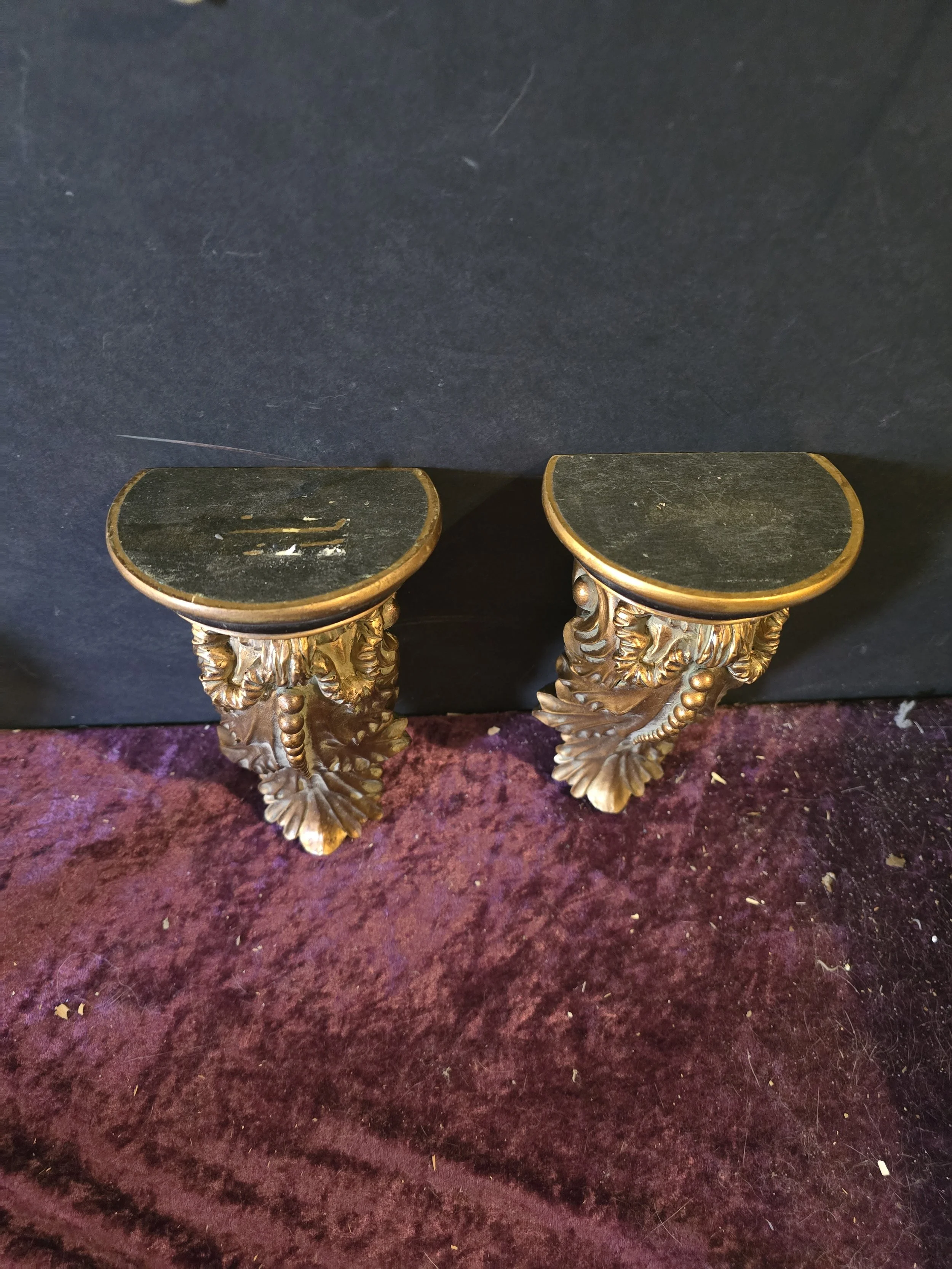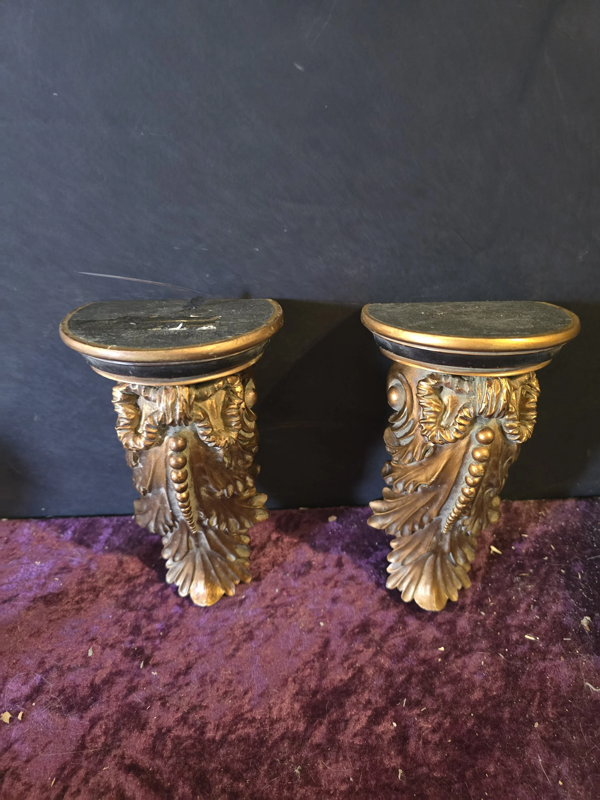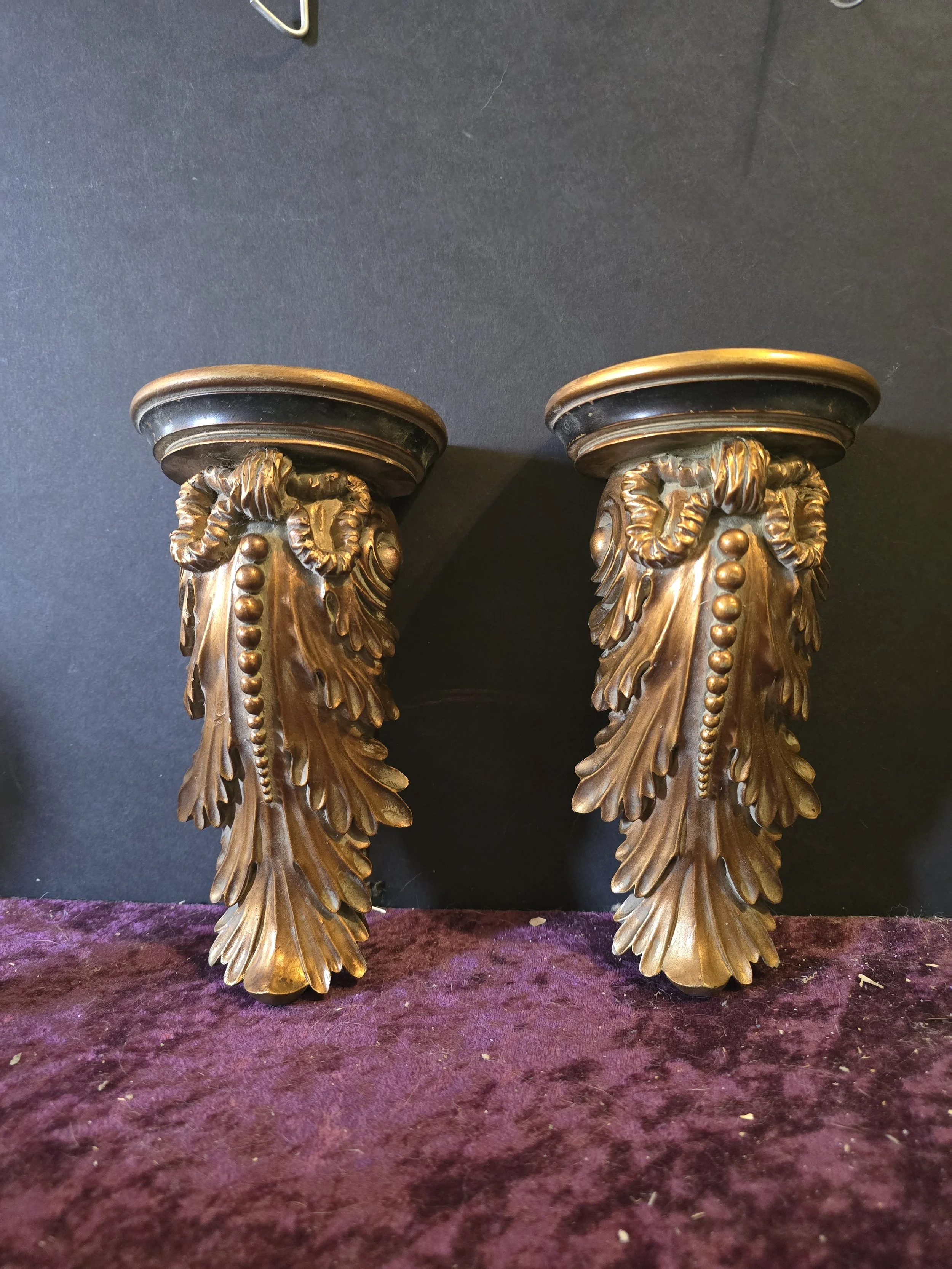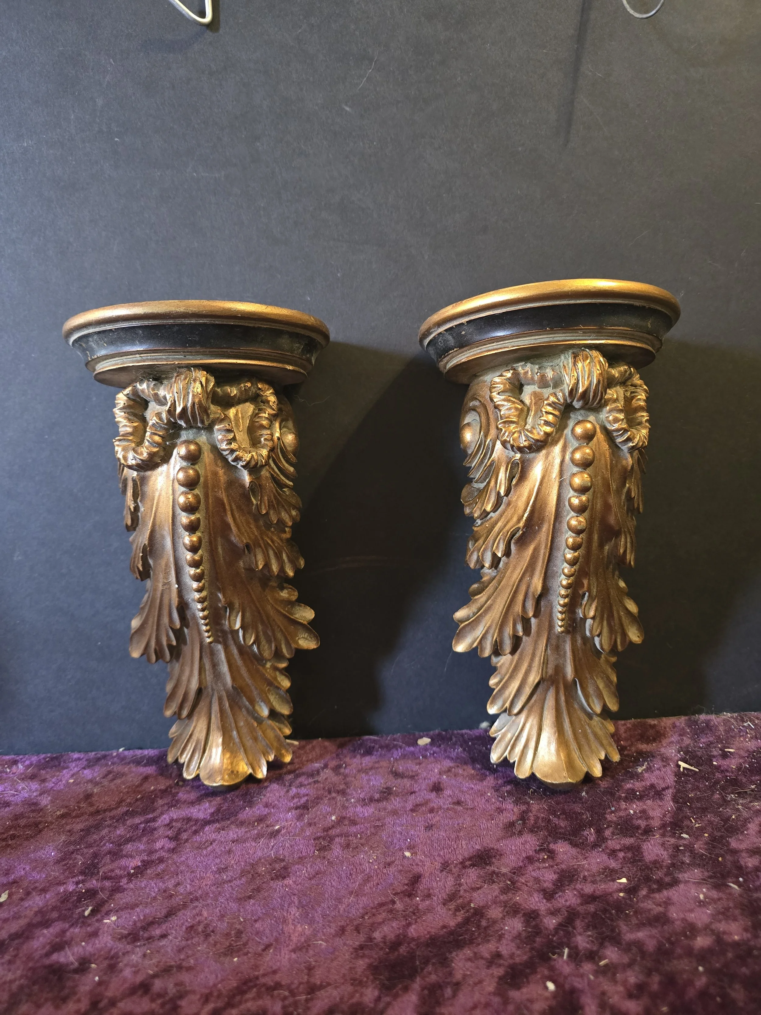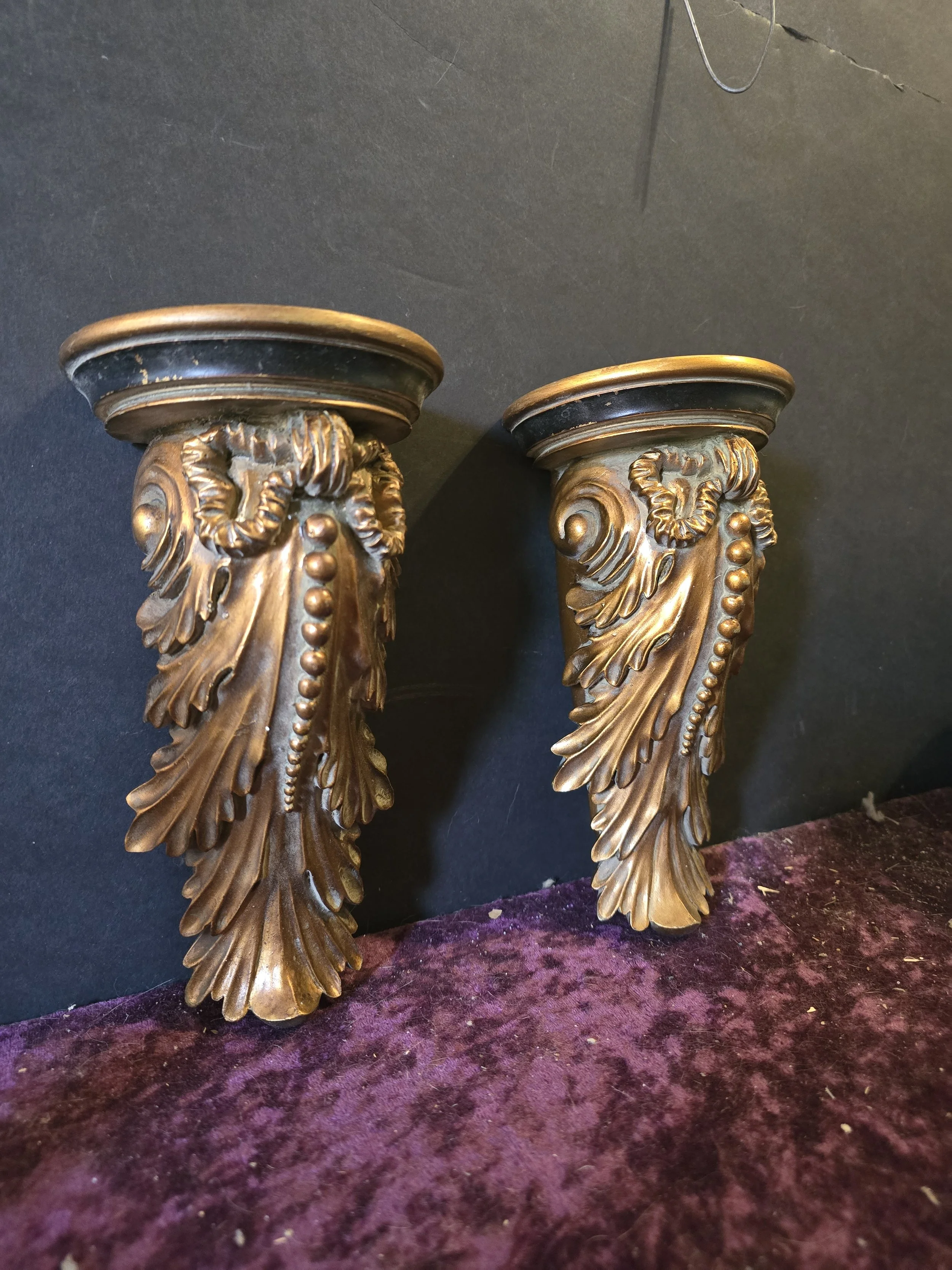 Gold and black decorative corbels.