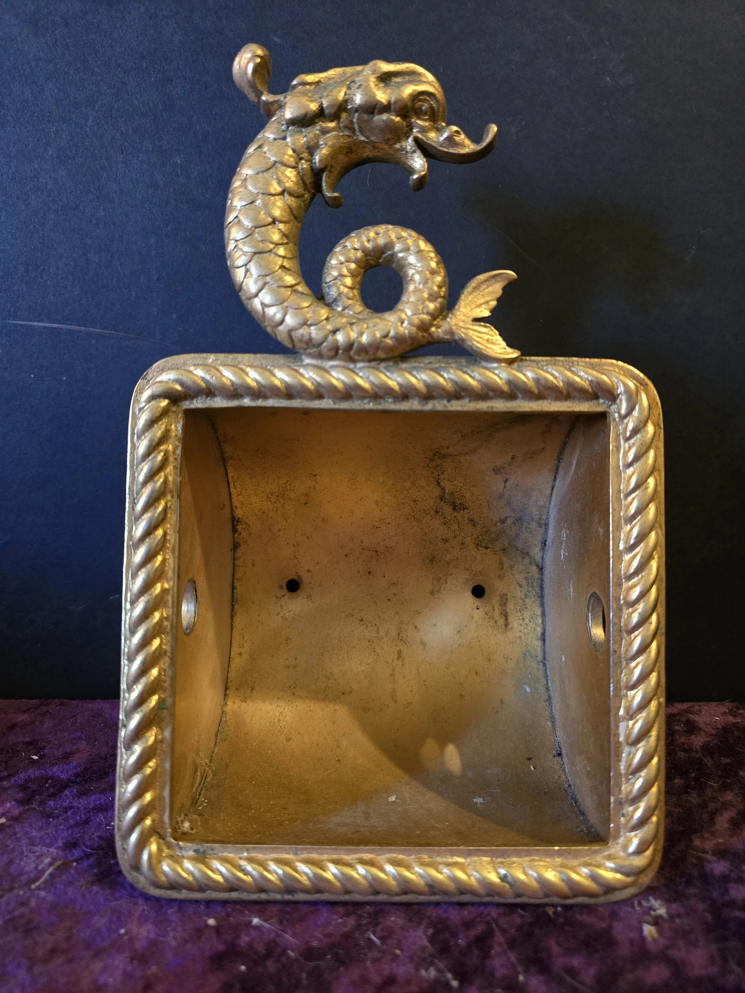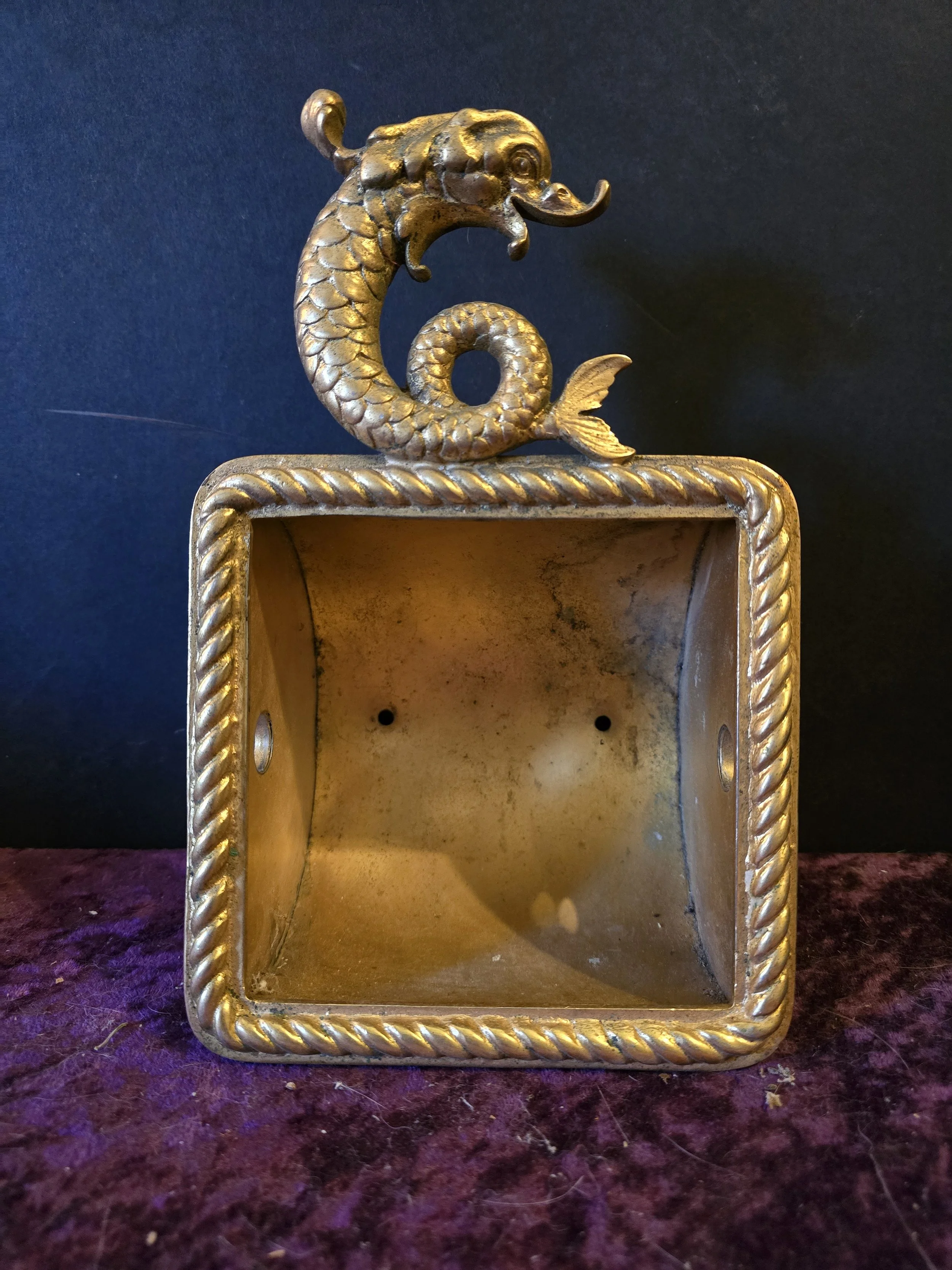Sherle Wagner brass dolphin toilet paper roll holder. It is meant to be inset in the wall.