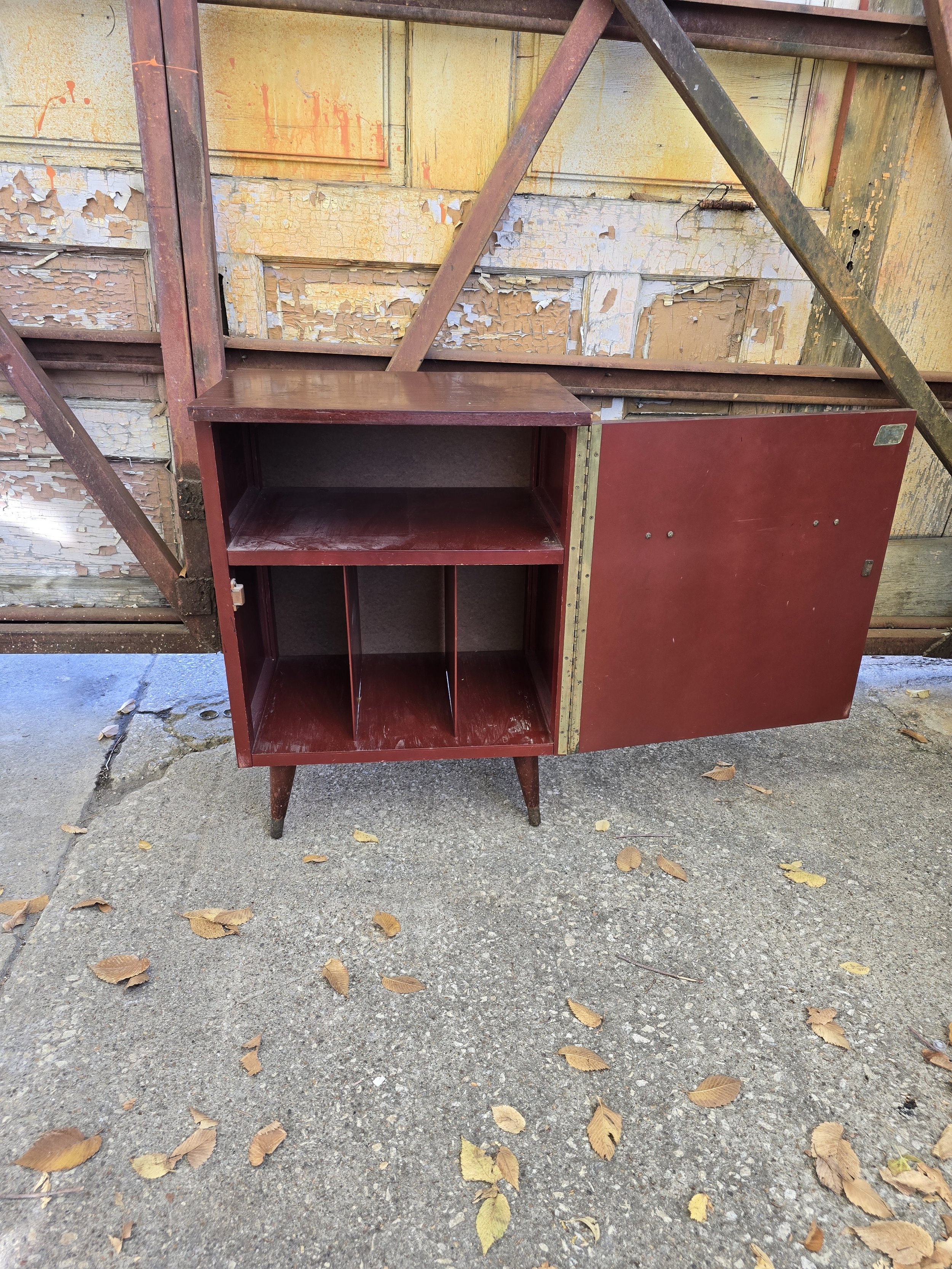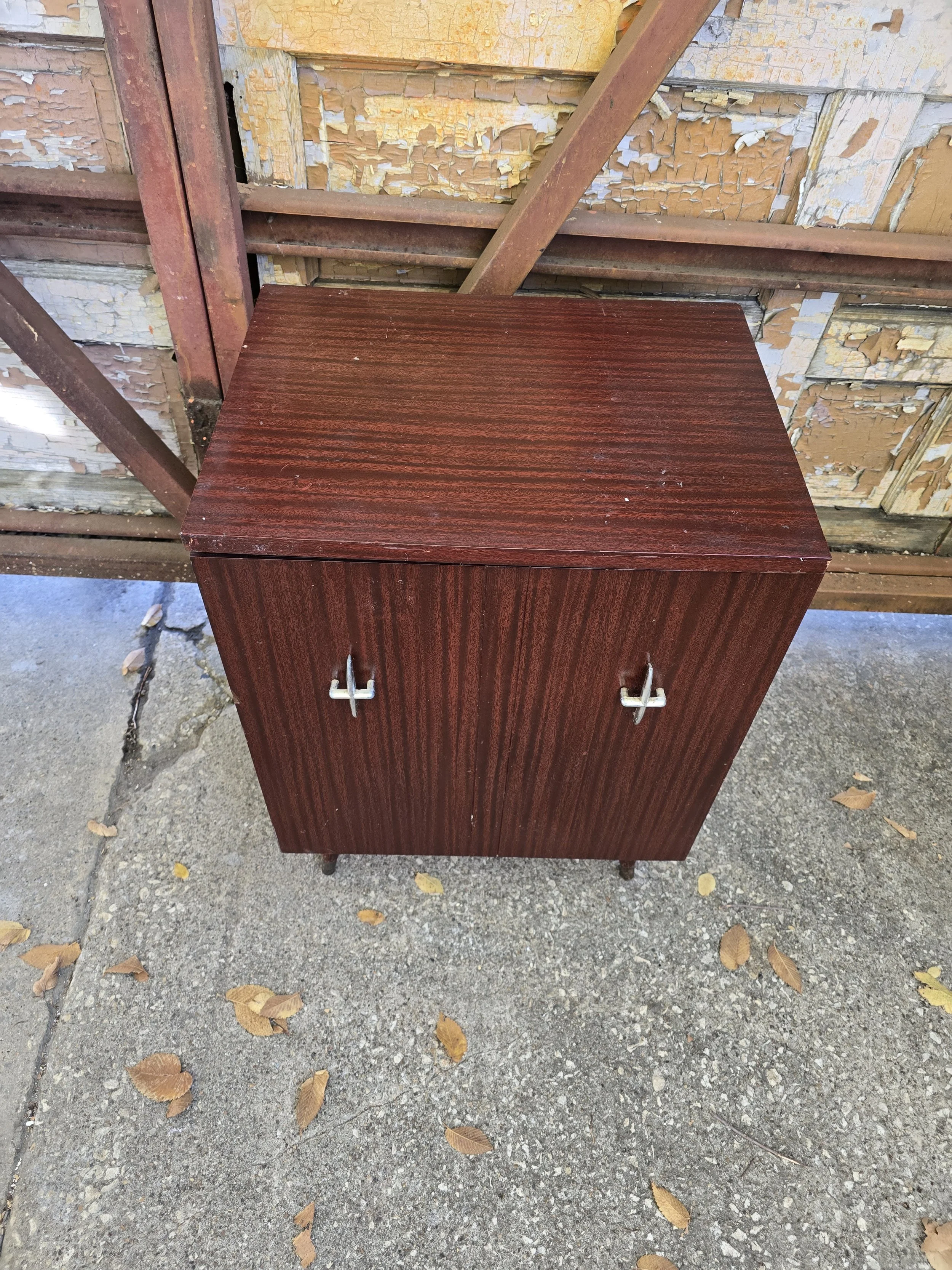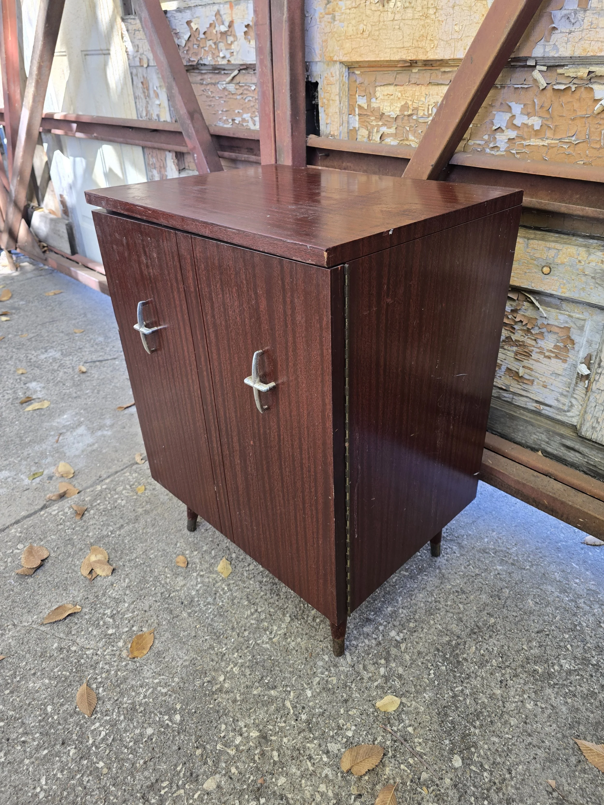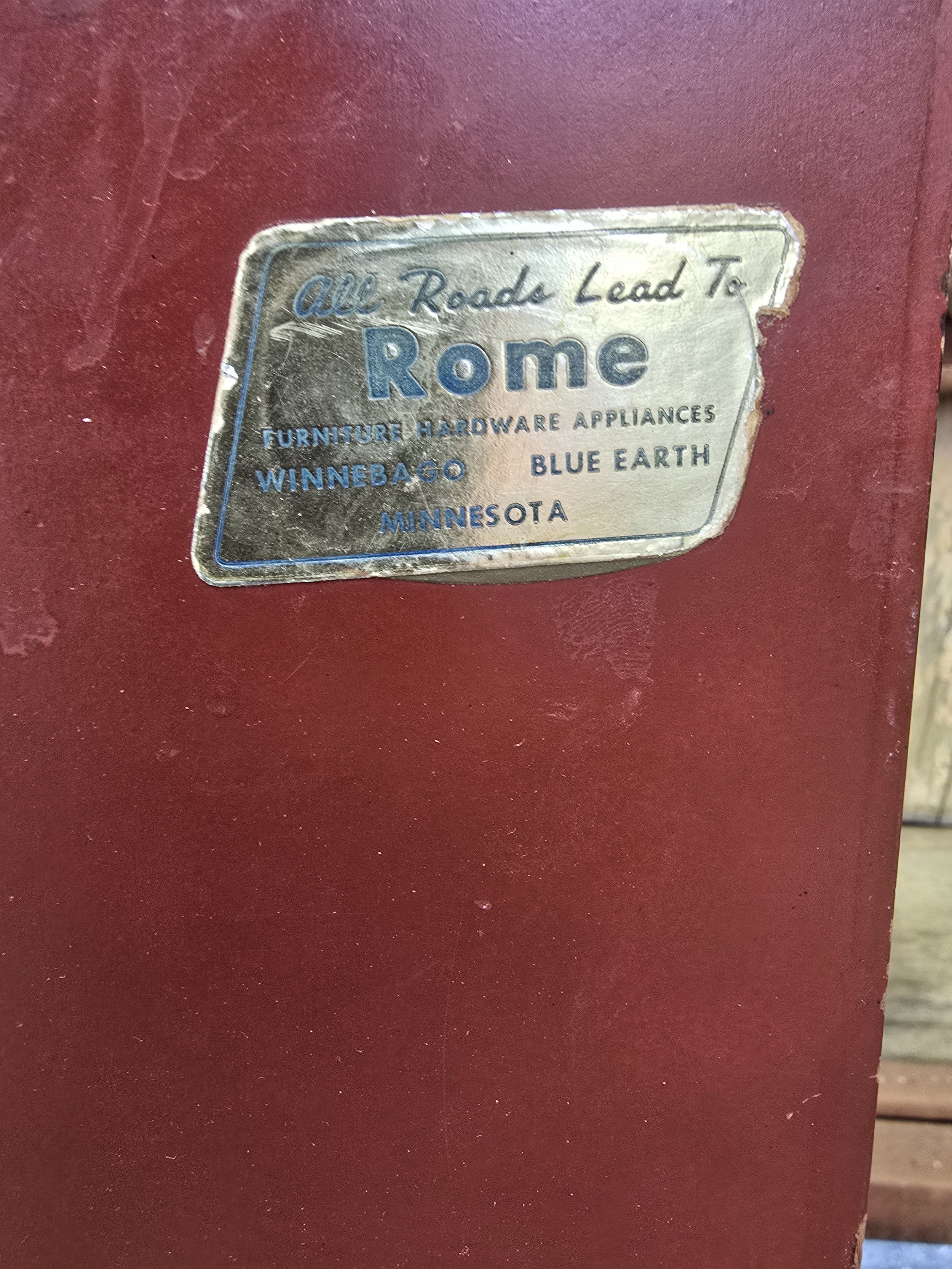 The hardware is so fabulous. Actually, the entire piece is fabulous. Perfect for storing records. Has a “All roads lead to Rome” sticker. We all love it and so will whoever ends up with it.