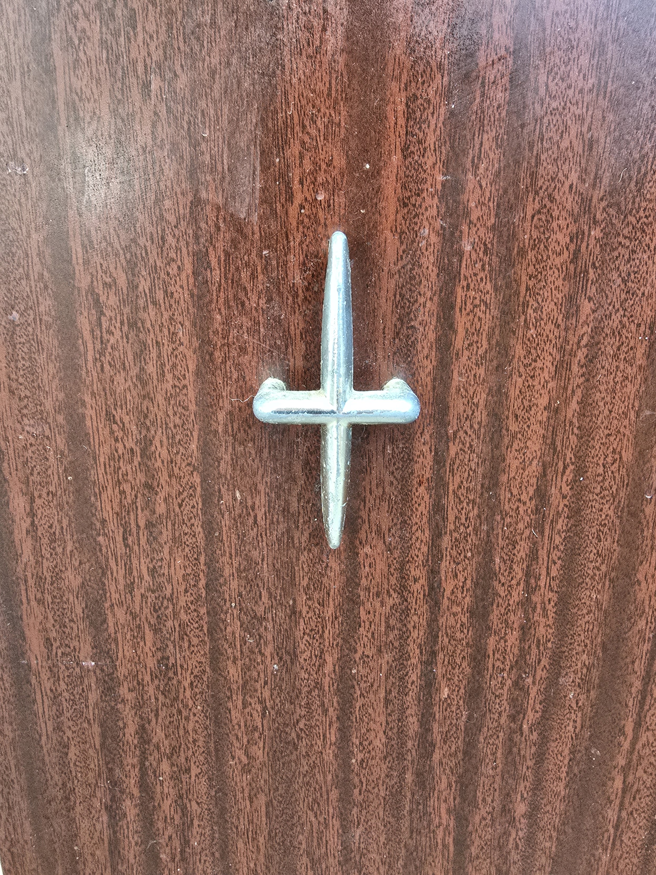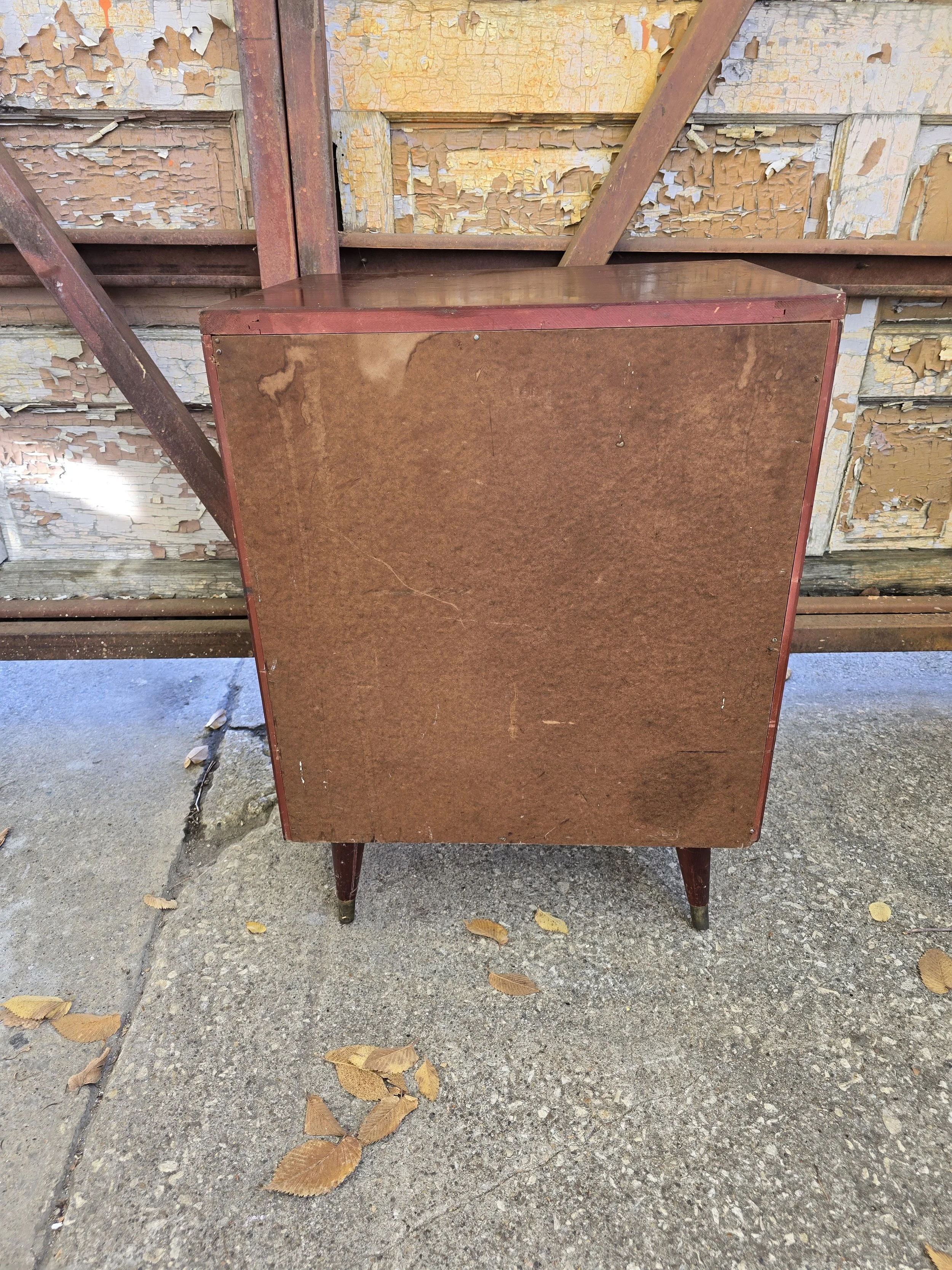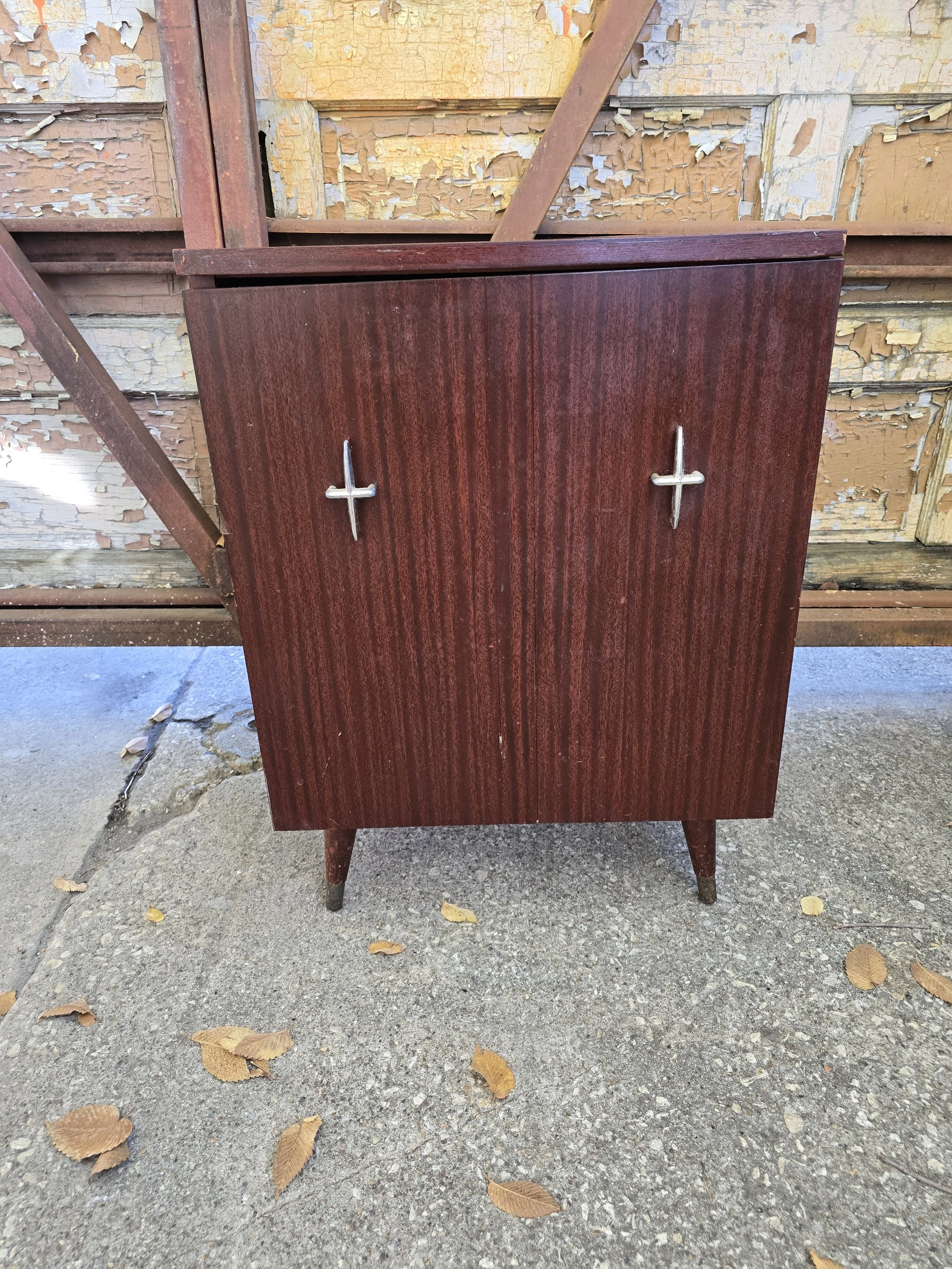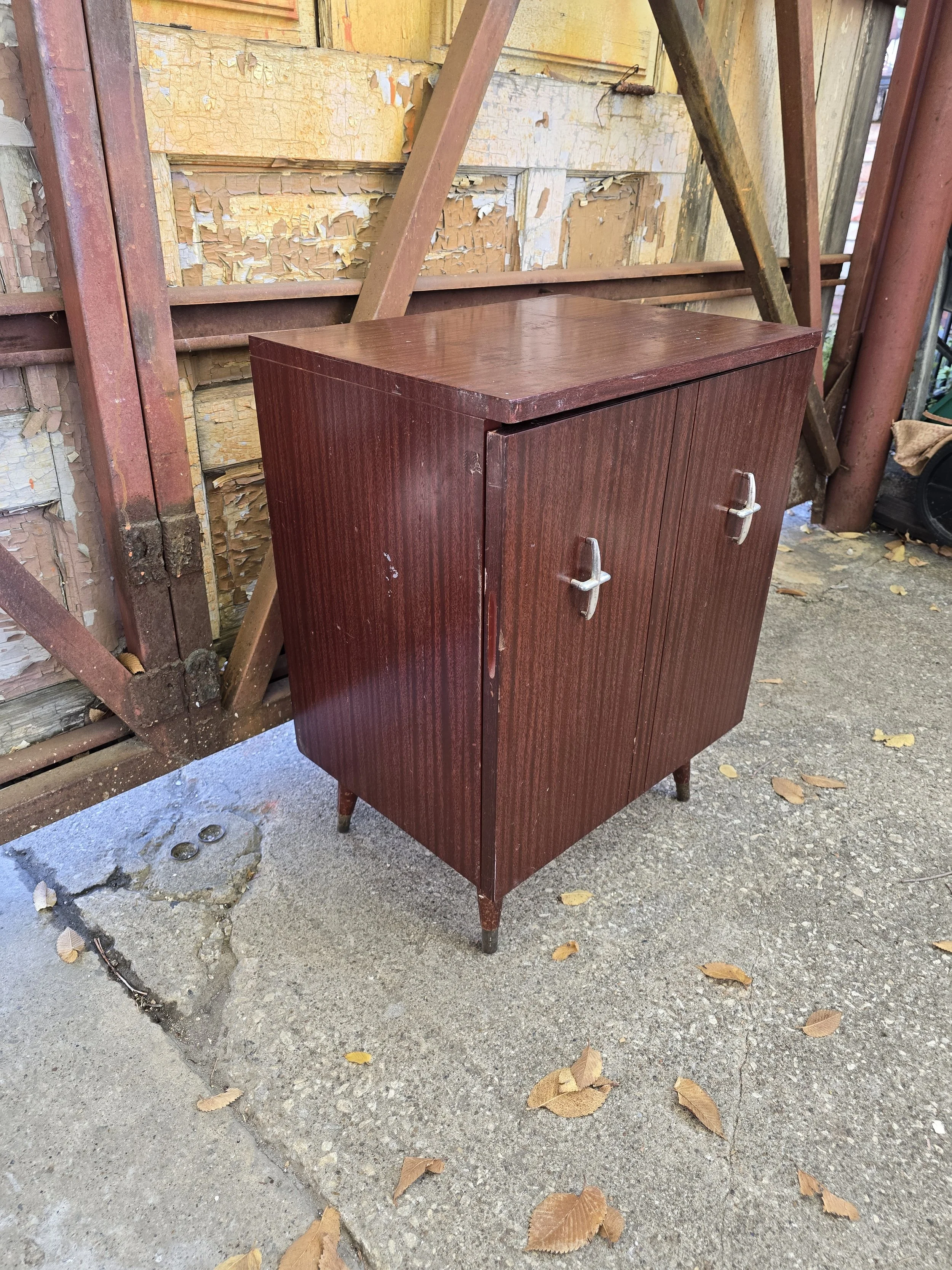 The hardware is so fabulous. Actually, the entire piece is fabulous. Perfect for storing records. Has a “All roads lead to Rome” sticker. We all love it and so will whoever ends up with it.
