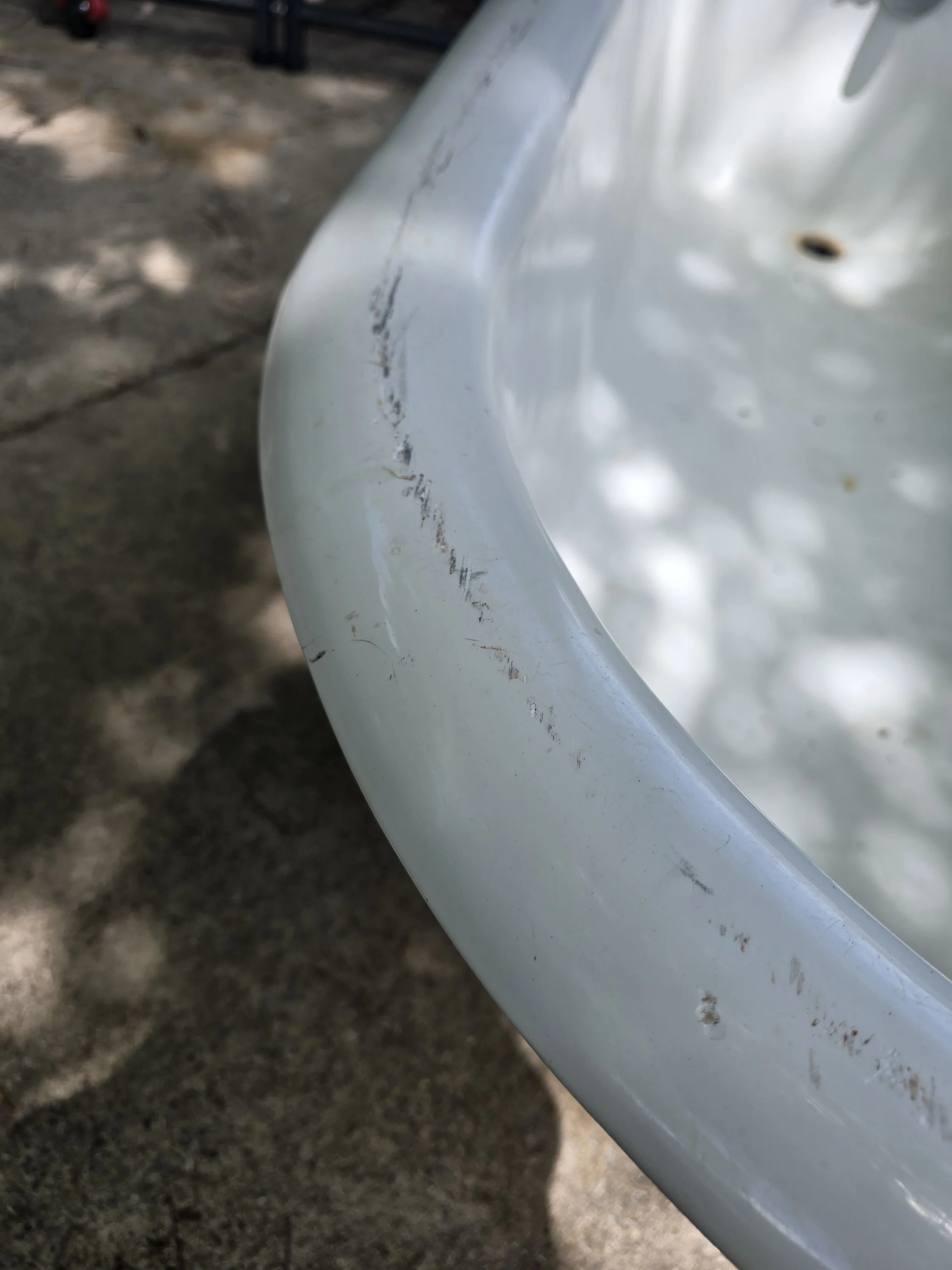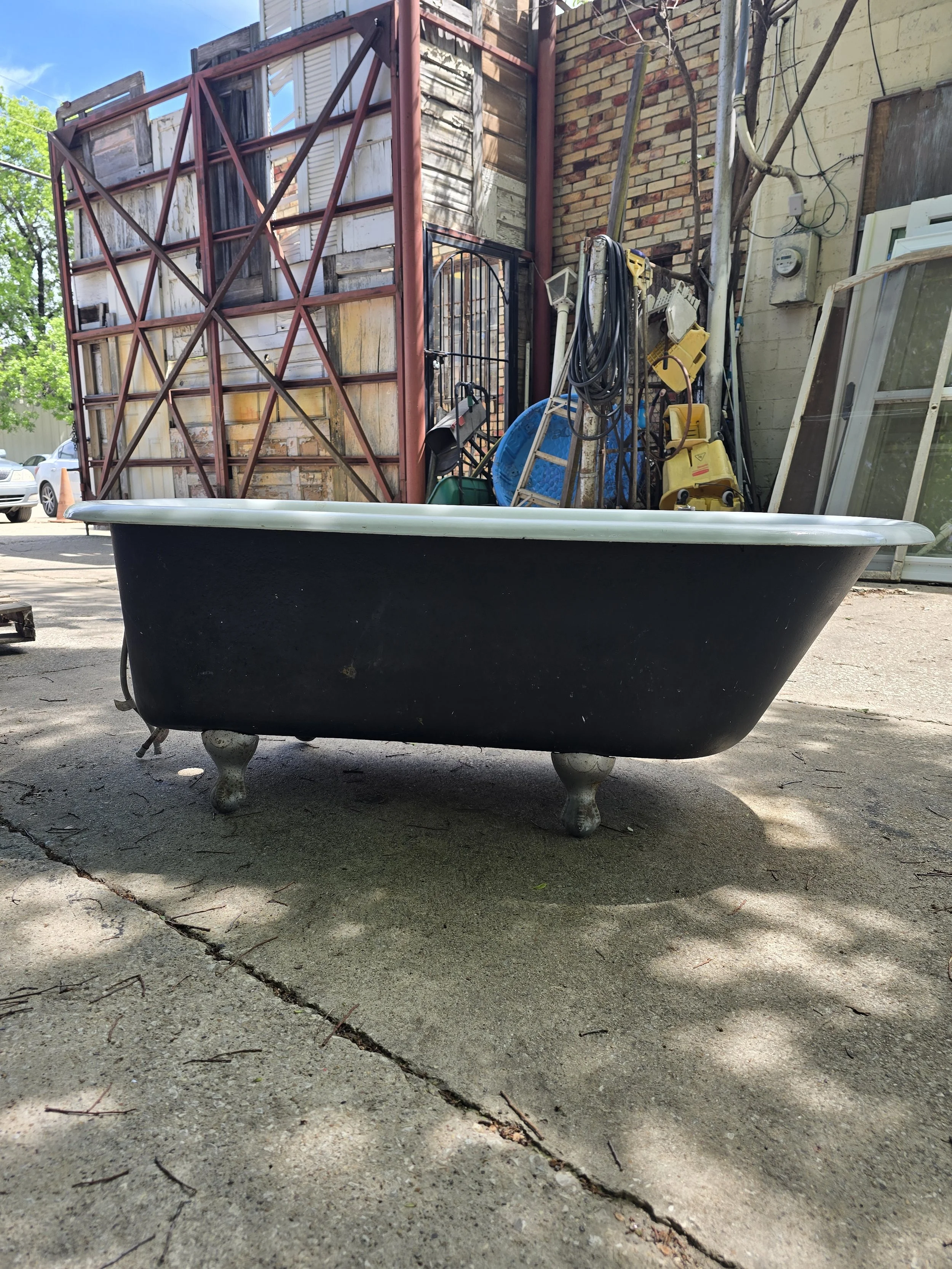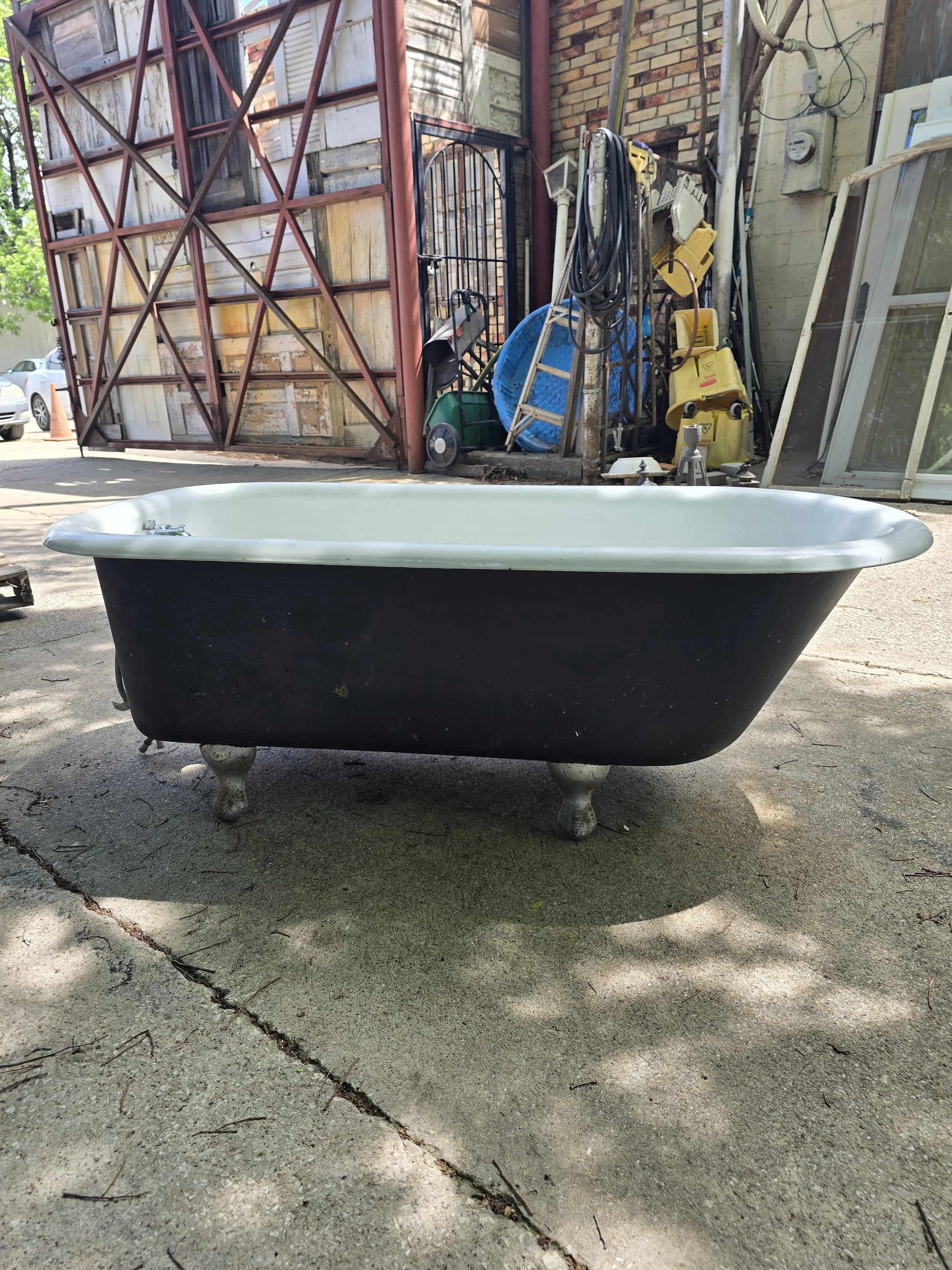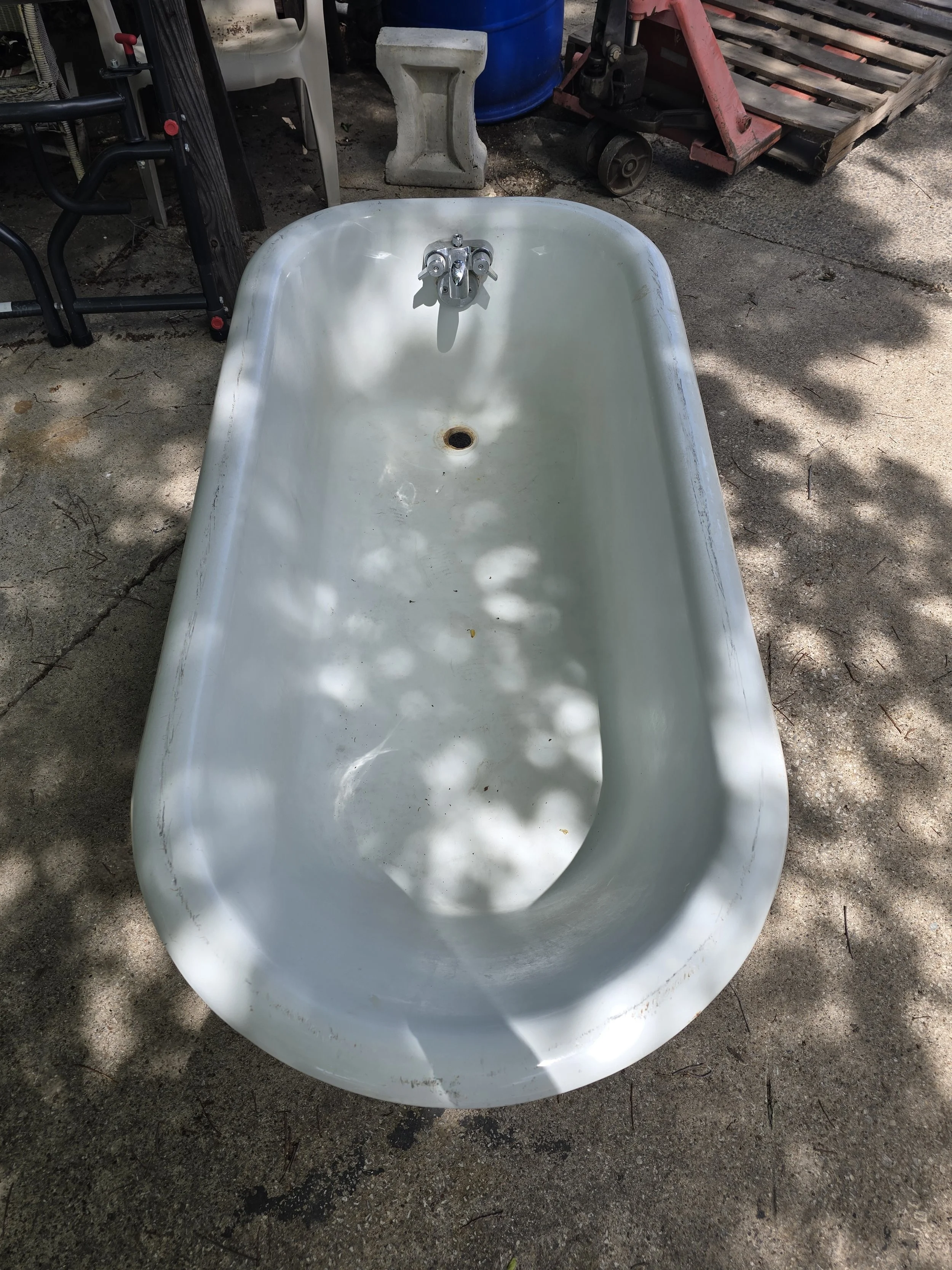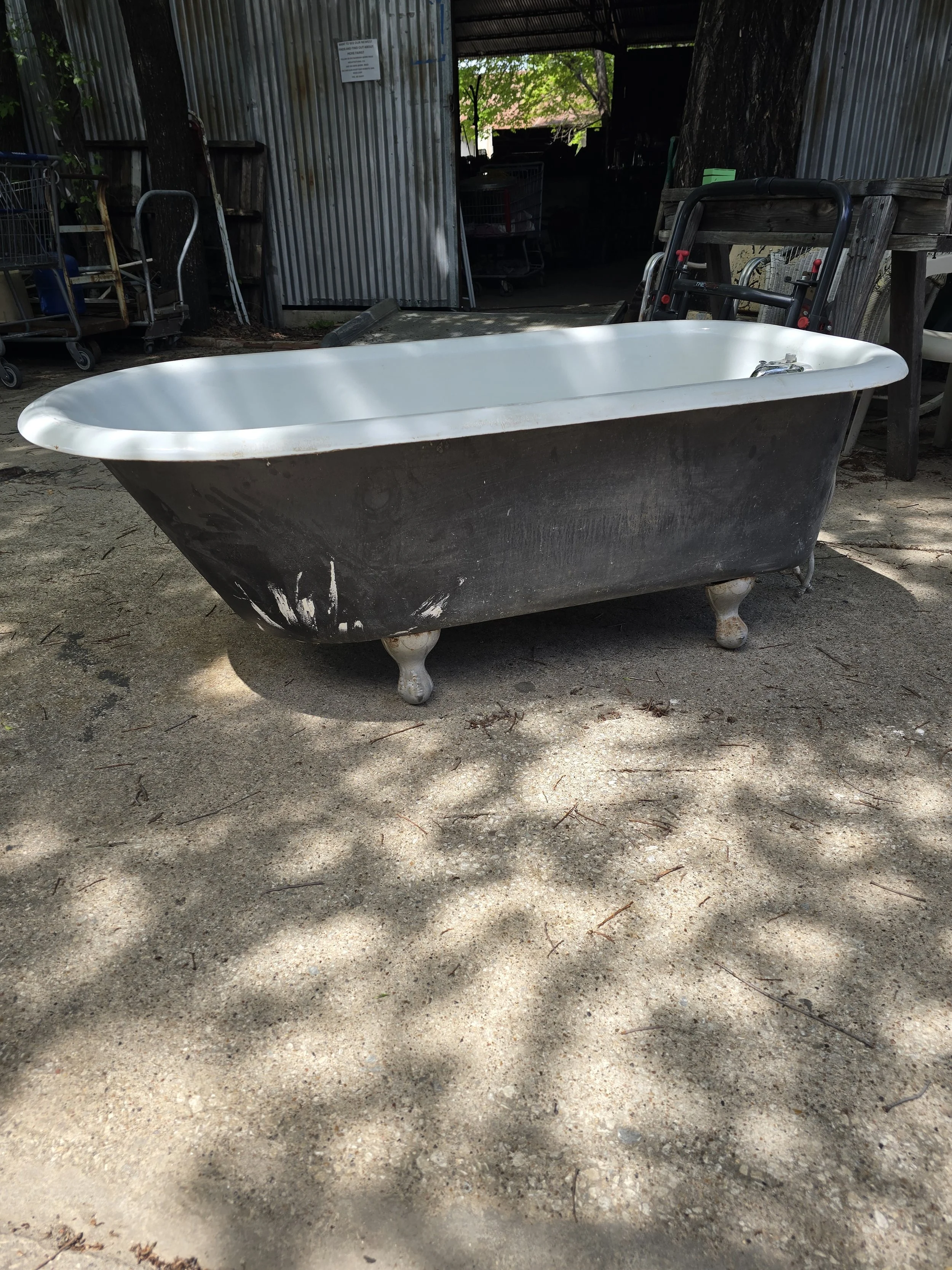 Cast iron freestanding tub removed from historic Oak Cliff home. Overall the tub is in good condition, there is some scratching on the roll rim.