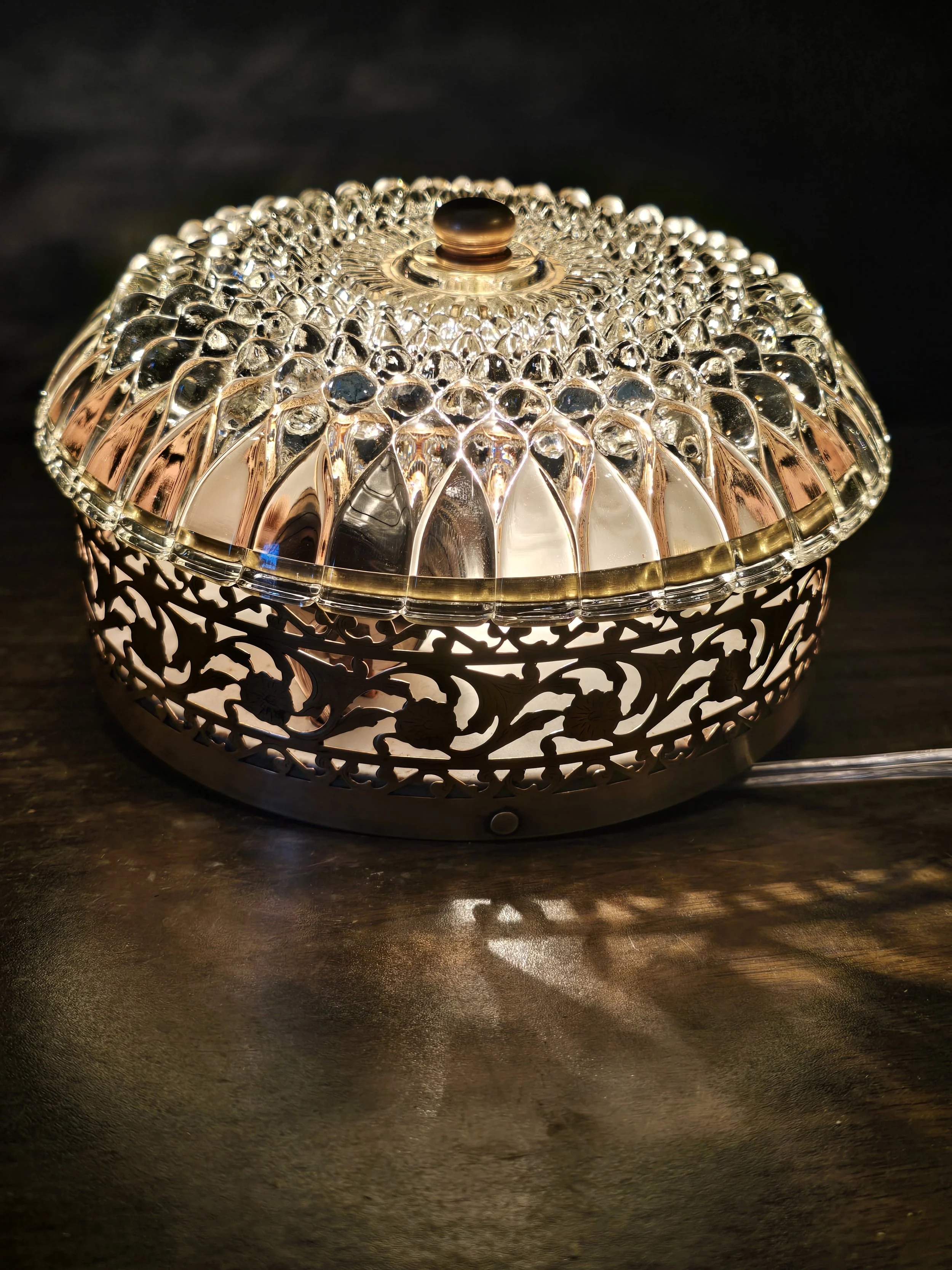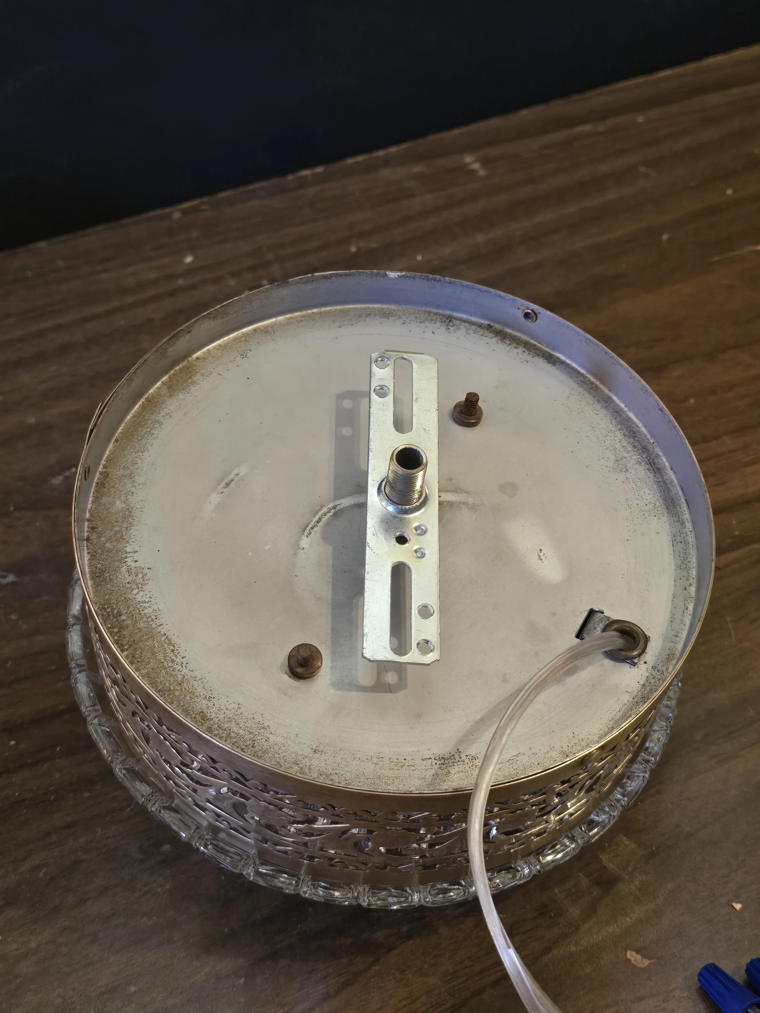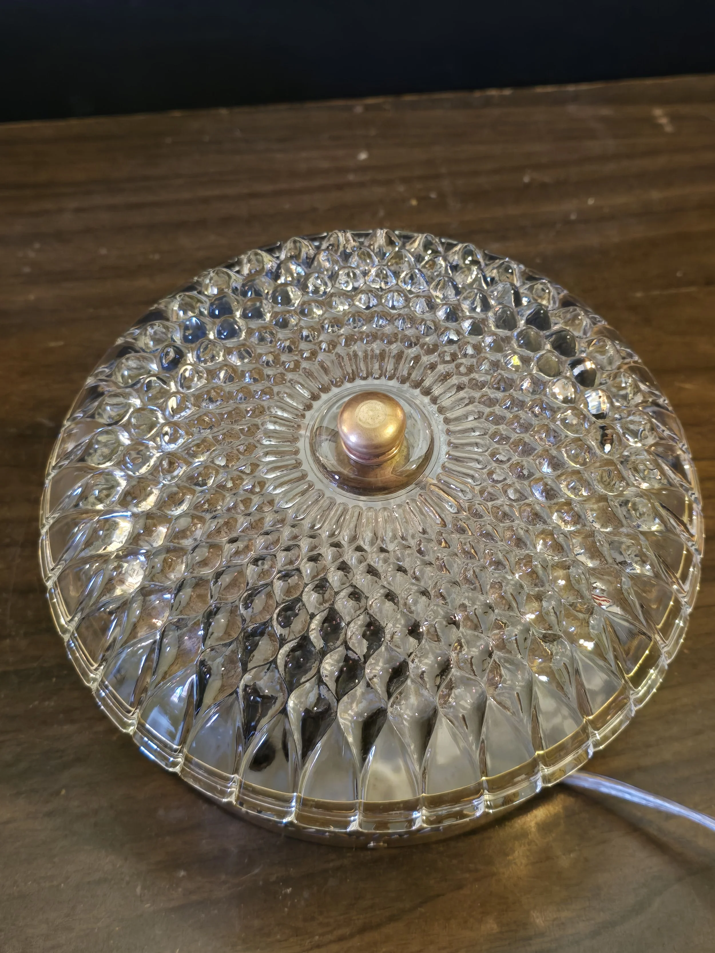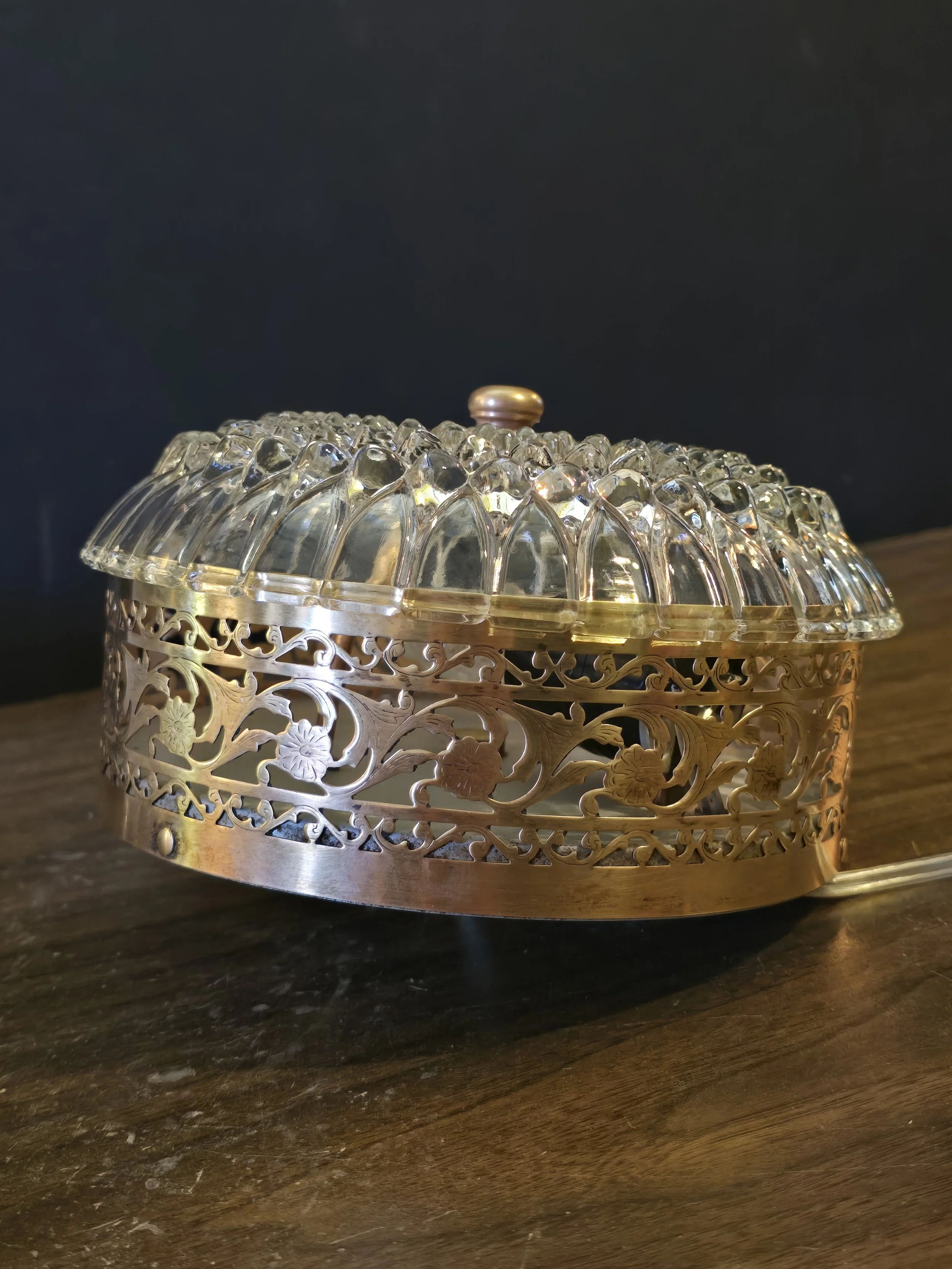 1940's Flush Mount Brass and Cut Glass Light