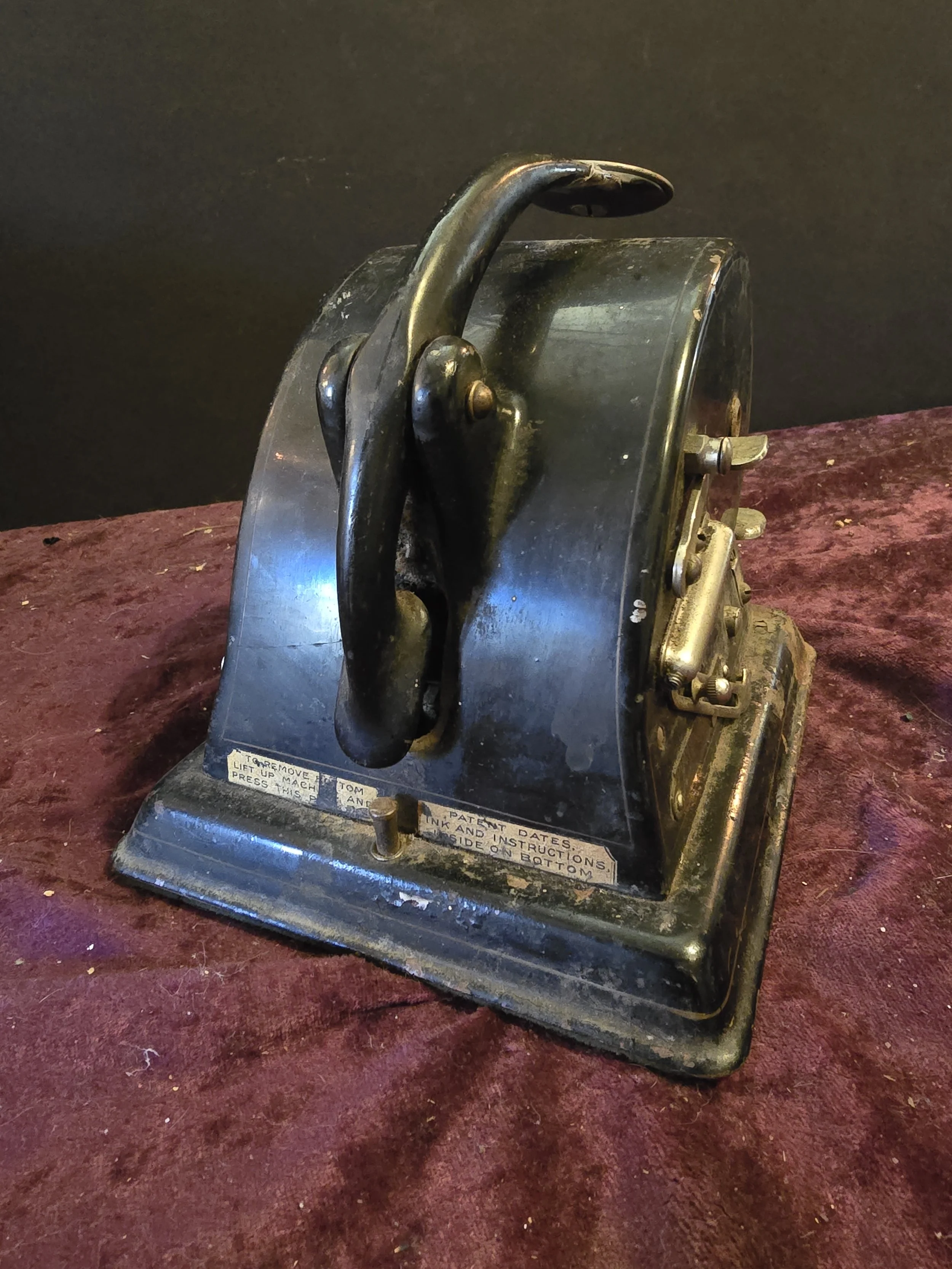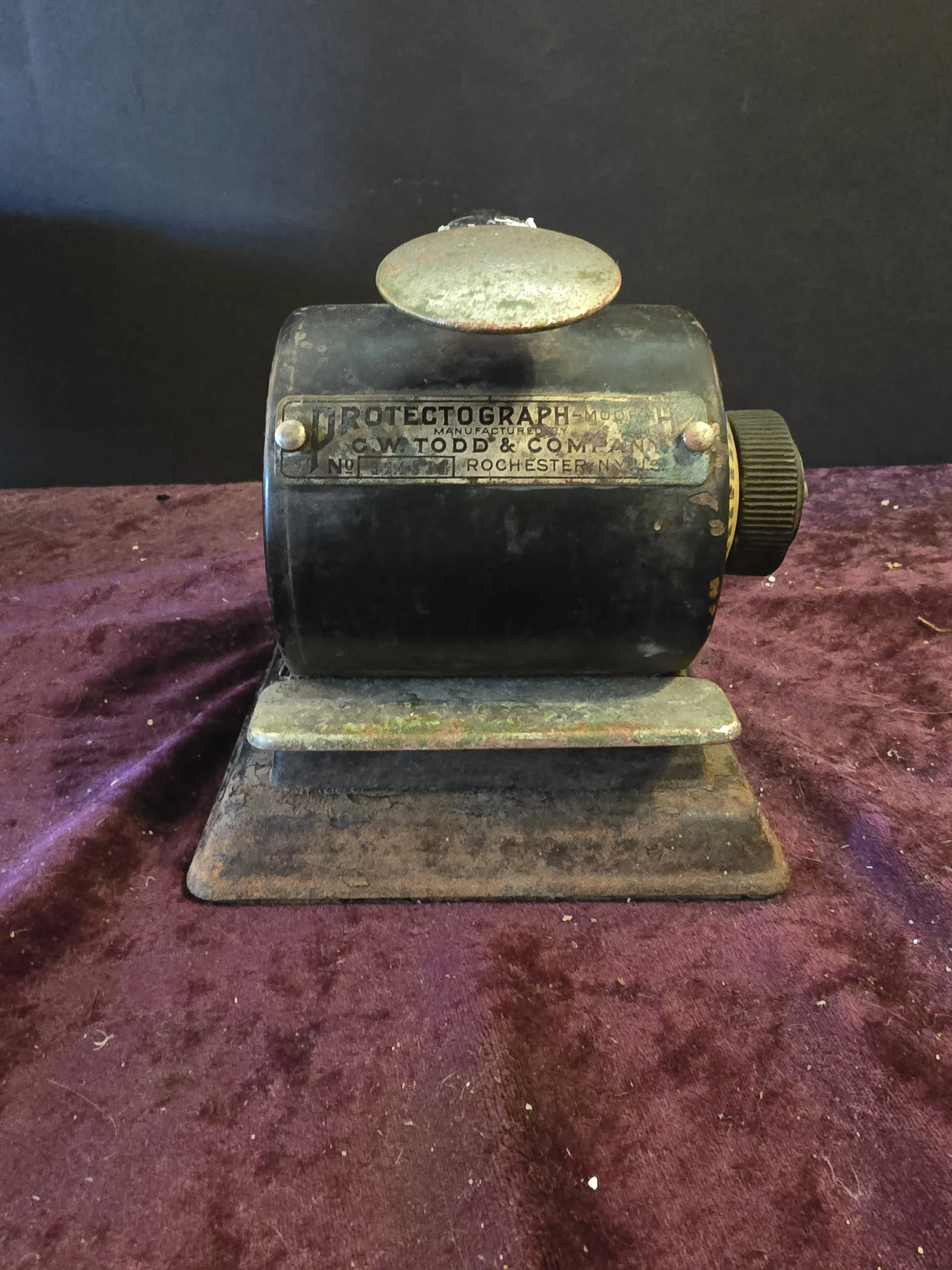 Vintage C. W. Todd Protectograph check stamp machine. I dont believe it works, may even be missing something. But its a cool piece of history.