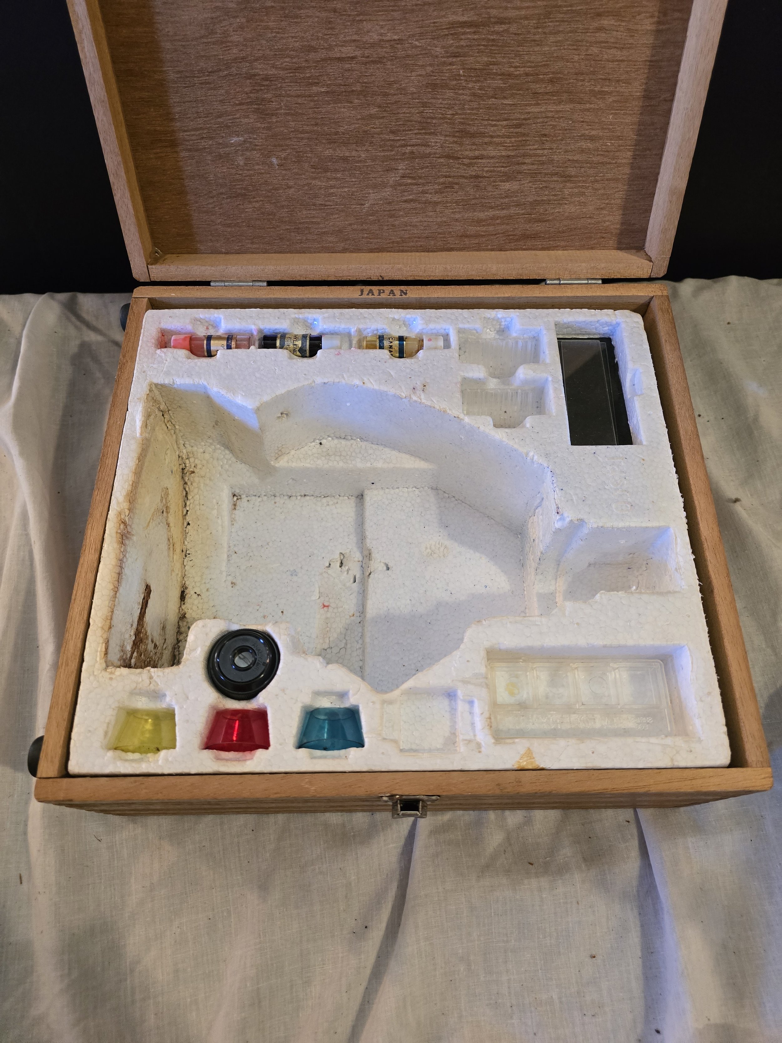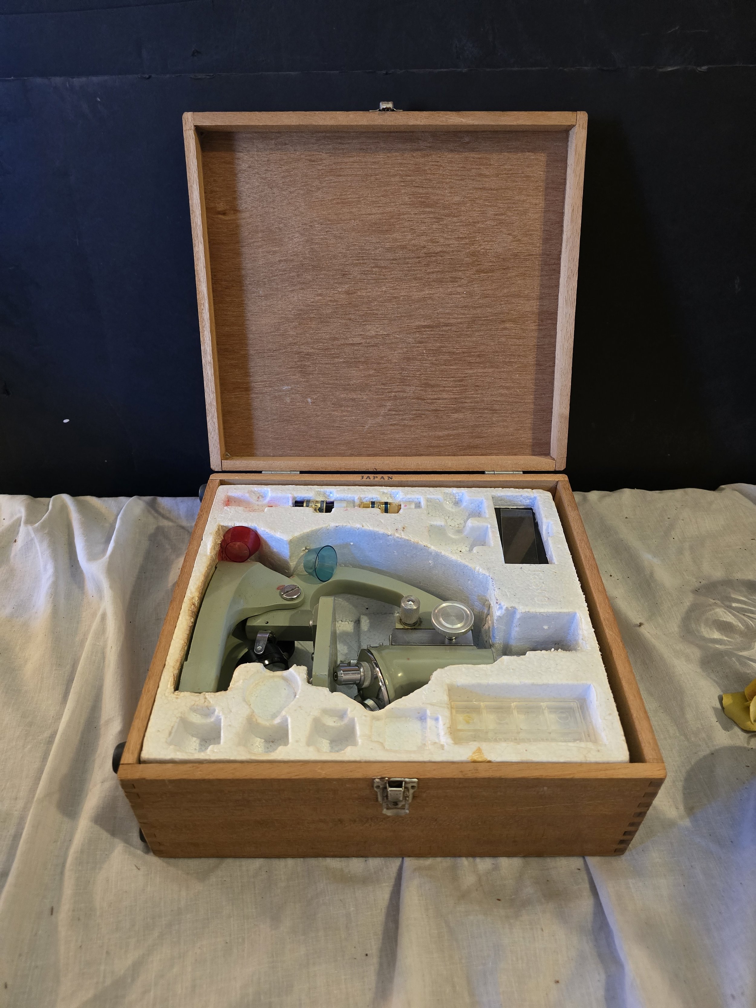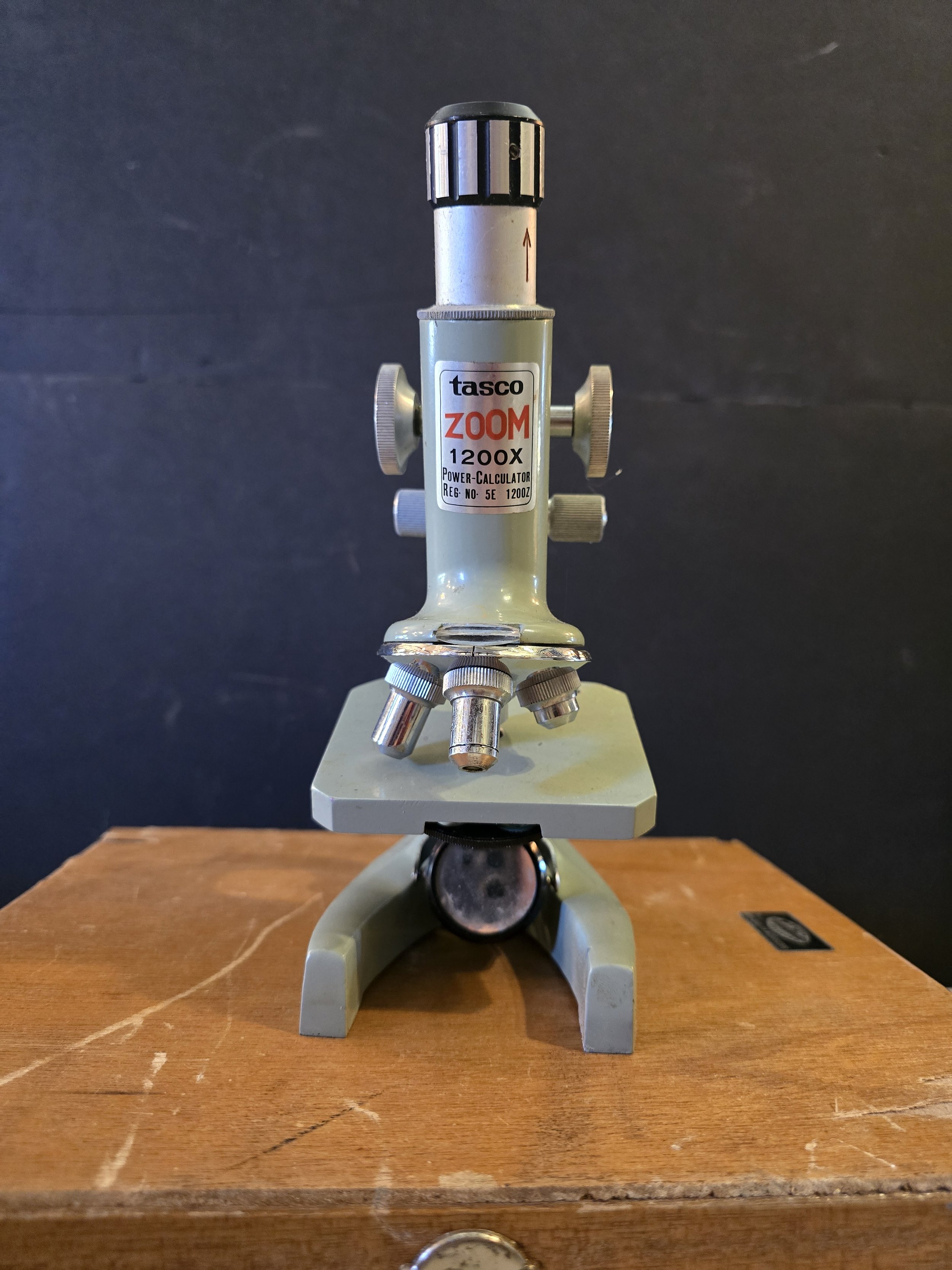 Vintage Tasco Zoom 1200x microscope and accessories. Original box included.