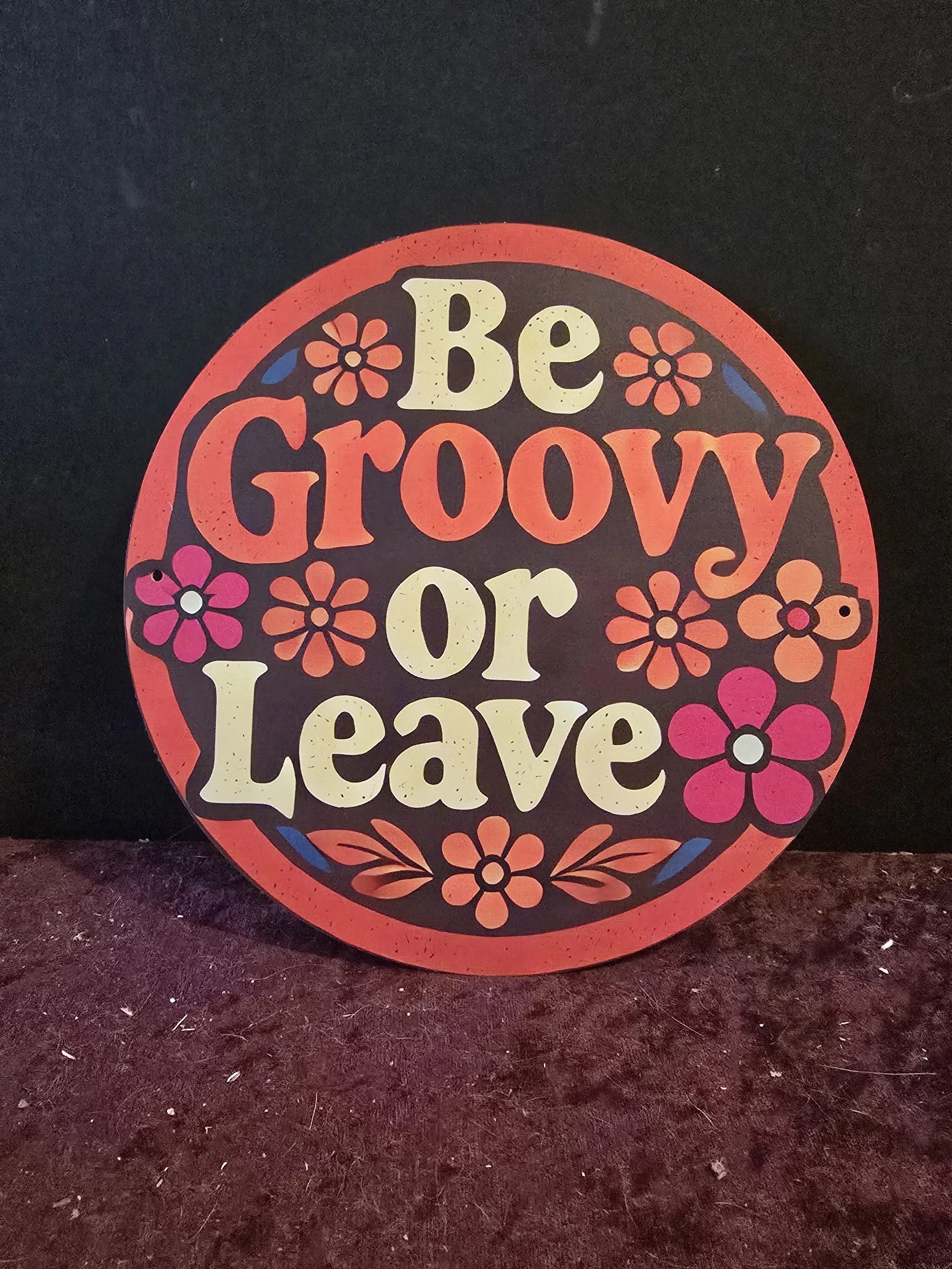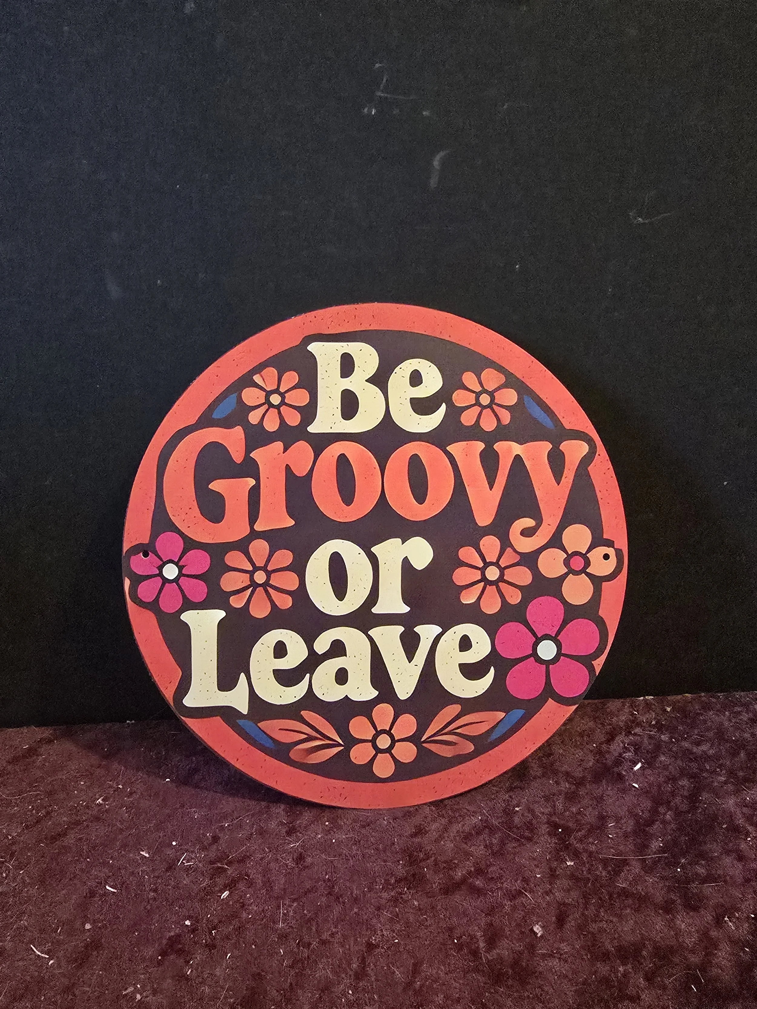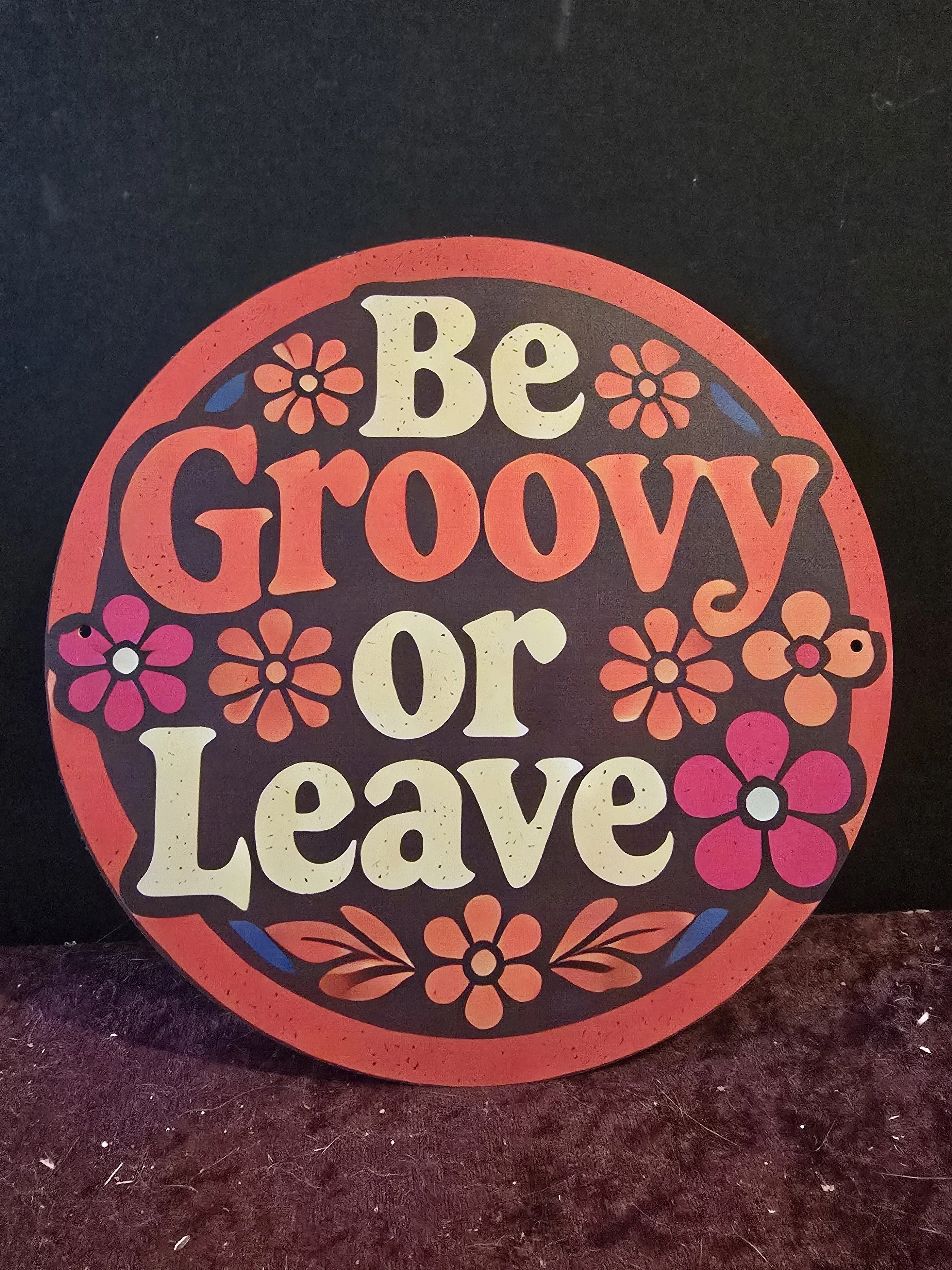 Cute metal sign that says “Be Groovy or Leave”. We have this same sign in our shop and everyone loves it, so we got some to sell. Quantities are limited