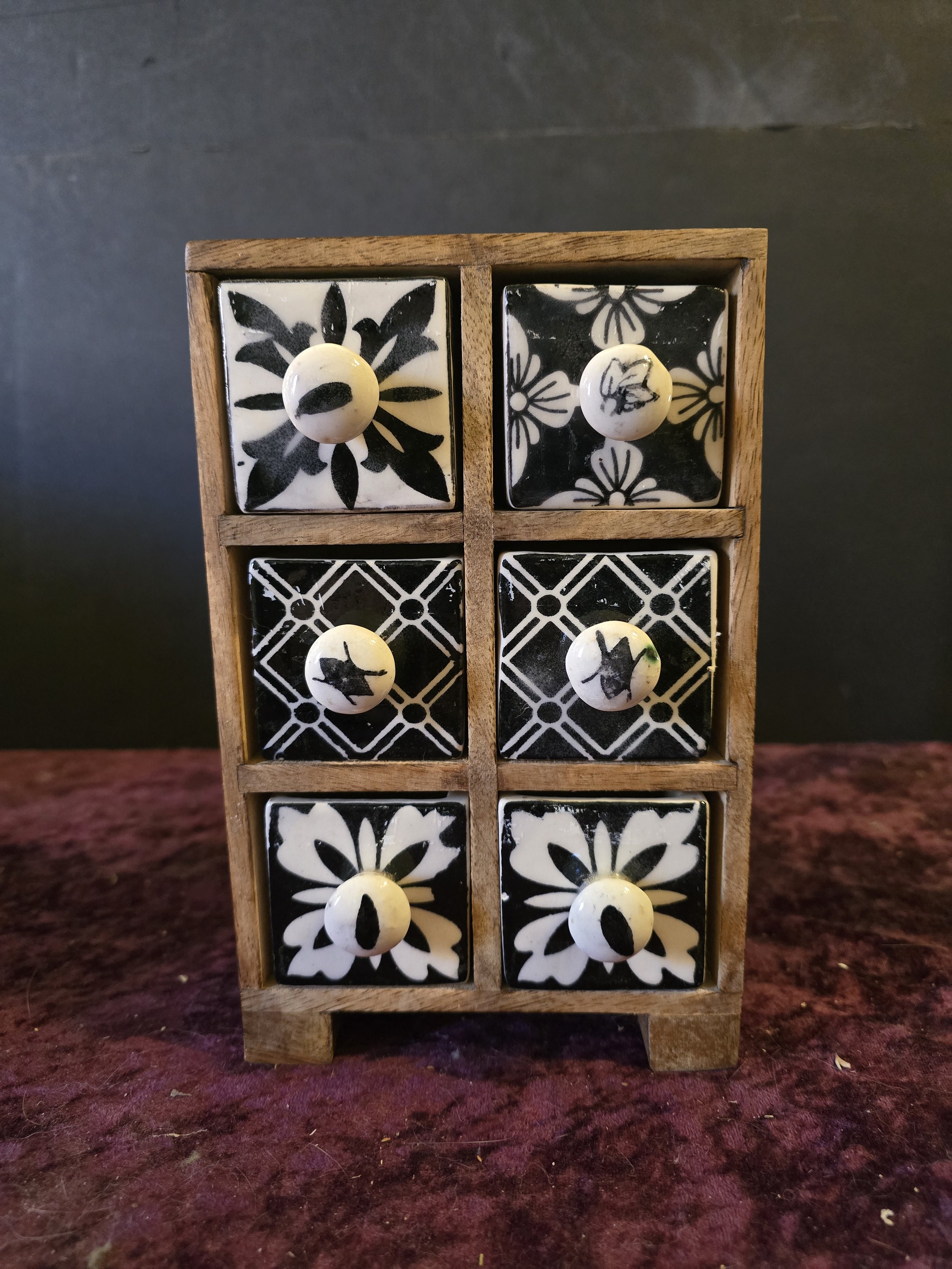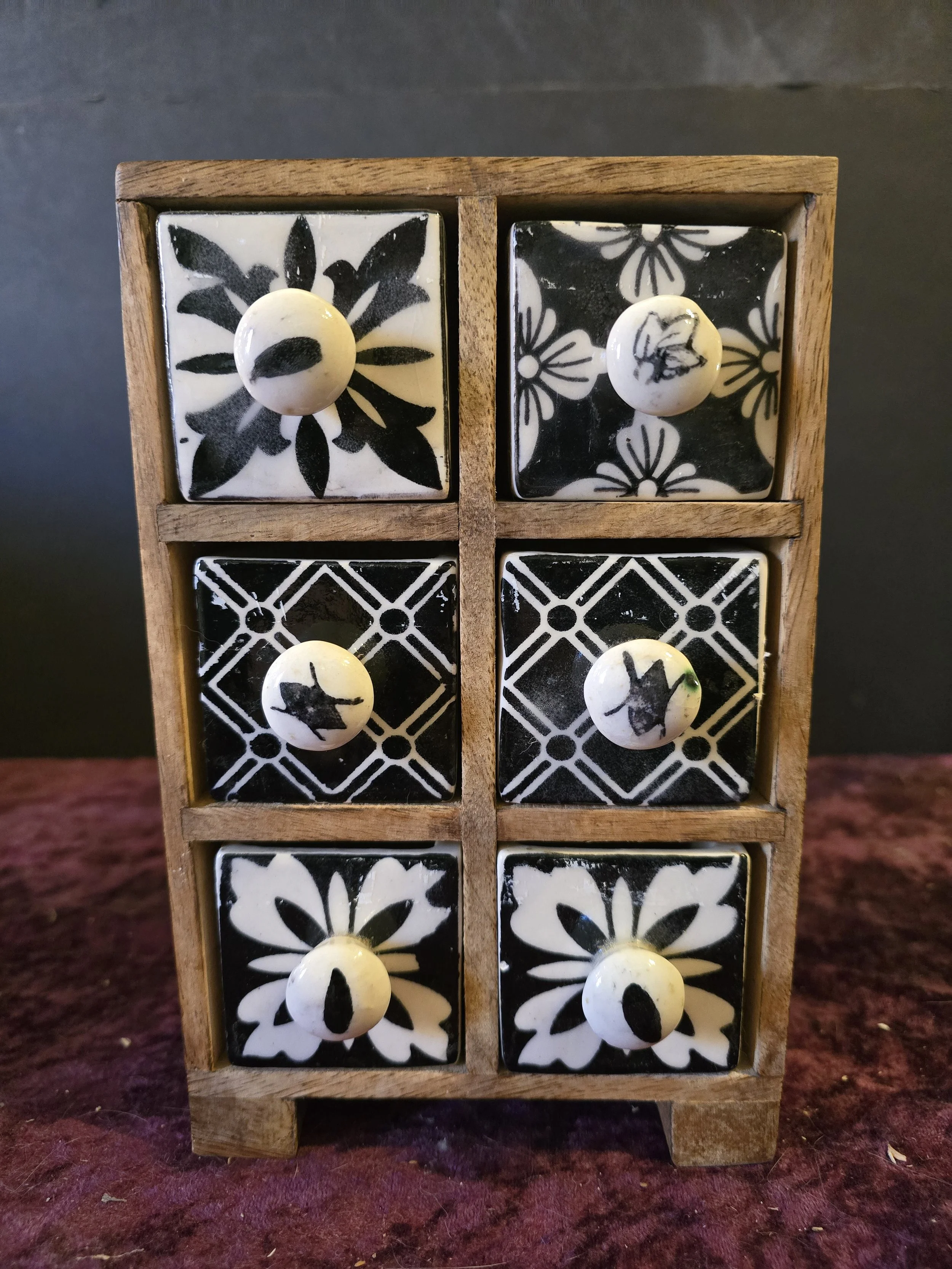 Apothecary Wooden Chest With Ceramic Drawers Spice Storage