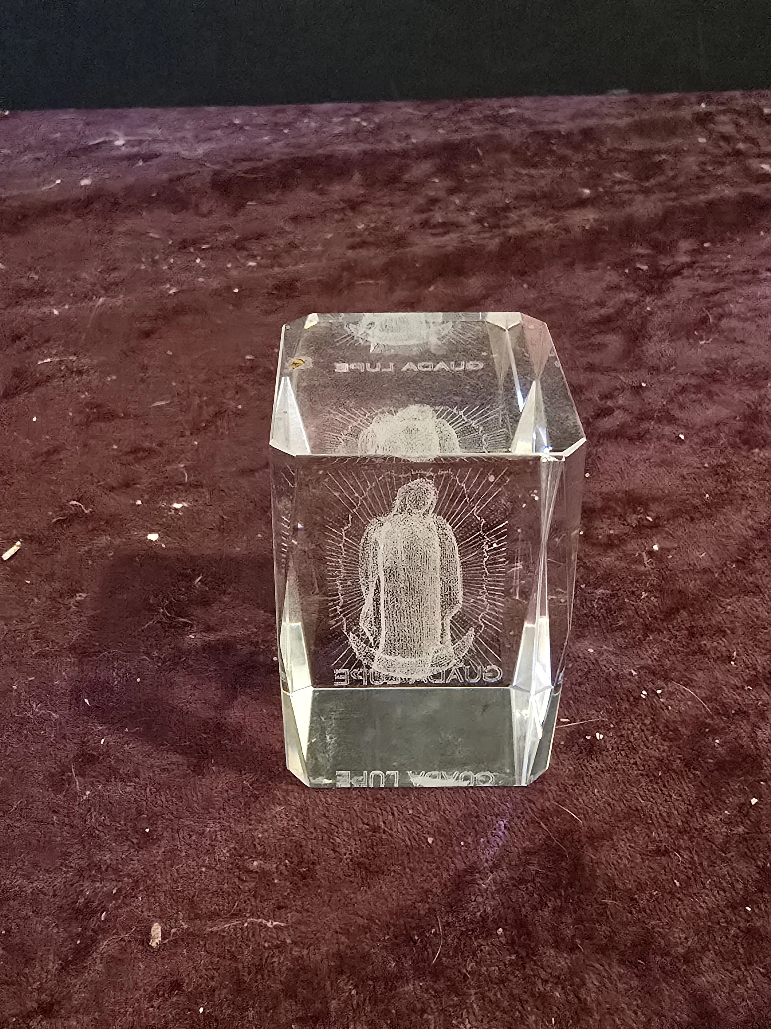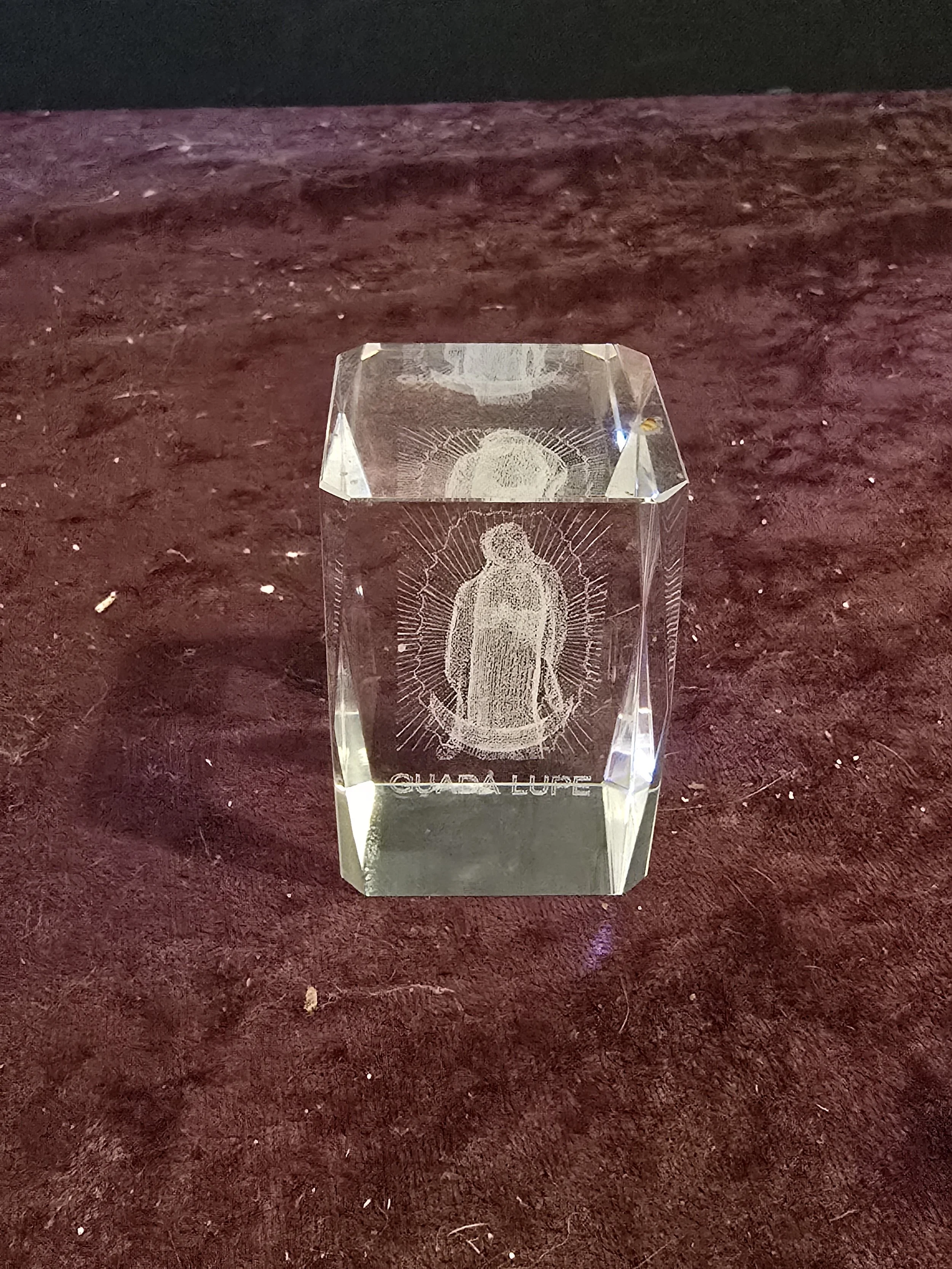 3-d laser cut Lady of Guadalupe paperweight. In original box.