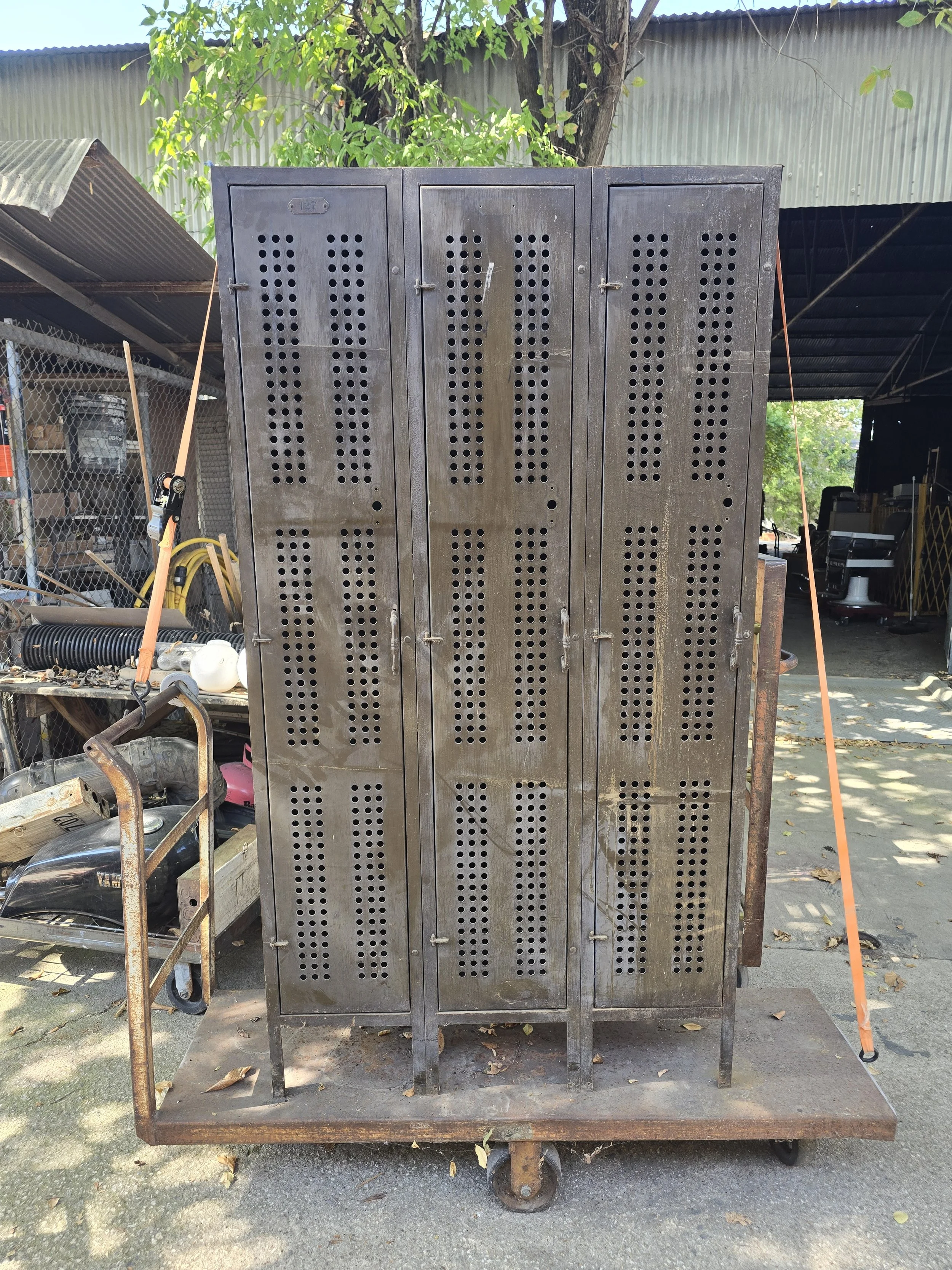 Old Metal Free Standing Triple Locker