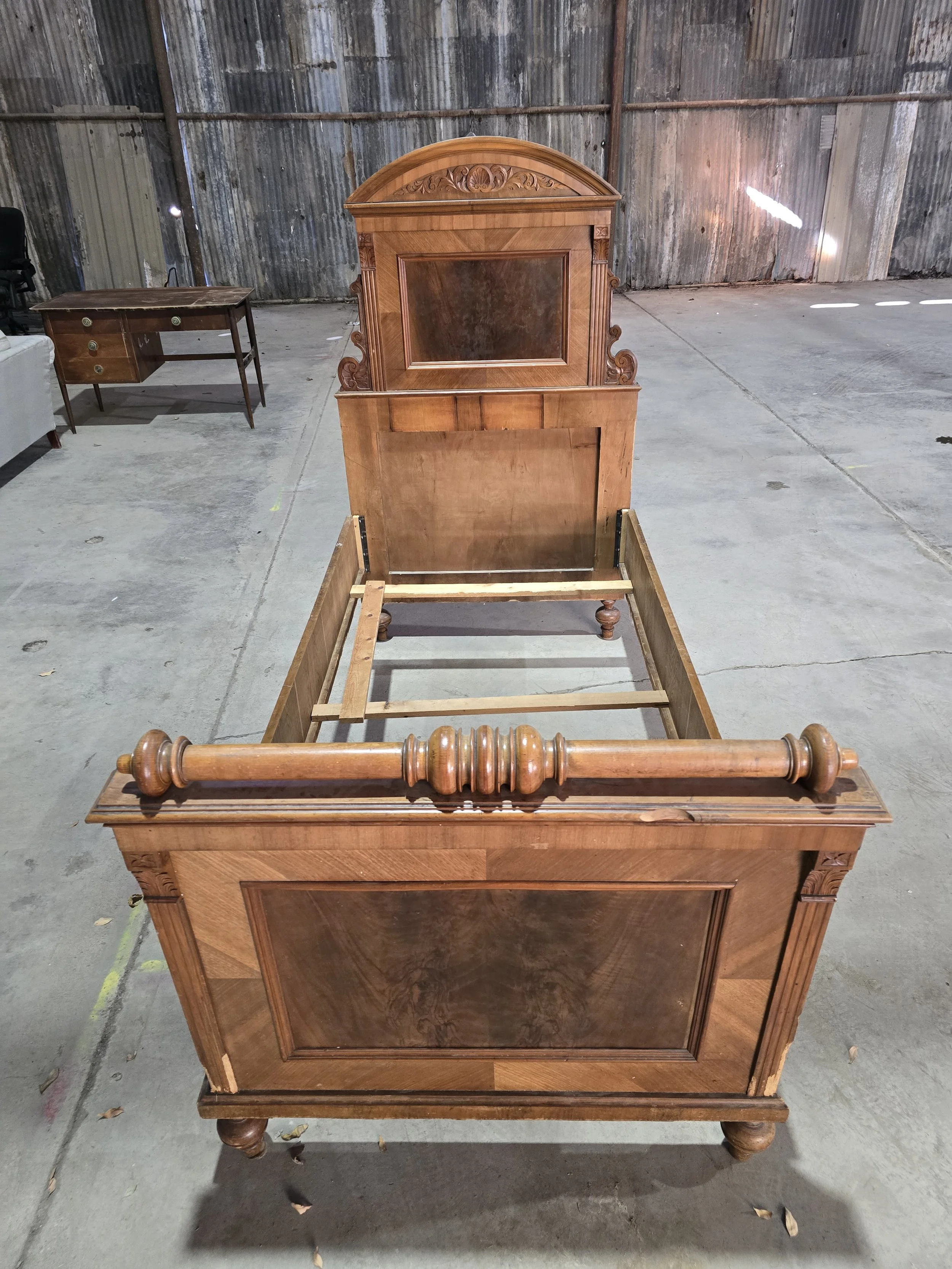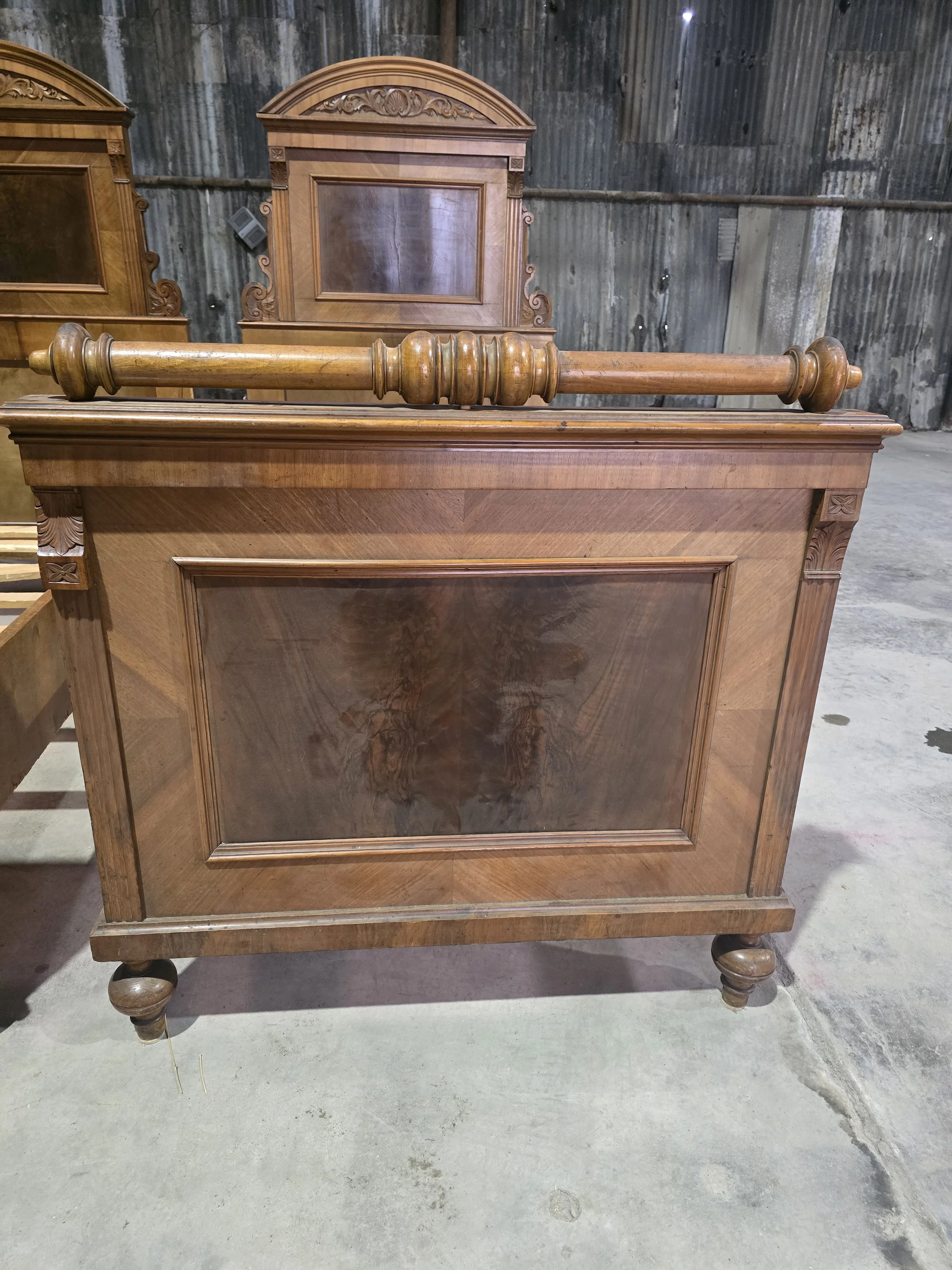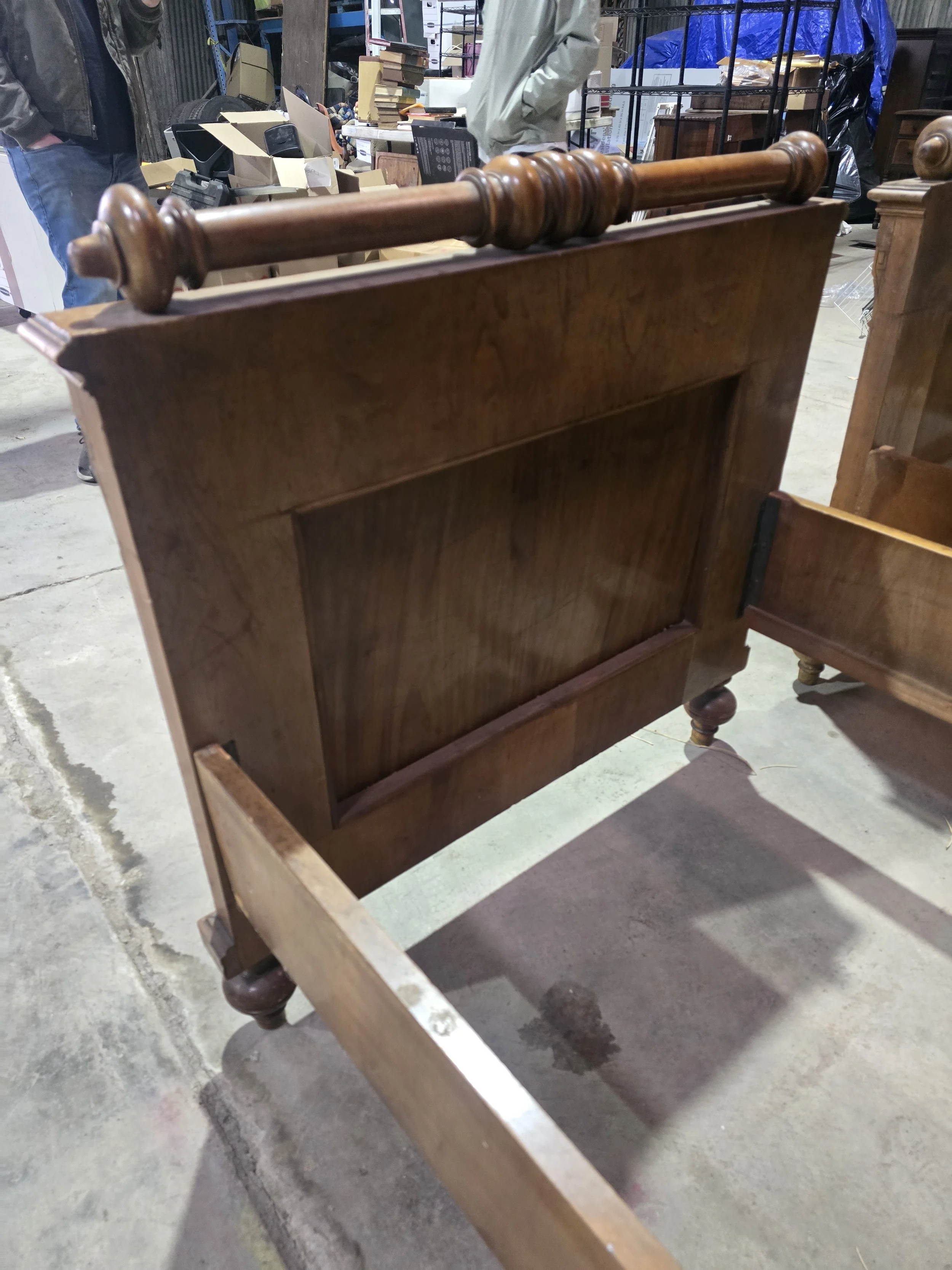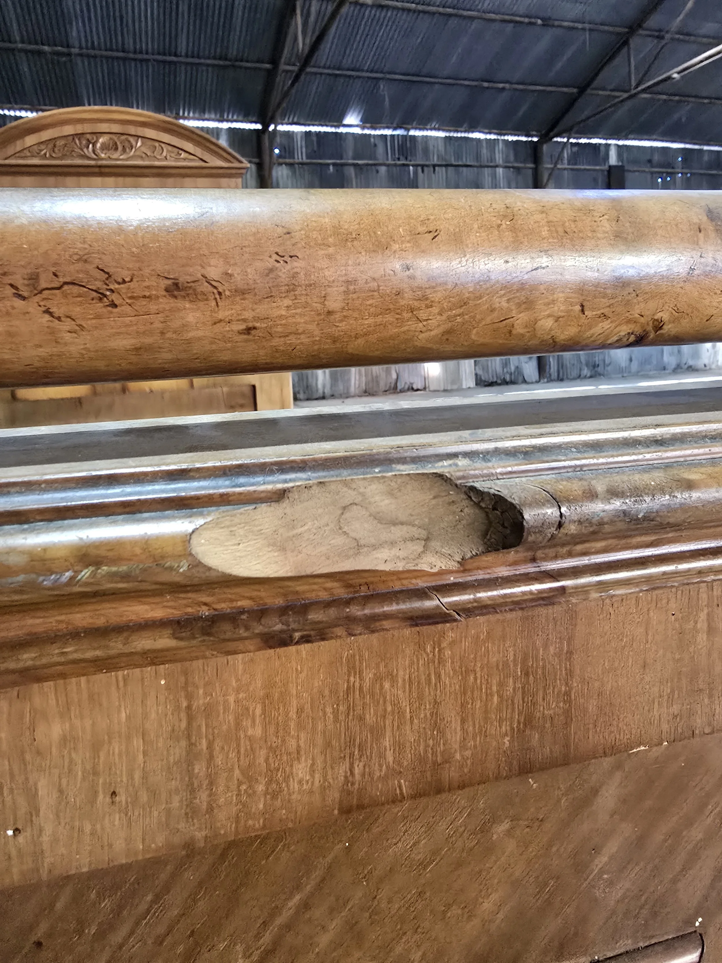 Gorgeous antique bed. Currently we have 2 matching, this is the one in better shape. I don’t see any damage.