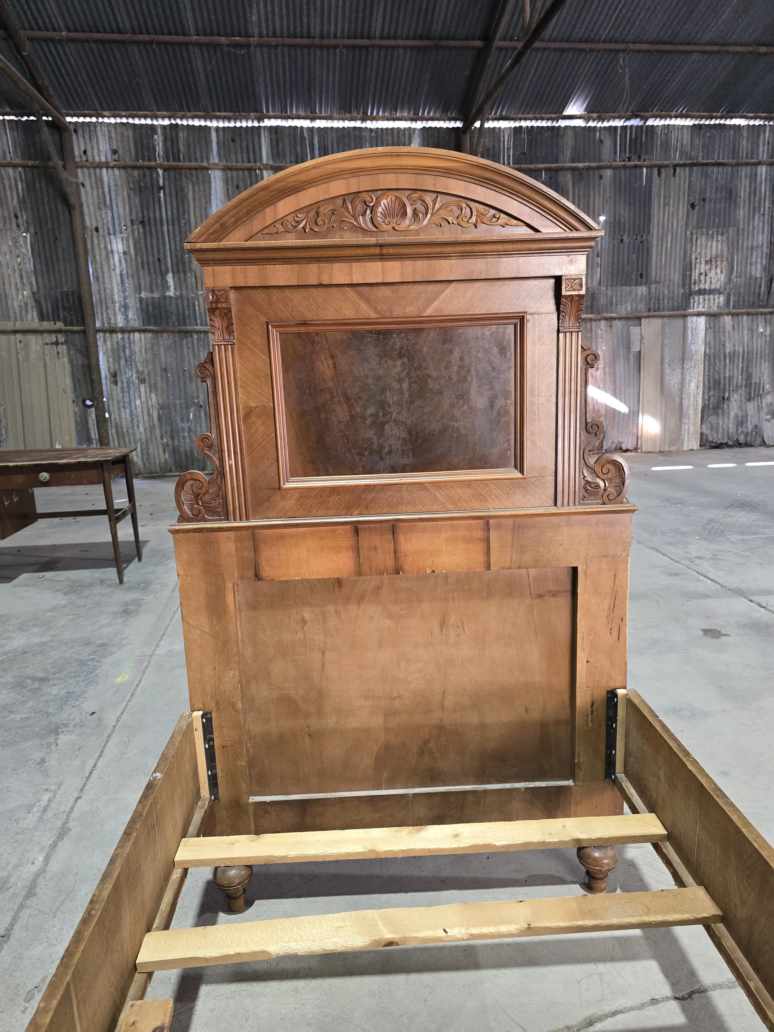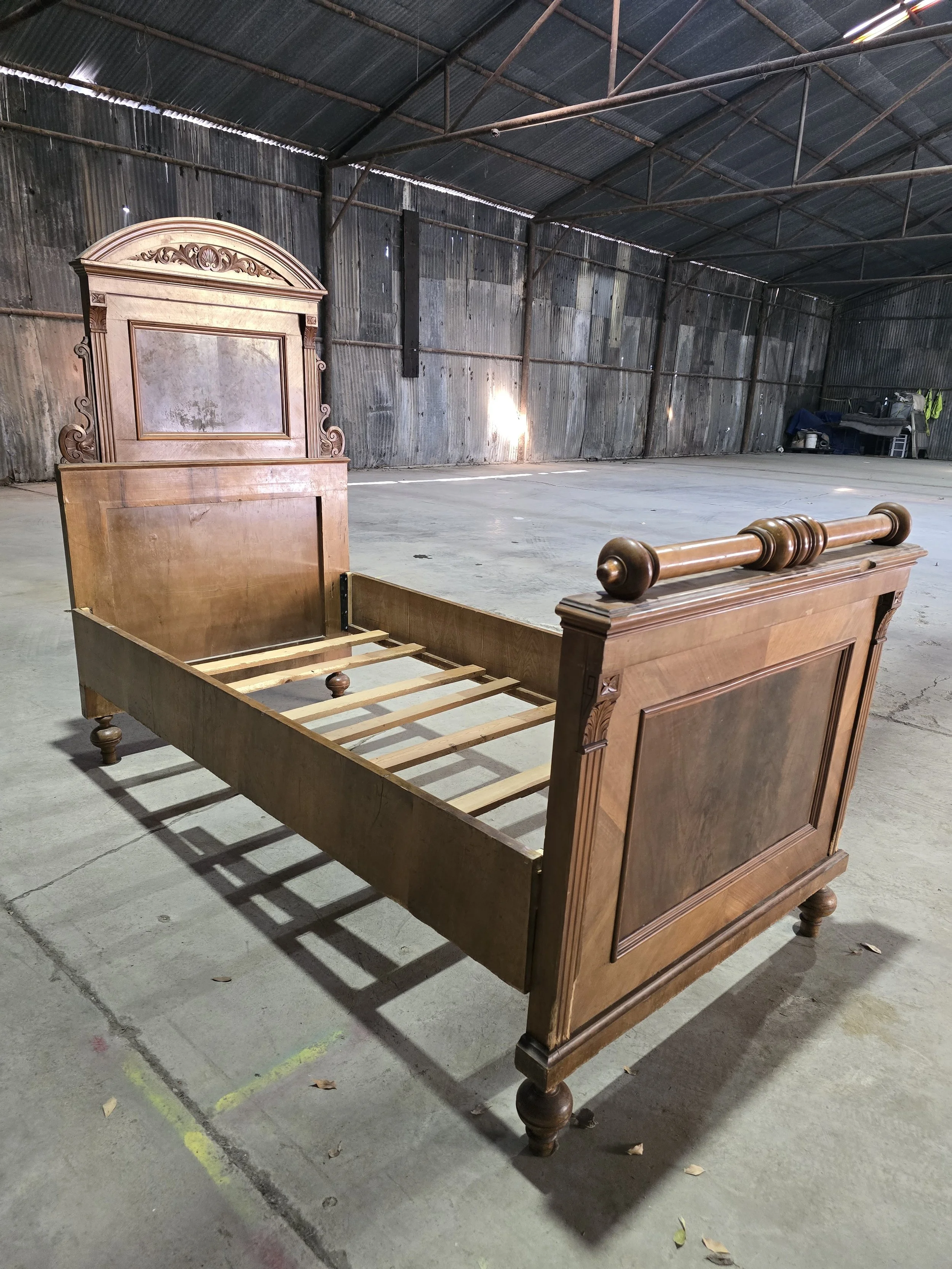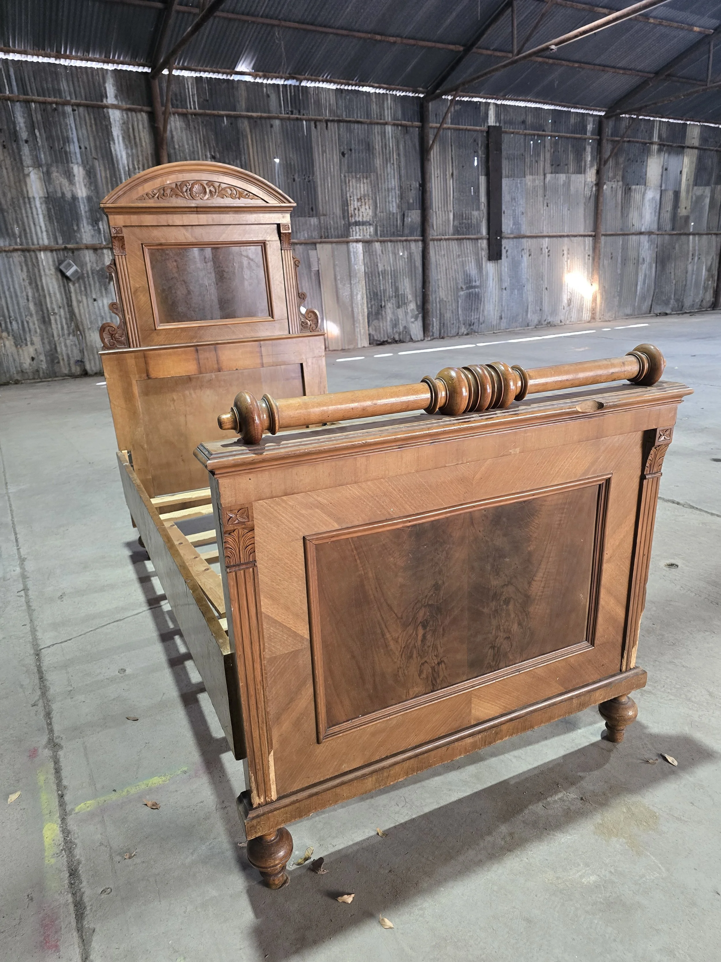 Gorgeous antique bed. Currently we have 2 matching, this is the one in better shape. I don’t see any damage.