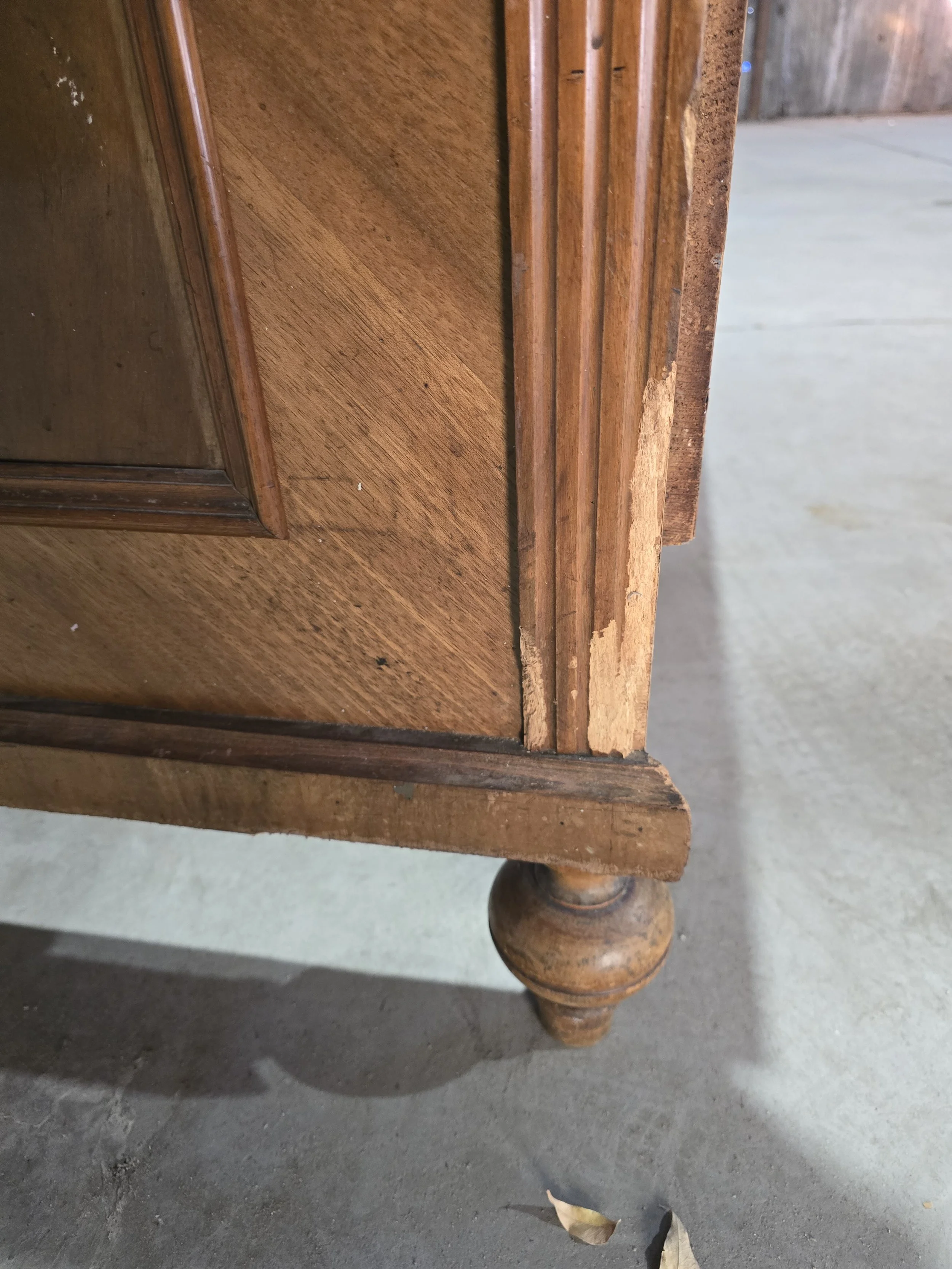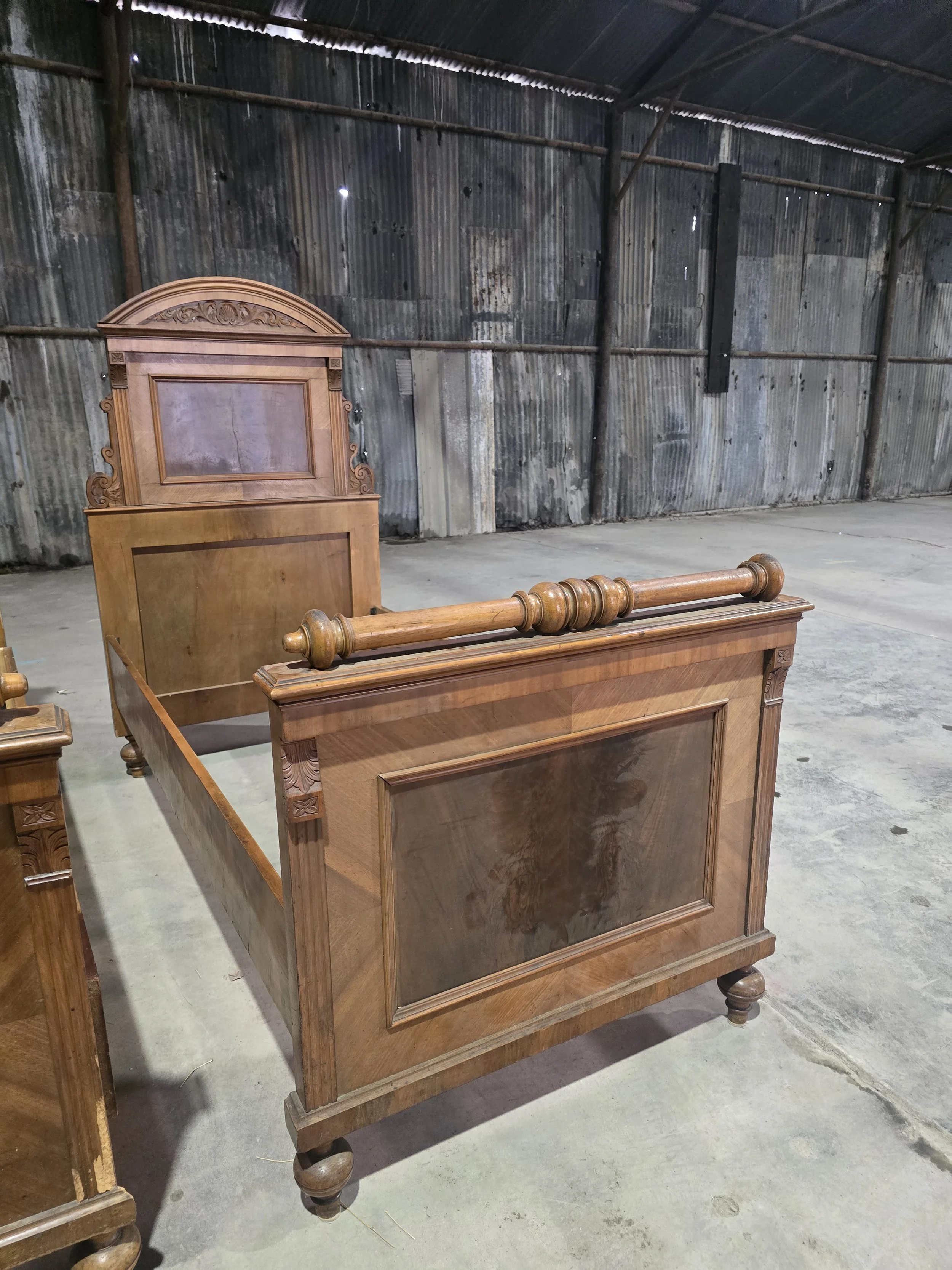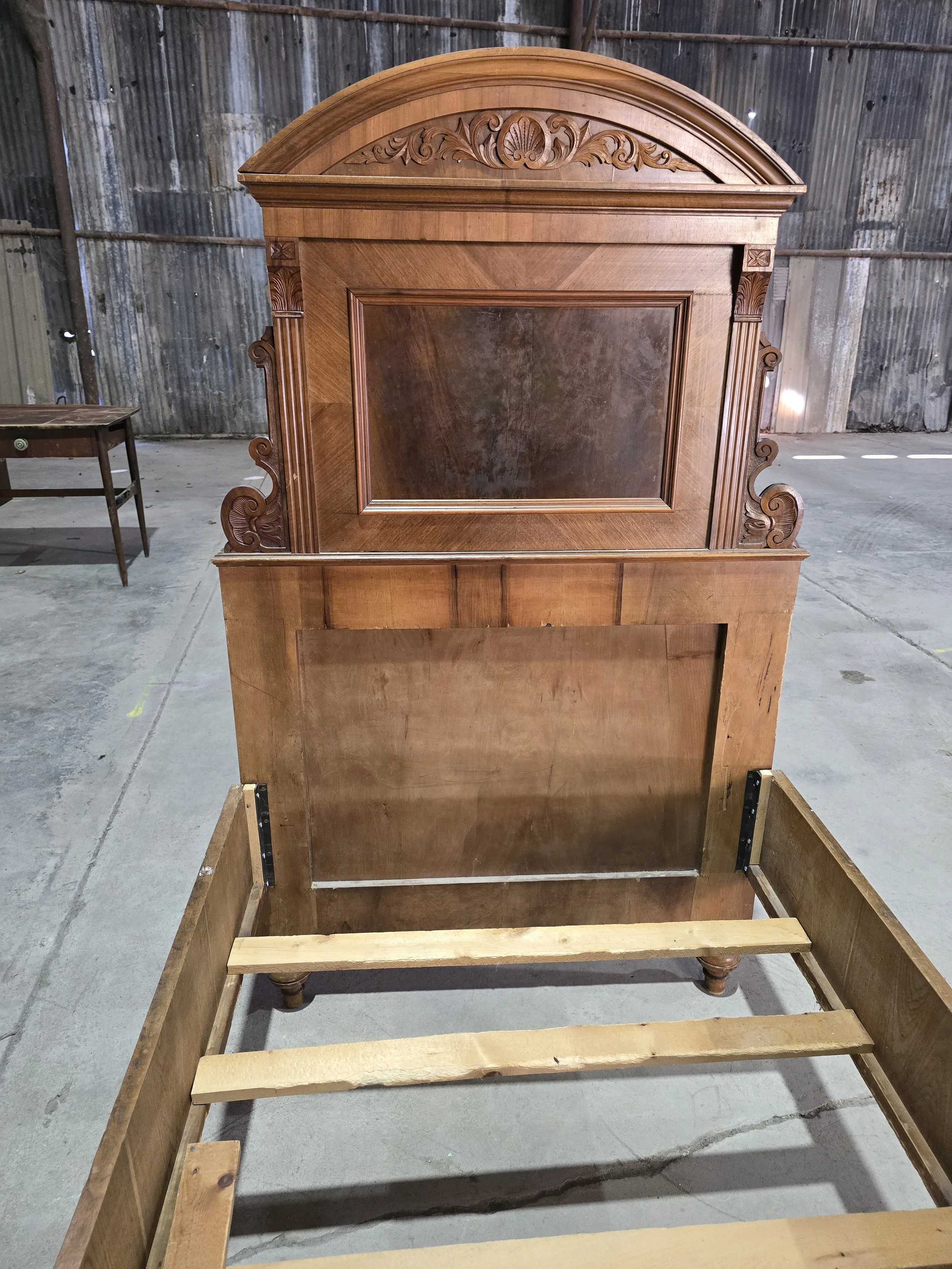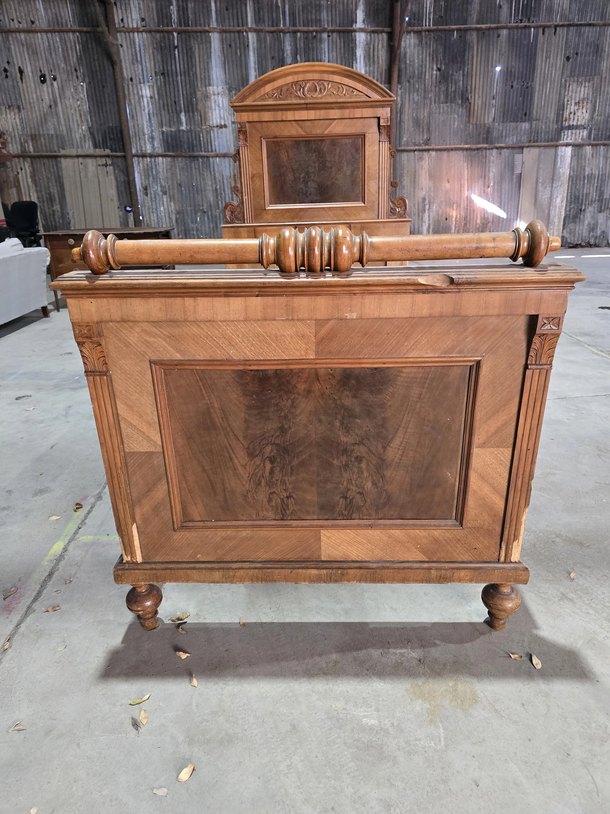 Gorgeous antique bed. Currently we have 2 matching, this is the one in better shape. I don’t see any damage.