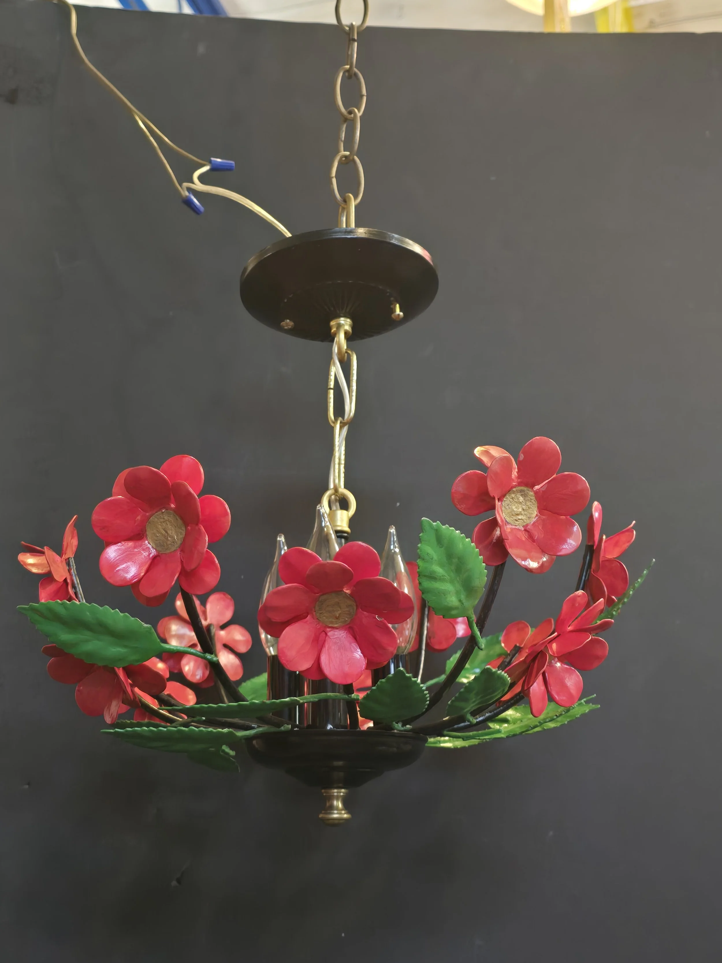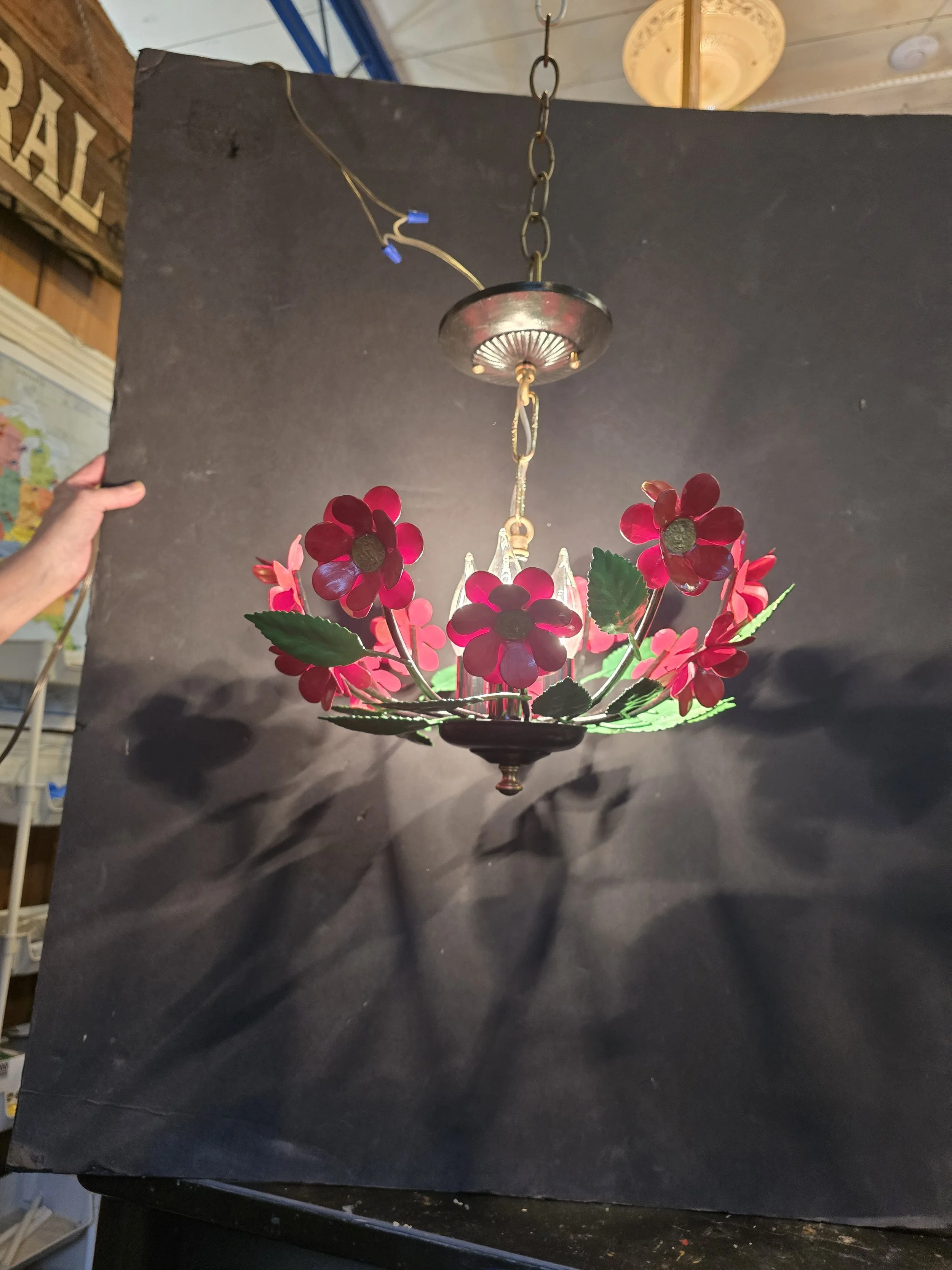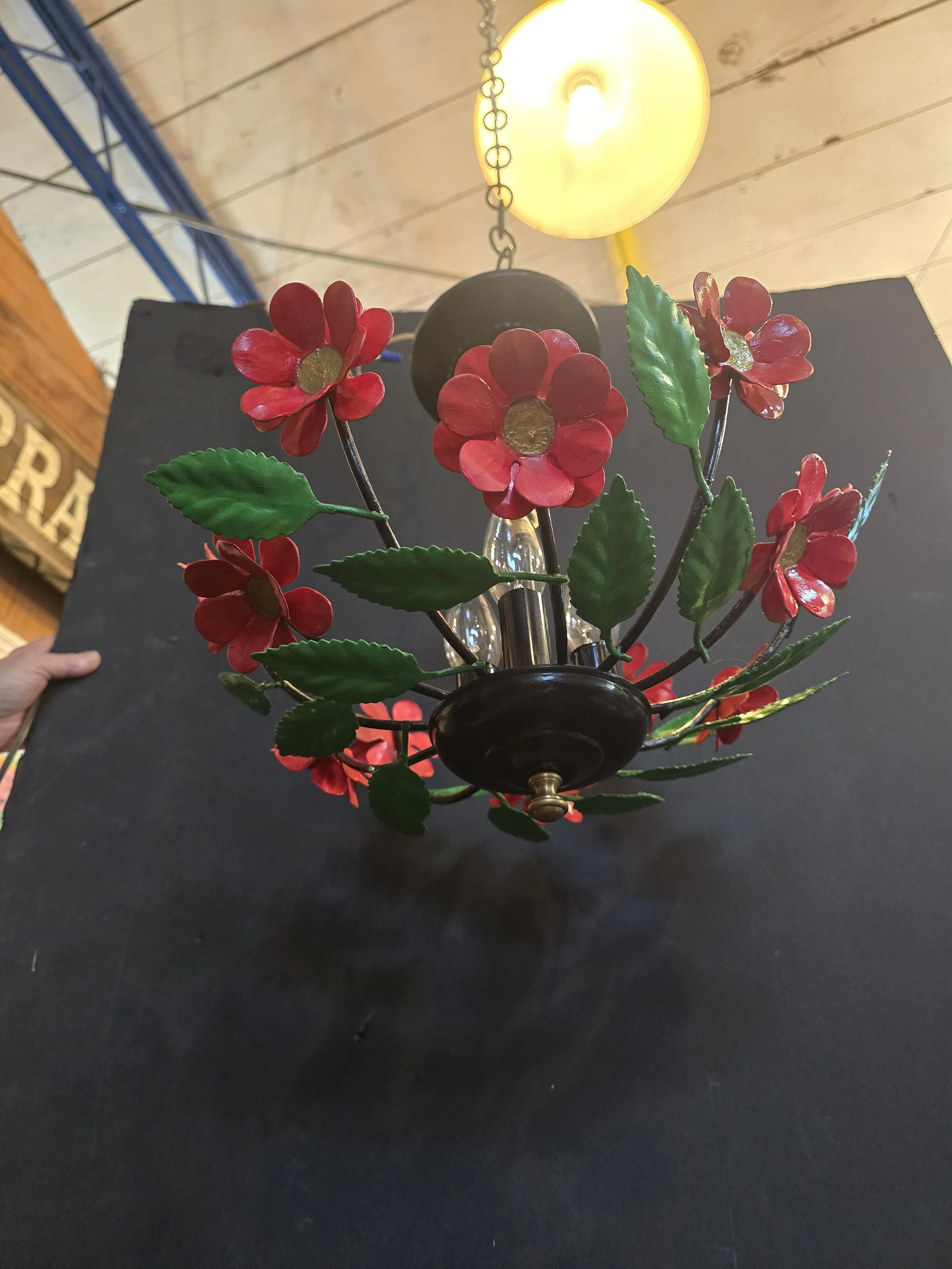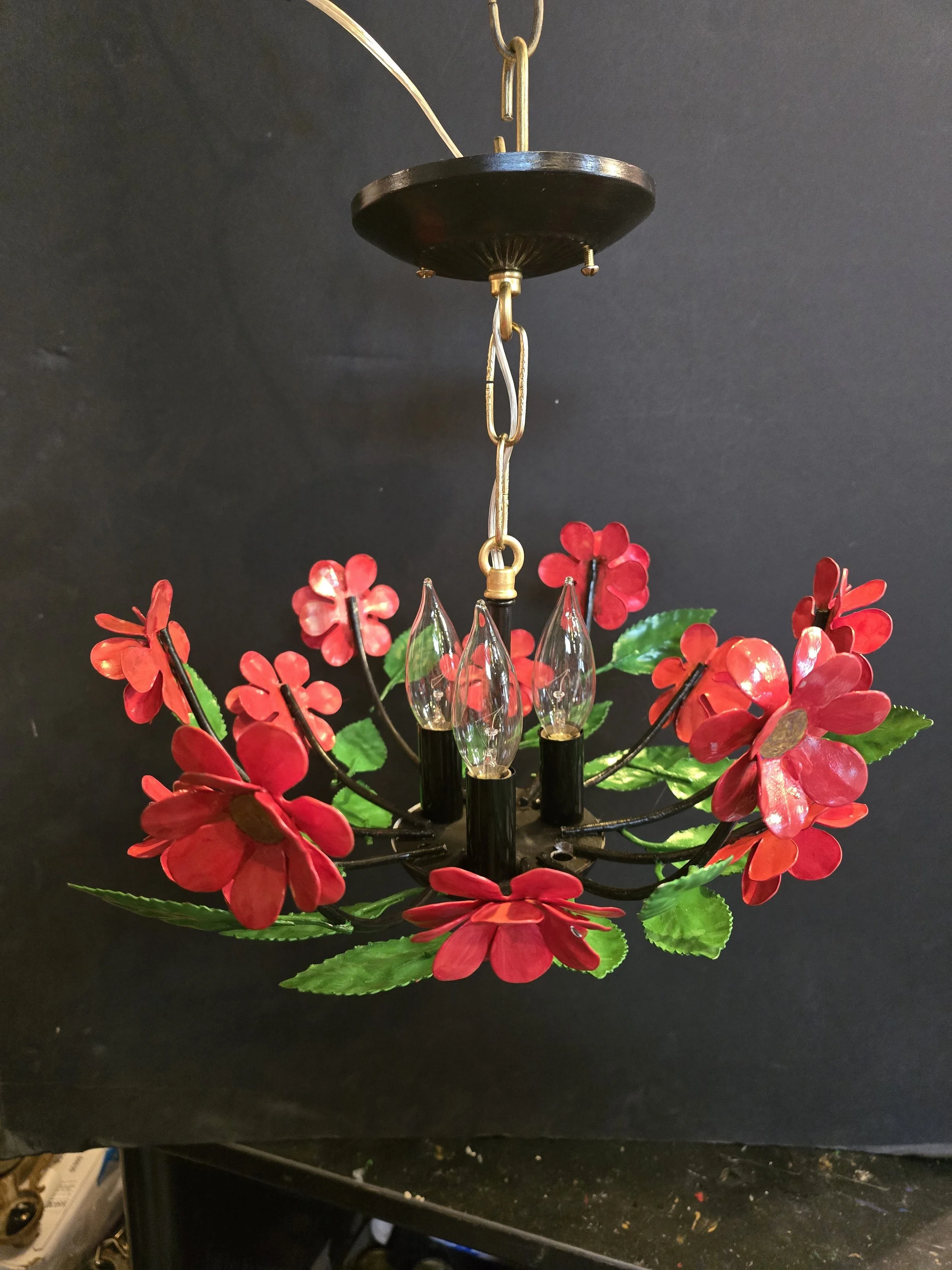 Gorgeous Mid-Century floral chandelier with 3 bulbs. This vintage chandelier has been completely restored. It has all new wiring and sockets.