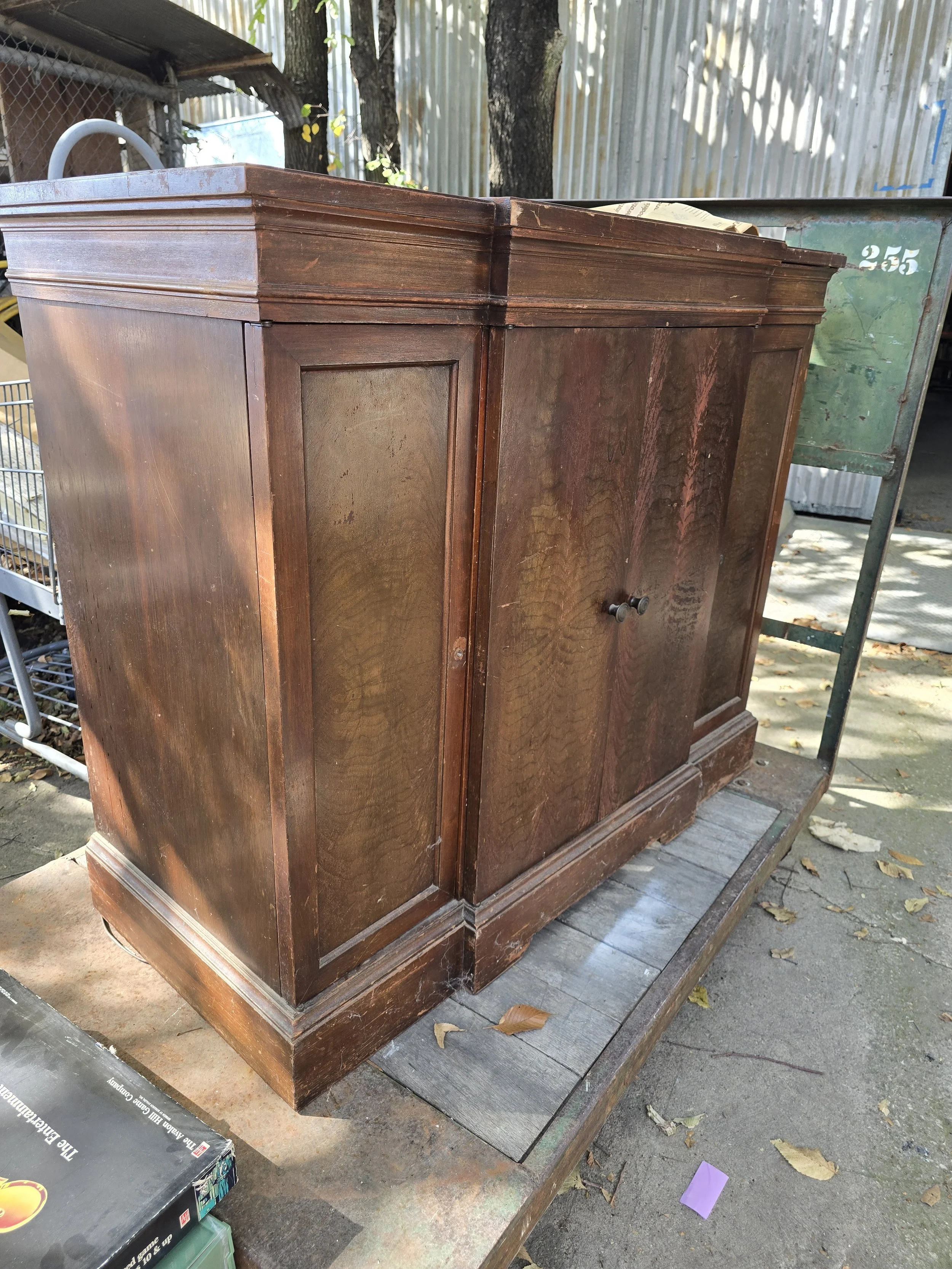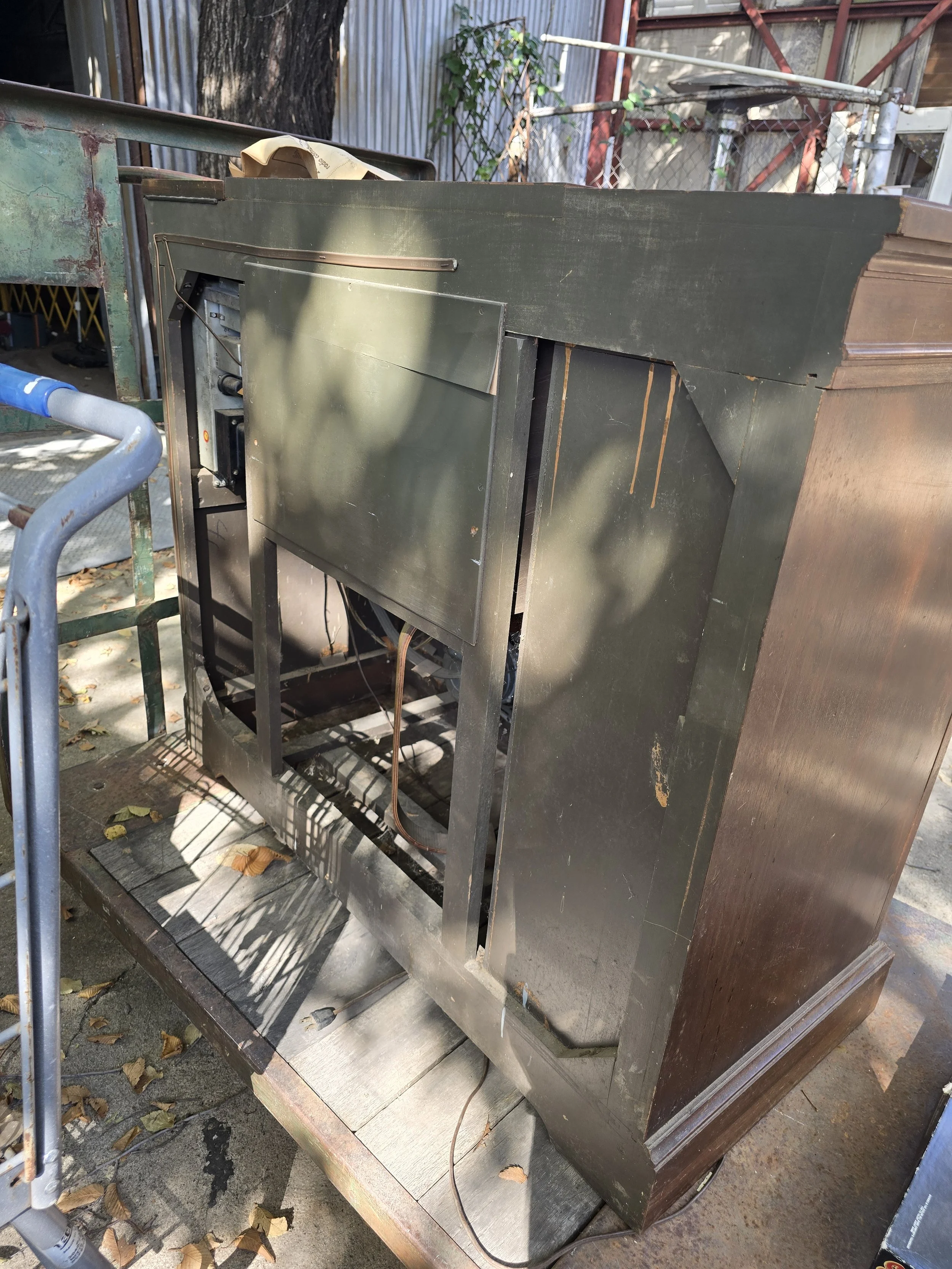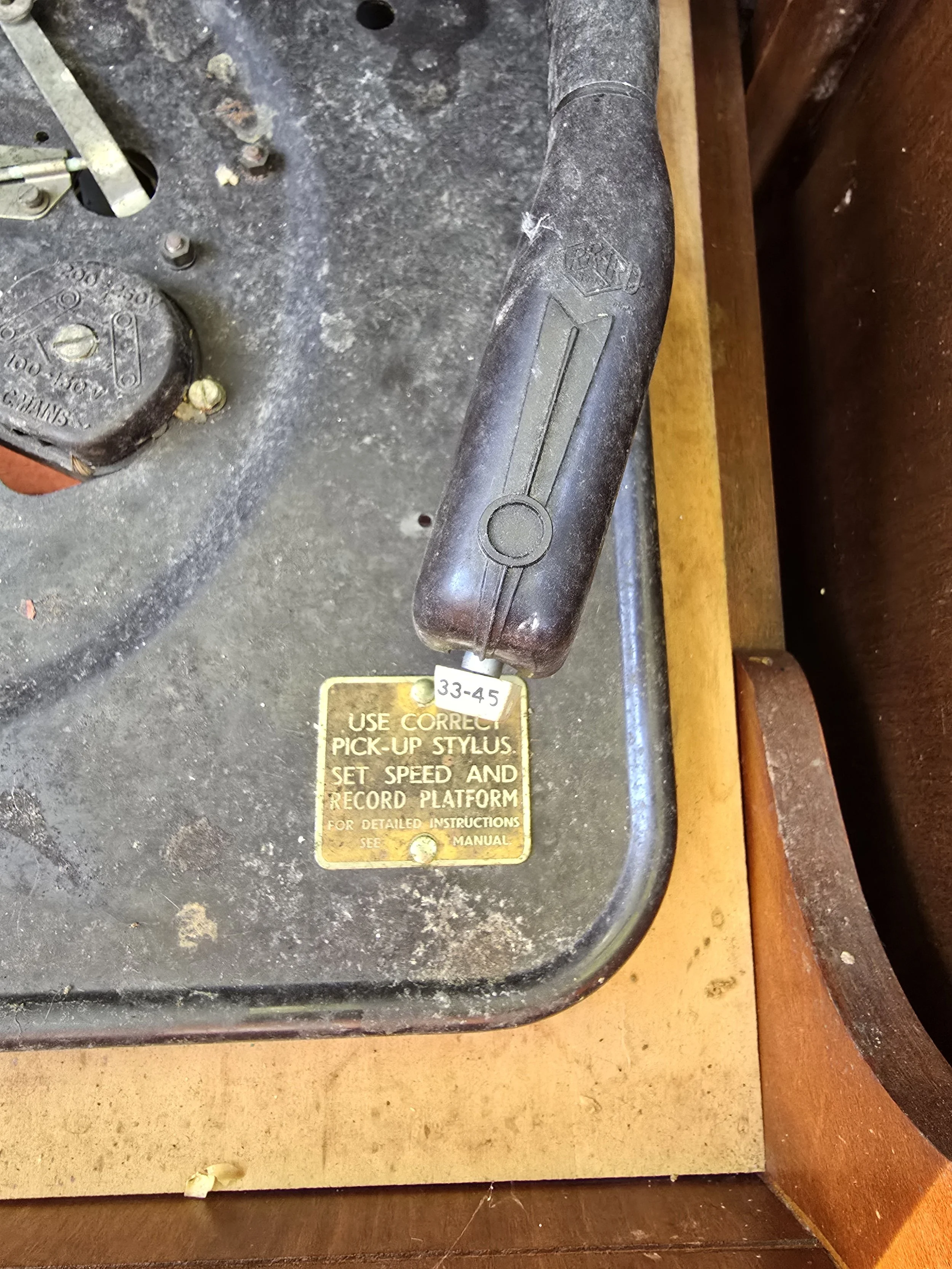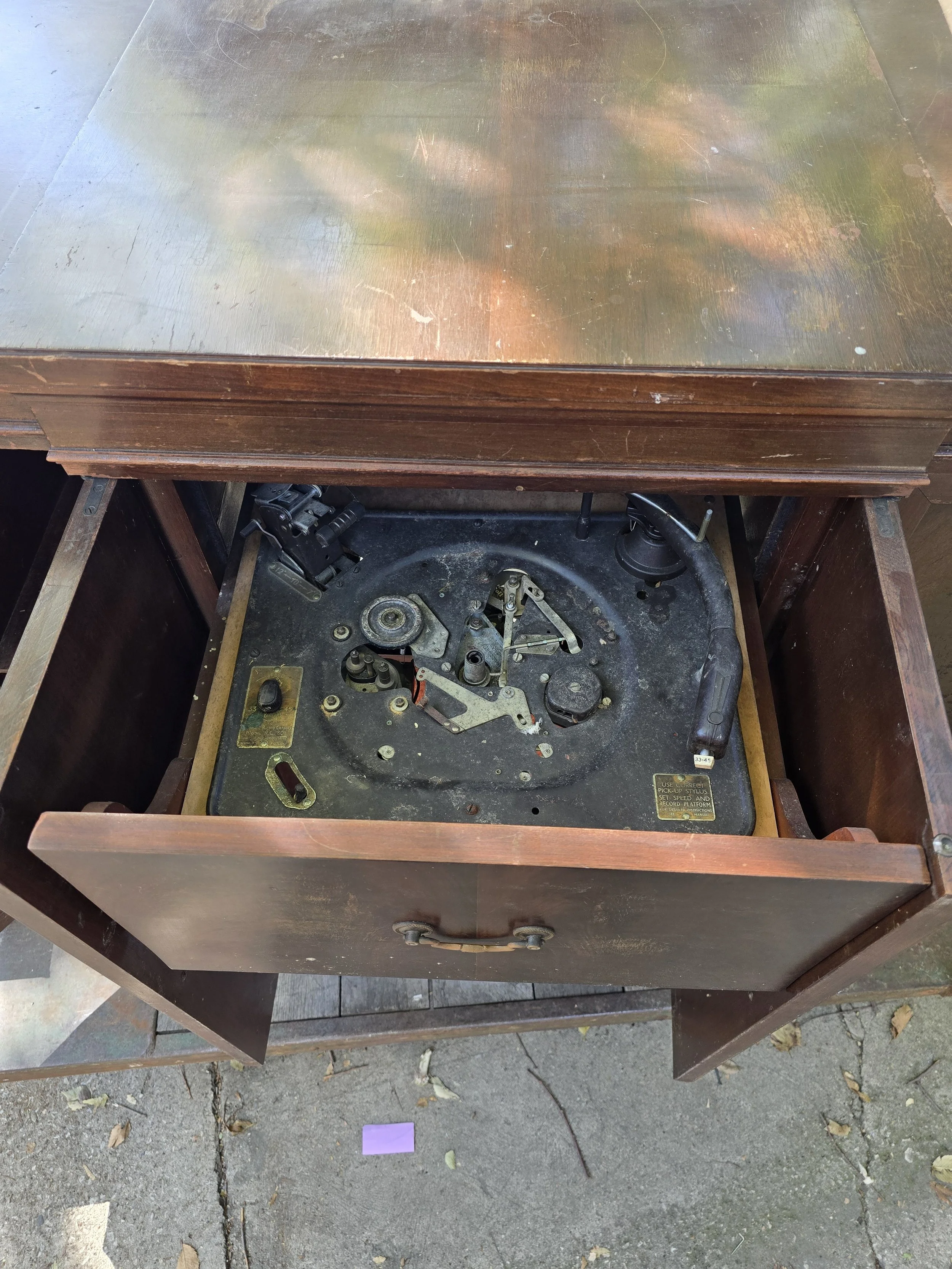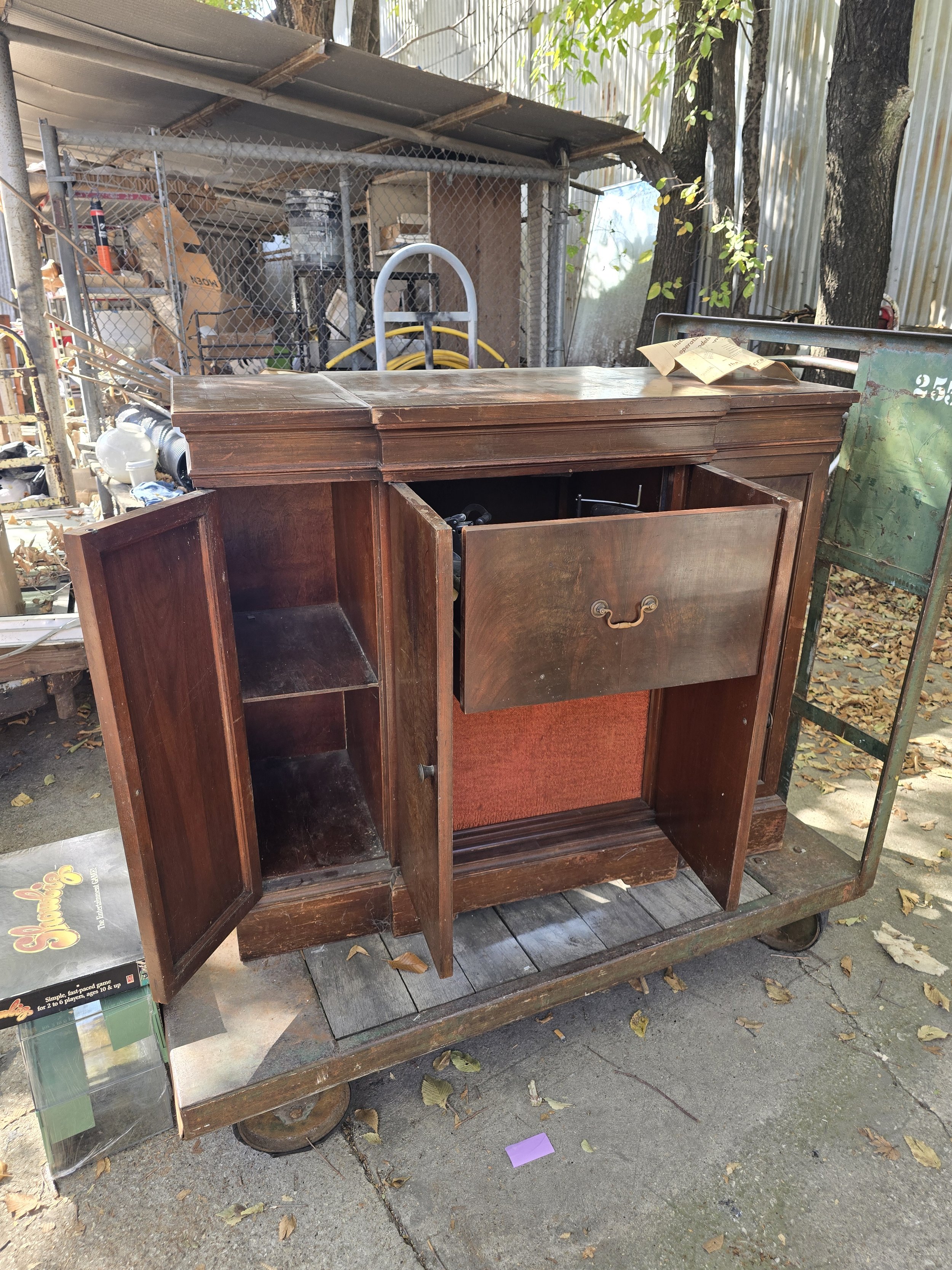 The record player itself is most likely toast, but the piece itself is fabulous. Would make a great buffet with a little creativity and love. This piece is 44” wide x 20.25” deep x 37.25” tall