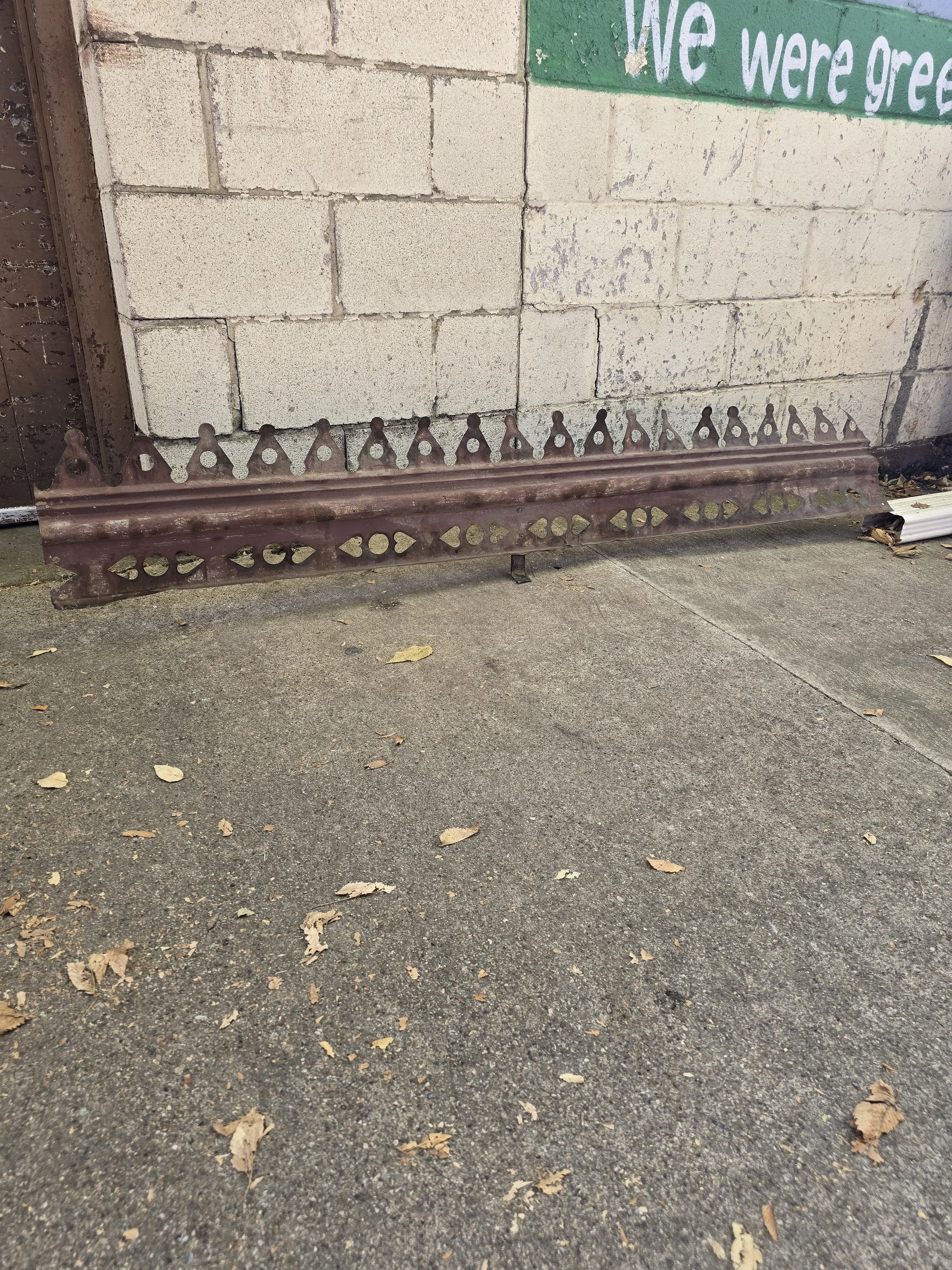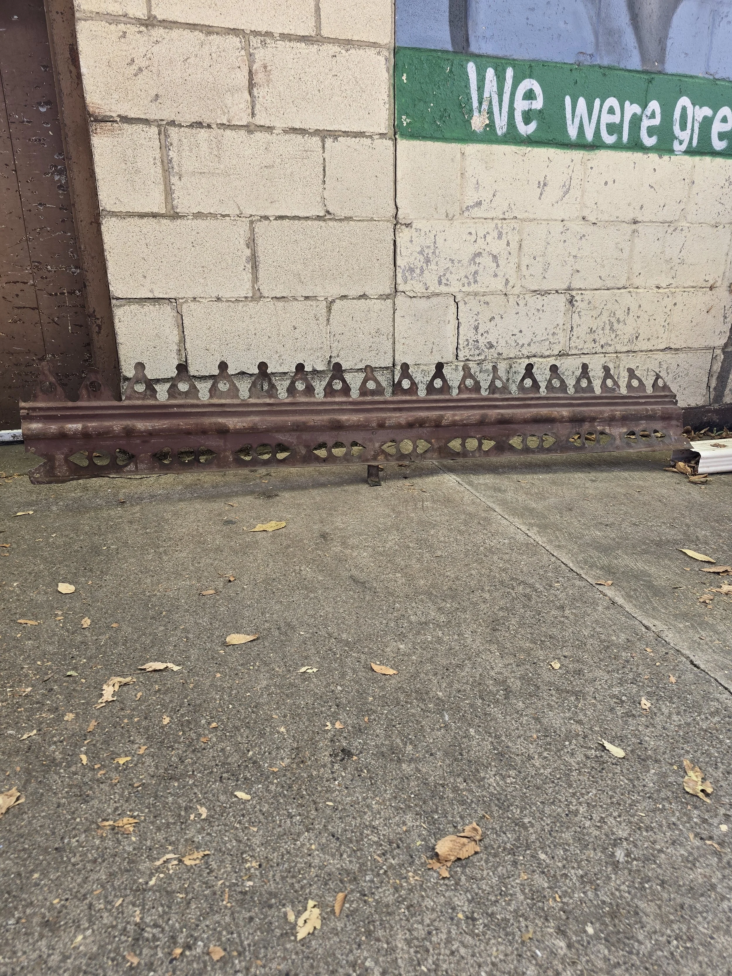 Decorative piece of tin. We can’t quite figure out what exactly this was. Maybe from a fireplace. Either way, it is super cool. Tin has a cool repeating pattern.
