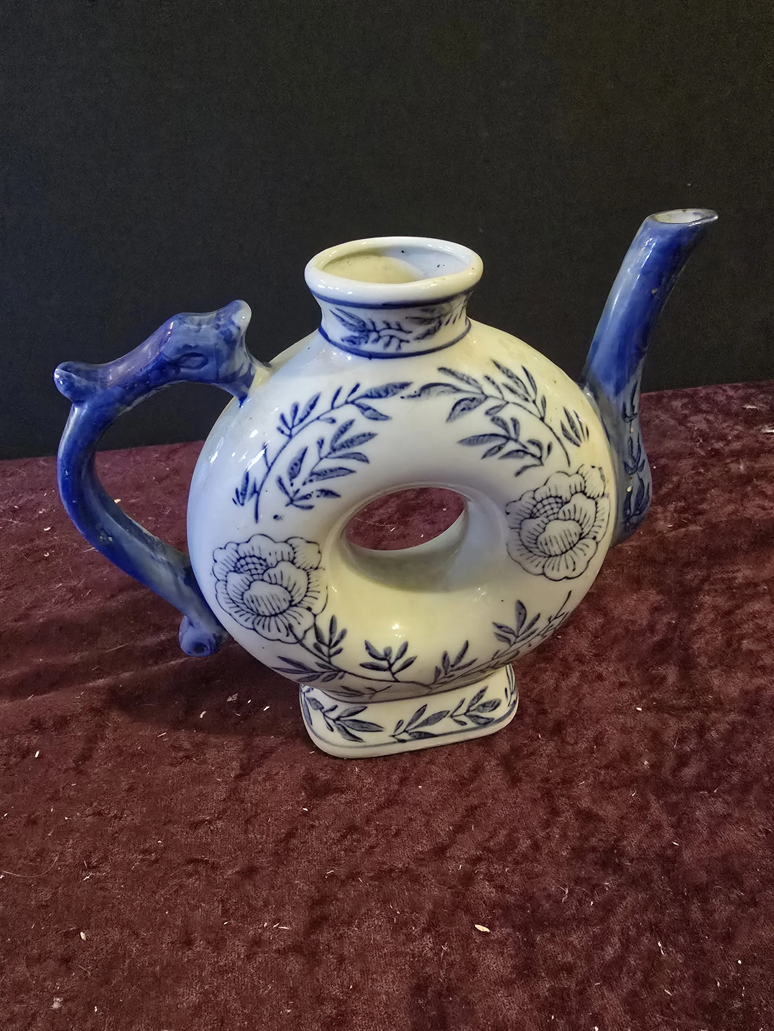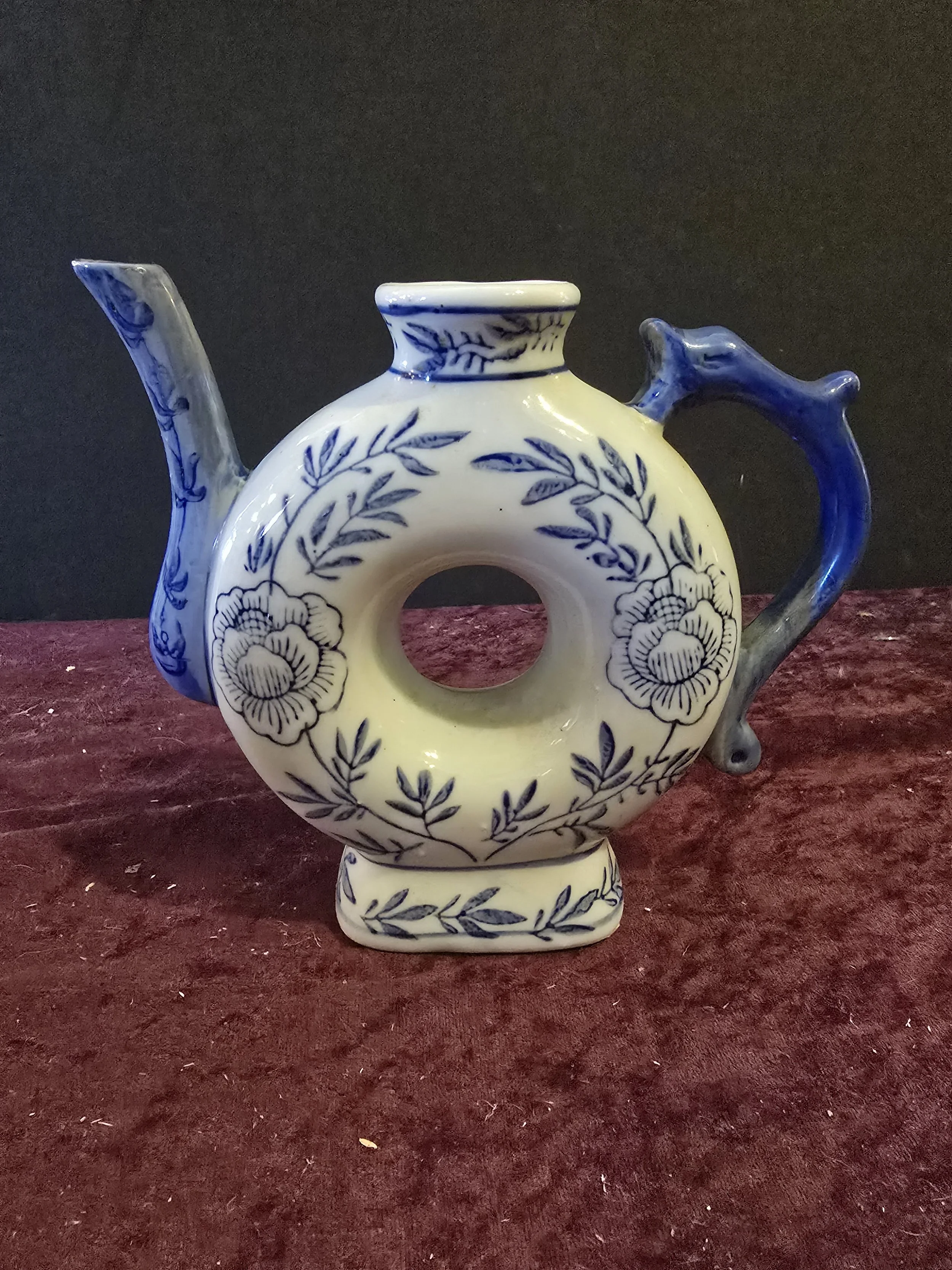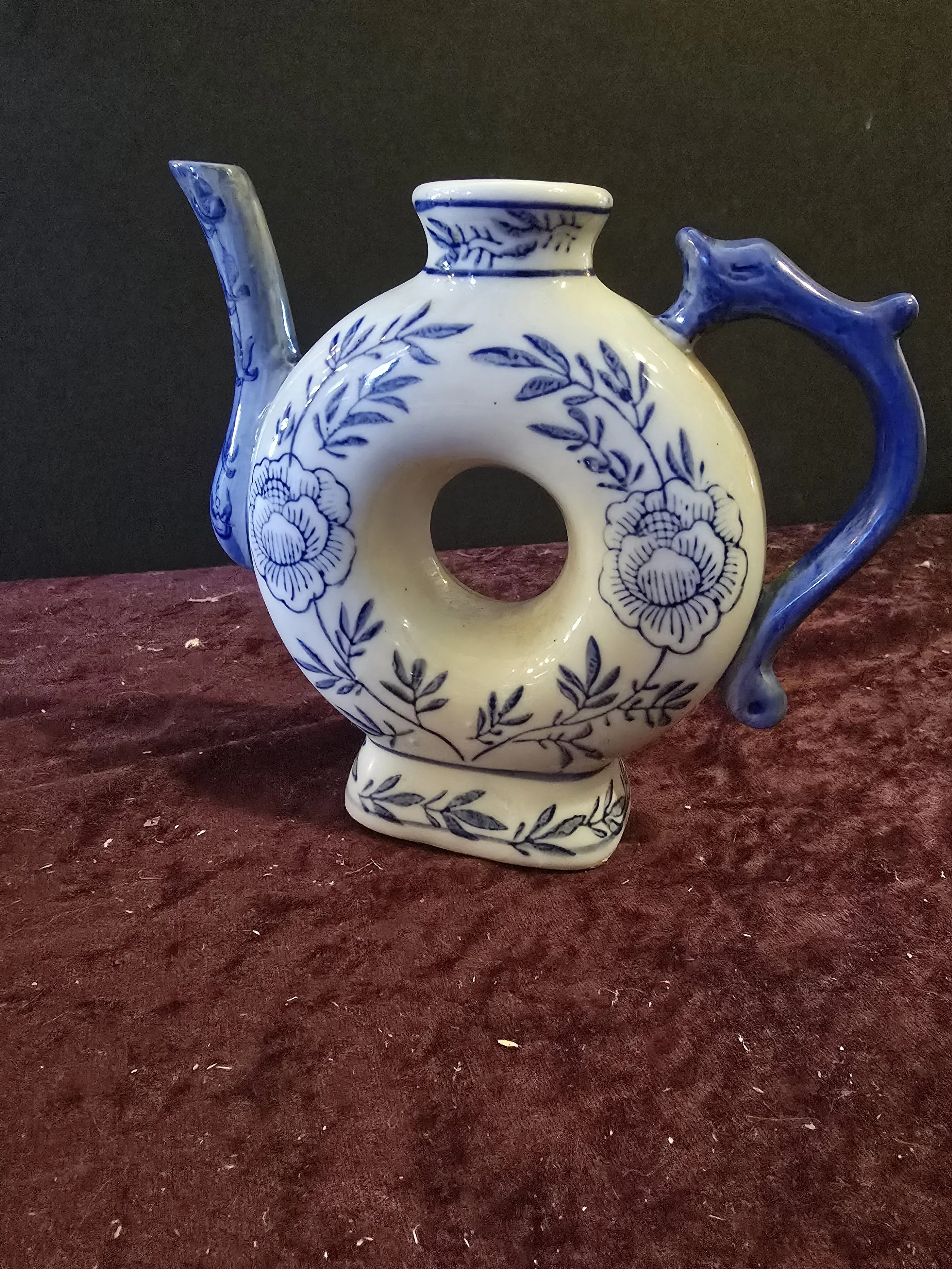 1960s Blue & White Handpainted Floral Porcelain Chinese Tea Pot