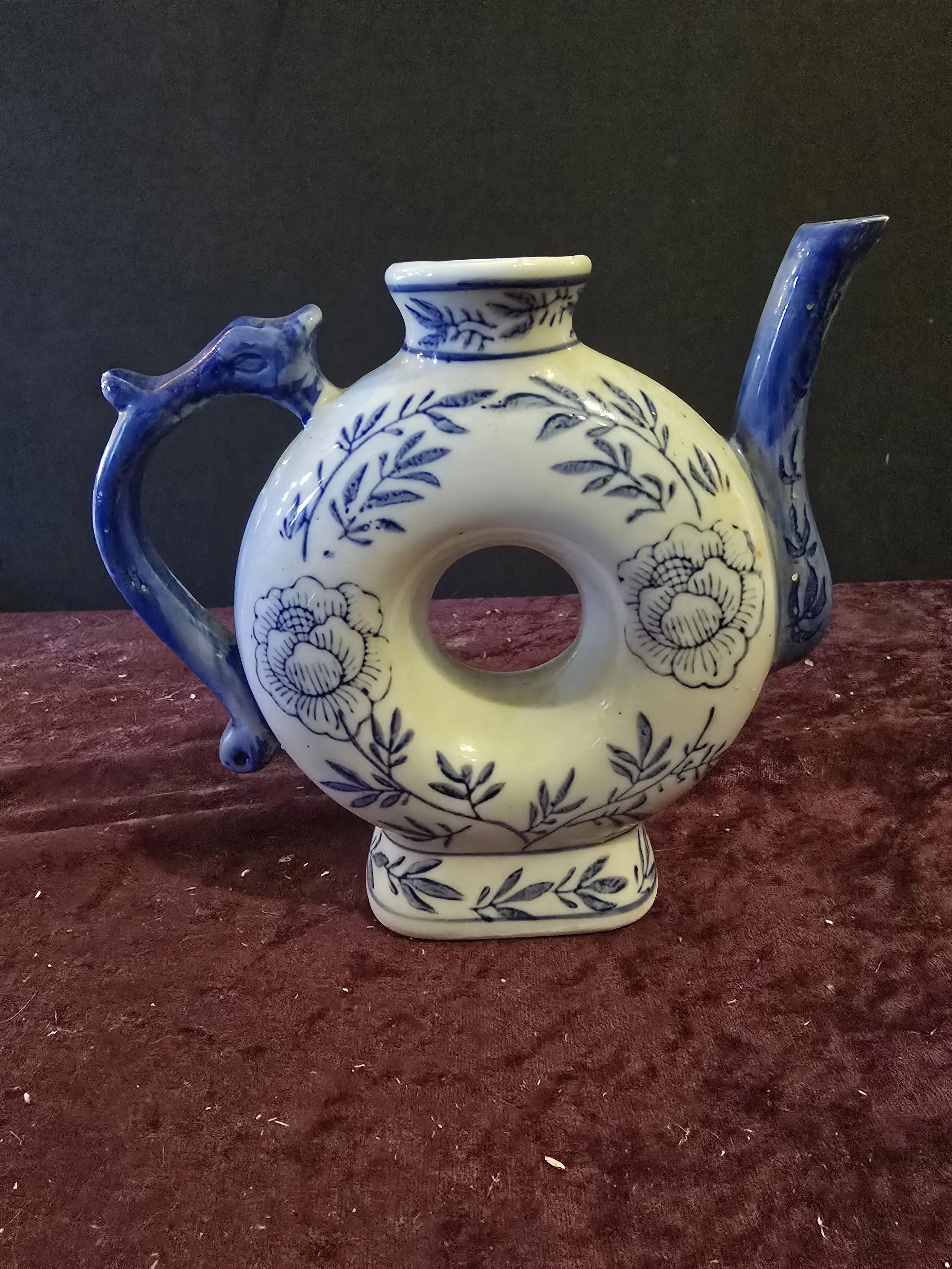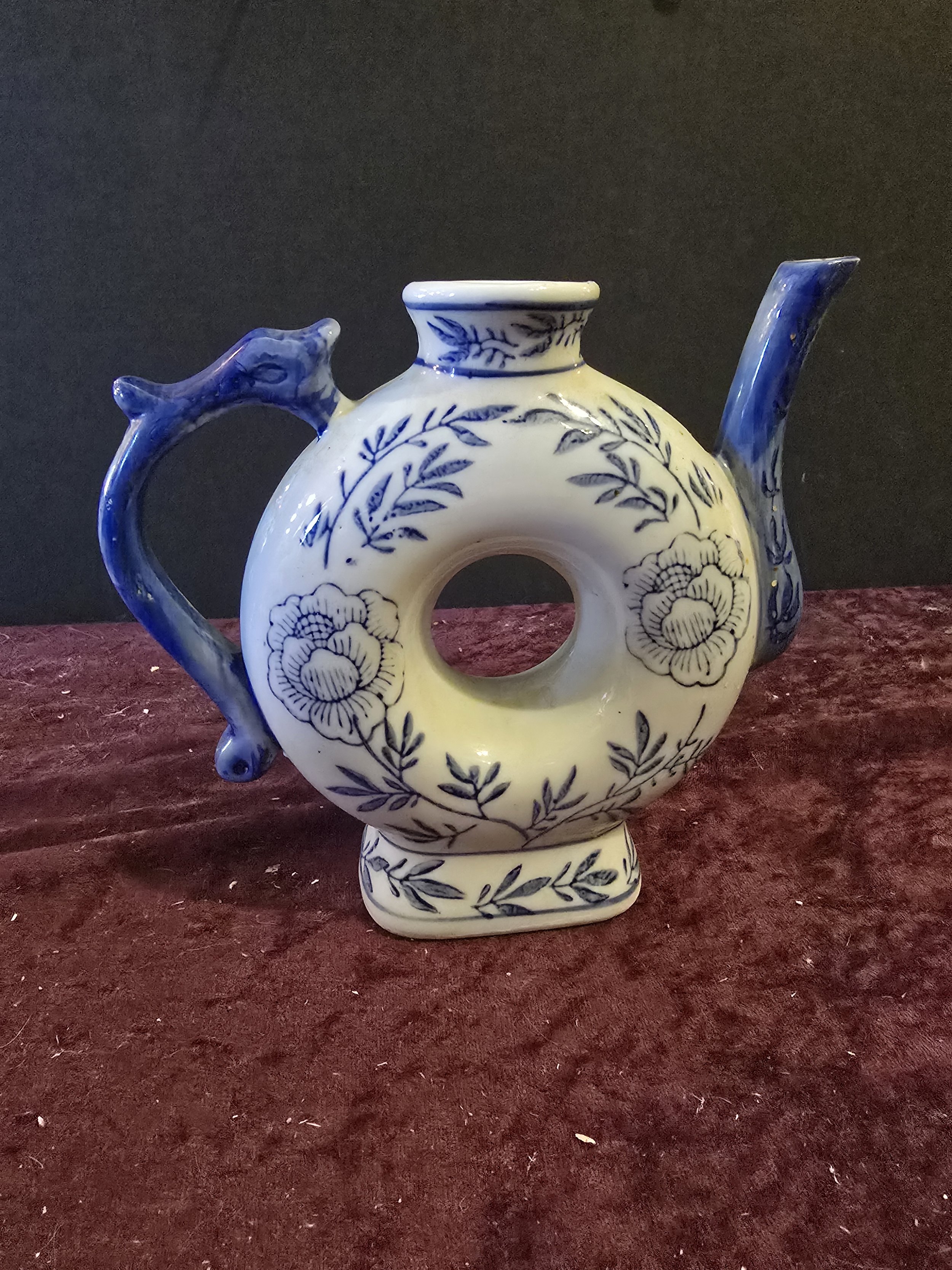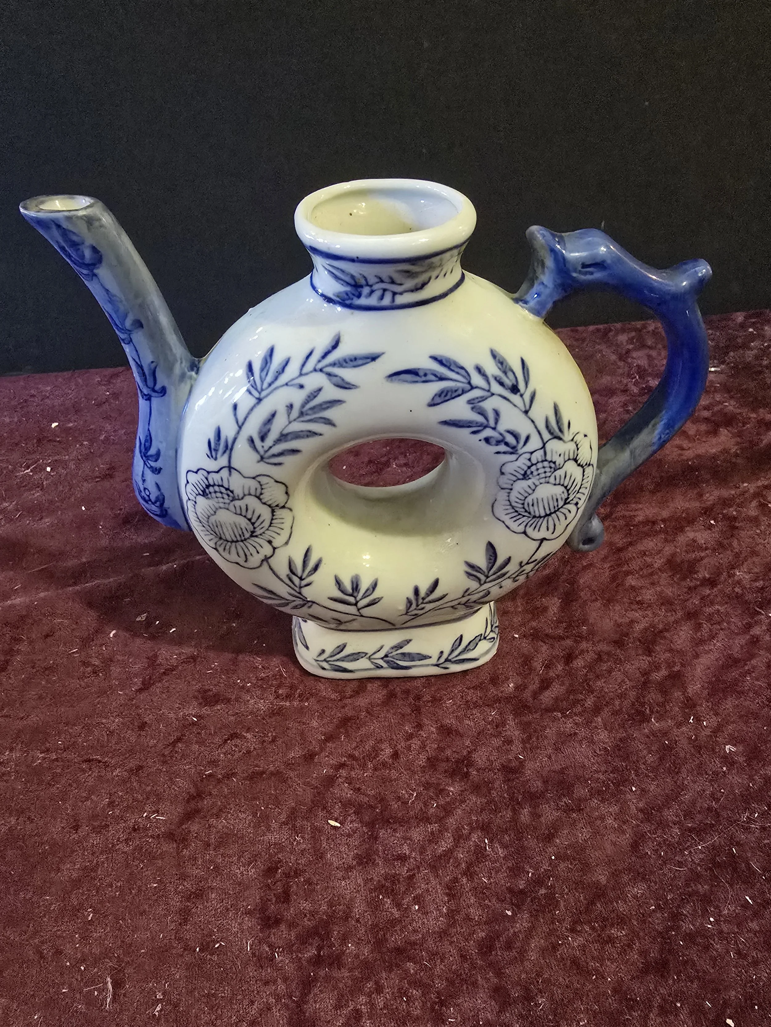 1960s Blue & White Handpainted Floral Porcelain Chinese Tea Pot