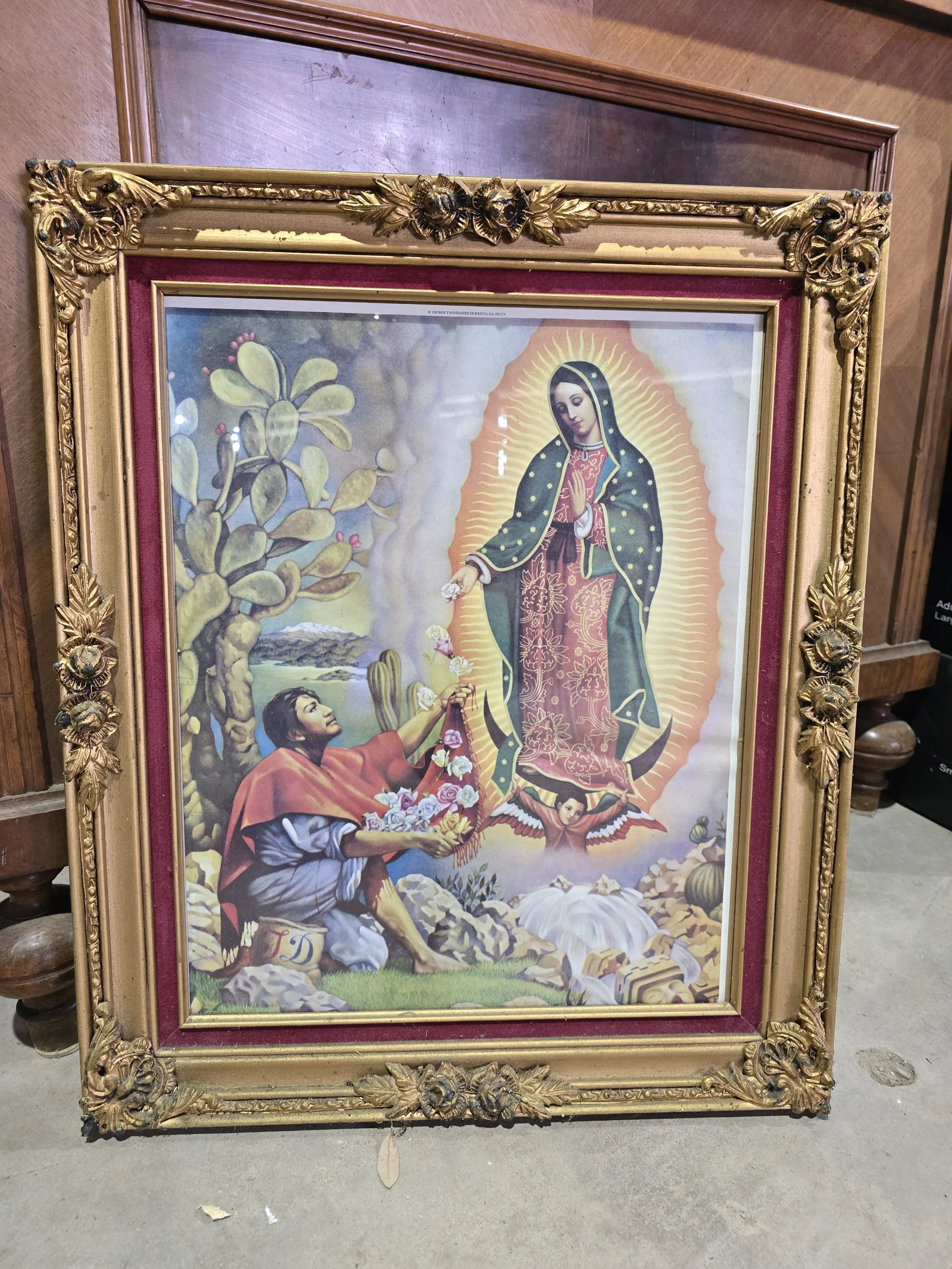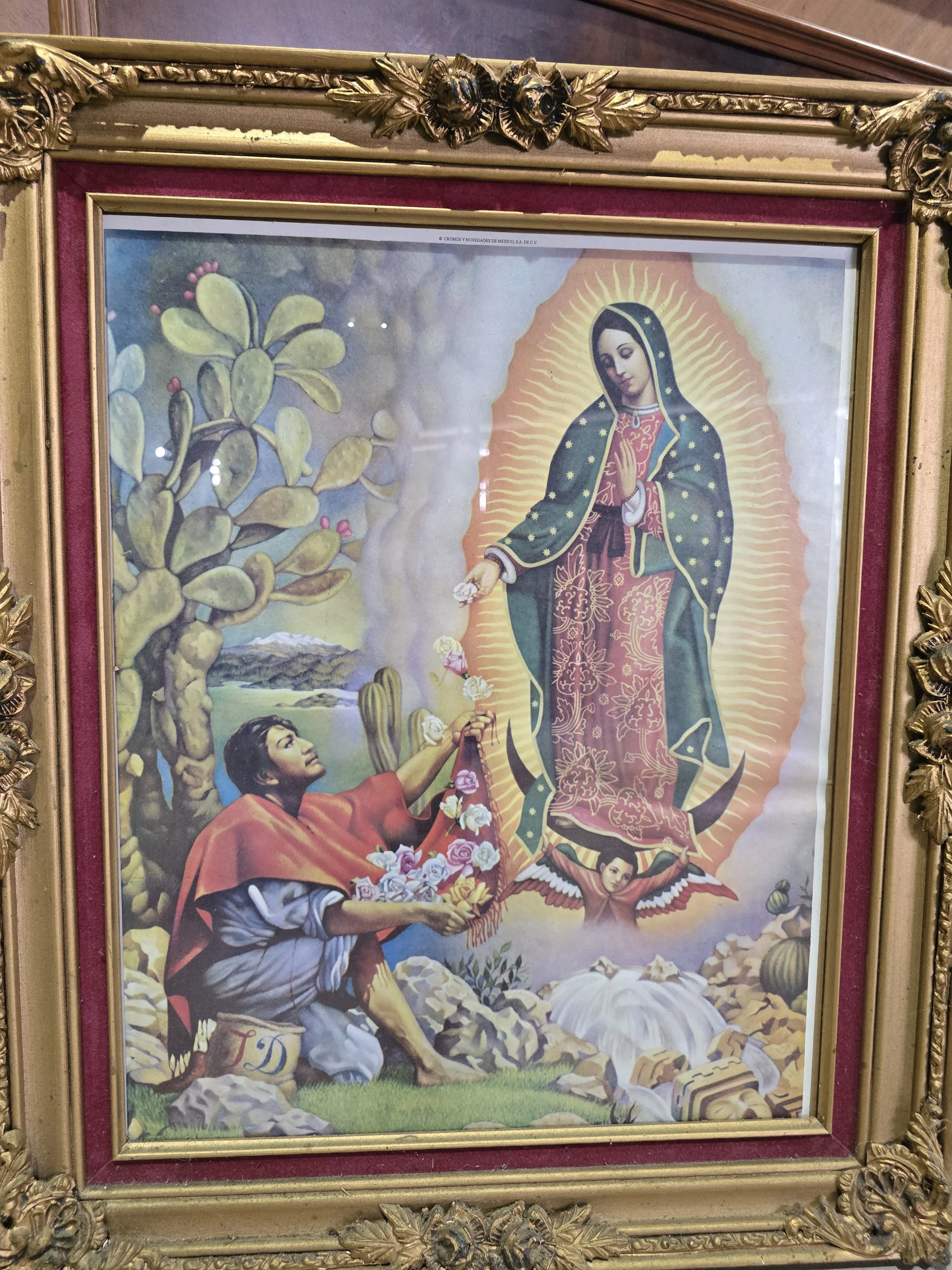 Small concrete art in a wooden frame. The artwork depicts El Callejon del Beso in Guanajuato Mexico.