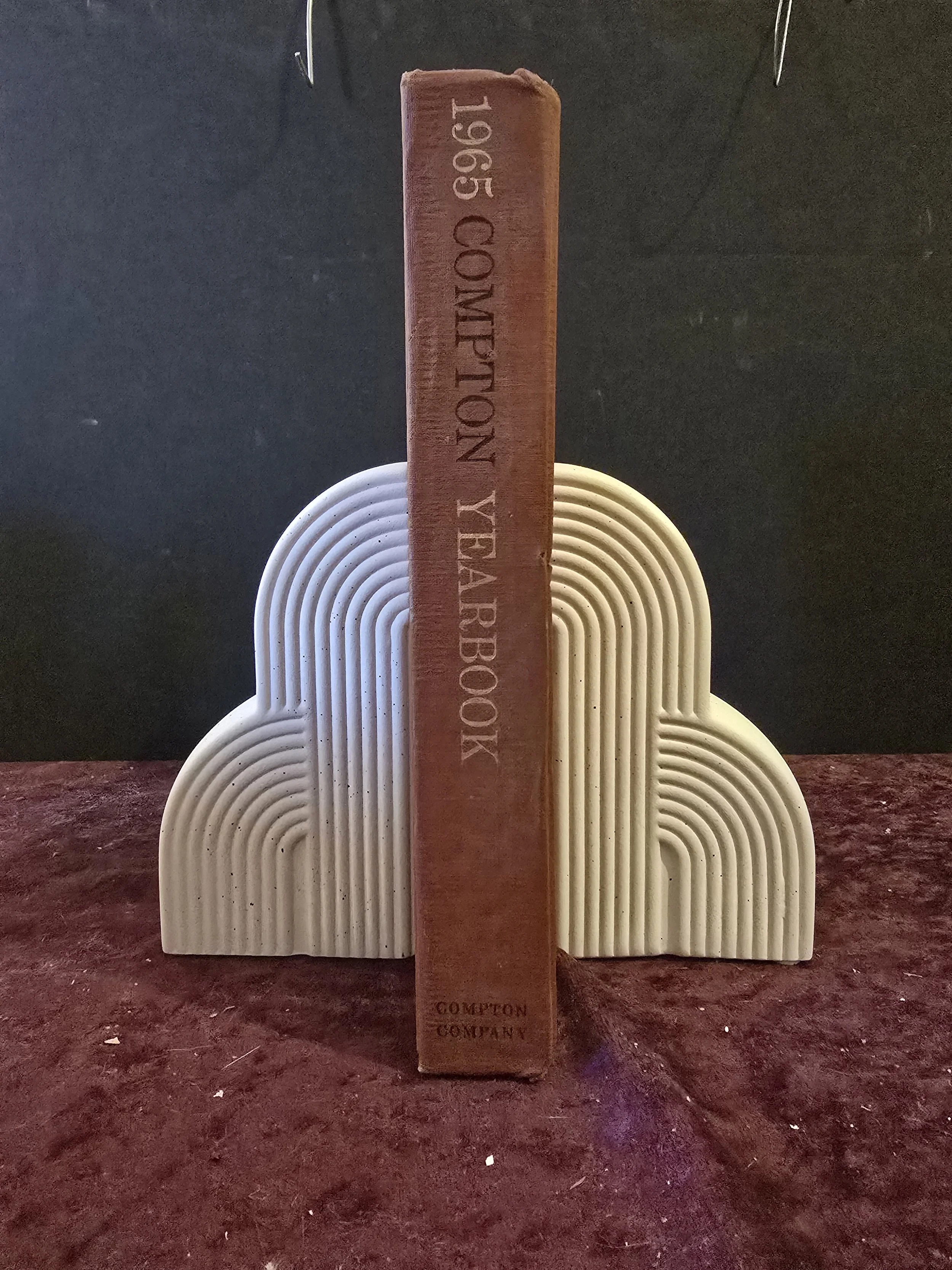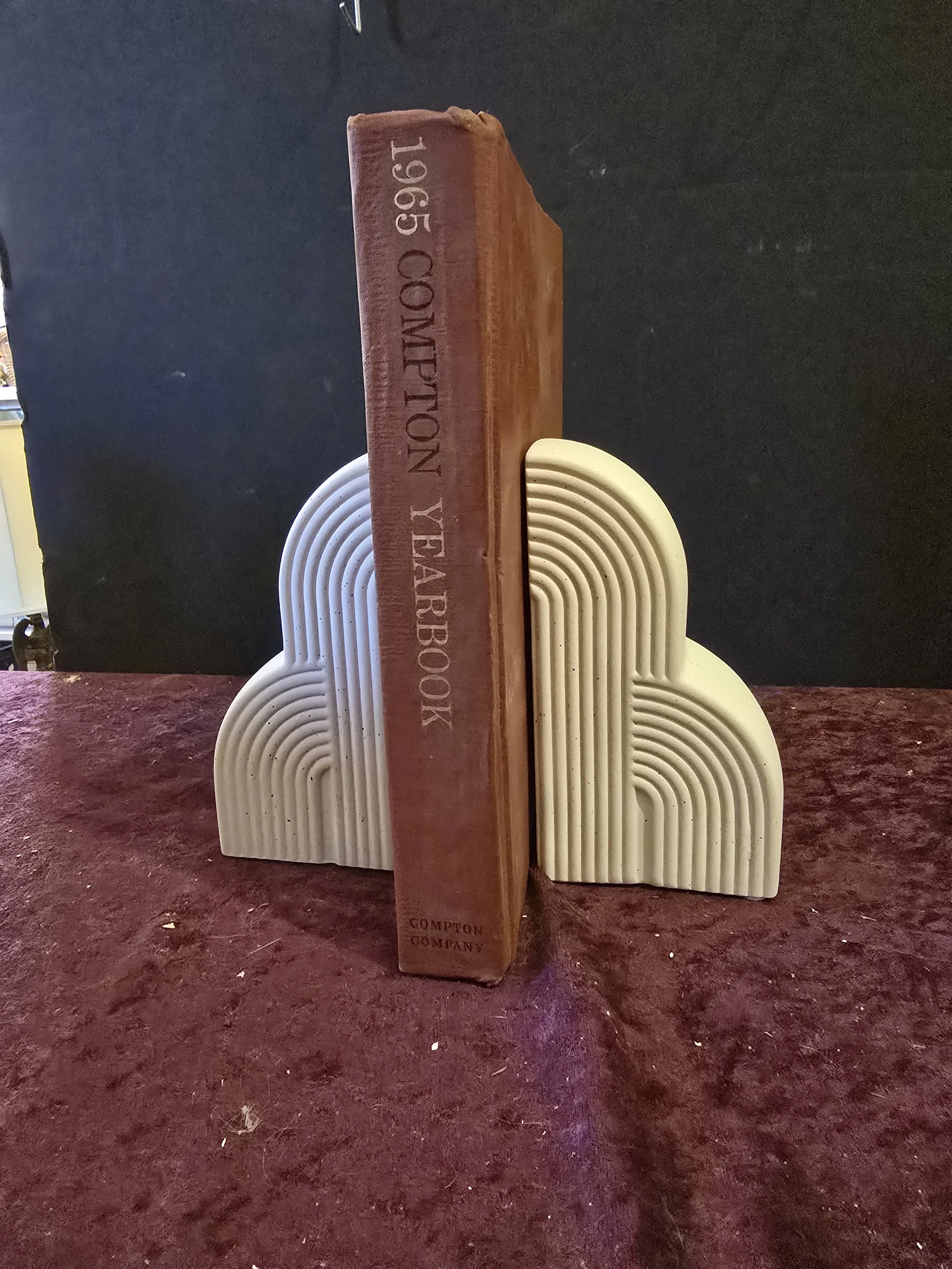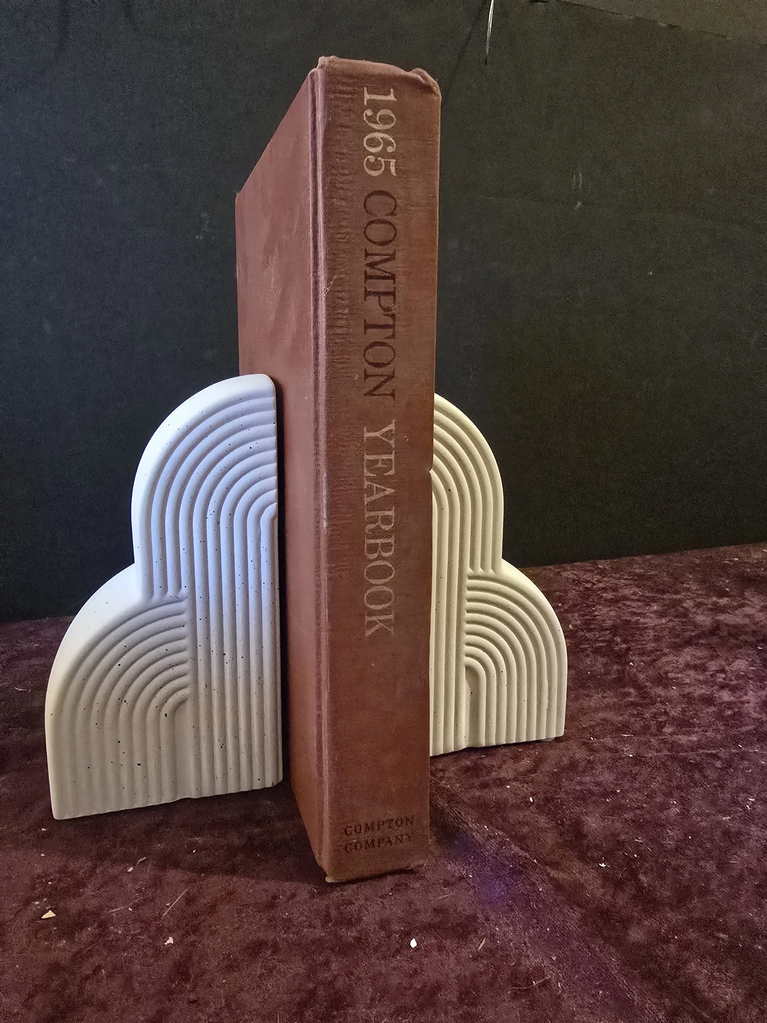 Each bookend is 3.5” x 2.5” x 6 5/8”