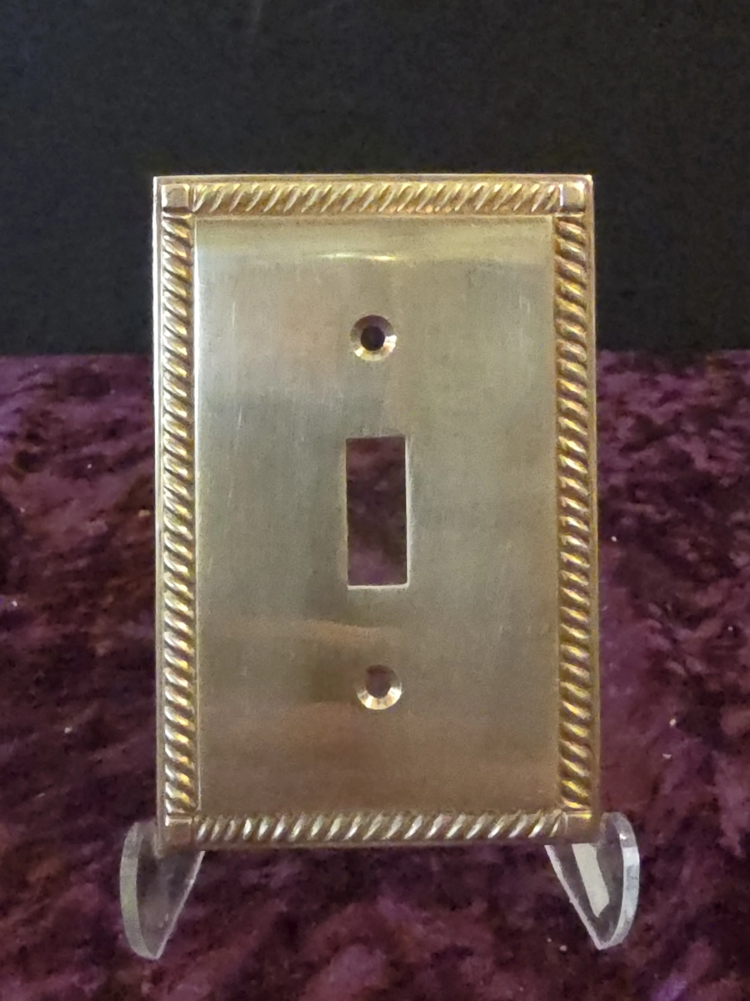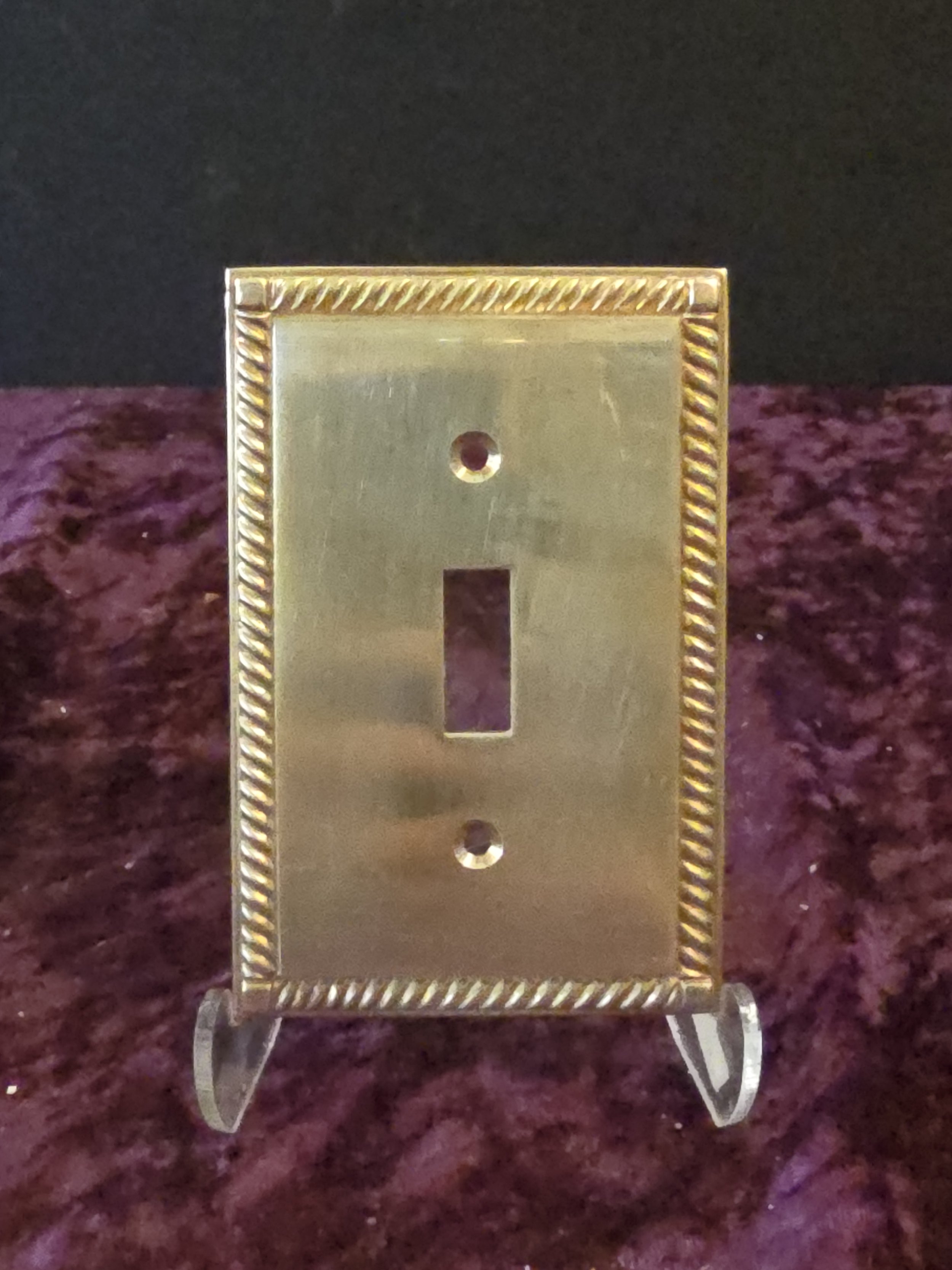Solid brass unlacquered switch plate cover with rope detail on the edges. Made in India.