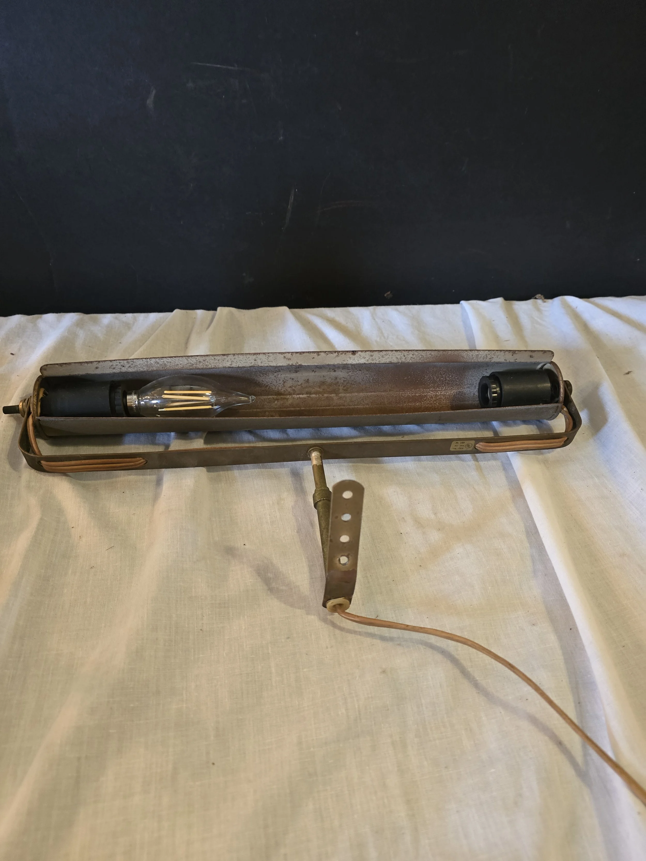 Vintage wall mounting picture light. This one has 2 bulbs. Light has been tested and is in good working order.