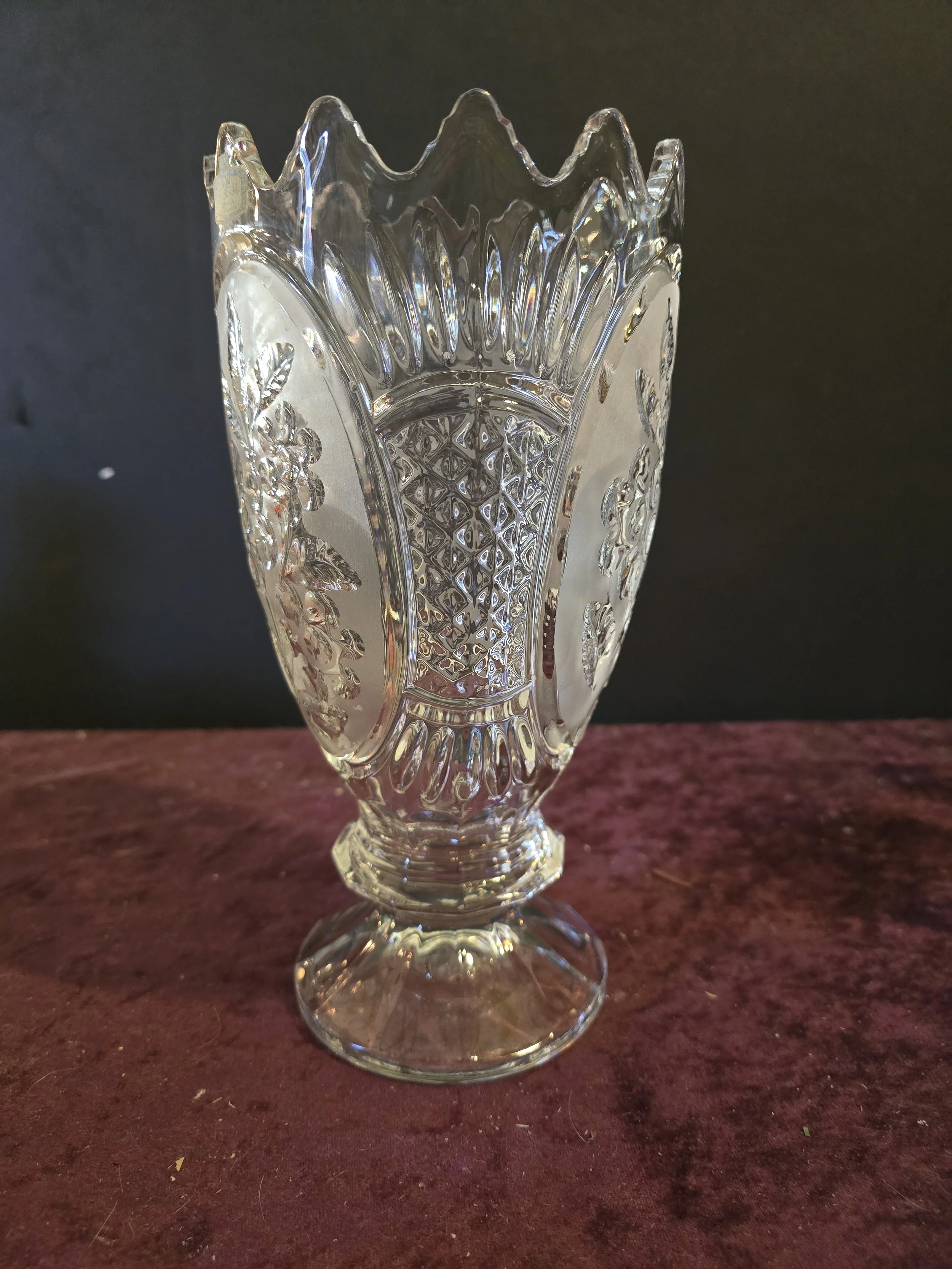 Vintage Kristal Zajecar Large Footed Vase Lead Crystal, Made In Yugoslavia