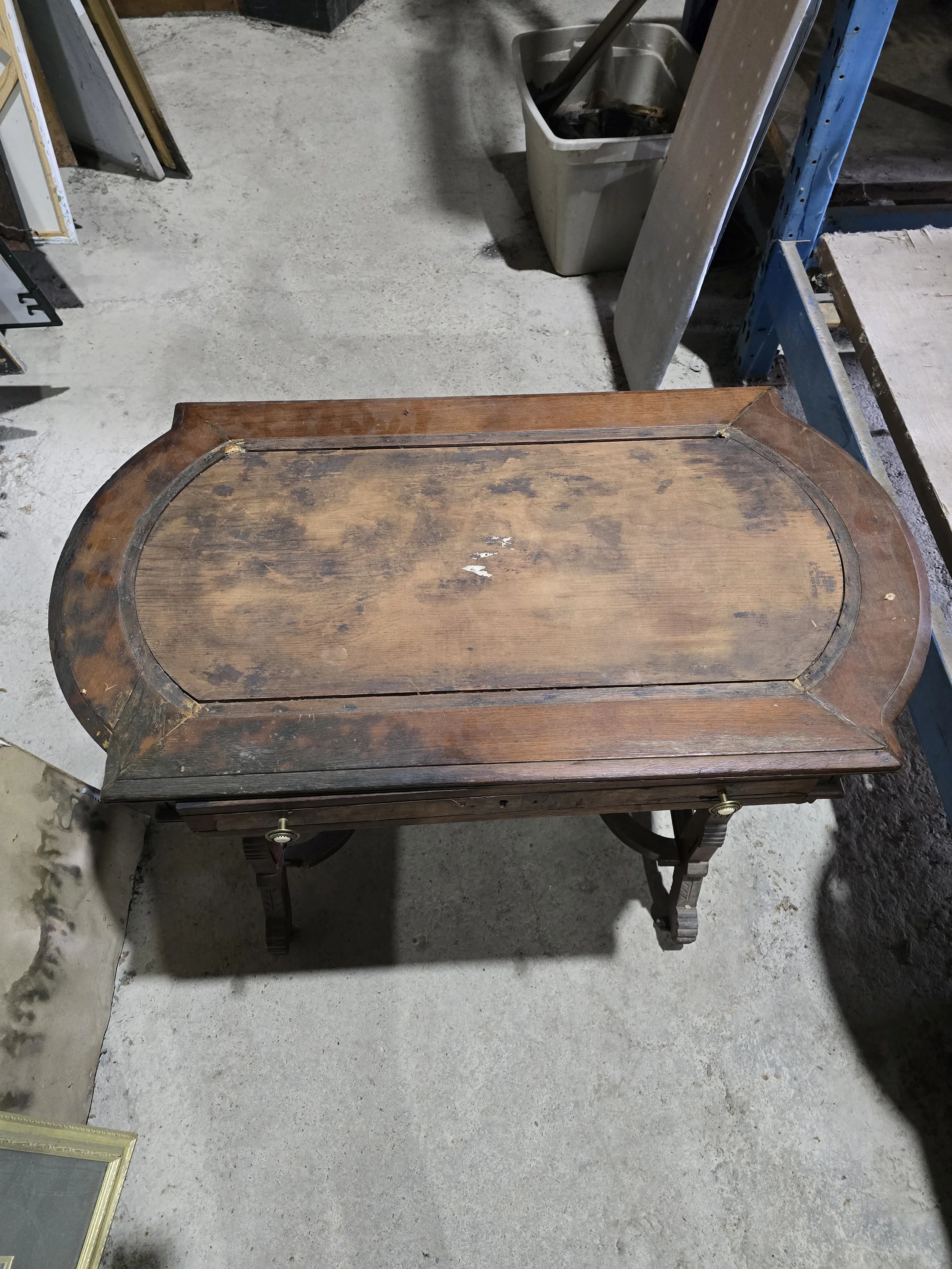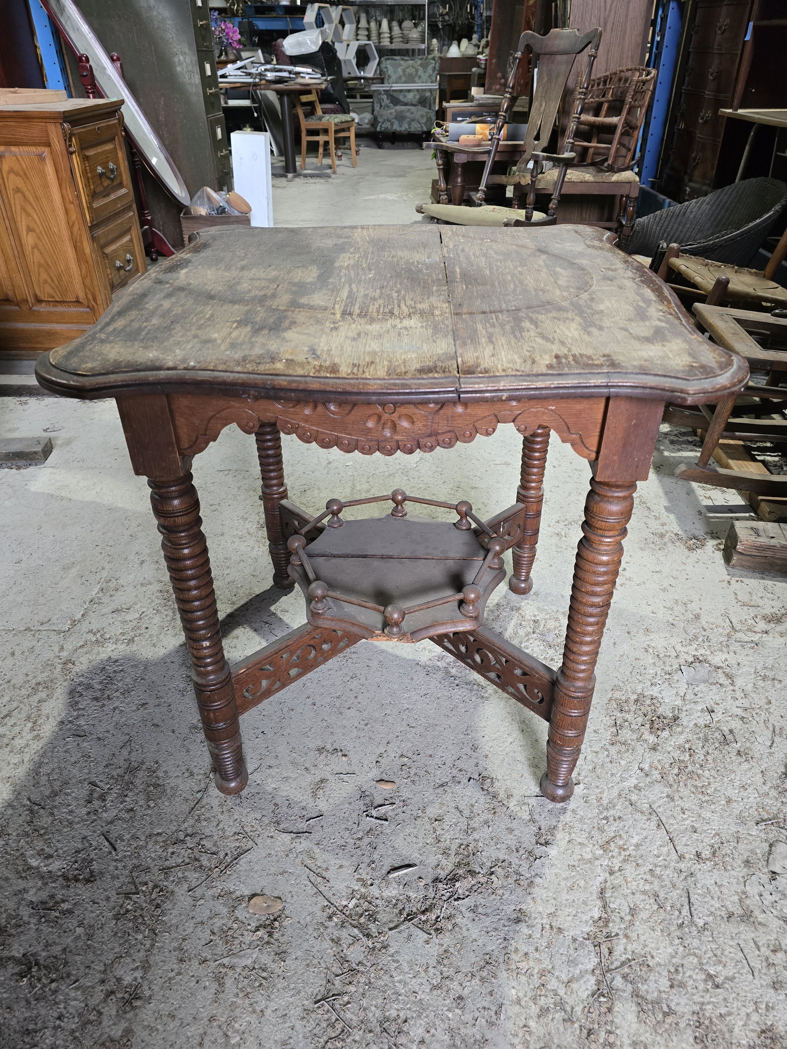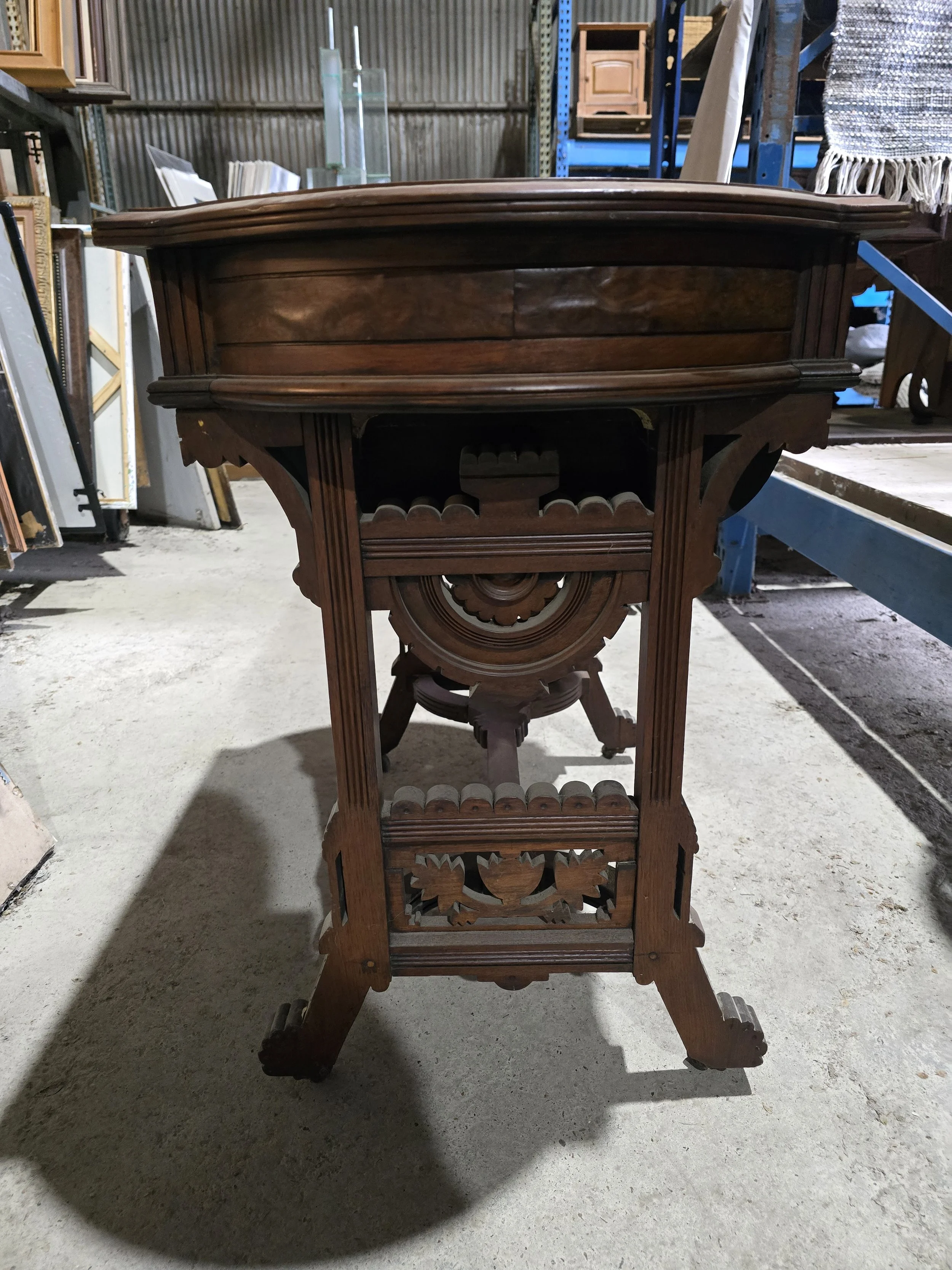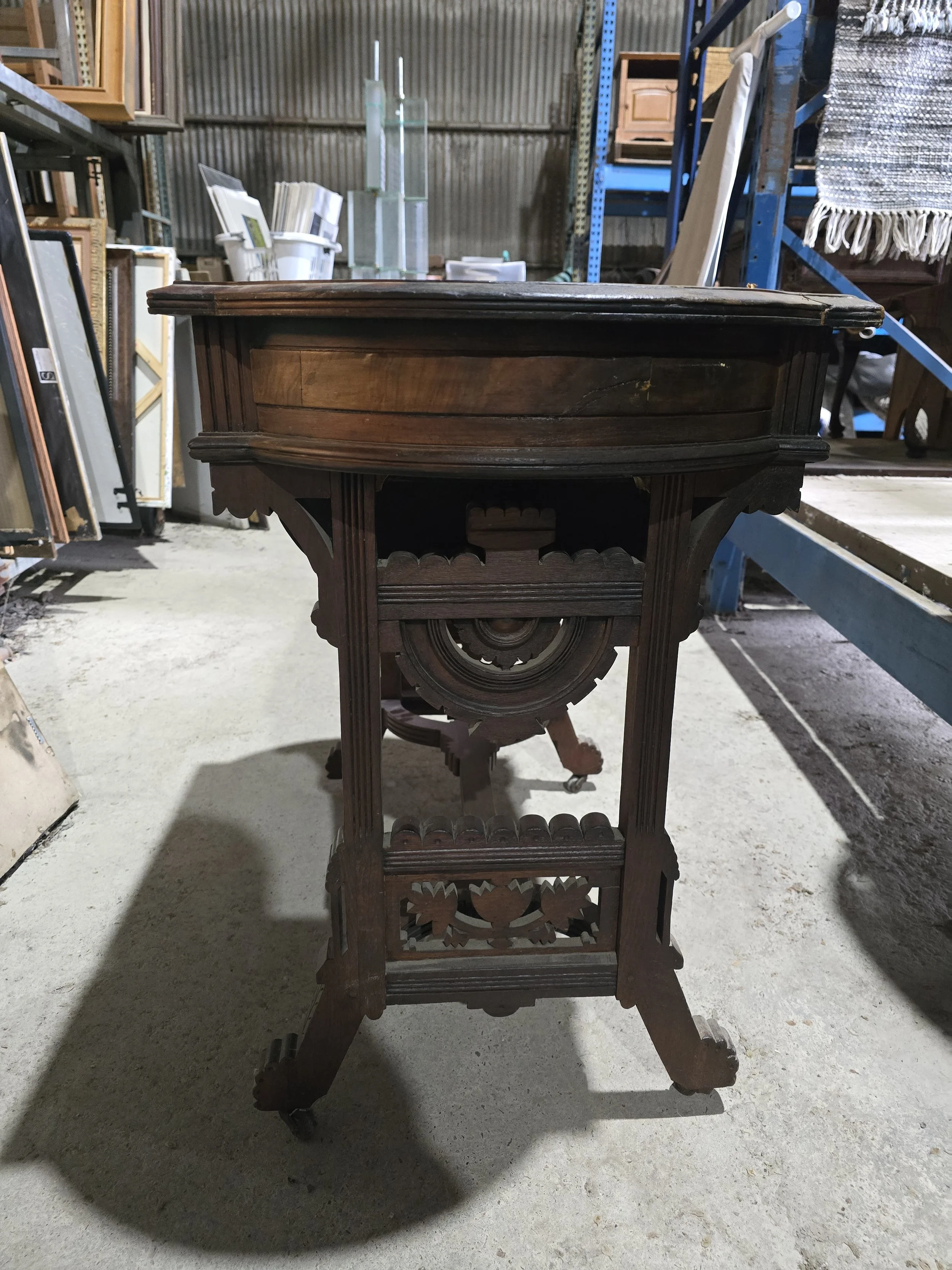 Gorgeous Victorian Eastlake style sewing table/ writing desk. It has one drawer that only opens on one side and a lower drawer that slides both ways. This piece is stunning.
