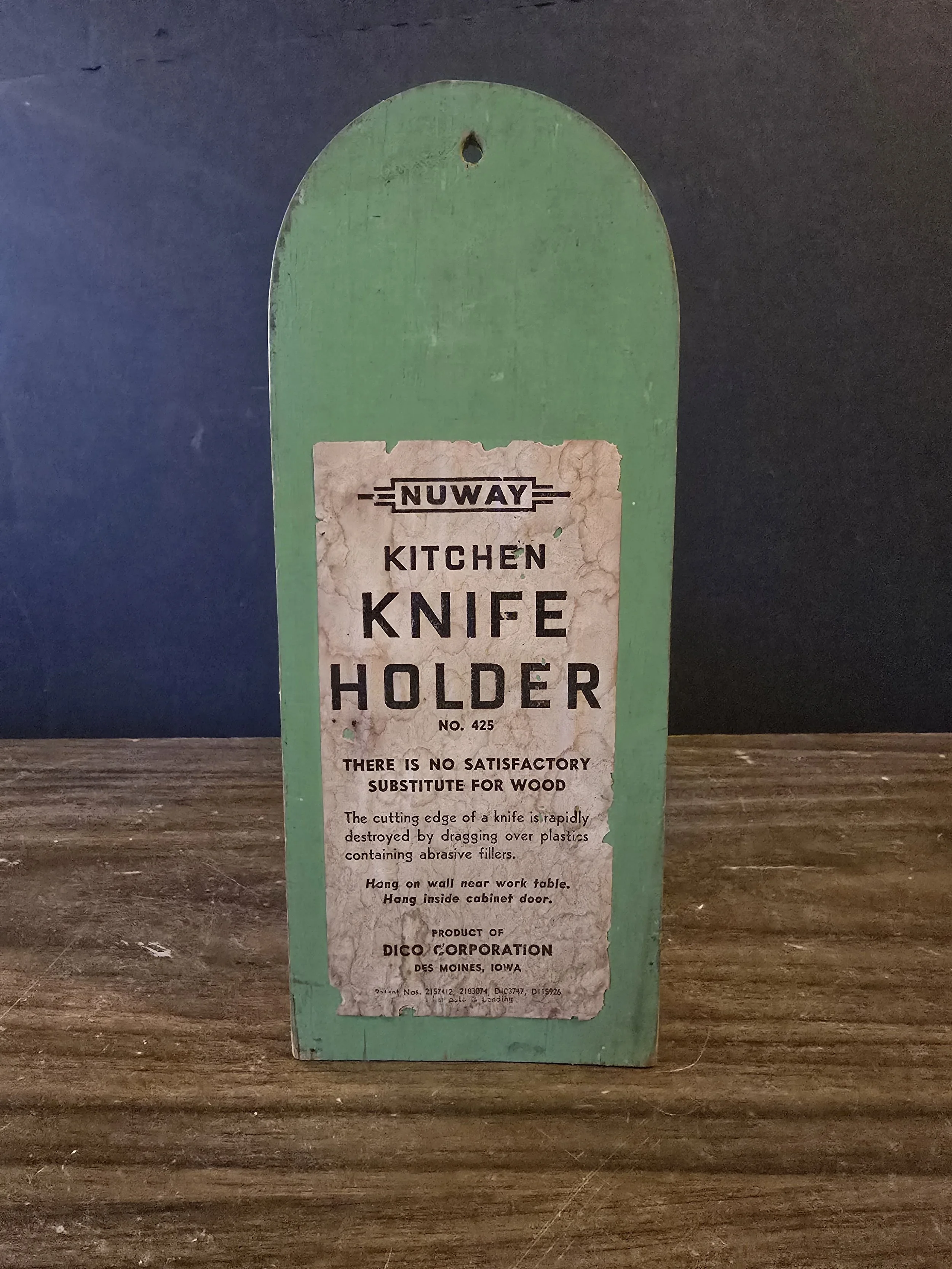 1940's NuWay Wooden Kitchen Wall Hanging Knife Block.