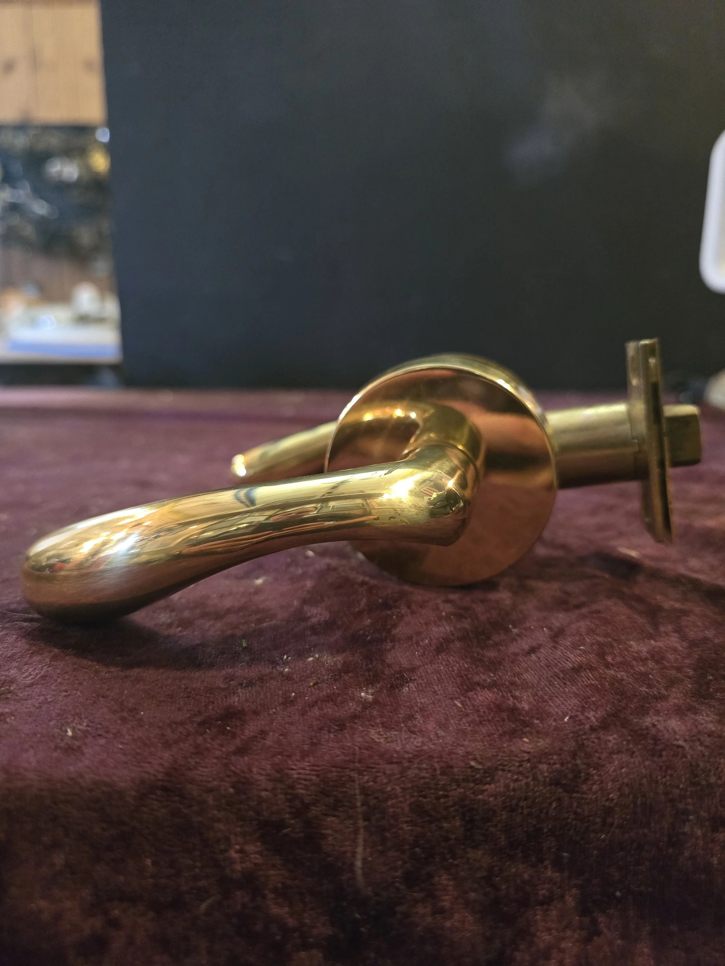 Please note we have multiple sets of these knobs, so you may not get the exact one in the photos. The knob will be brass, the same size, and the same condition.