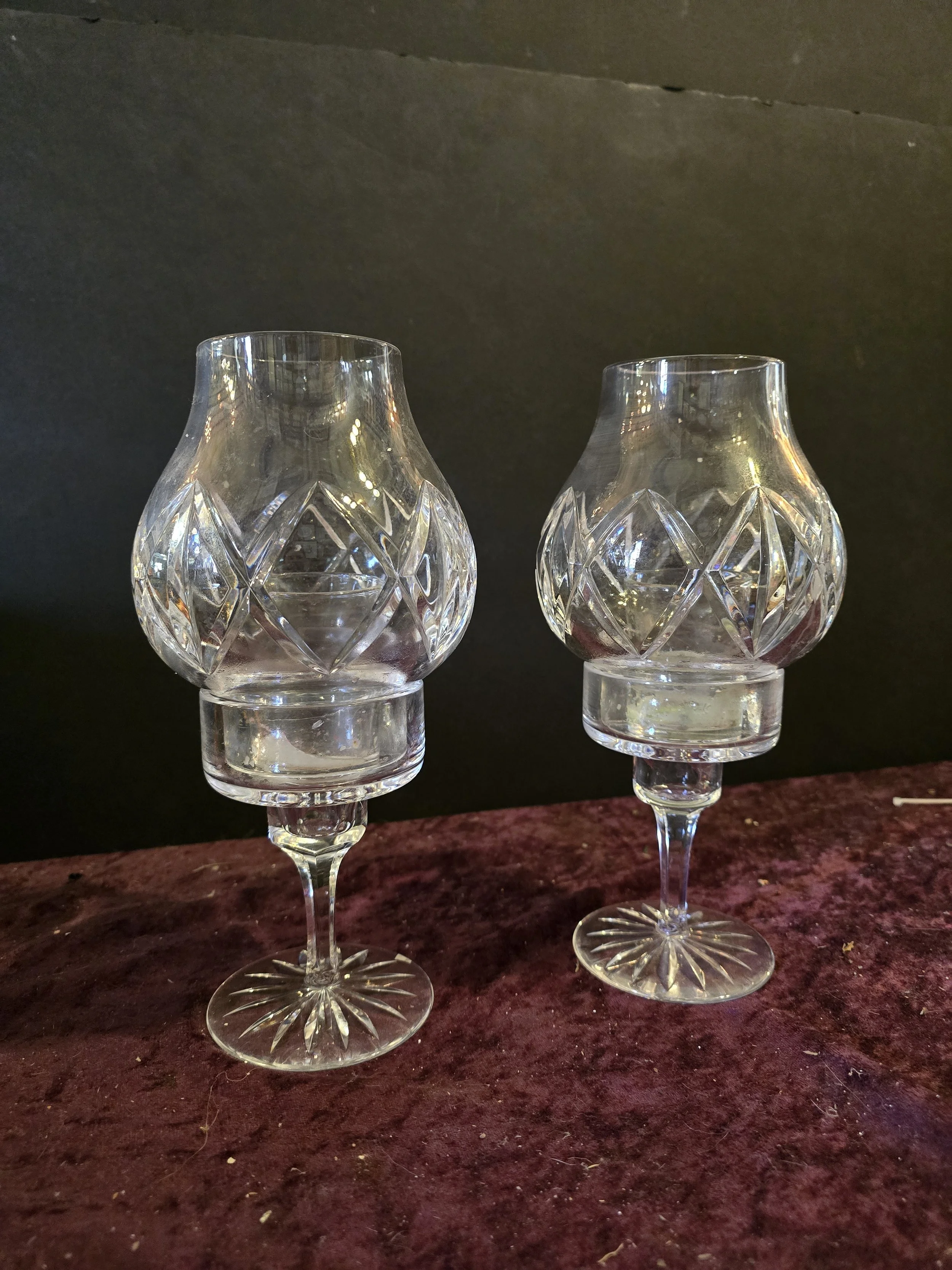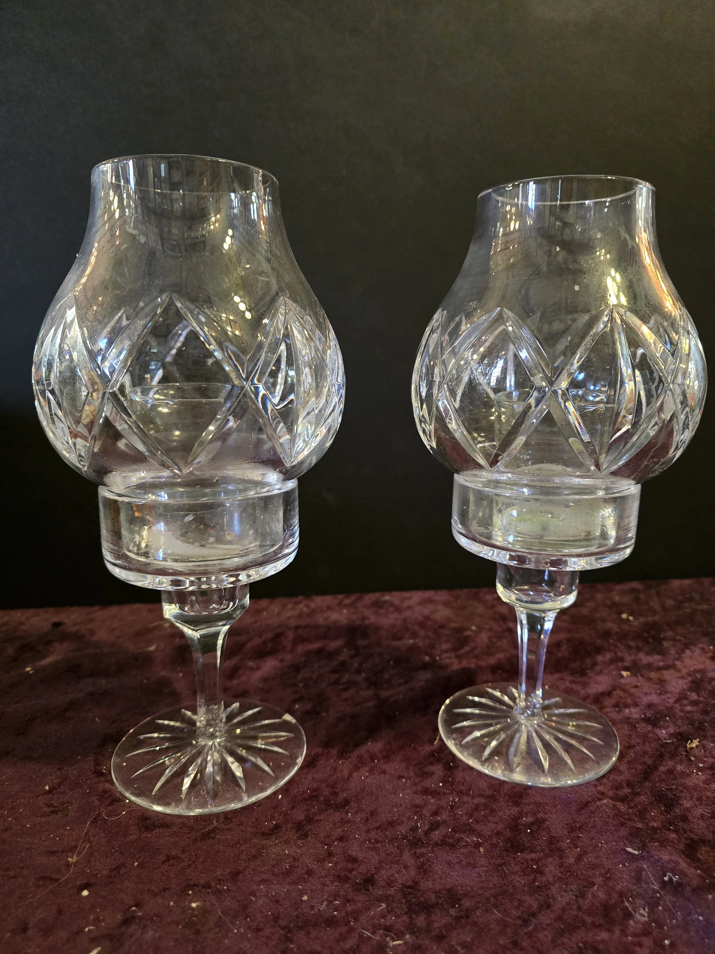 Pair of Atlantis Crystal 2-Piece Hurricane Candle Holders