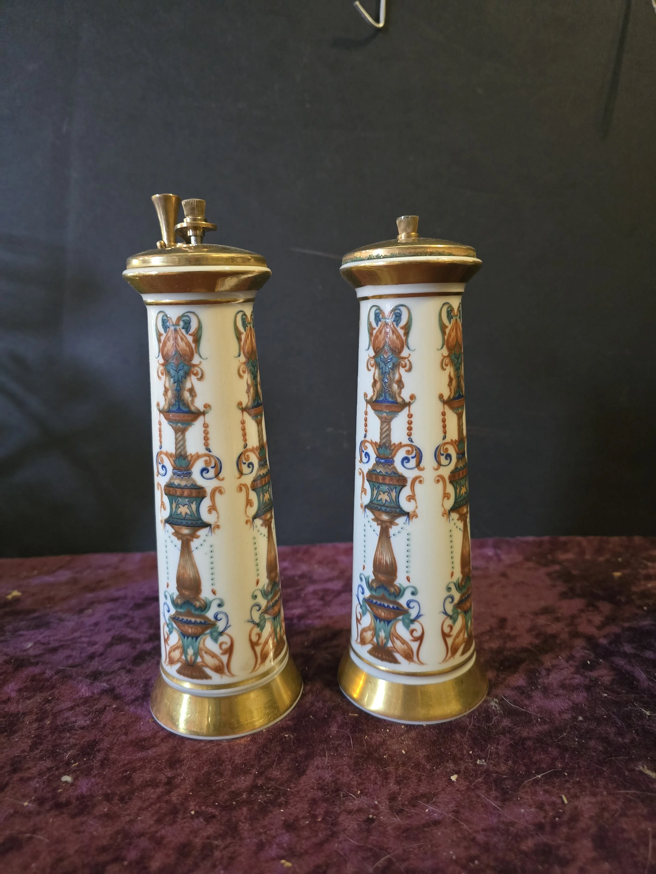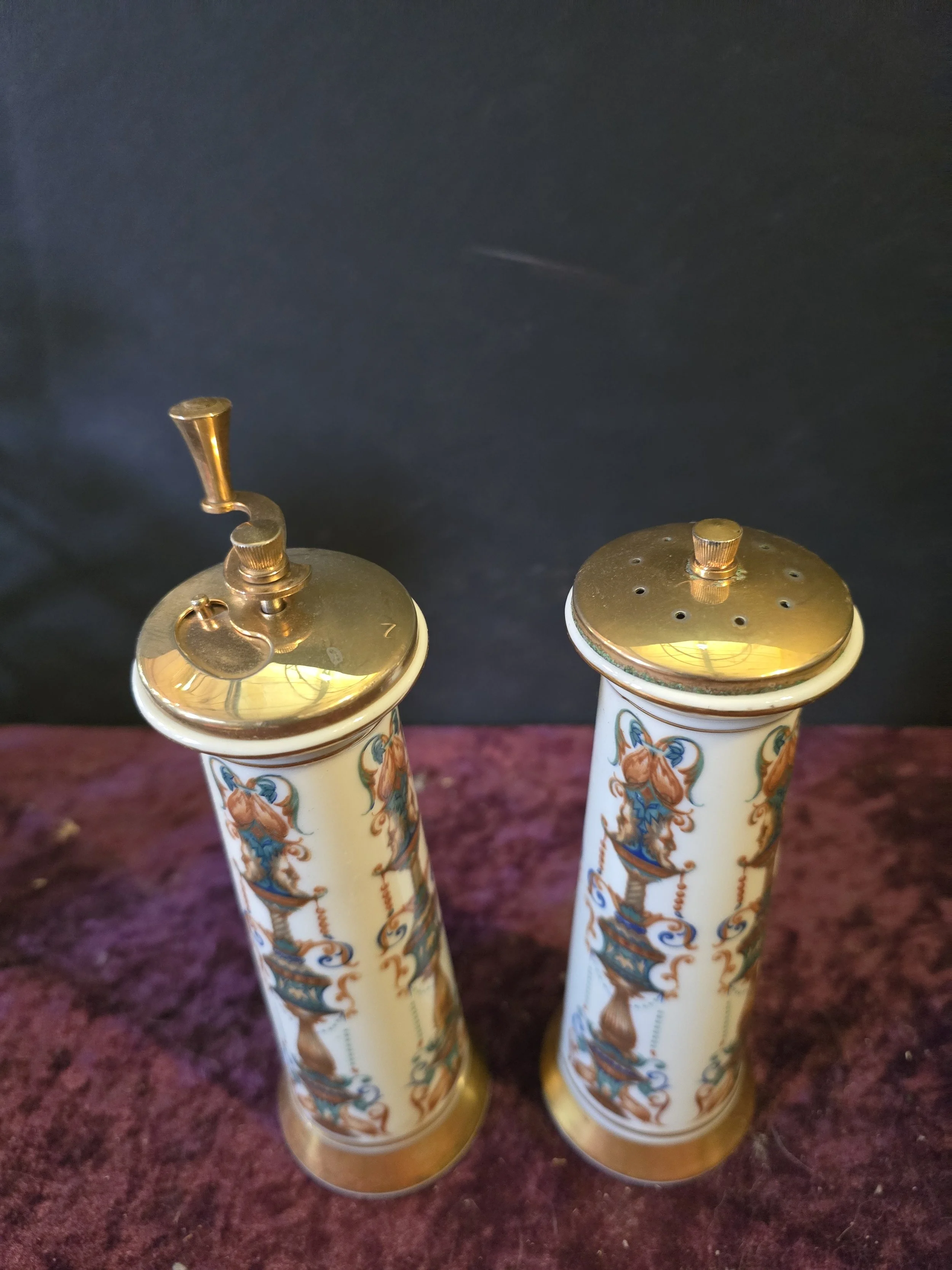 Lenox Lido salt Shaker and pepper mill. There is a chip on the bottom rim of the shaker. Probably from the 60's or 70's and detailed with 24k gold.