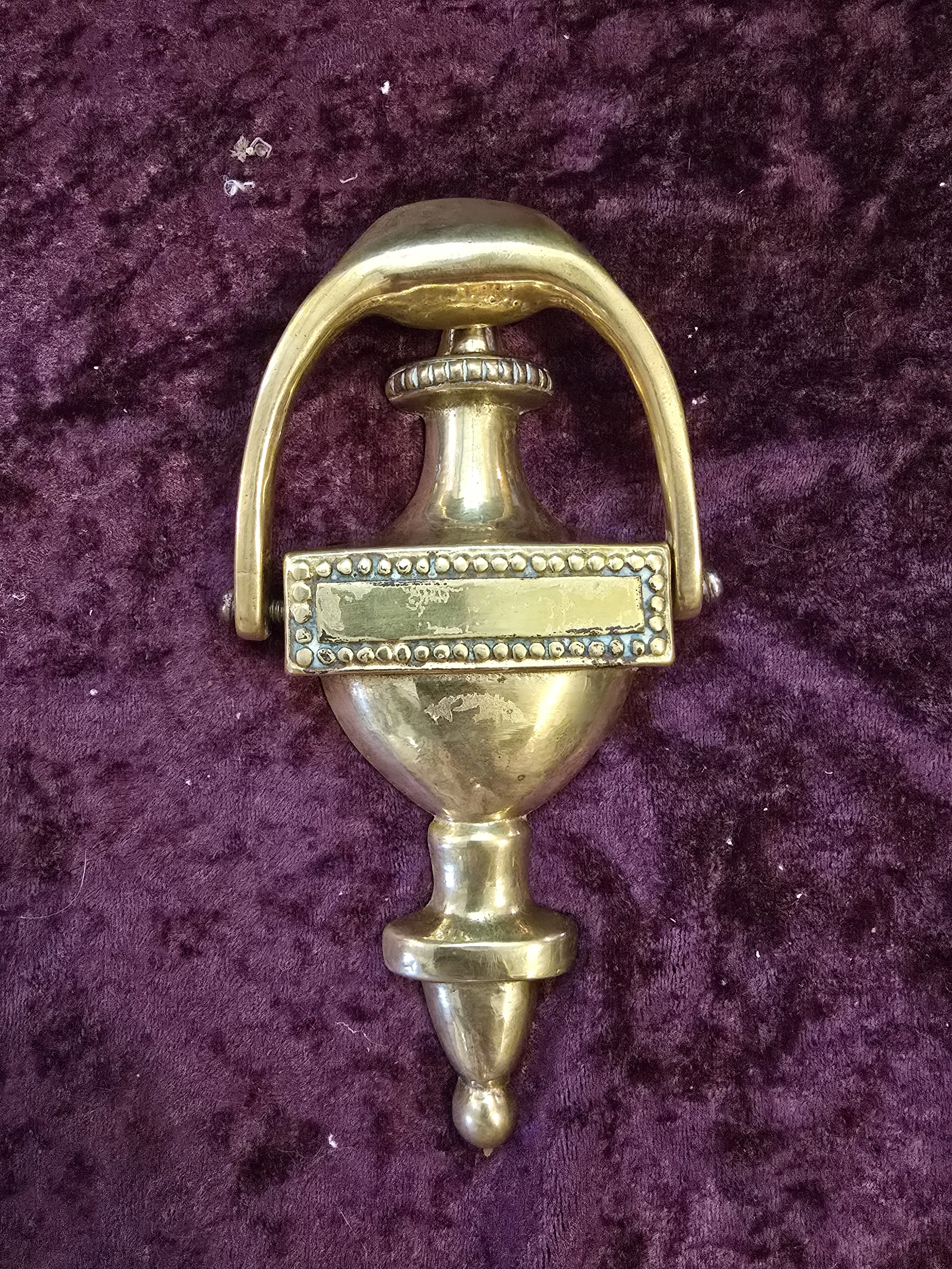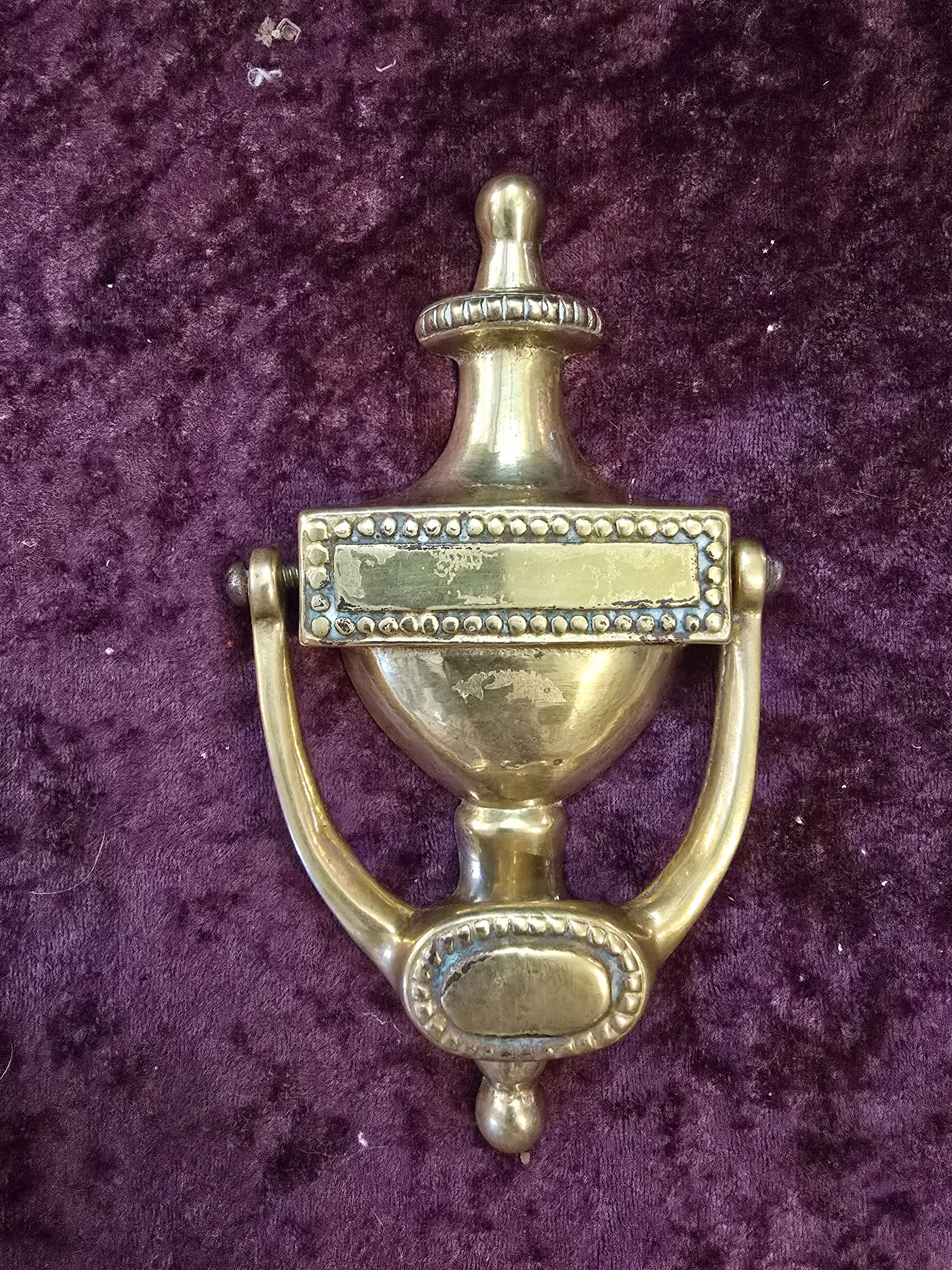 Vintage solid brass beaded door knocker. Has the space for customization if you wanted to add your name.