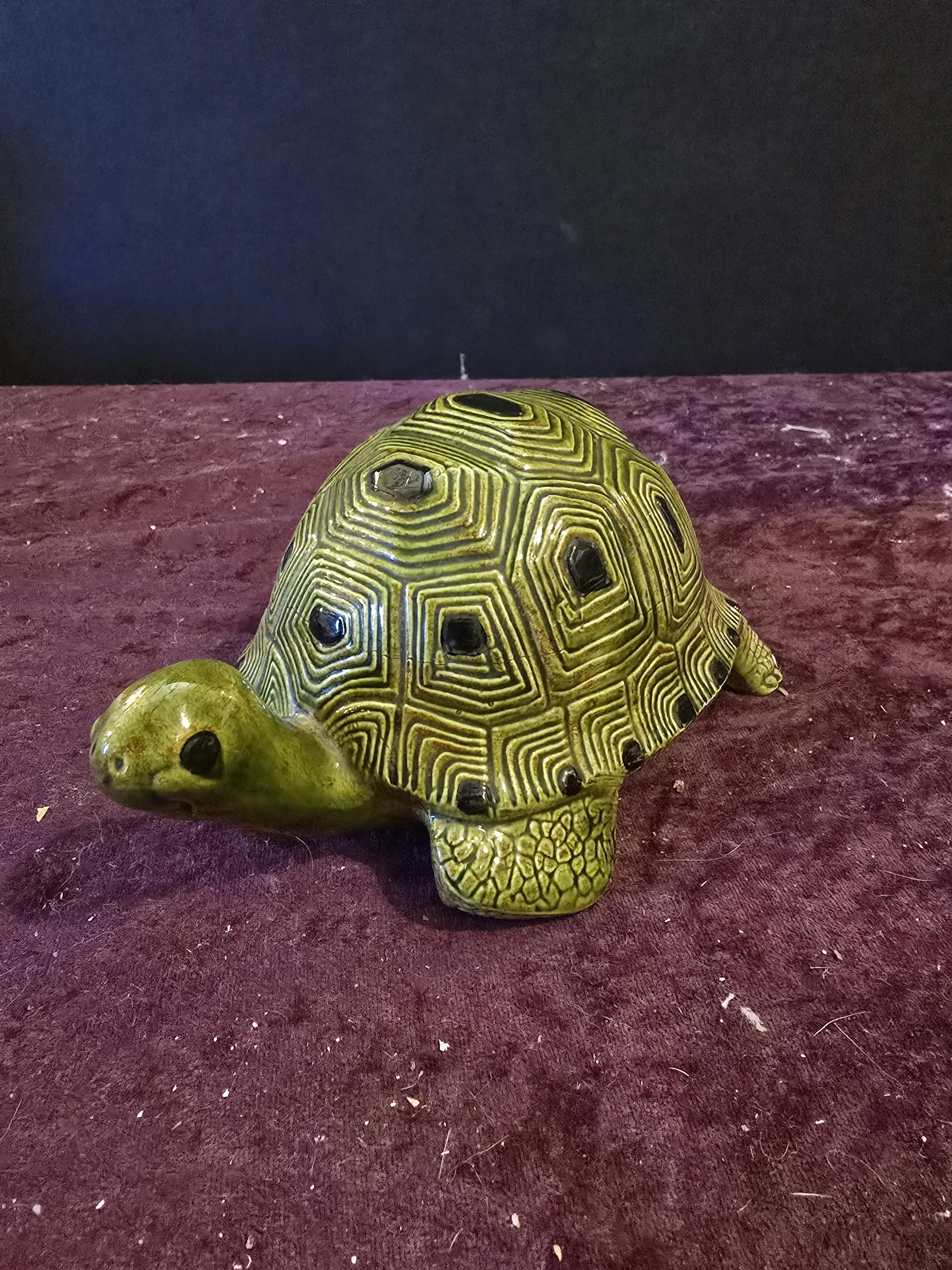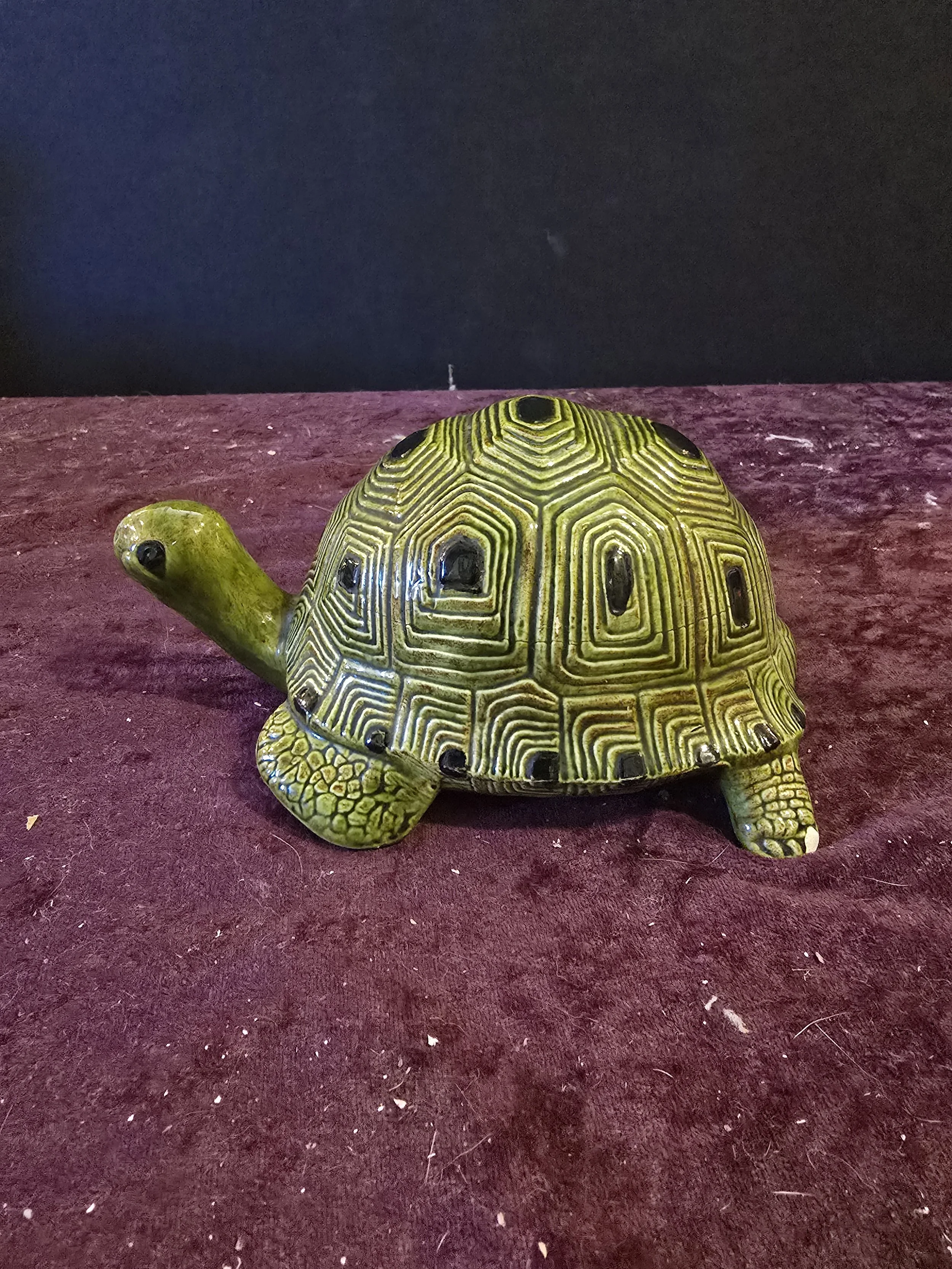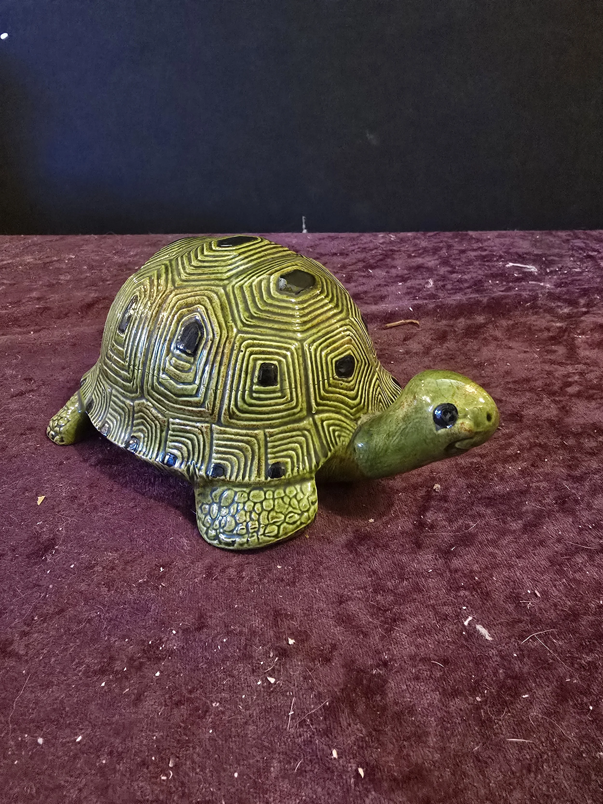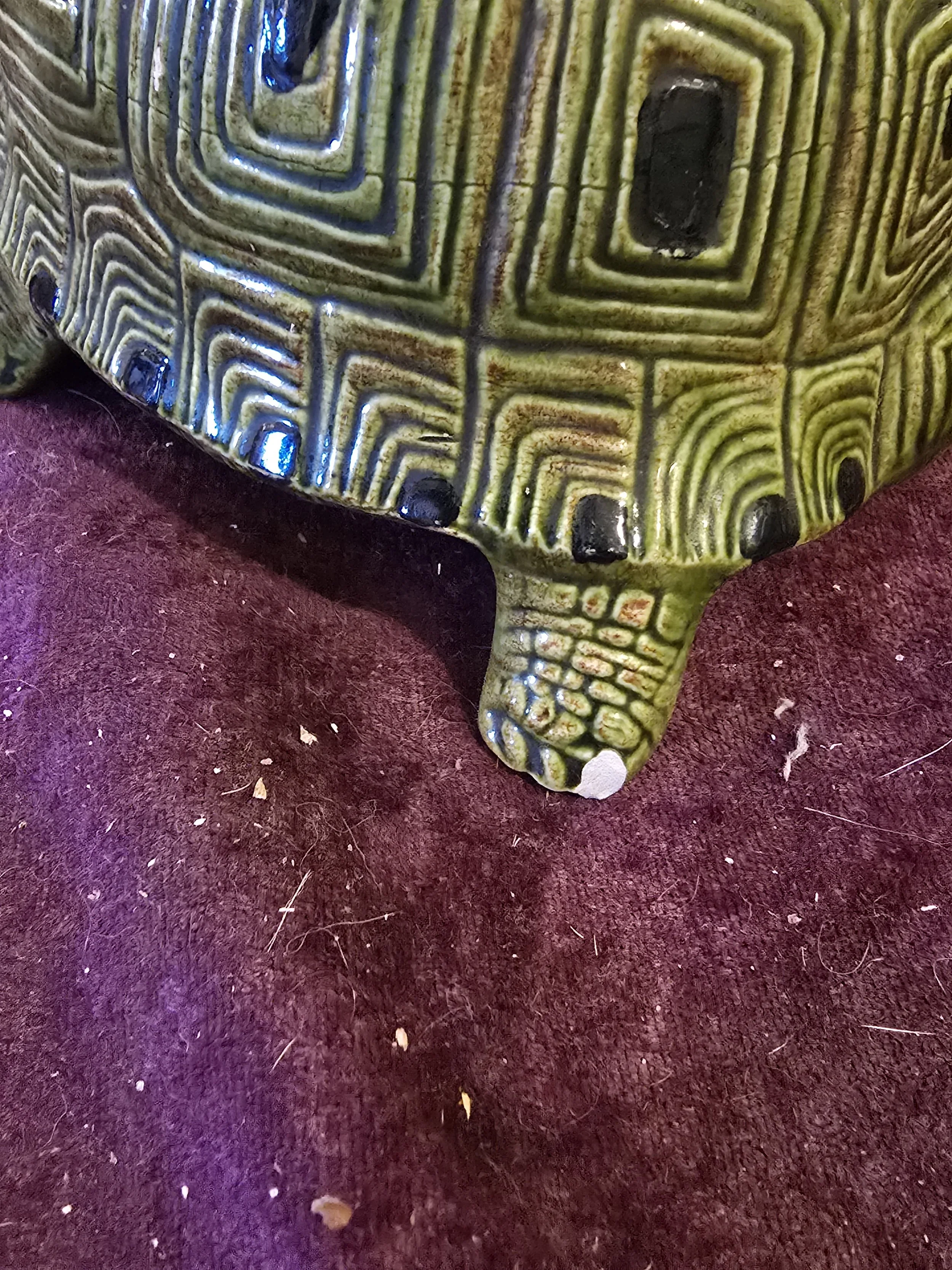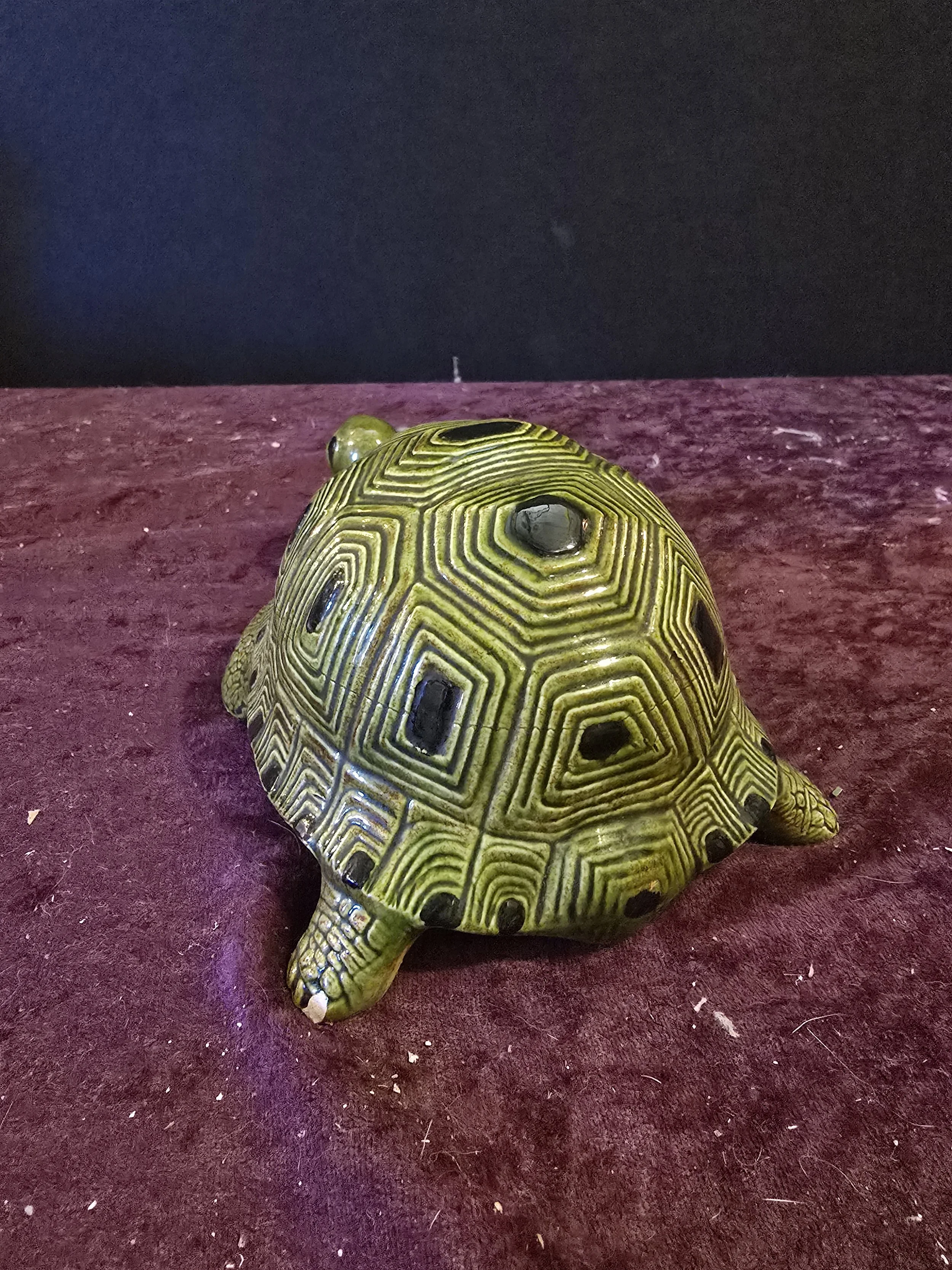 Ceramic turtle figure. There is a tiny chip on his foot.